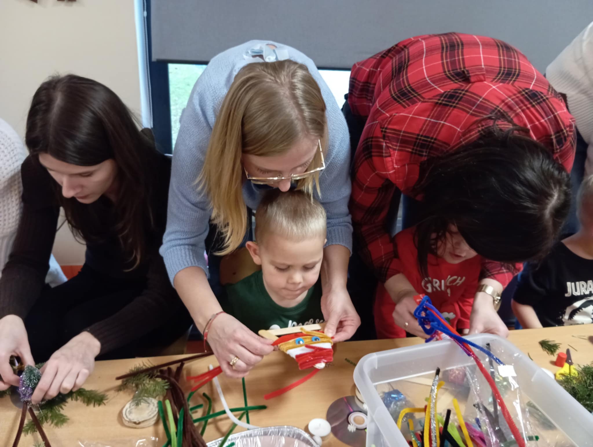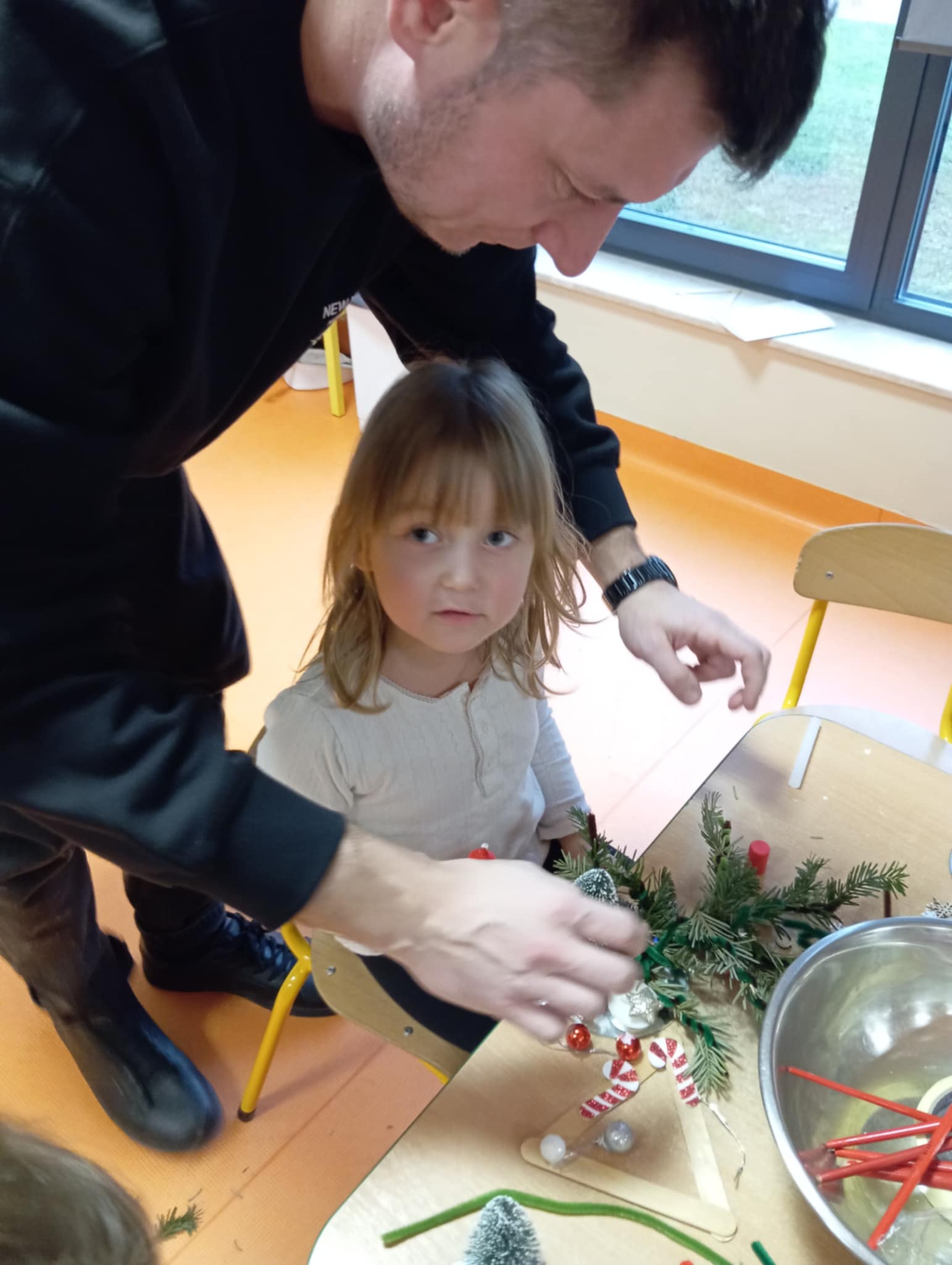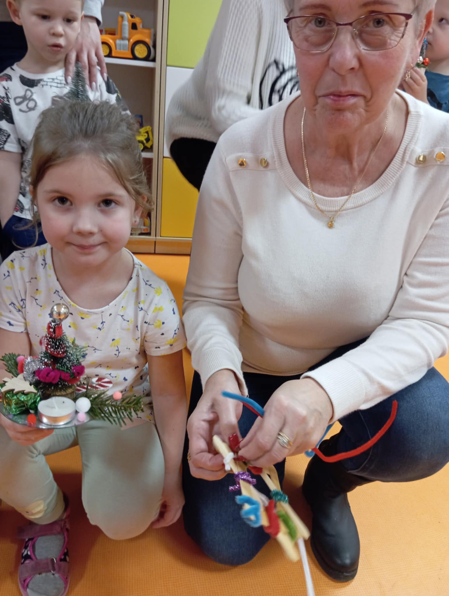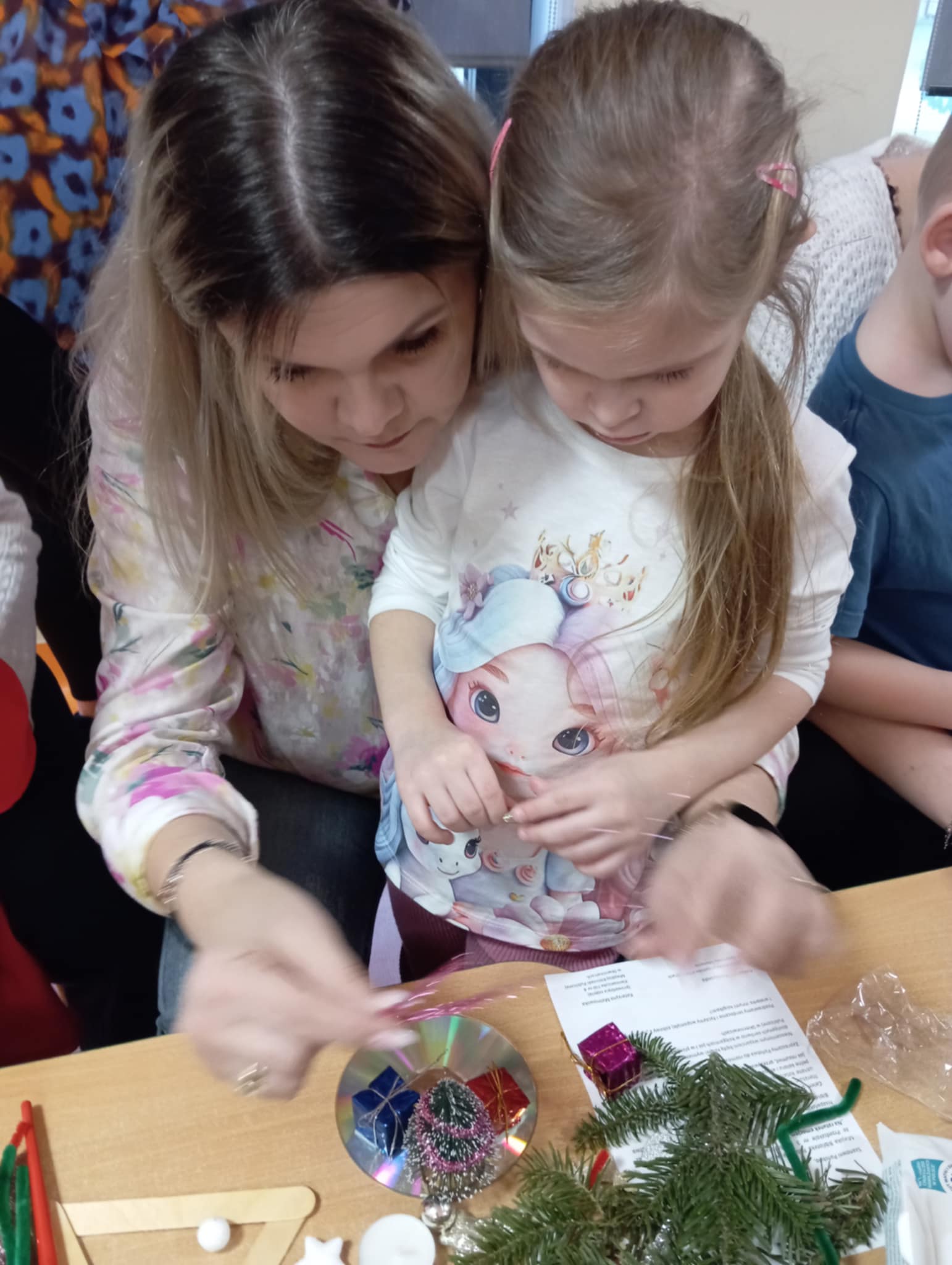 Dzisiejszego dnia w naszej grupie odbyło się bożonarodzeniowe spotkanie z rodzicami. Najpierw rodzice mieli przyjemność oglądać zajęcia, w których uczestniczyły dzieci. Zajęcia o tematyce Bożego Narodzenie. Rodzice aktywnie włączyli się w pracę, odgadywali tradycje ukryte na obrazkach, nauczyły się piosenki, bawili się wspólnie z dziećmi. Następnie wszyscy przystąpili do kreatywnej części naszego spotkania. Rodzice wspólnie z dziećmi wykonaywali ozdoby, stroiki świąteczne. To był wspaniały czas.