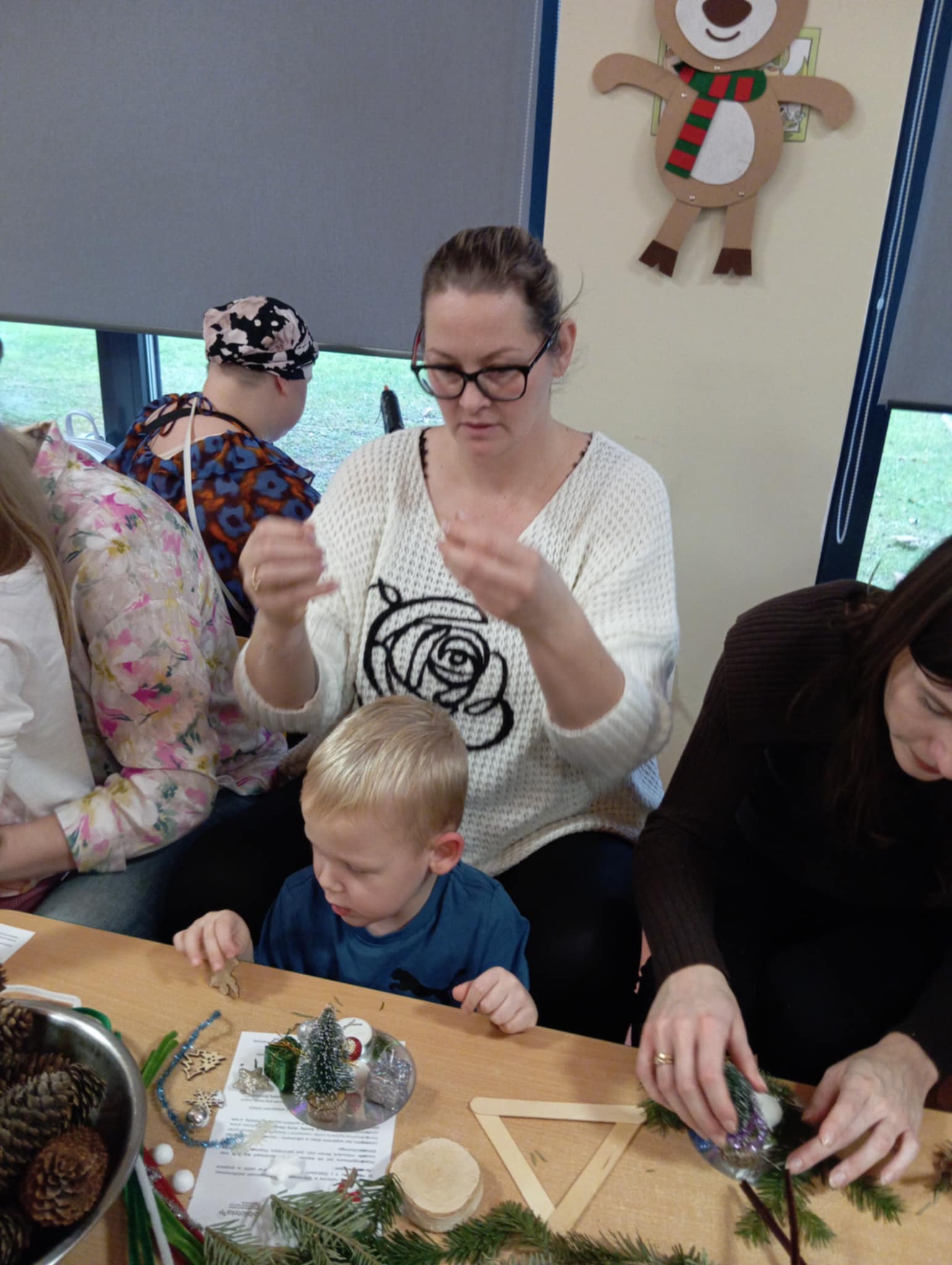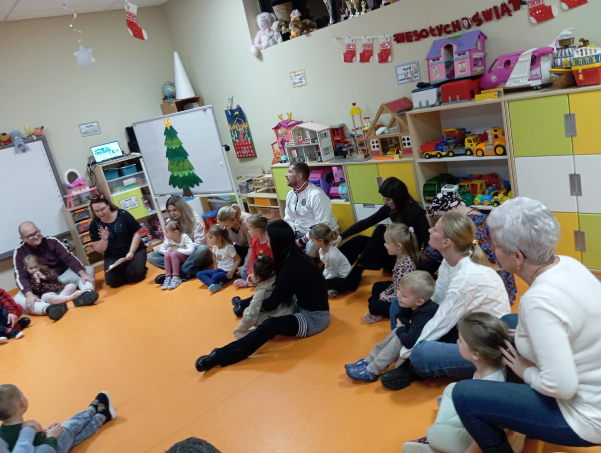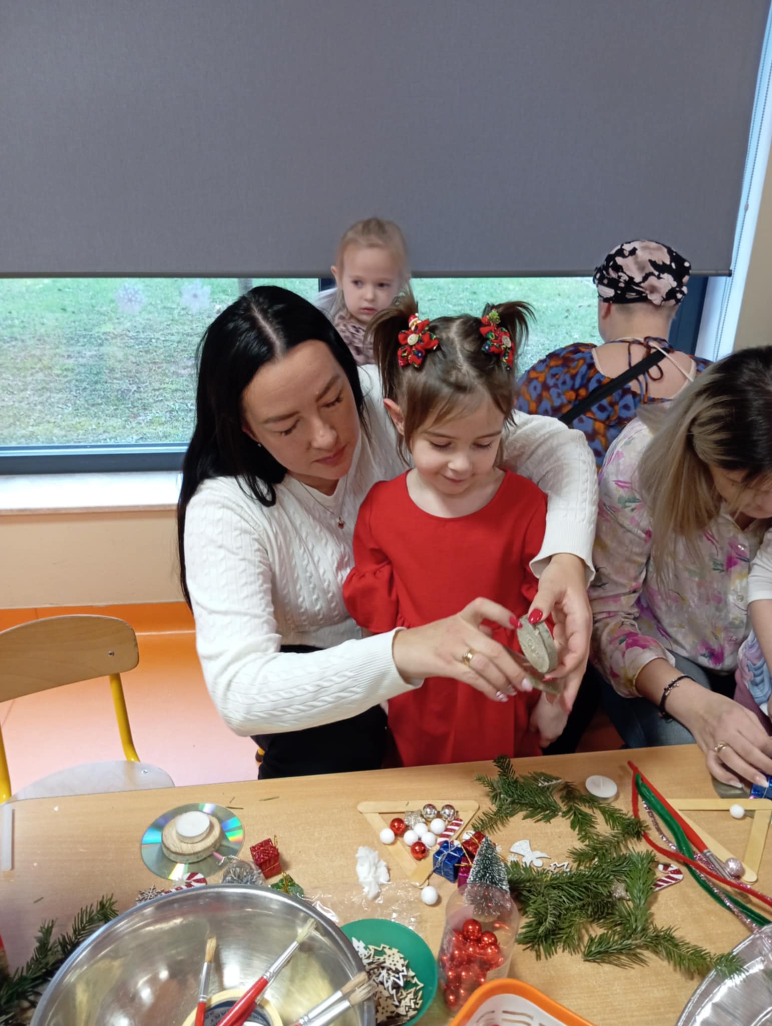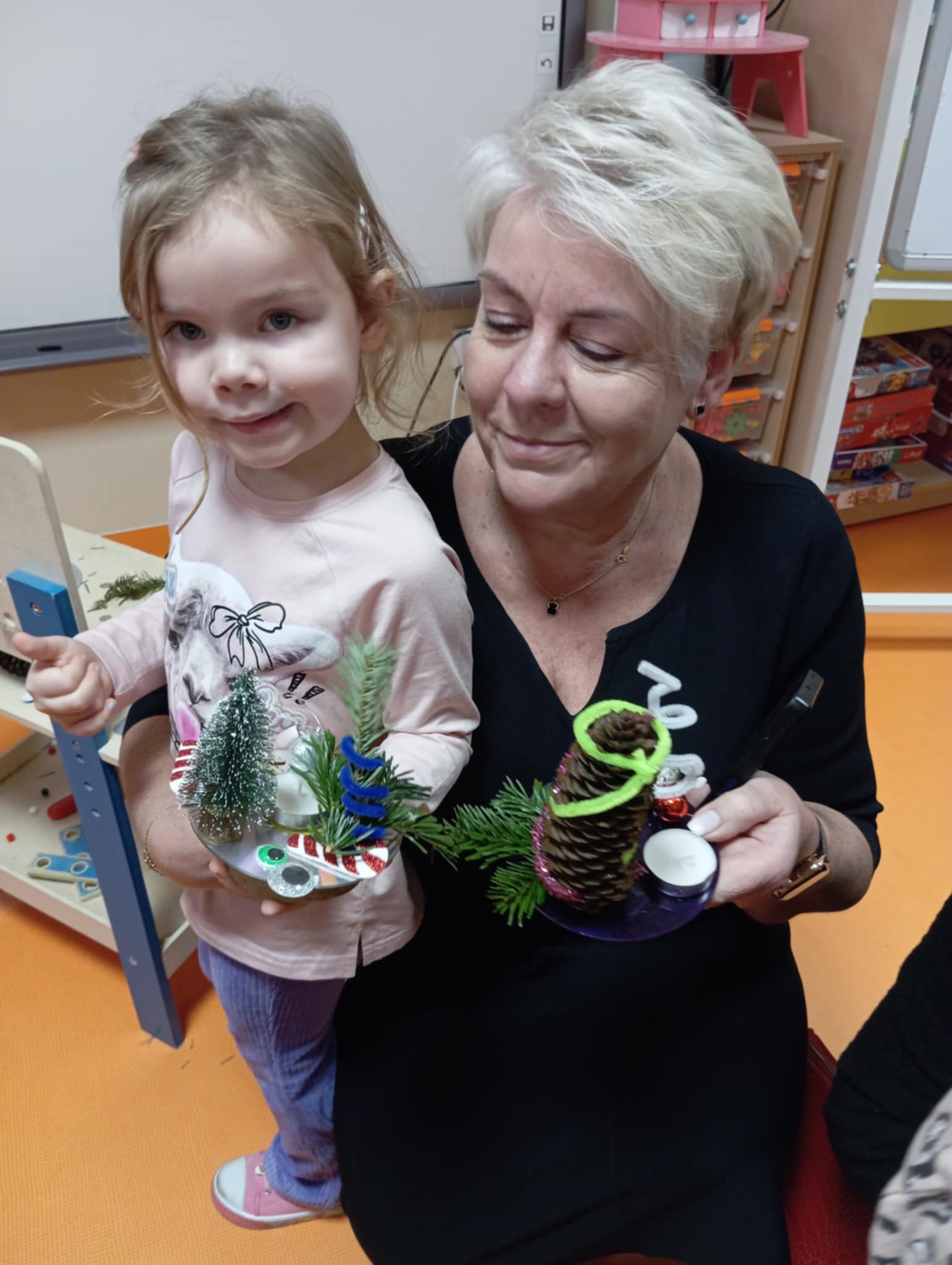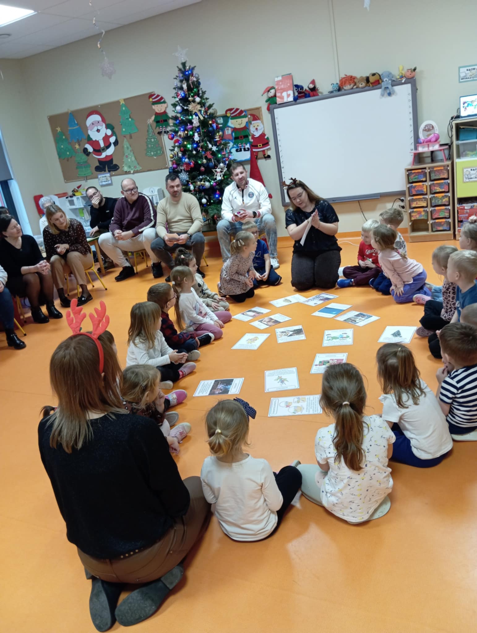 Dzisiejszego dnia w naszej grupie odbyło się bożonarodzeniowe spotkanie z rodzicami. Najpierw rodzice mieli przyjemność oglądać zajęcia, w których uczestniczyły dzieci. Zajęcia o tematyce Bożego Narodzenie. Rodzice aktywnie włączyli się w pracę, odgadywali tradycje ukryte na obrazkach, nauczyły się piosenki, bawili się wspólnie z dziećmi. Następnie wszyscy przystąpili do kreatywnej części naszego spotkania. Rodzice wspólnie z dziećmi wykonaywali ozdoby, stroiki świąteczne. To był wspaniały czas.
