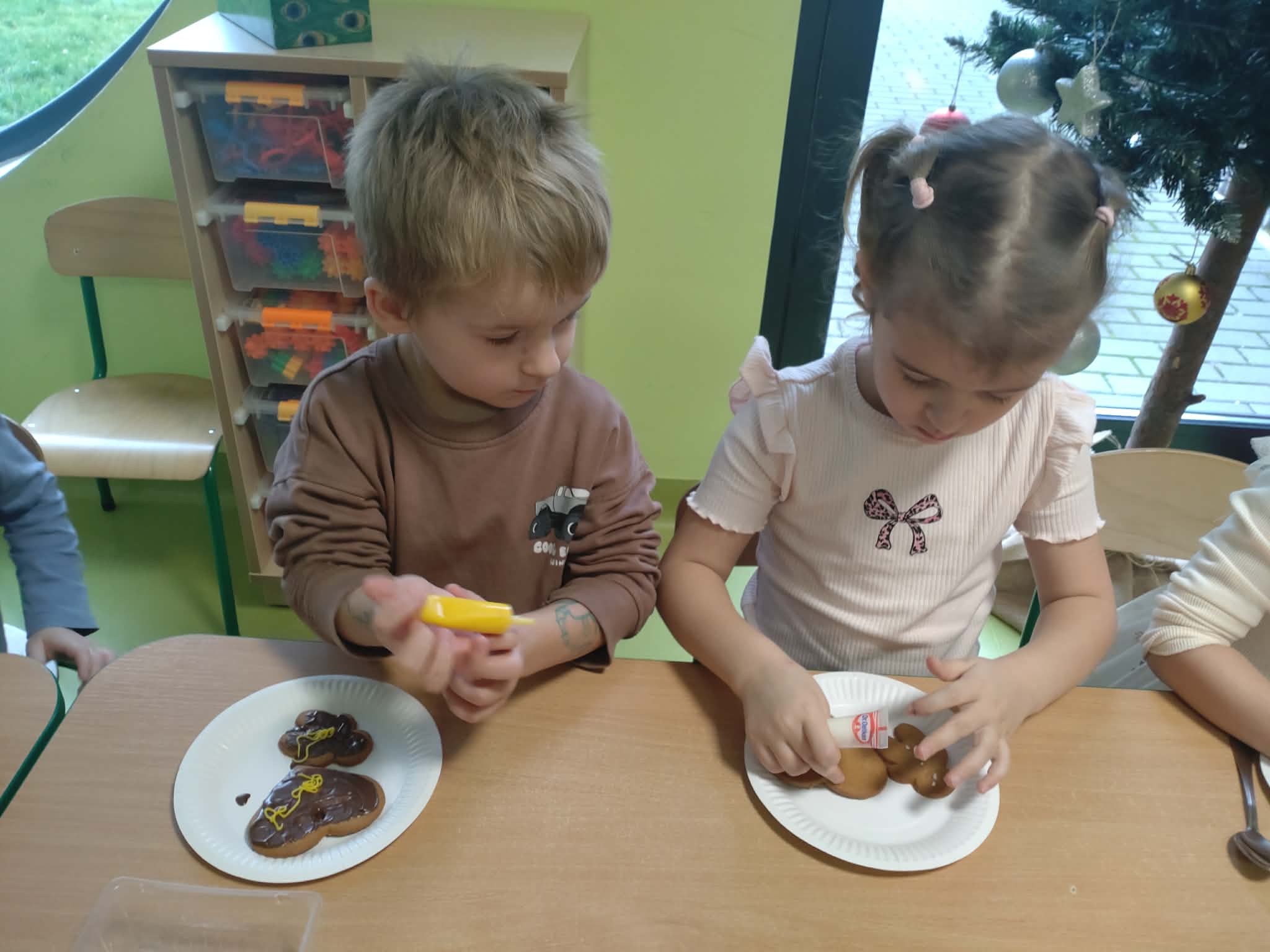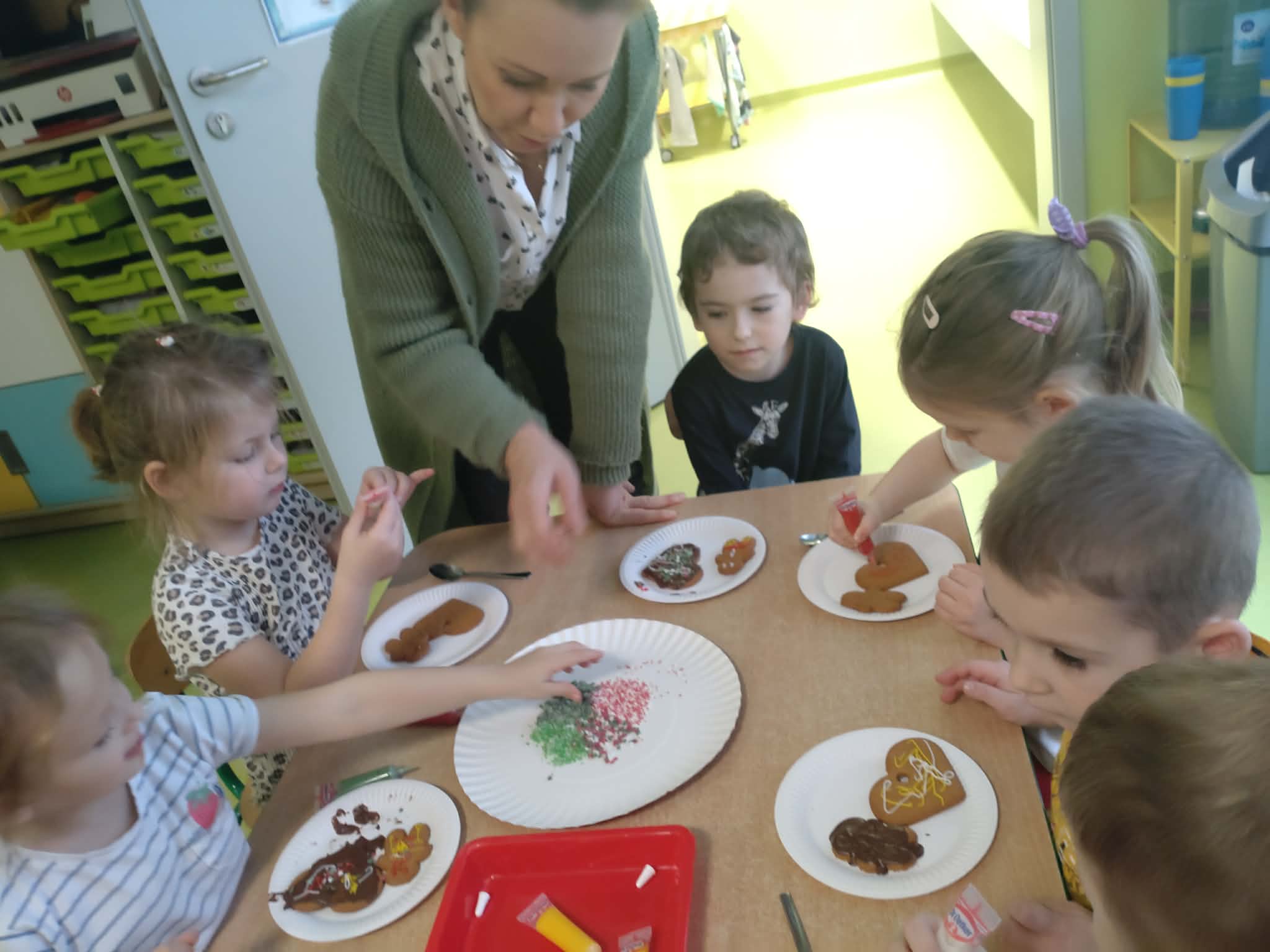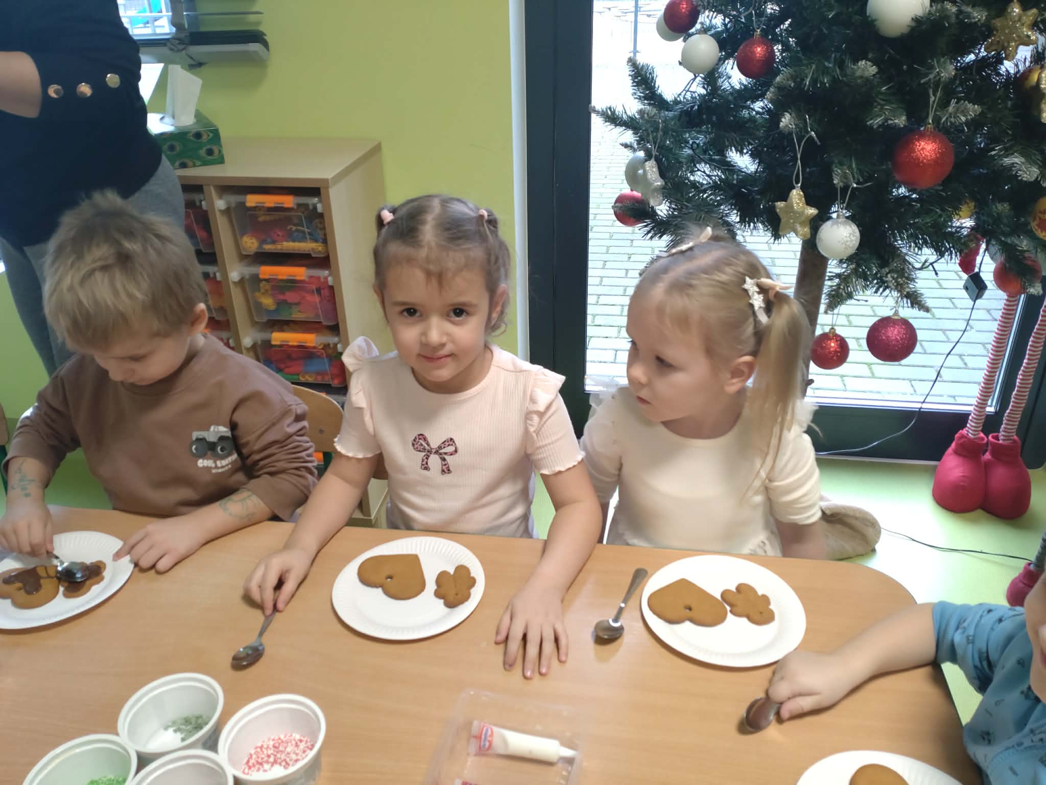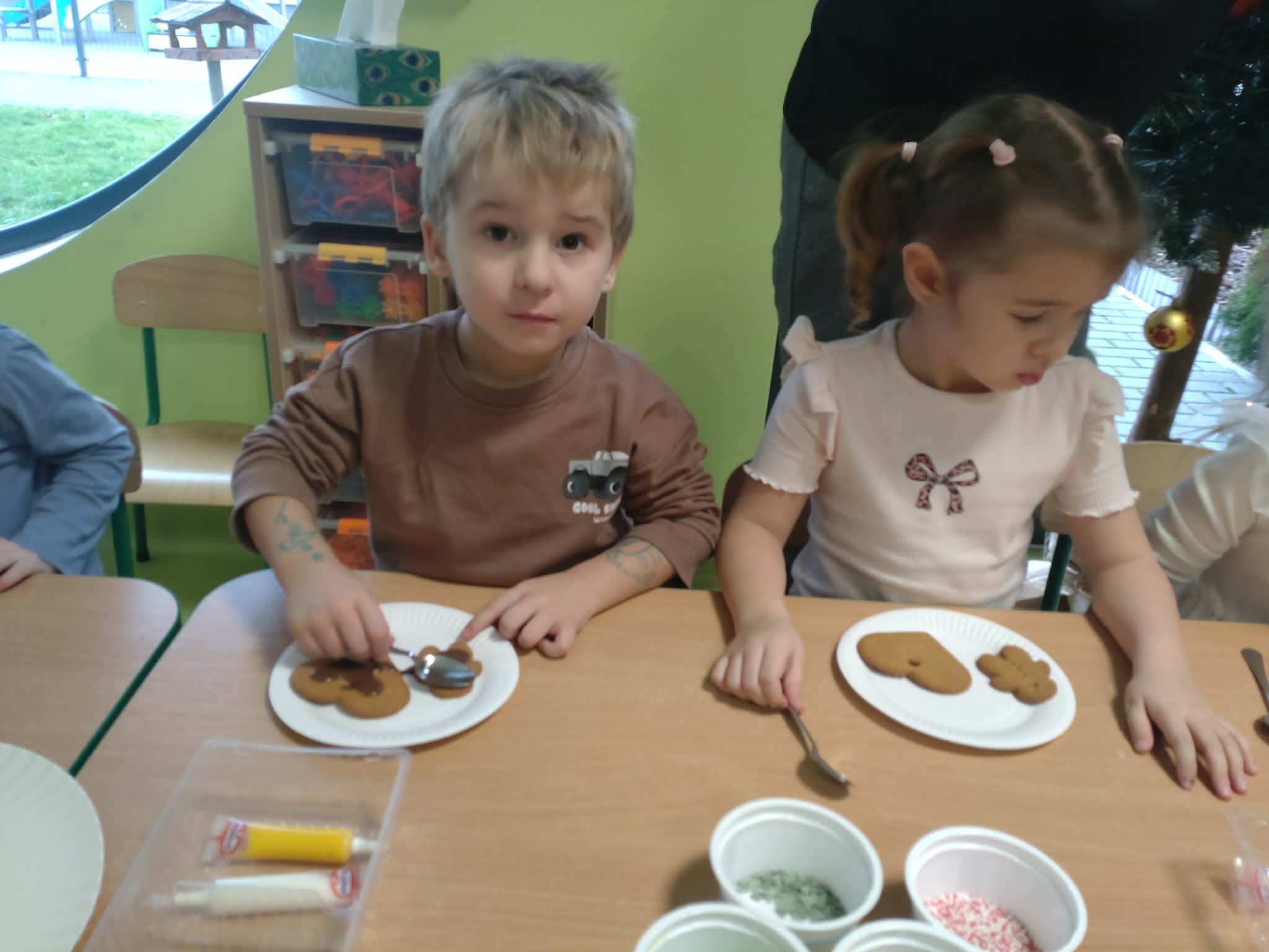 W przedszkolu bardzo czujemy już zbliżające się święta. Codziennie elf Zefirek ma dla nas nowego psikusa, a dzisiaj ozdabialiśmy pierniczki. Okazało się, że nie jest to łatwe zajęcie, ale było bardzo smacznie.