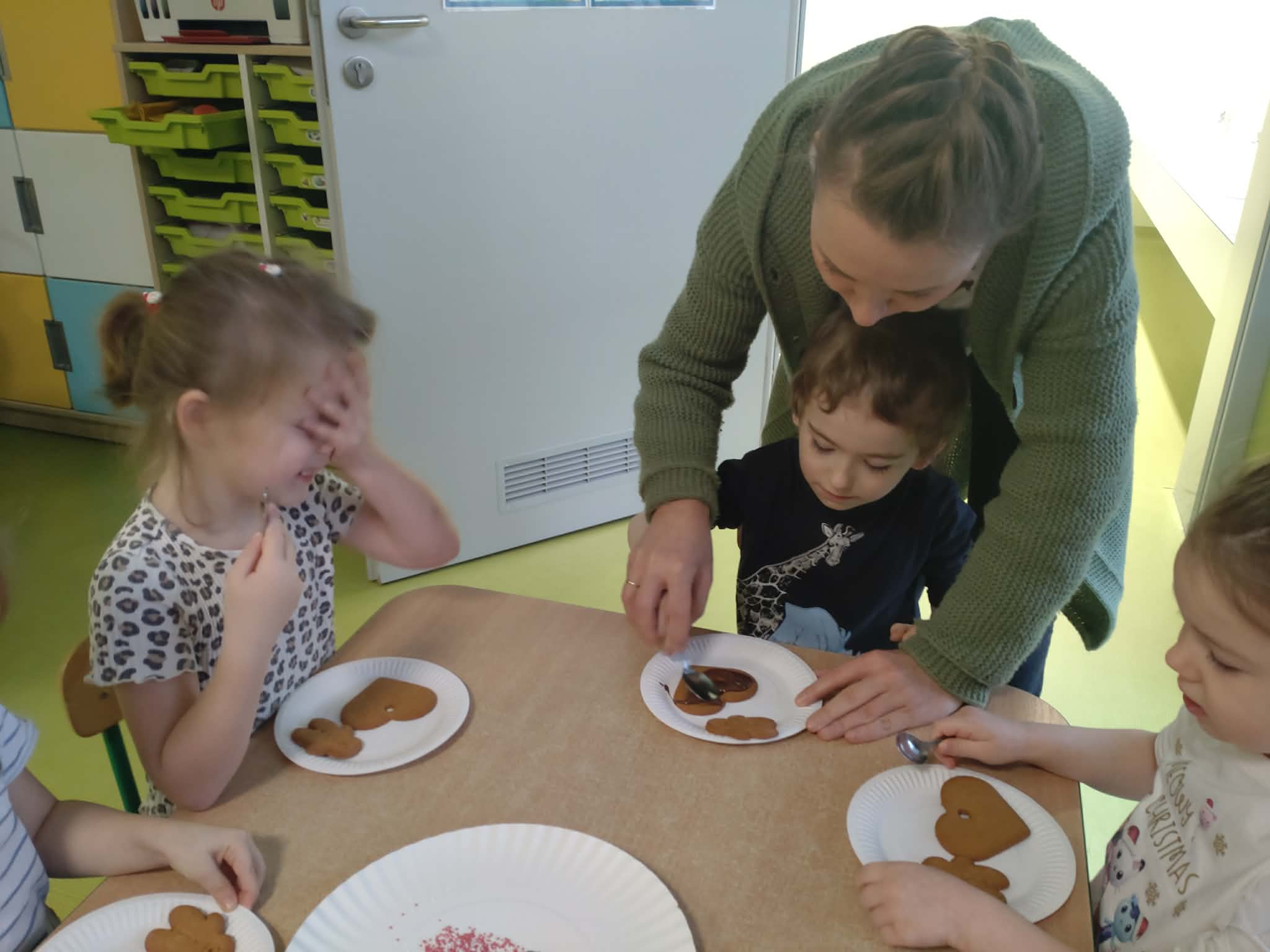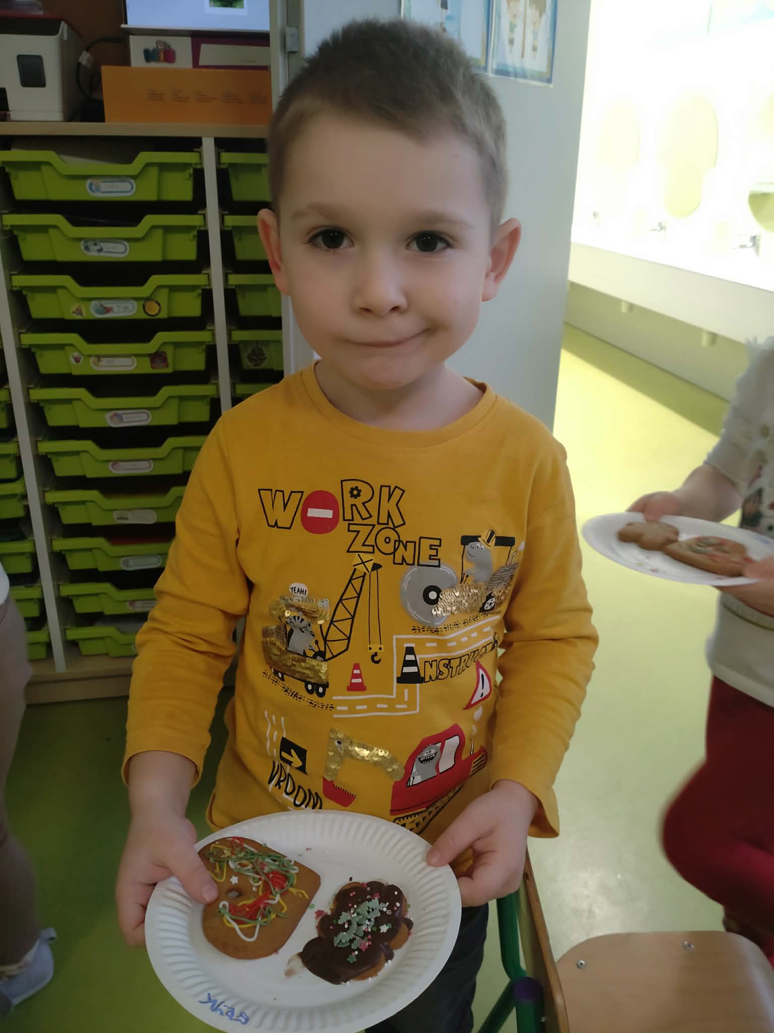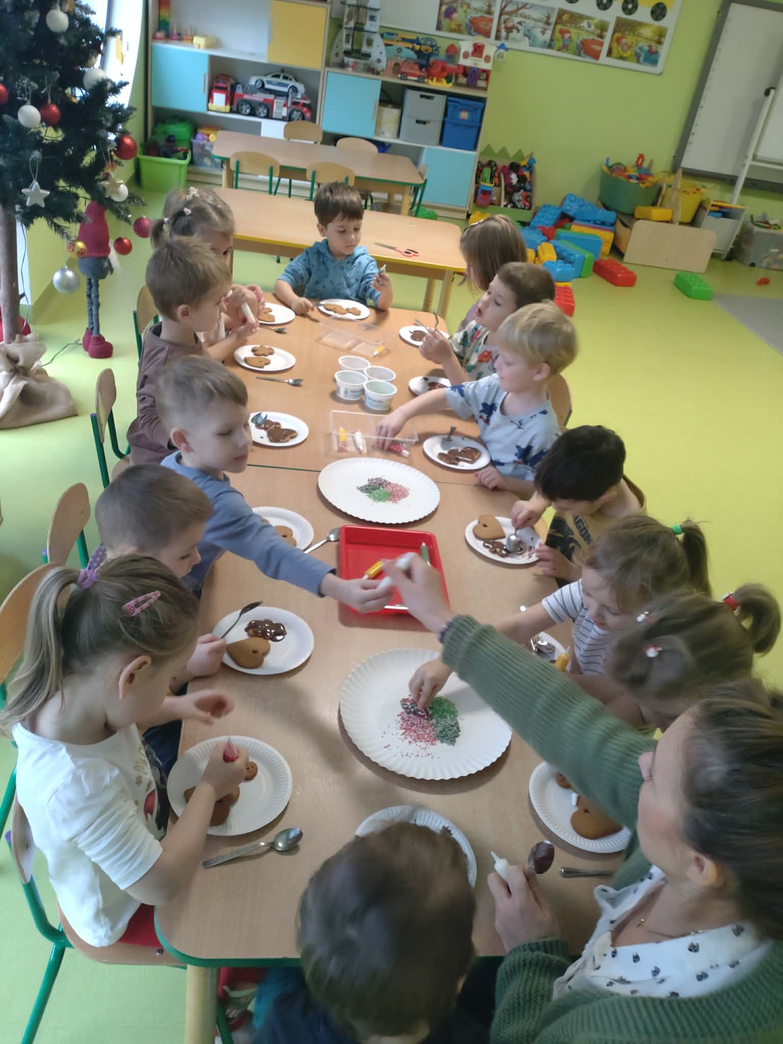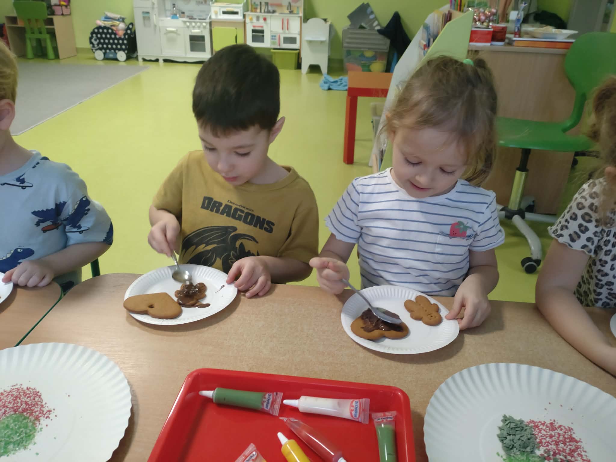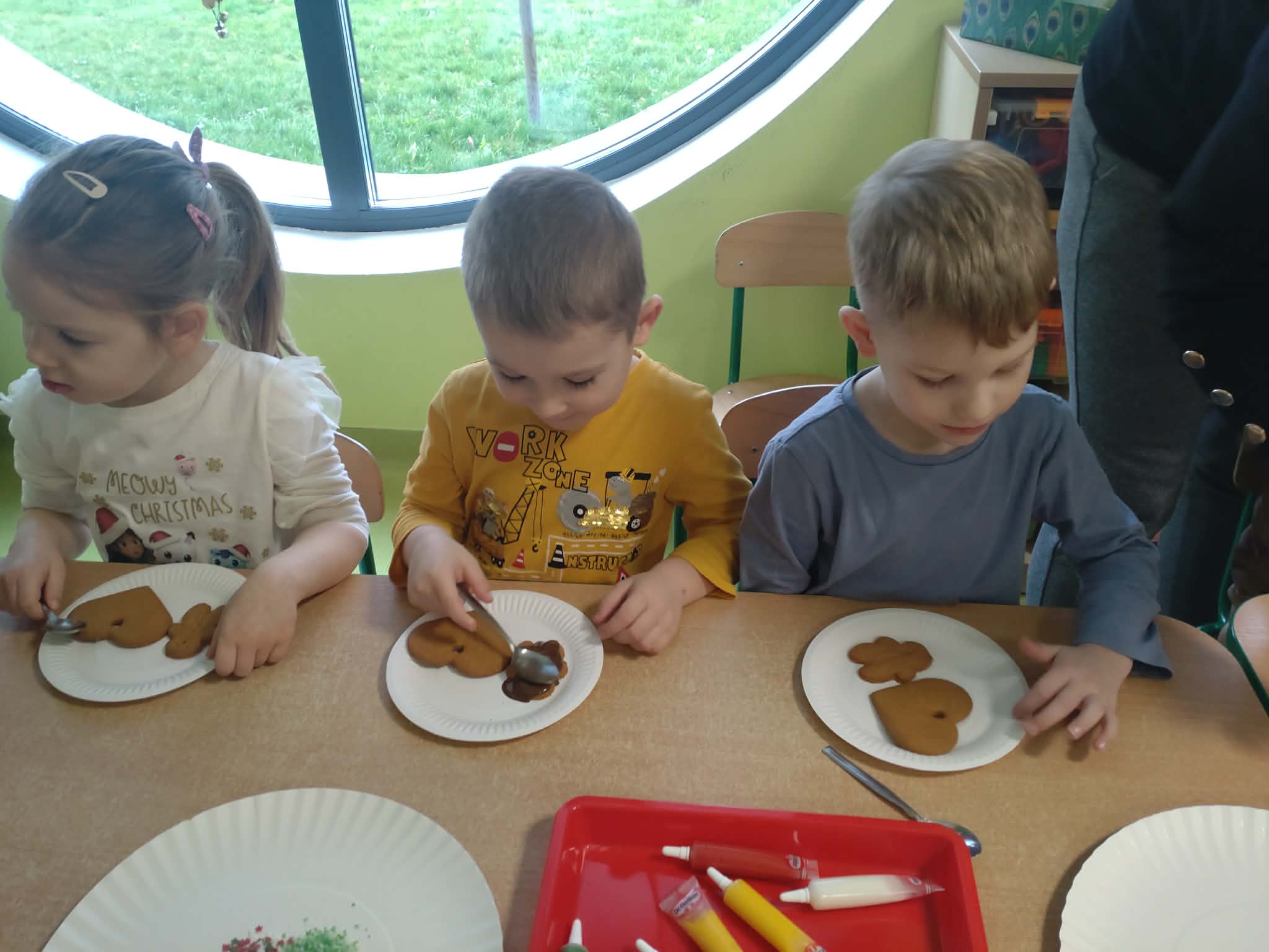 W przedszkolu bardzo czujemy już zbliżające się święta. Codziennie elf Zefirek ma dla nas nowego psikusa, a dzisiaj ozdabialiśmy pierniczki. Okazało się, że nie jest to łatwe zajęcie, ale było bardzo smacznie.