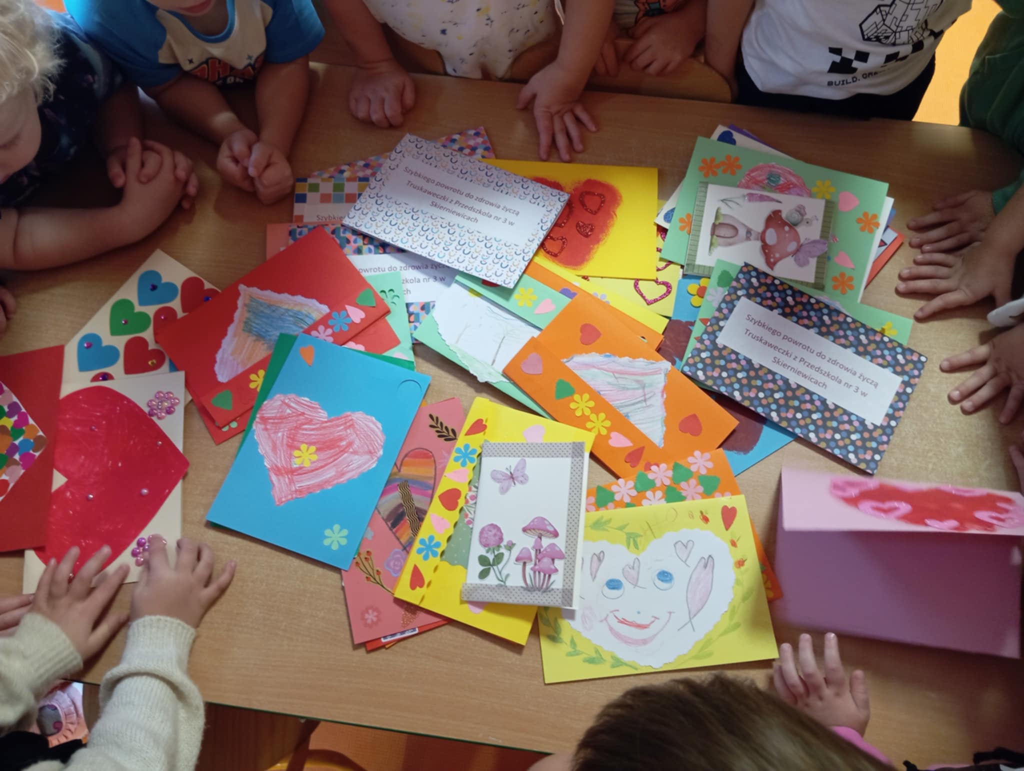 W akcję charytatywną na rzecz Adasia i Kubusia po raz kolejny włączyły się dzieci z naszego przedszkola. Tym razem naszym zadaniem było wykonanie laurek, które trafią do Roberta Lewandowskiego. Będziemy prosić, aby włączył się w akcję, nagłaśniając ją i udostępniając w swoich mediach społecznościowych. Została jeszcze duża kwota do zebrania, potrzebujemy wsparcia, aby dalej walczyć o zdrowie dla chłopców.