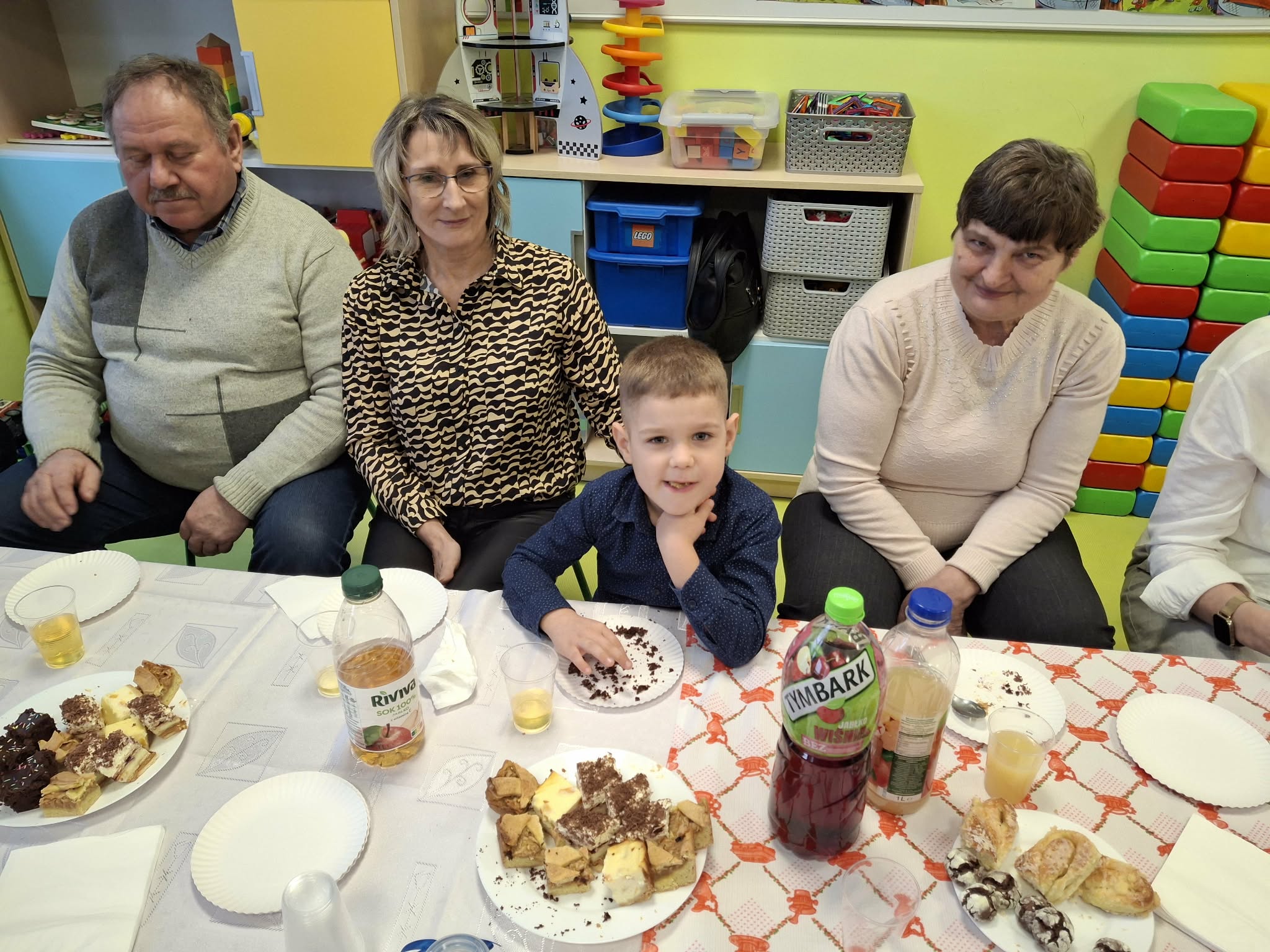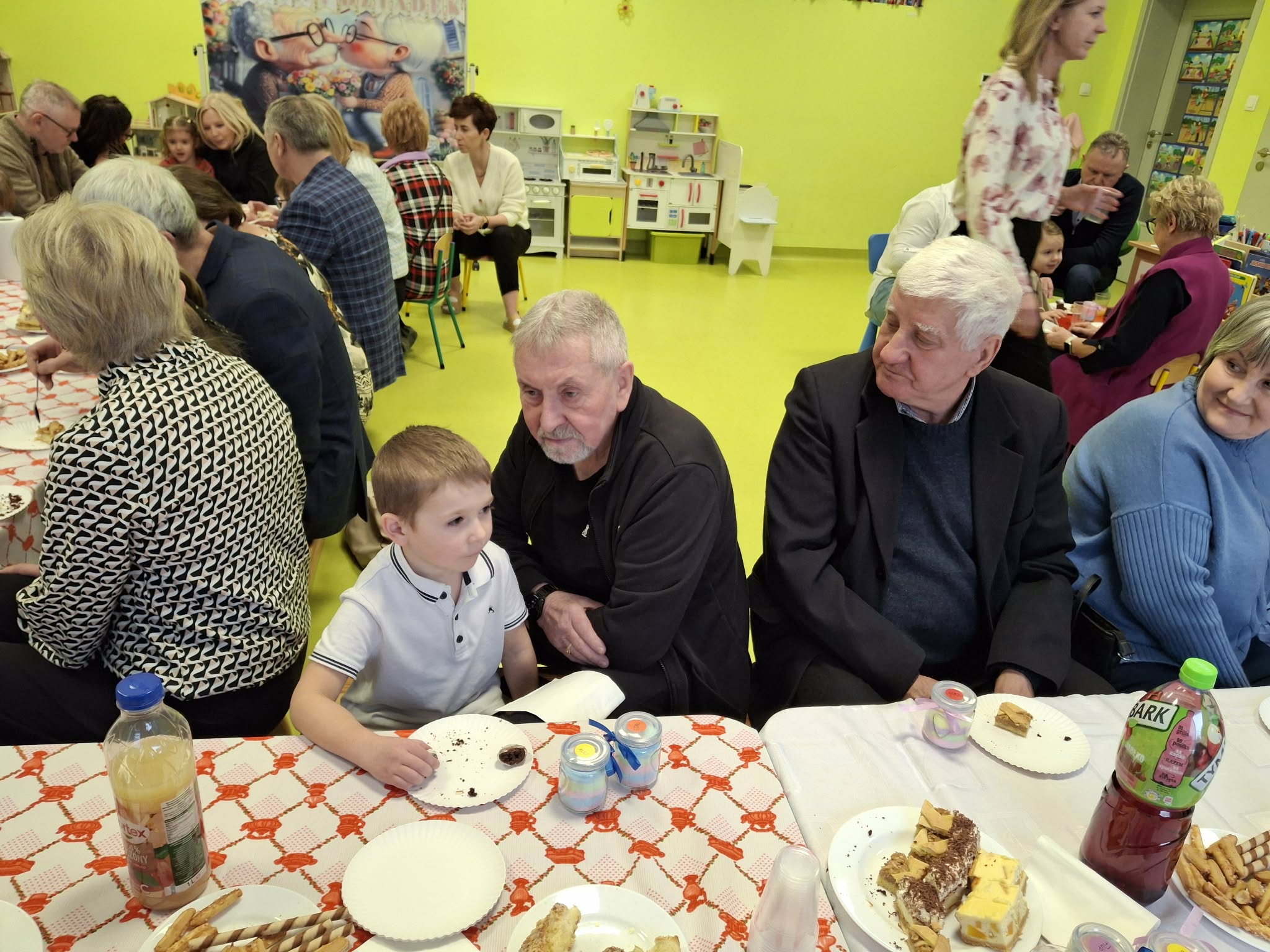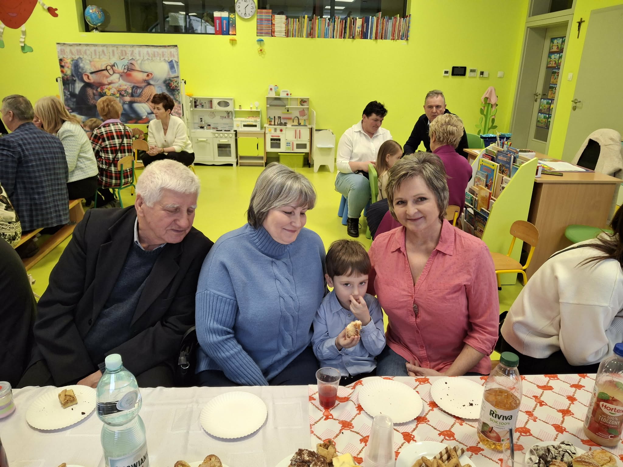 Dzisiaj nasze przedszkole odwiedzili najwspanialsi goście - nasze Babcie i Dziadkowie. Mieliśmy uroczystość z okazji ich święta. Były piosenki, wiersze i tańce. Nie zabrakło też wspólnych fotografii i prezentów. Potem zaprosiliśmy gości na słodki poczęstunek przygotowany przez naszych wspaniałych rodziców oraz panie.