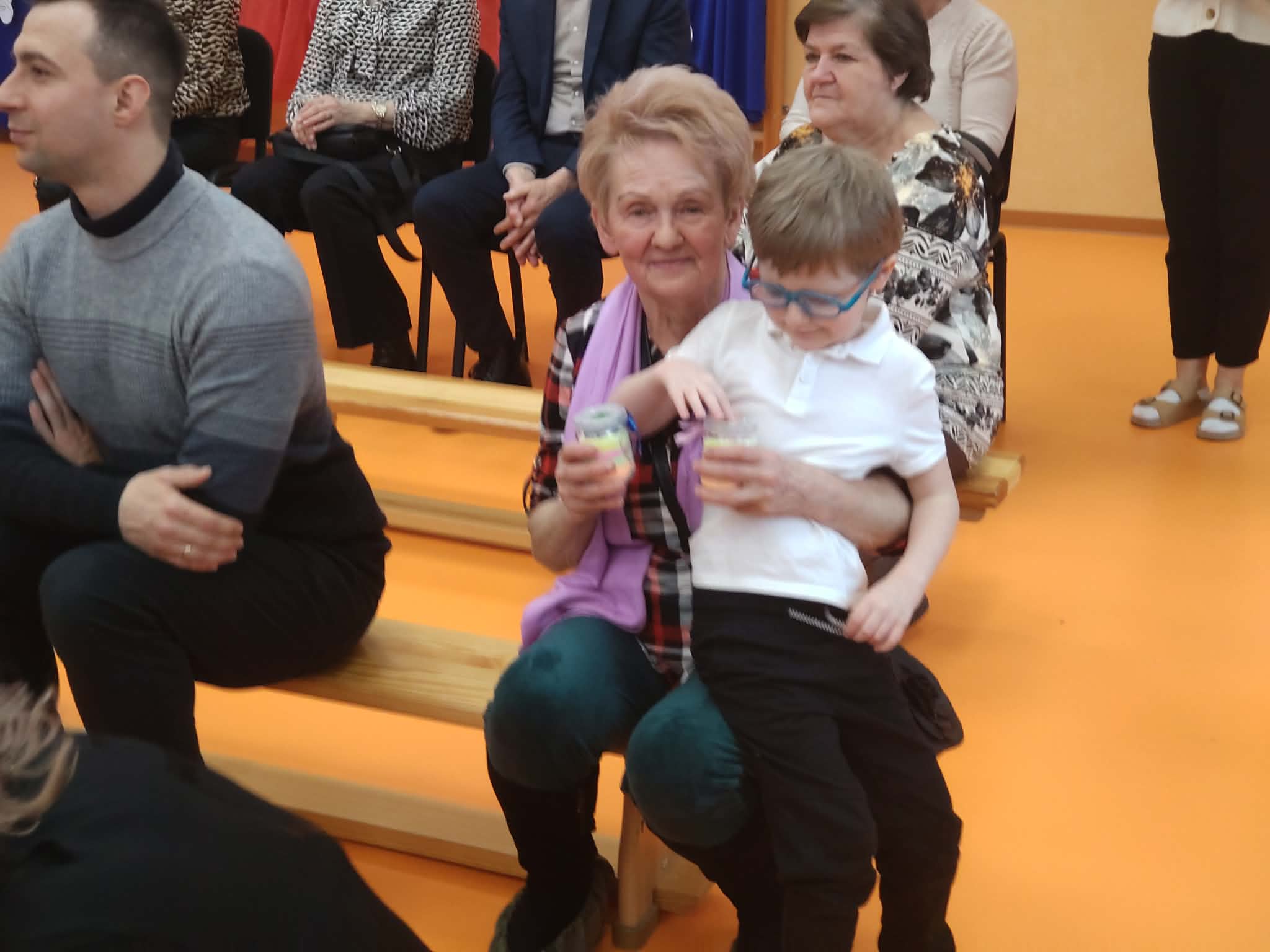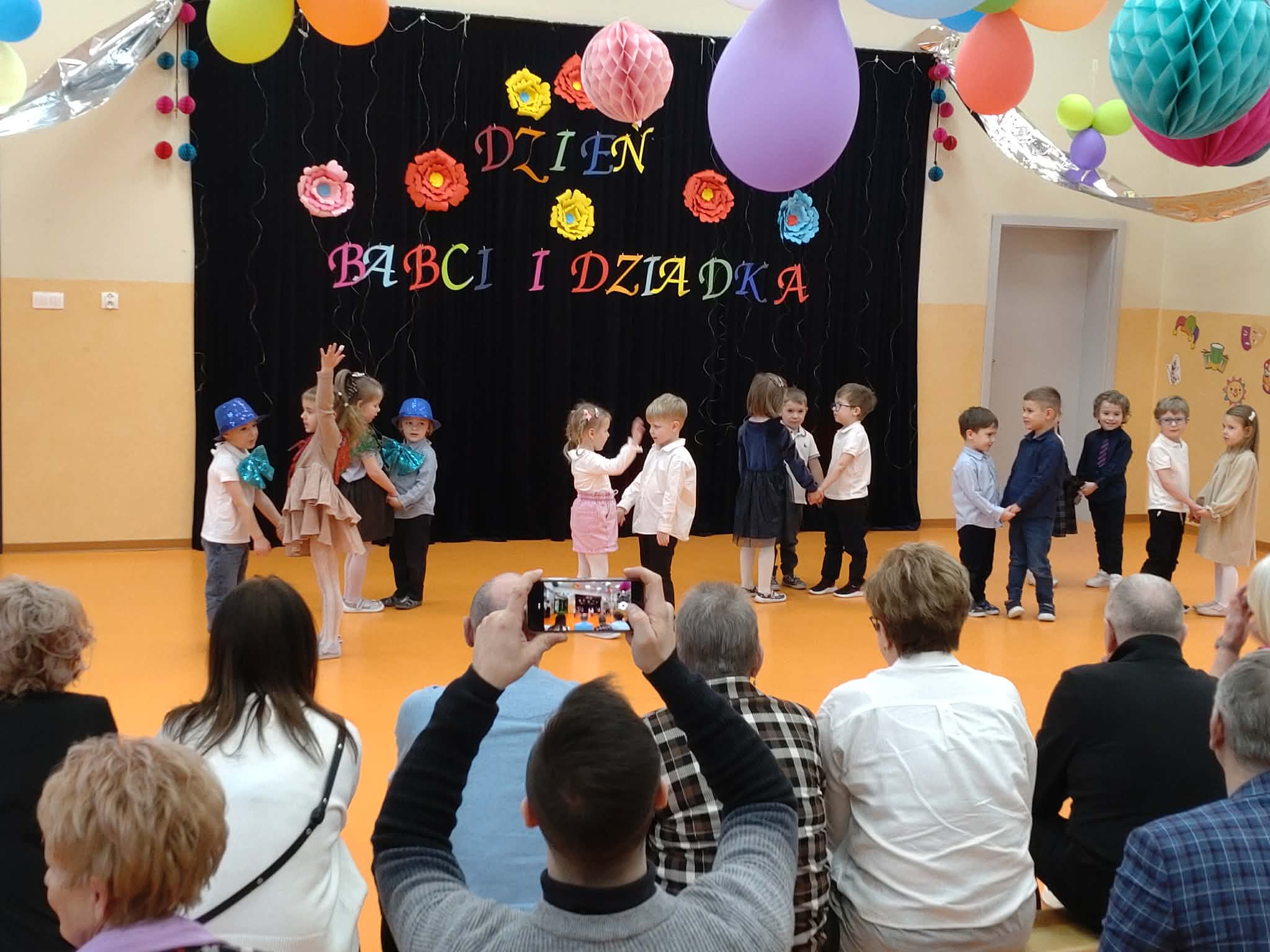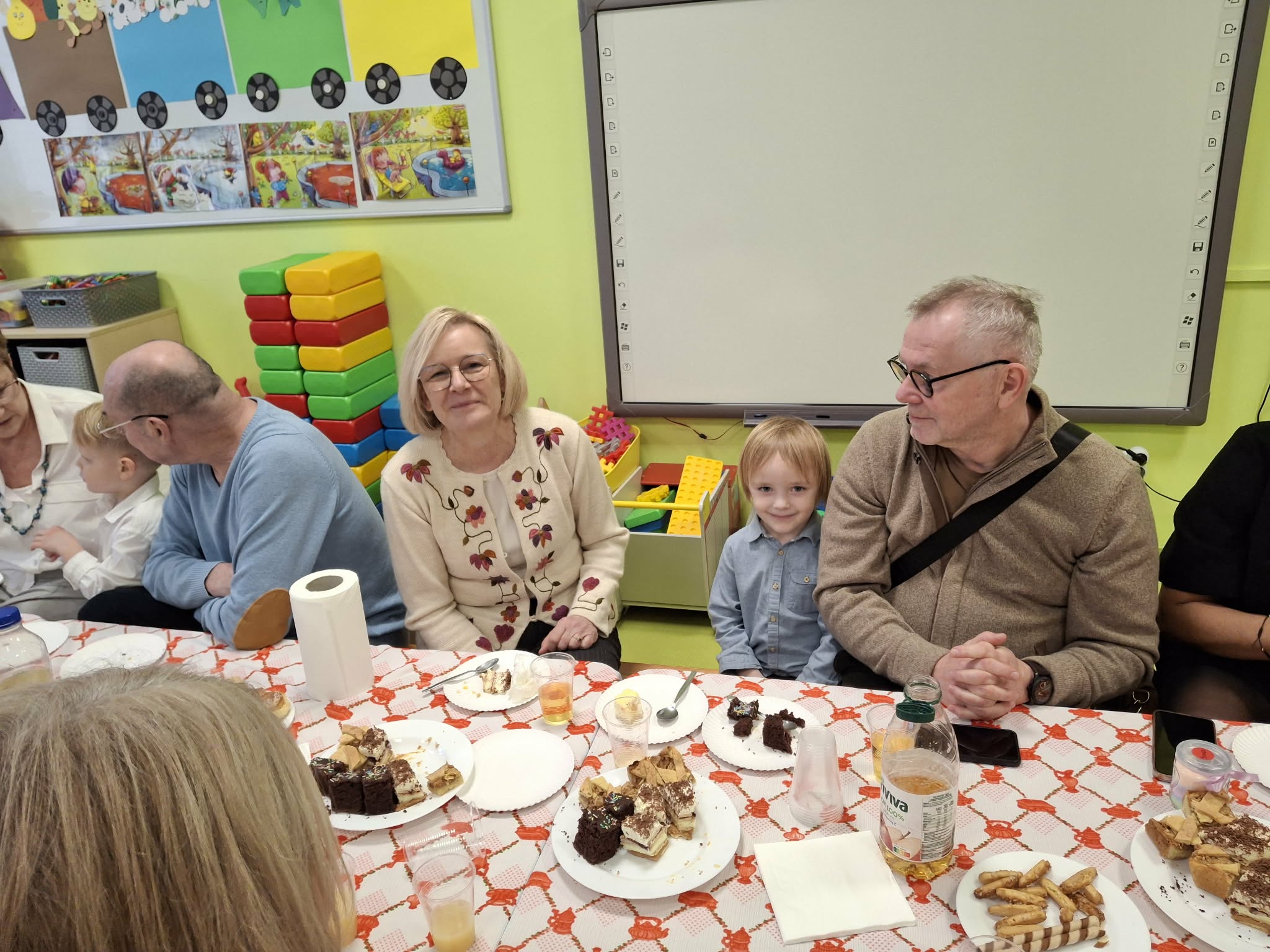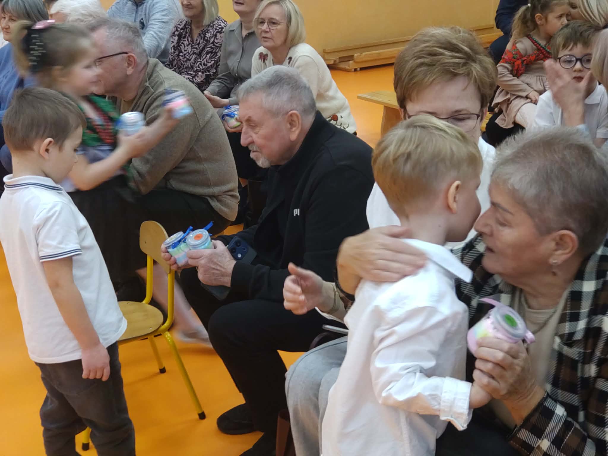 Dzisiaj nasze przedszkole odwiedzili najwspanialsi goście - nasze Babcie i Dziadkowie. Mieliśmy uroczystość z okazji ich święta. Były piosenki, wiersze i tańce. Nie zabrakło też wspólnych fotografii i prezentów. Potem zaprosiliśmy gości na słodki poczęstunek przygotowany przez naszych wspaniałych rodziców oraz panie.