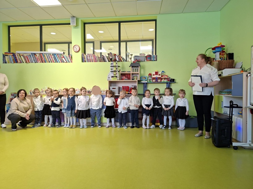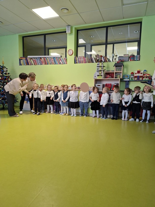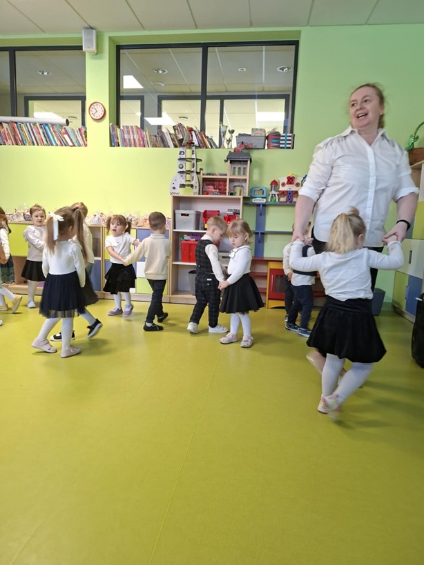W styczniu w przedszkolu odbyła się uroczystość z okazji Dnia Babci i Dziadka. Był to wyjątkowy dzień pełen radości, wzruszeń i wspólnej zabawy. Dzieci przygotowały mini program artystyczny pt.: "Herbatka dla Babci i Dziadka". Na początku mali artyści powitali swoich gości piosenką "Taniec dla Babci i Dziadka", zachęcając wszystkich do aktywnego udziału w zabawie. Następnie dzieci zatańczyły przy piosence "Daj mi rączkę", zaśpiewały utwór "Popatrzcie na Jamniczka" oraz zaprezentowały tradycyjny polski taniec ludowy "Grozik". Kolejnym punktem programu było zaproszenie babć i dziadków do wspólnego tańca, zrobiło się gwarnie, radośnie i bardzo wesoło. Wychowankowie złożyli swoim bliskim serdecznie życzenia w formie wiersza, a następnie wręczyli upominki, przygotowane specjalnie dla babci i dziadka. Na zakończenie wszyscy goście zostali zaproszeni na mały poczęstunek. Uroczystość wzruszyła oraz mile zaskoczyła naszych wyjątkowych gości, pozostawiając wiele pięknych wspomnień.