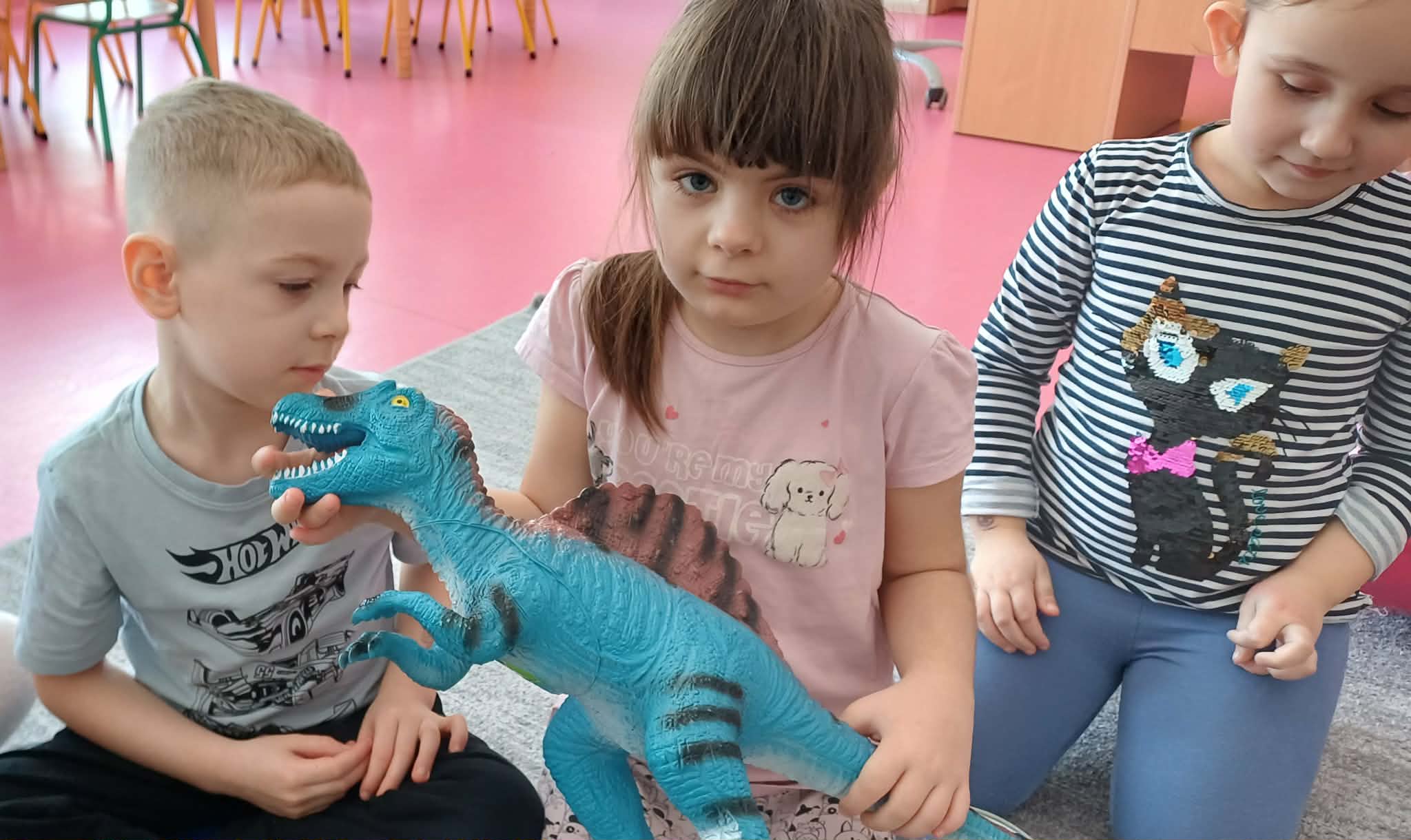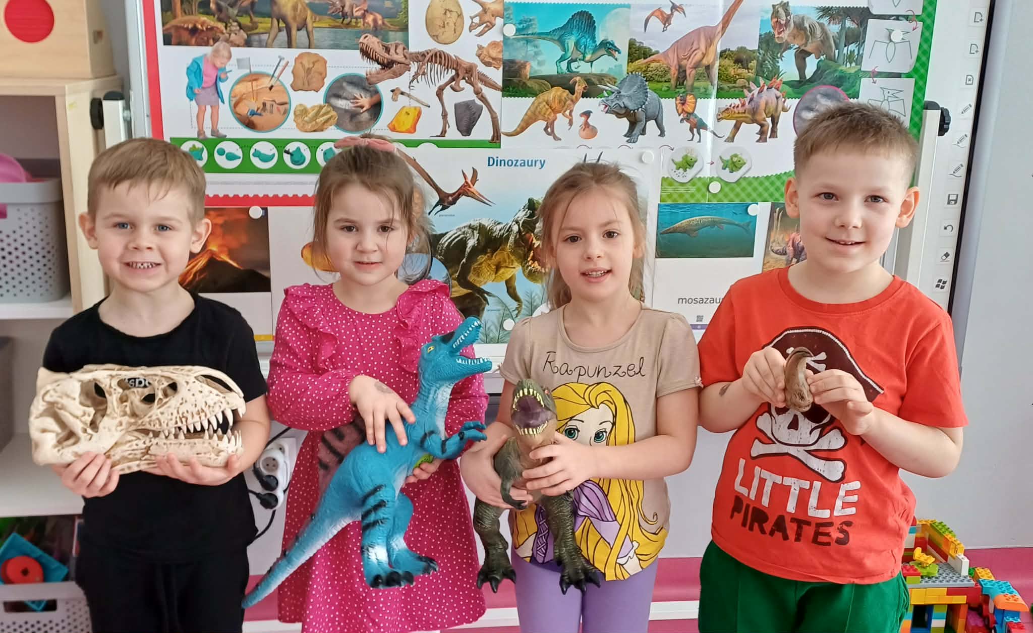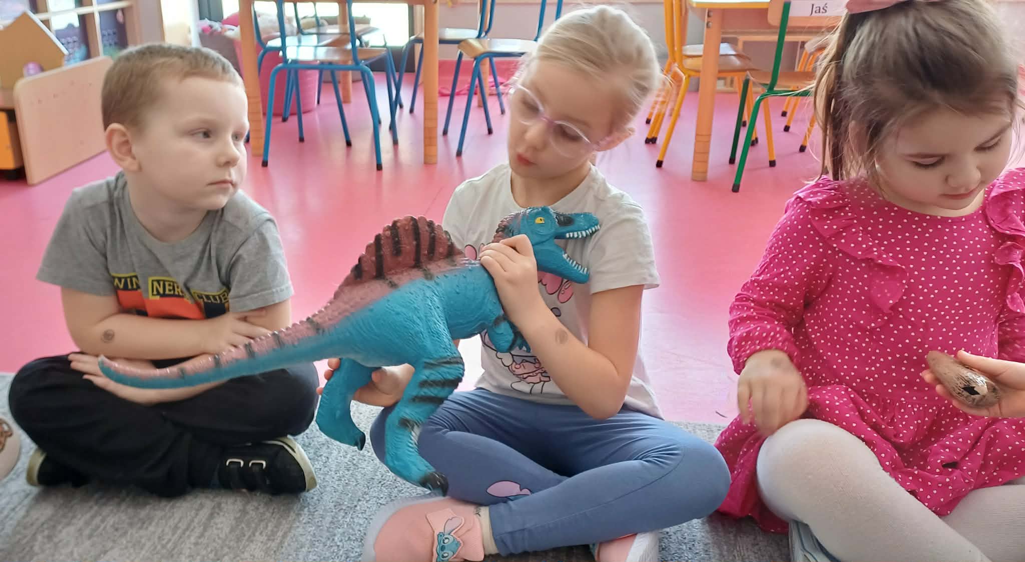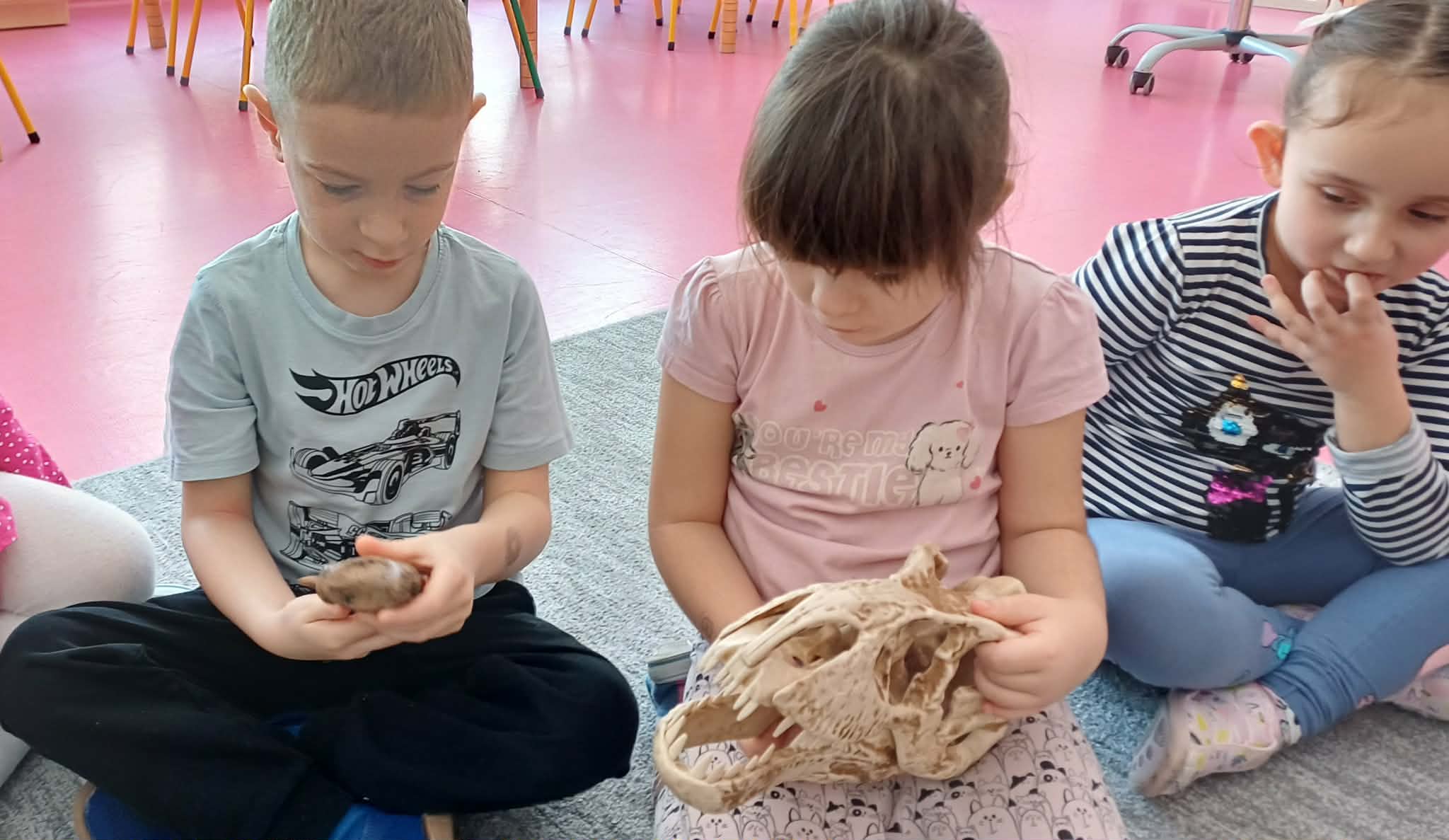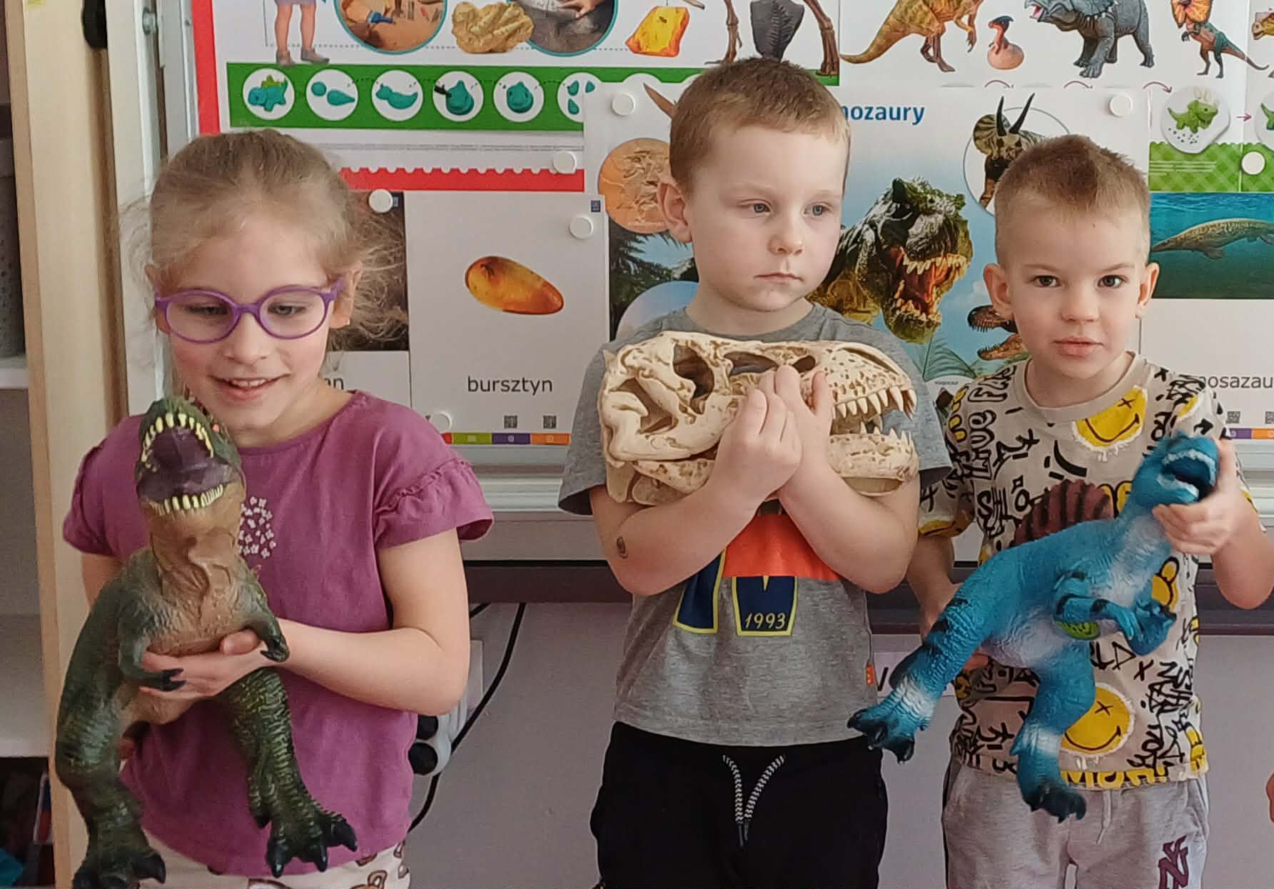 W dniu dinozaura dzieci poznały prehistoryczny świat. Gatunki dinozaurów ich sposób życia. Obejrzały eksponaty: czaszkę i pazur wielkich gadów.