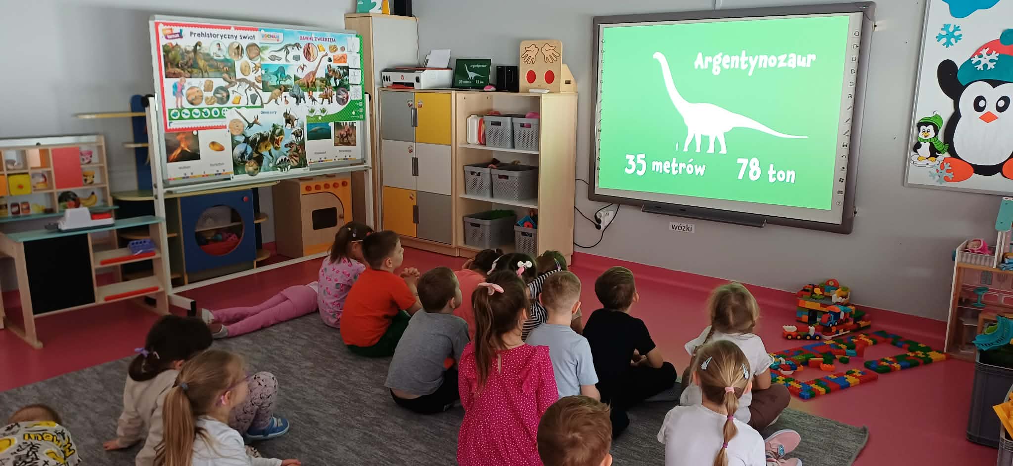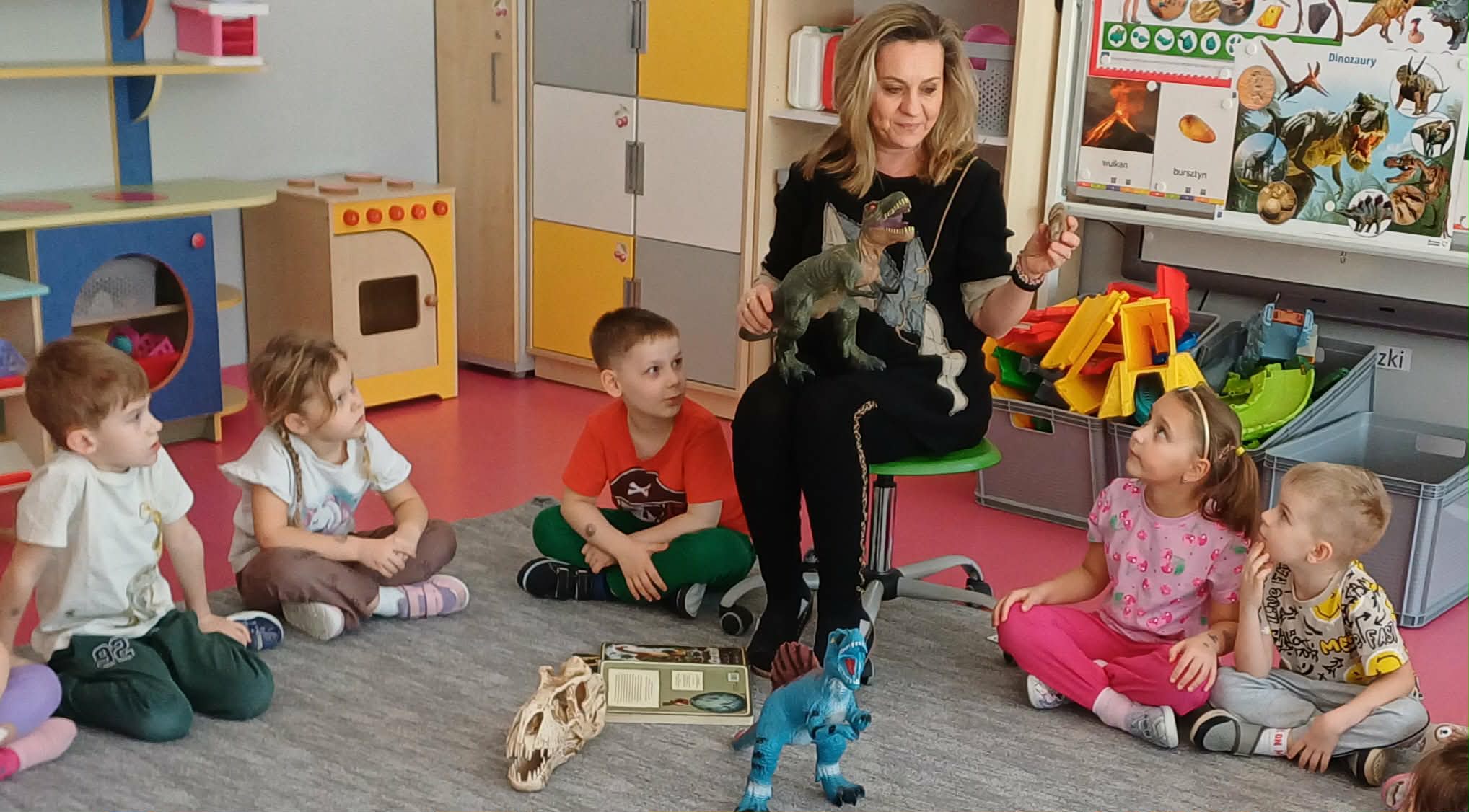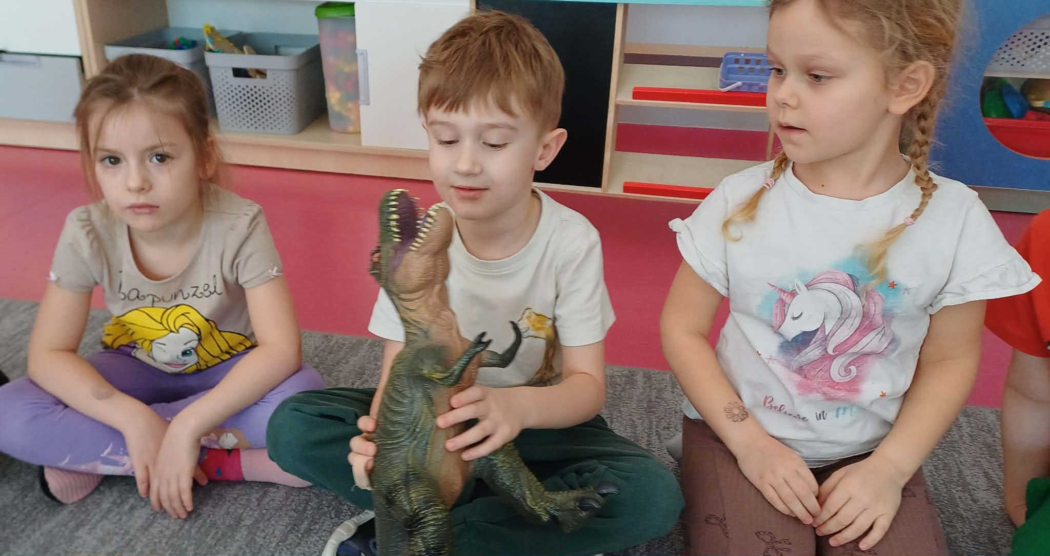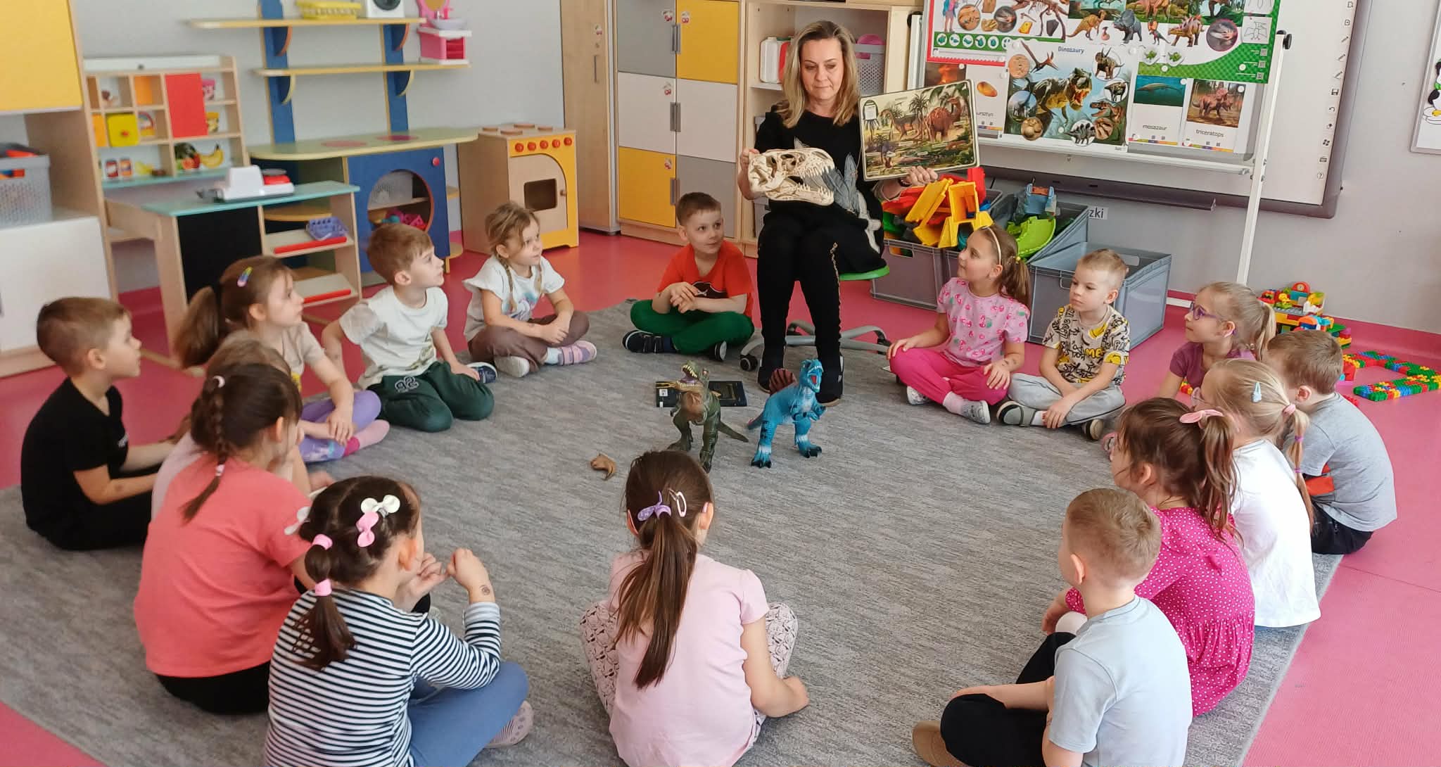 W dniu dinozaura dzieci poznały prehistoryczny świat. Gatunki dinozaurów ich sposób życia. Obejrzały eksponaty: czaszkę i pazur wielkich gadów.