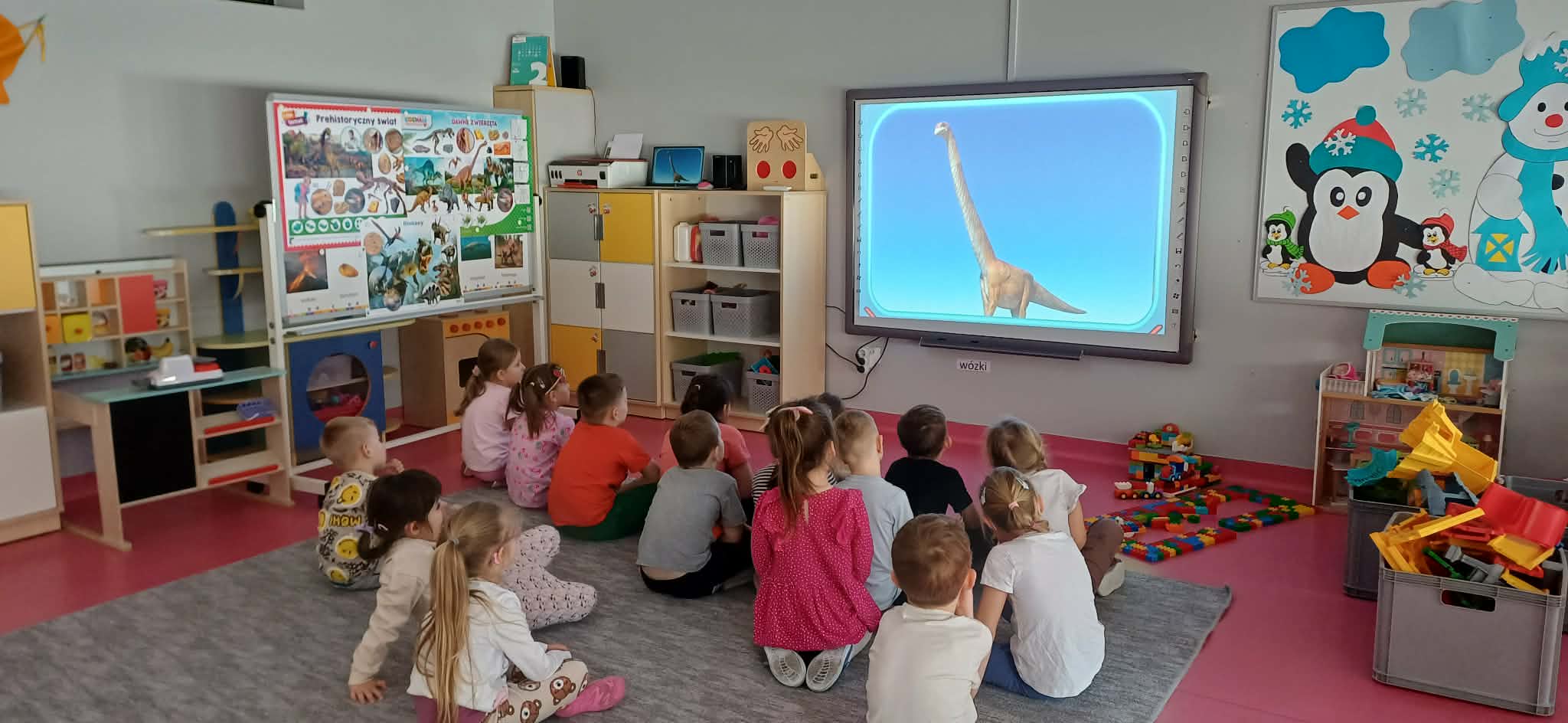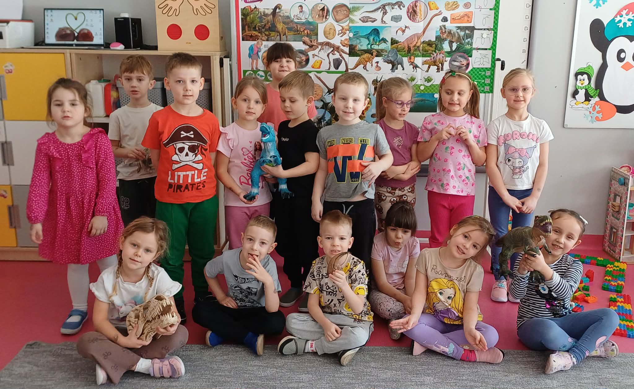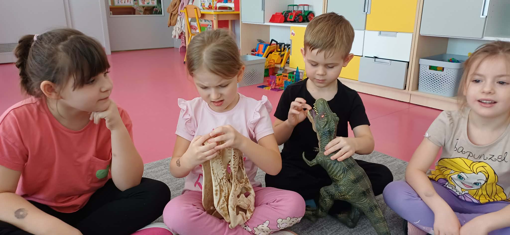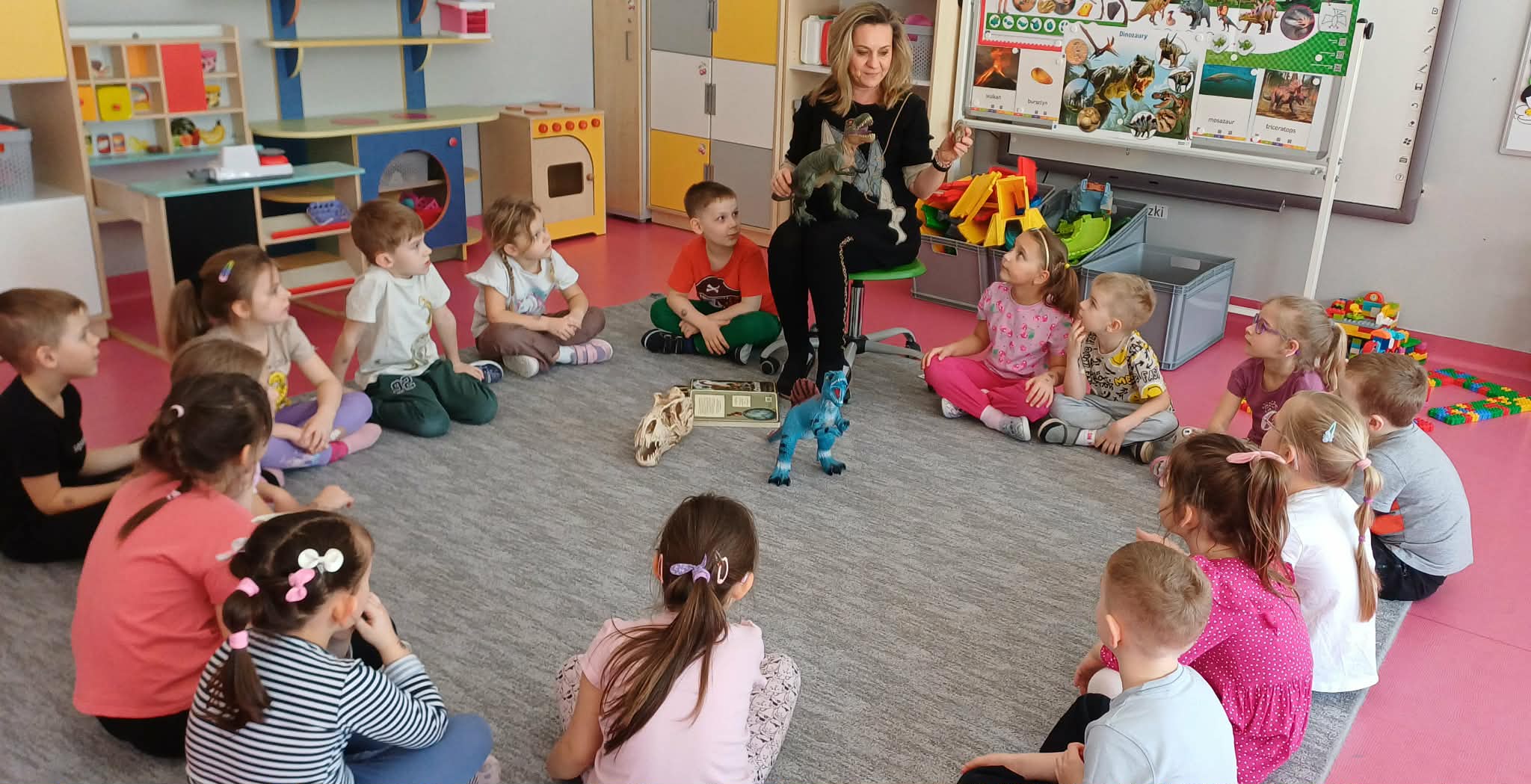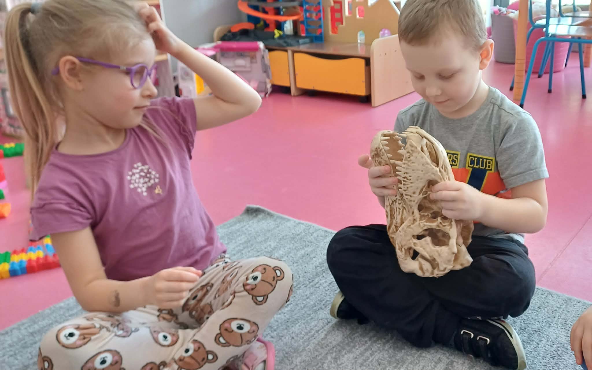 W dniu dinozaura dzieci poznały prehistoryczny świat. Gatunki dinozaurów ich sposób życia. Obejrzały eksponaty: czaszkę i pazur wielkich gadów.