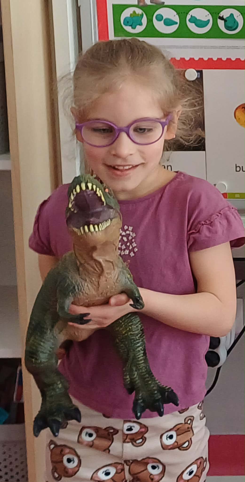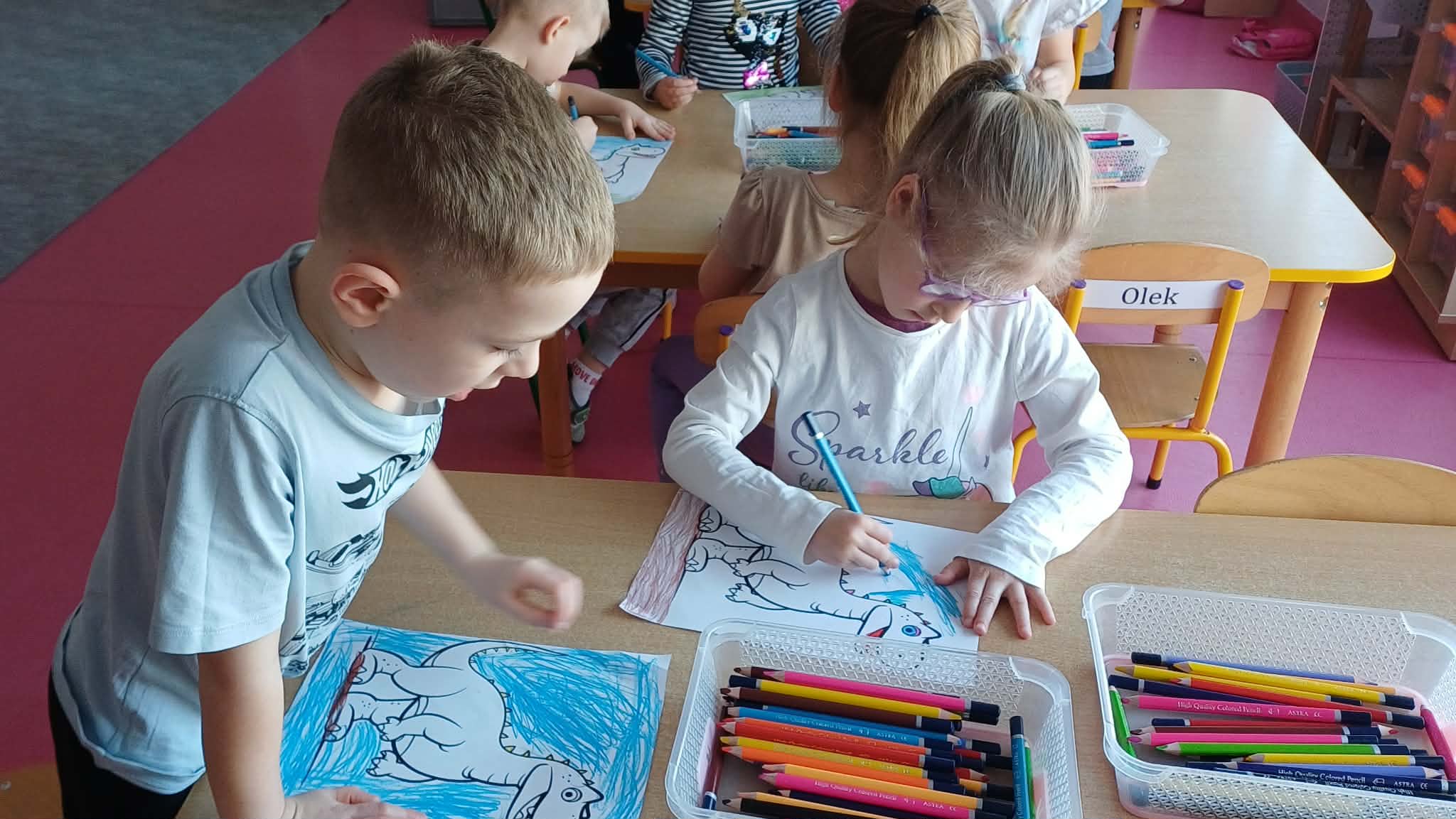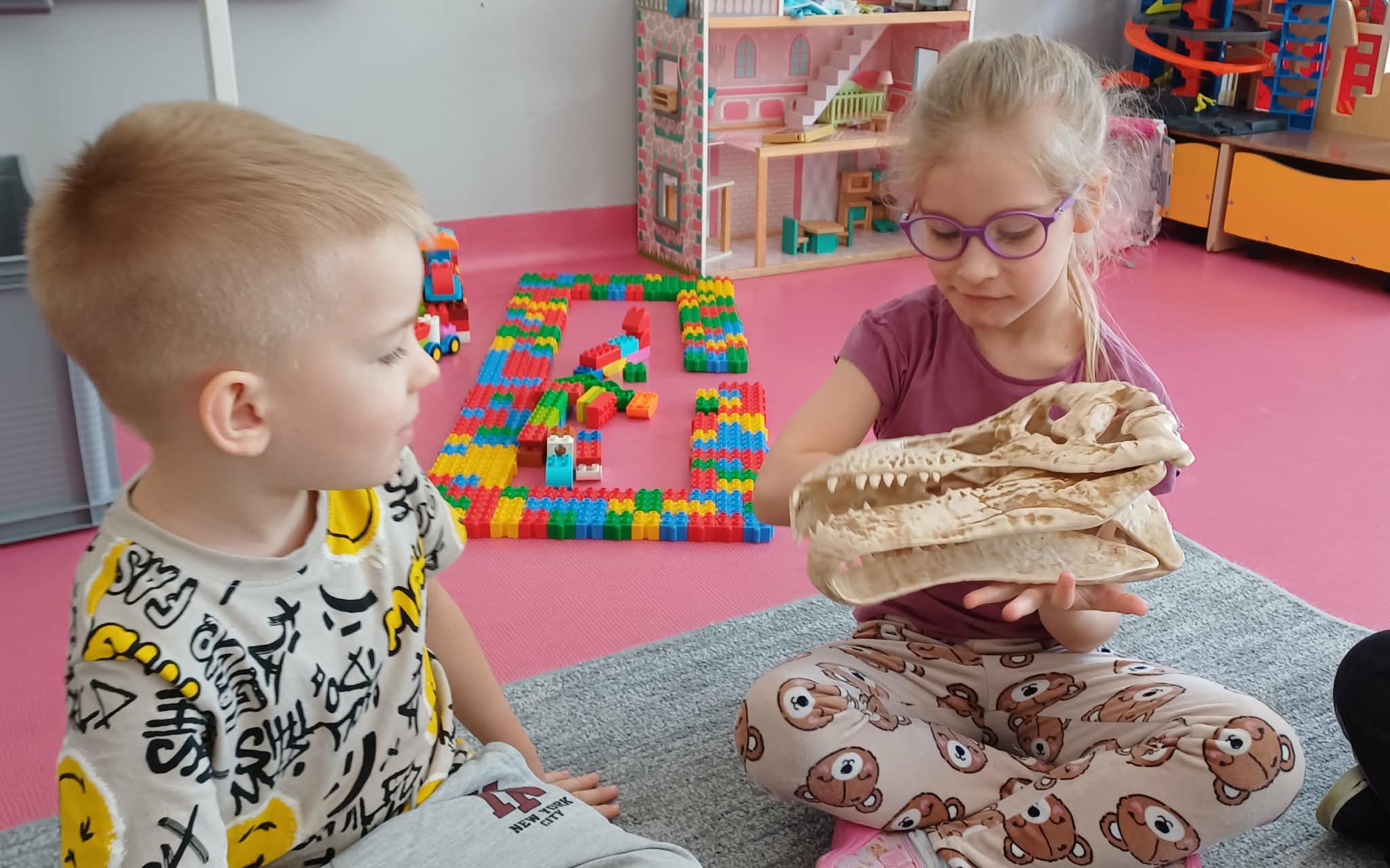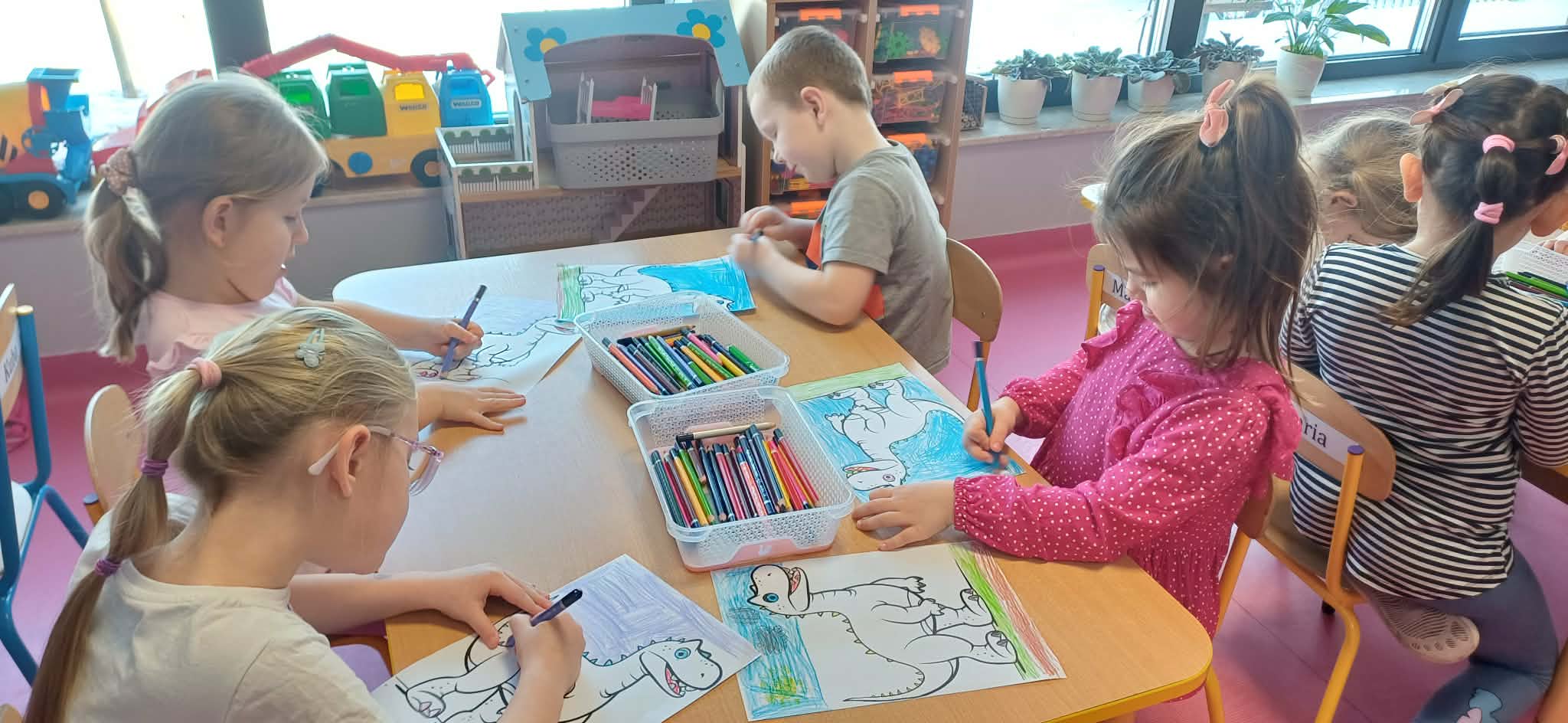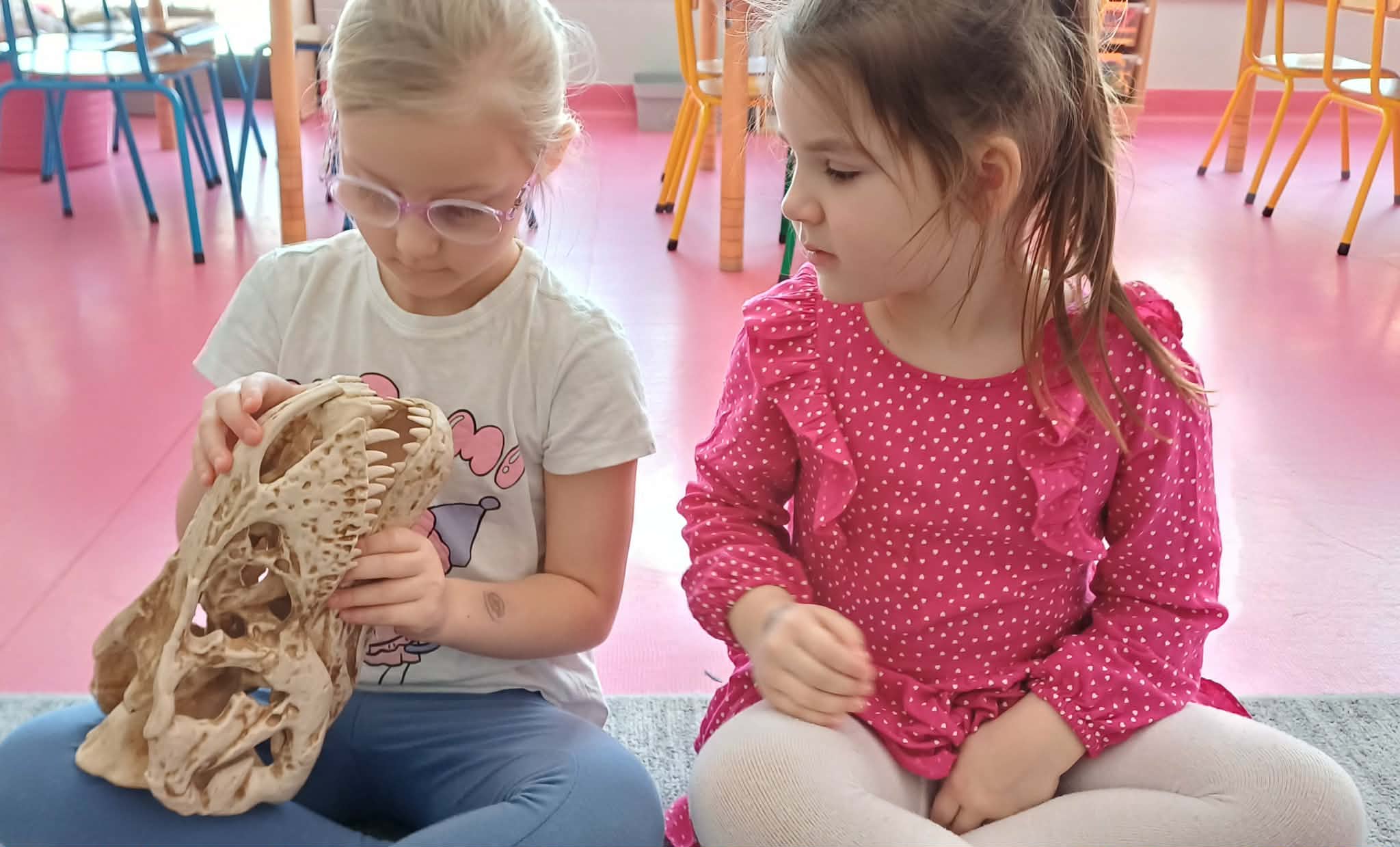 W dniu dinozaura dzieci poznały prehistoryczny świat. Gatunki dinozaurów ich sposób życia. Obejrzały eksponaty: czaszkę i pazur wielkich gadów.