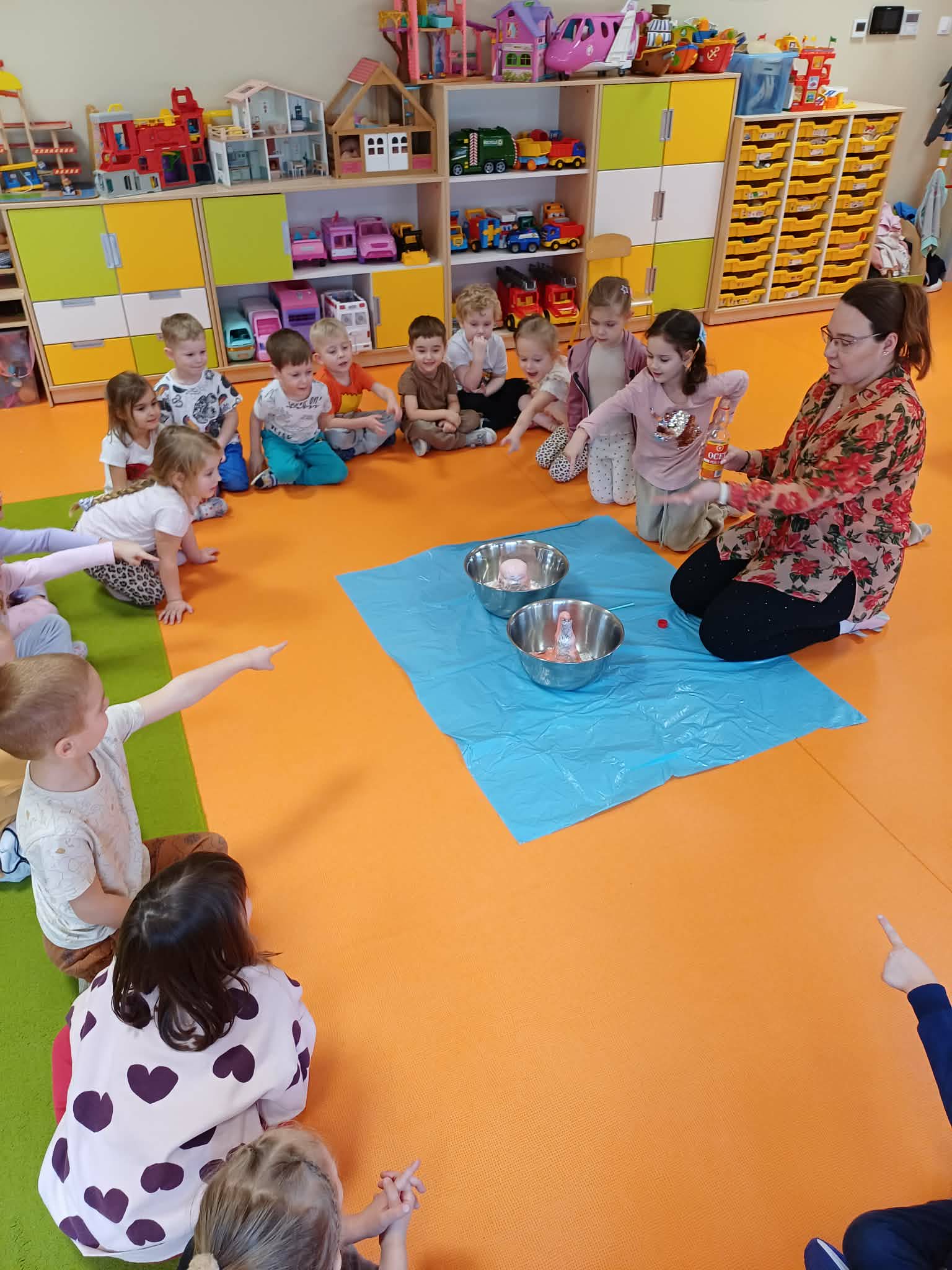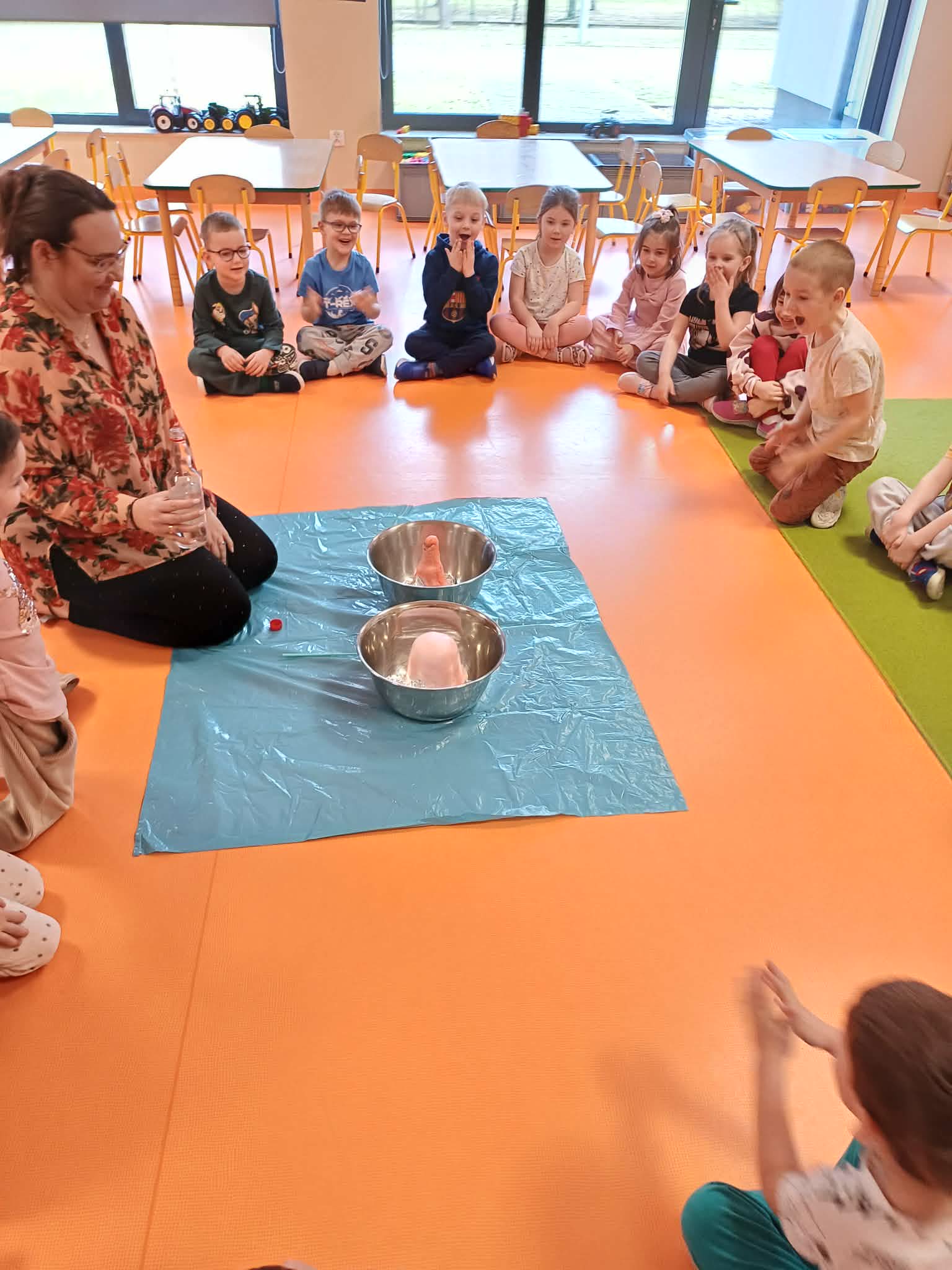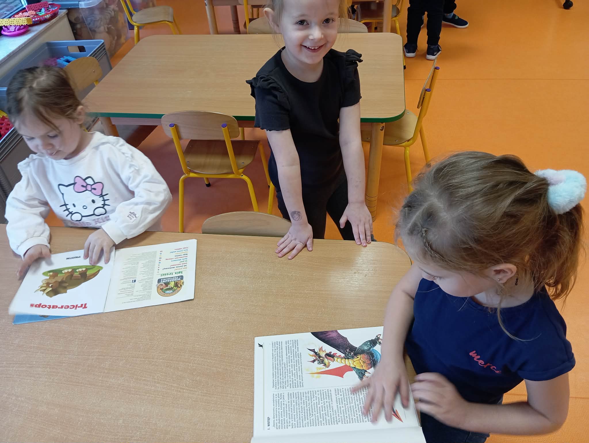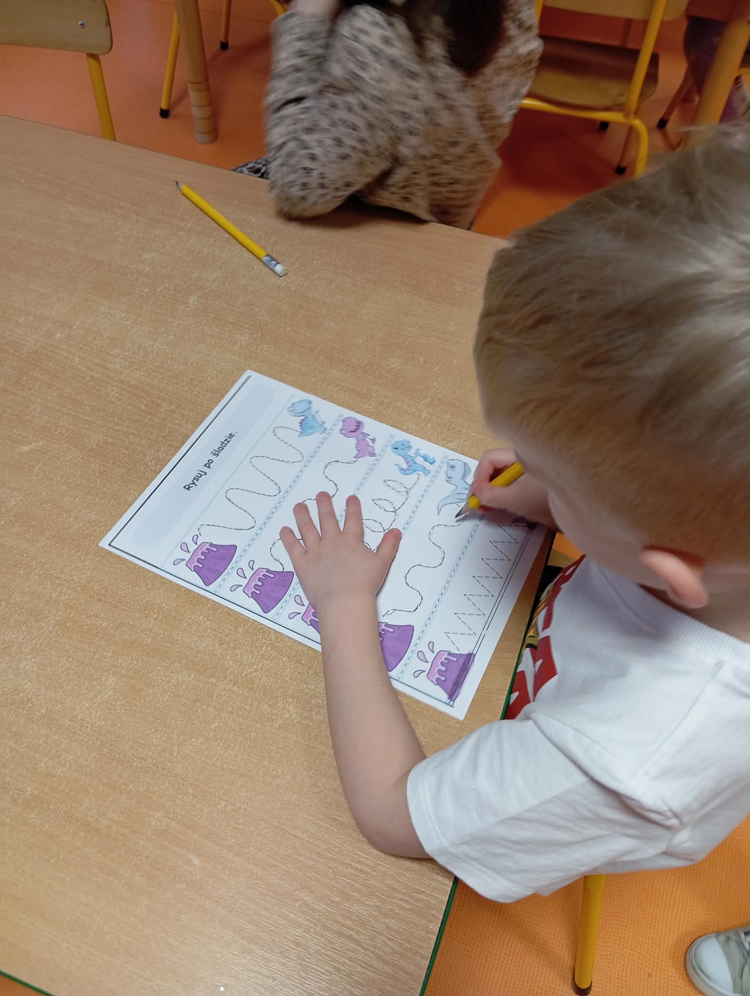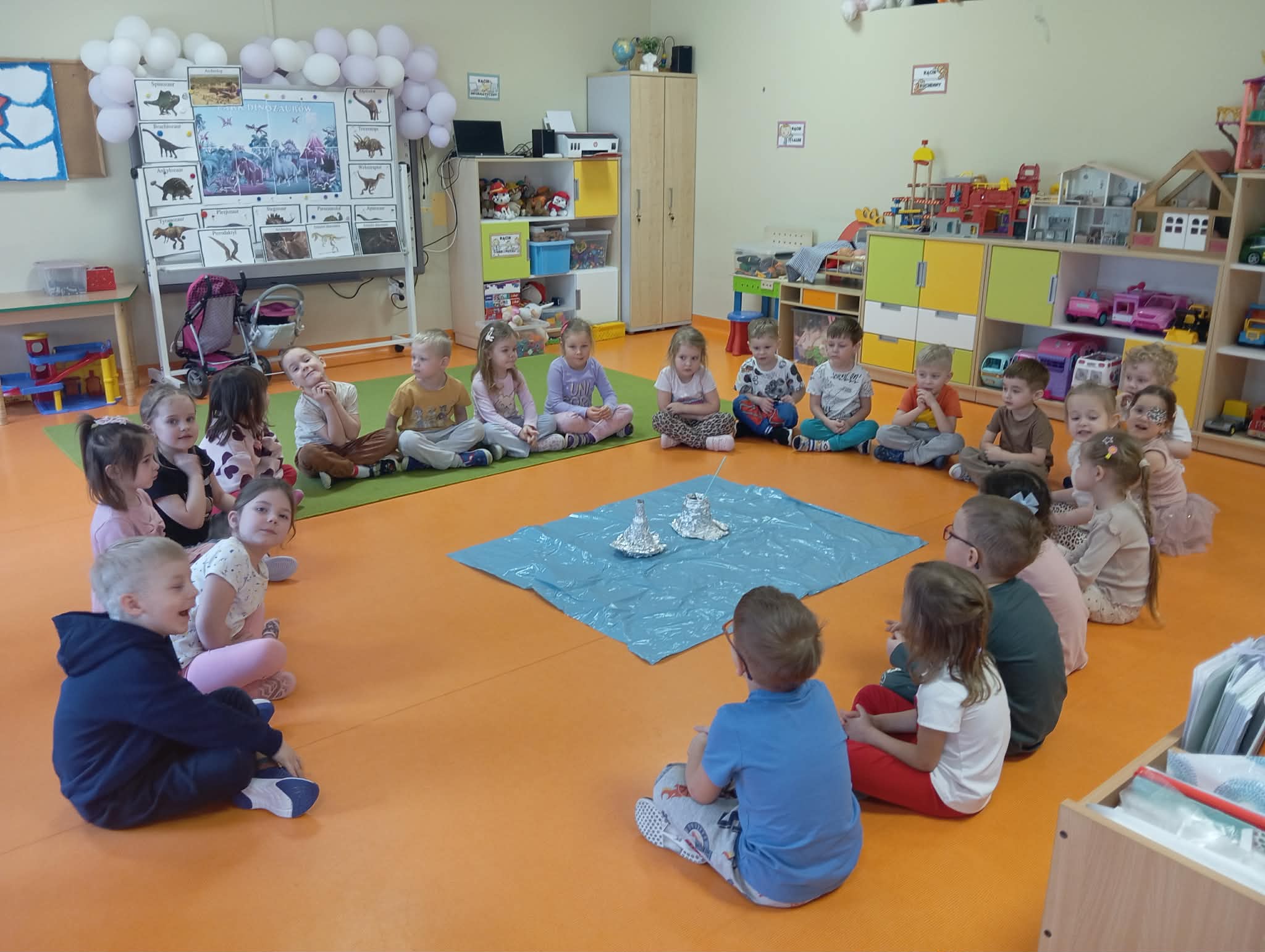 Cały ostatni tydzień poświeciliśmy w Morelkach na omówienie tematyki pradawnych czasów - dinozaury. Oprócz przypomnienia nazw, omówienia wyglądu dinozaurów, dzieci wykonywały szereg czynności edukacyjnych. Dopasowywały sylwety dinozaurów, robiły ćwiczenia grafomotoryczne, układały puzzle. Wykonaliśmy dwa eksperymenty - jajko w occie oraz to, co dzieciom podobało się najbardziej - erupcja wulkanu. Dzieci chętnie przynosiły swoje zabawki, związane z tematem tygodnia. Okazało się, ze mamy w naszej grupie wiernego fana tematu dinozaurów, zna się na temacie lepiej niż jeden naukowiec.