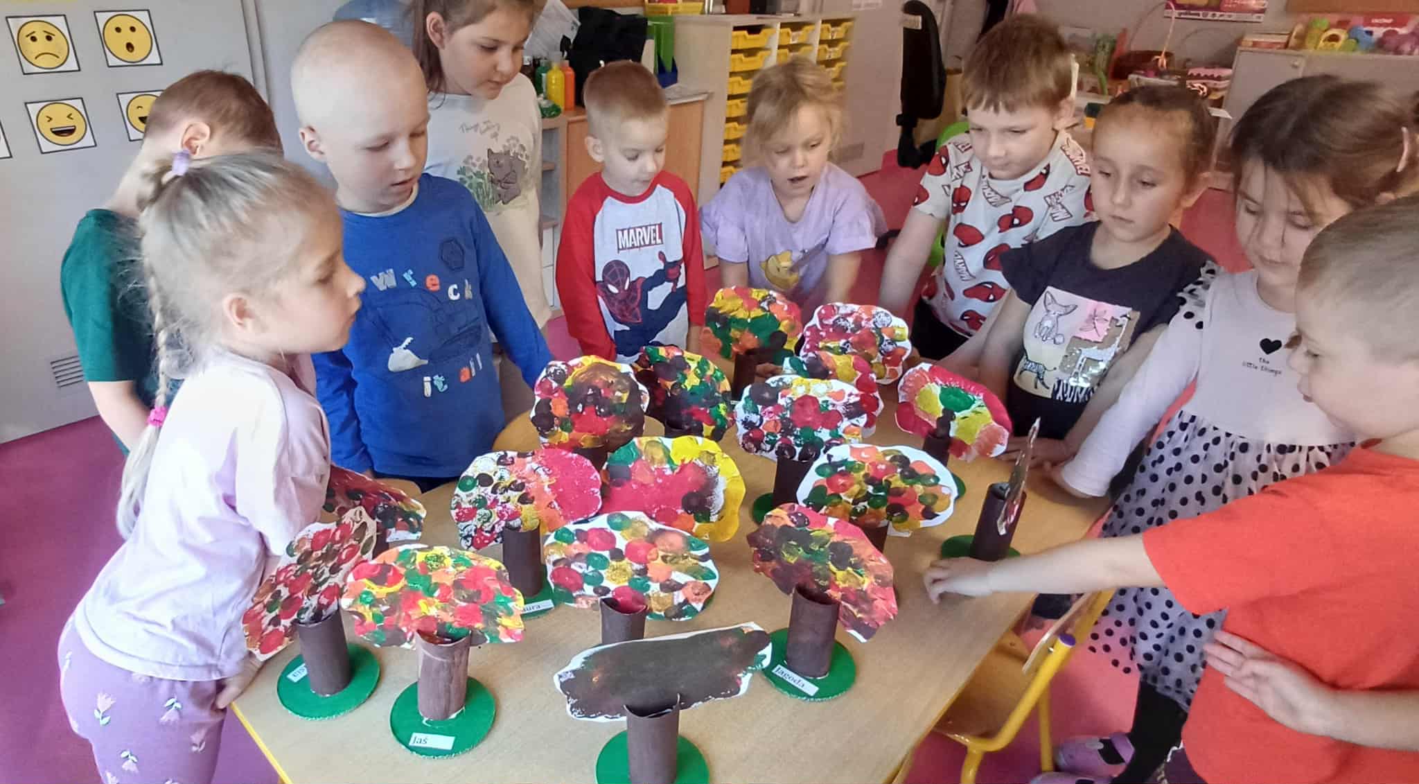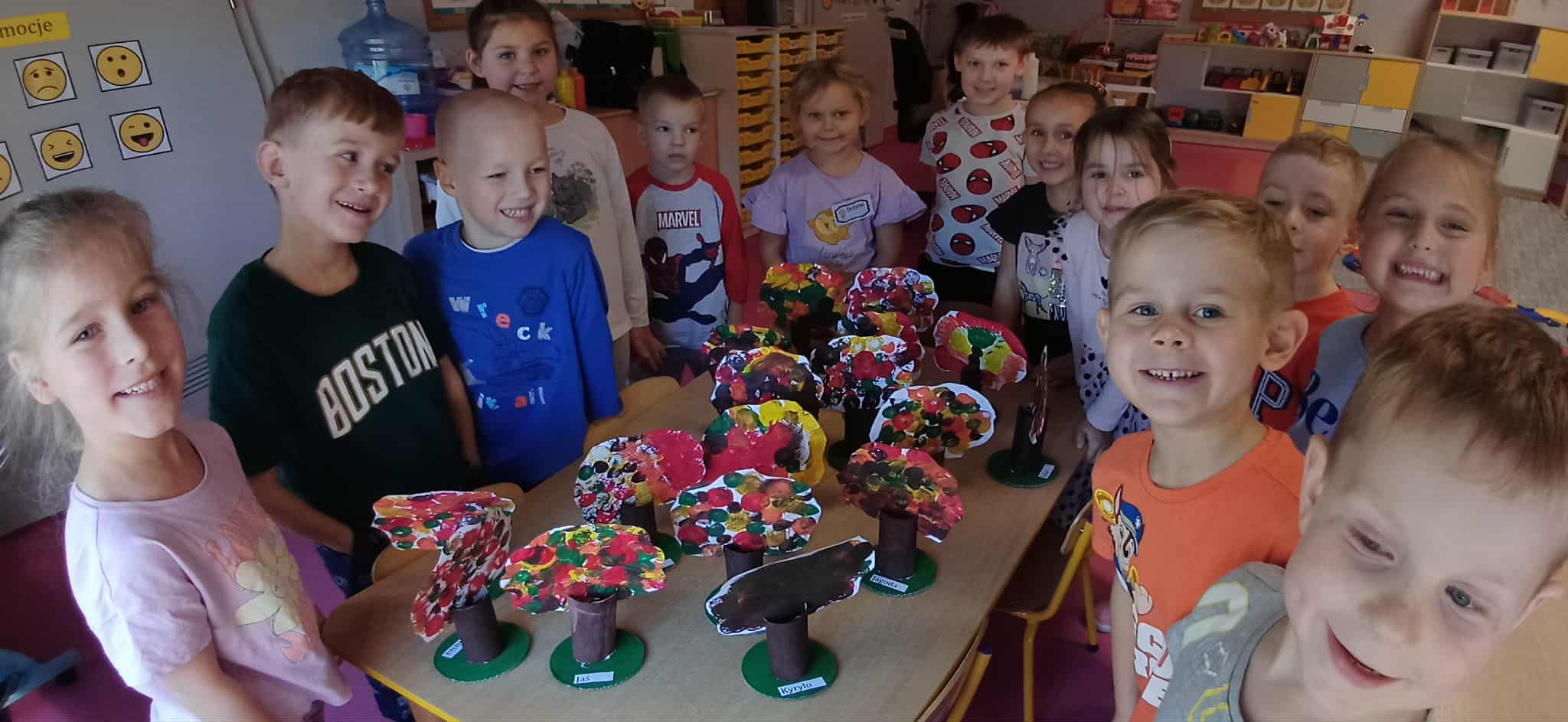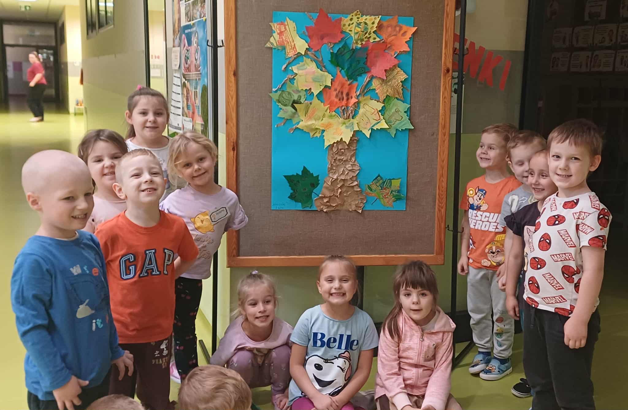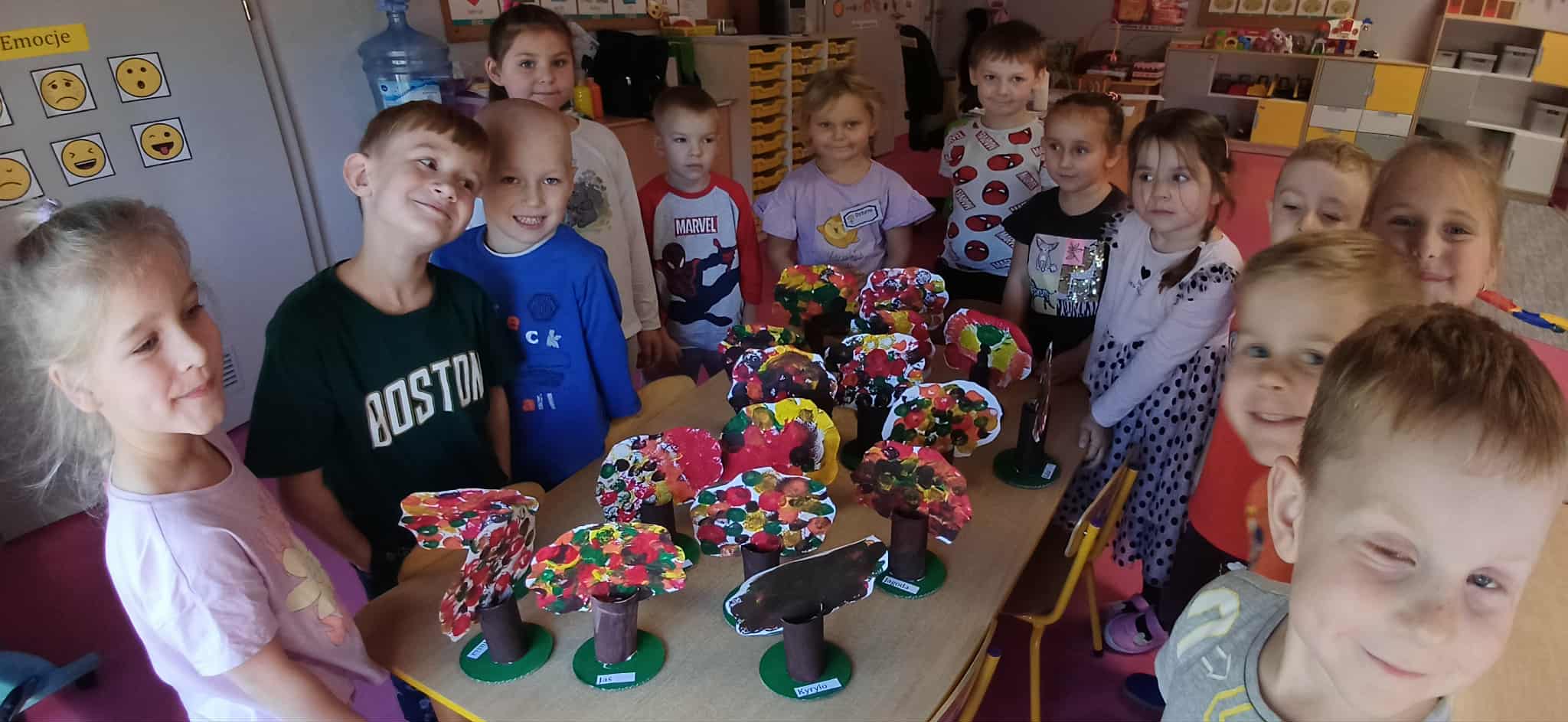 Wisienki dowiedziały się dziś, dlaczego świętujemy dzień drzewa, czemu drzewa są tak ważne w przyrodzie i dlaczego trzeba o nie dbać. Dzieci wykonały również makietę jesiennego lasu i grupowe drzewo różnorodności.