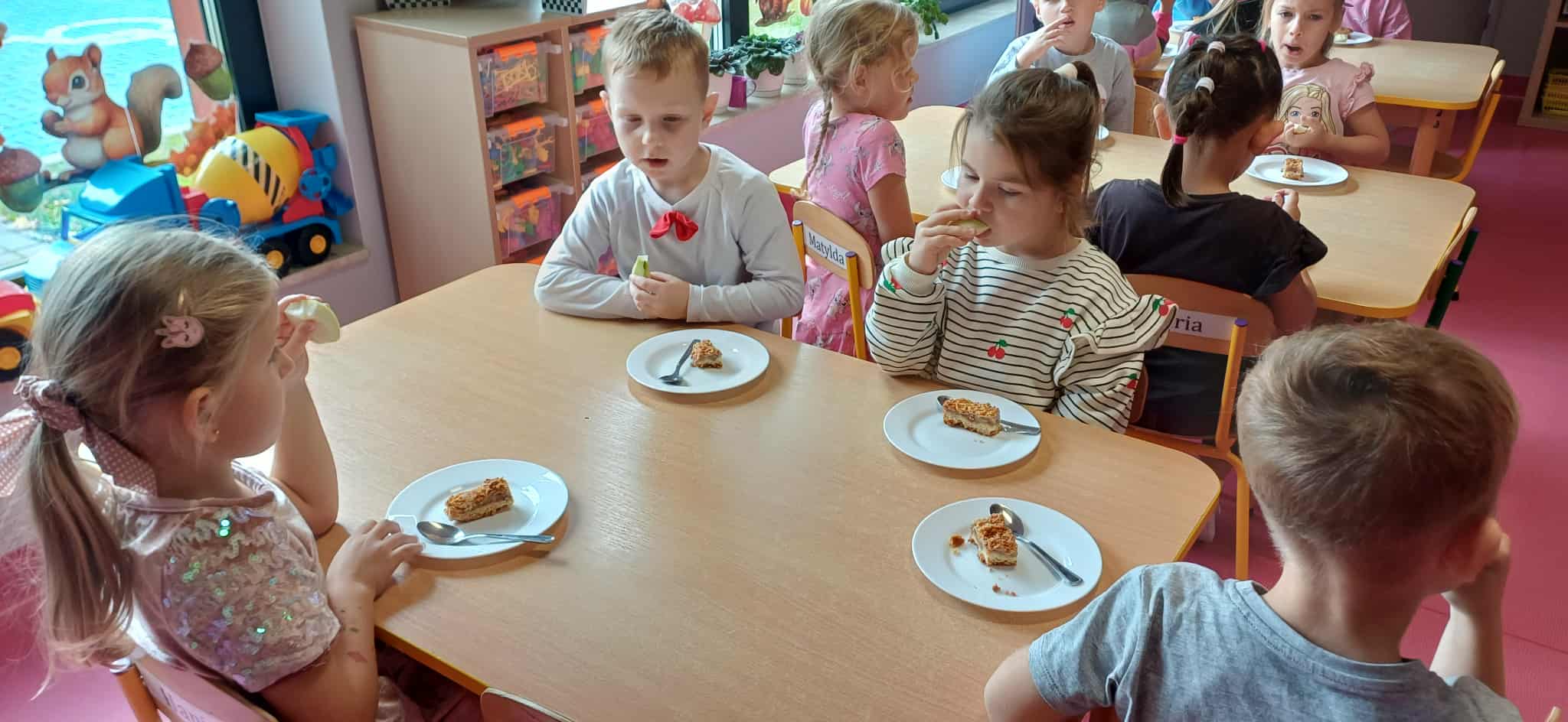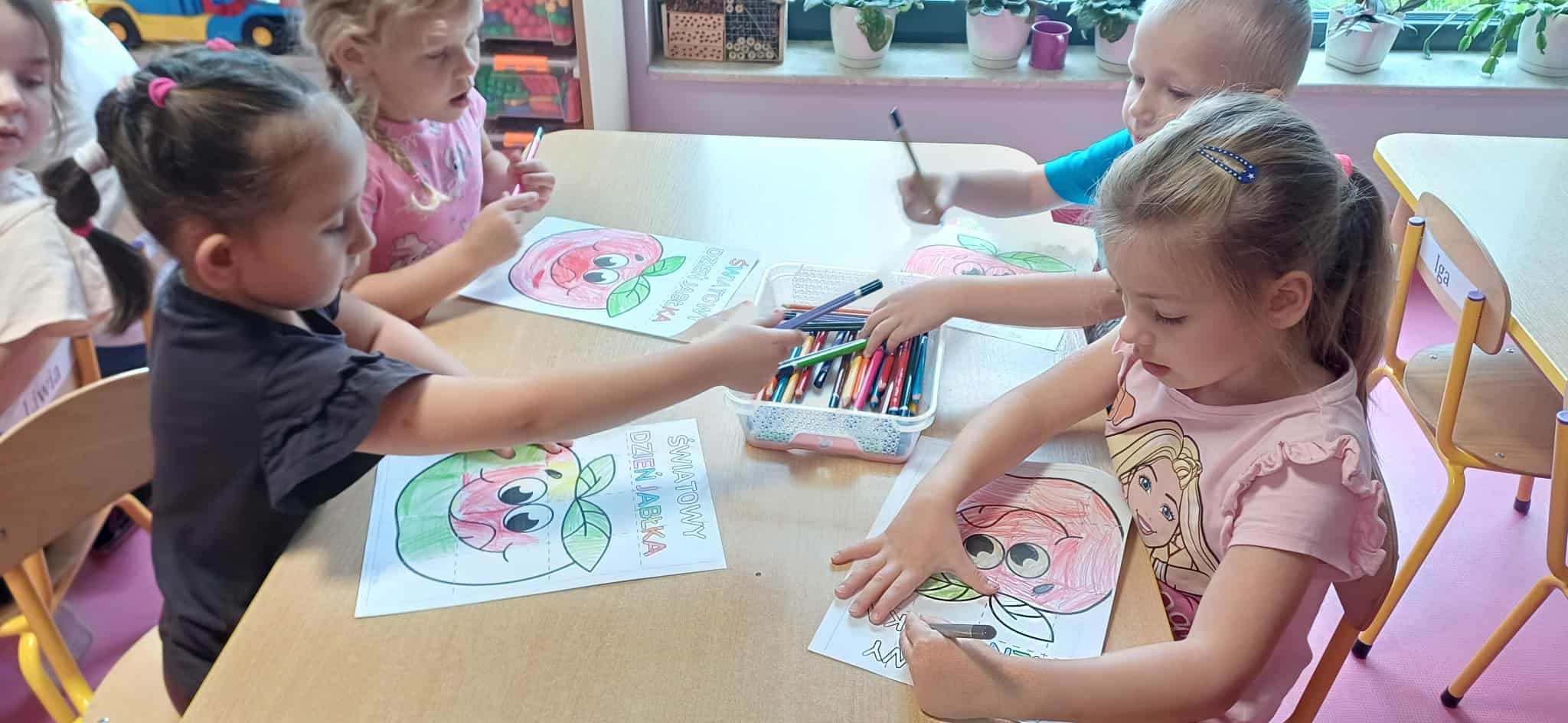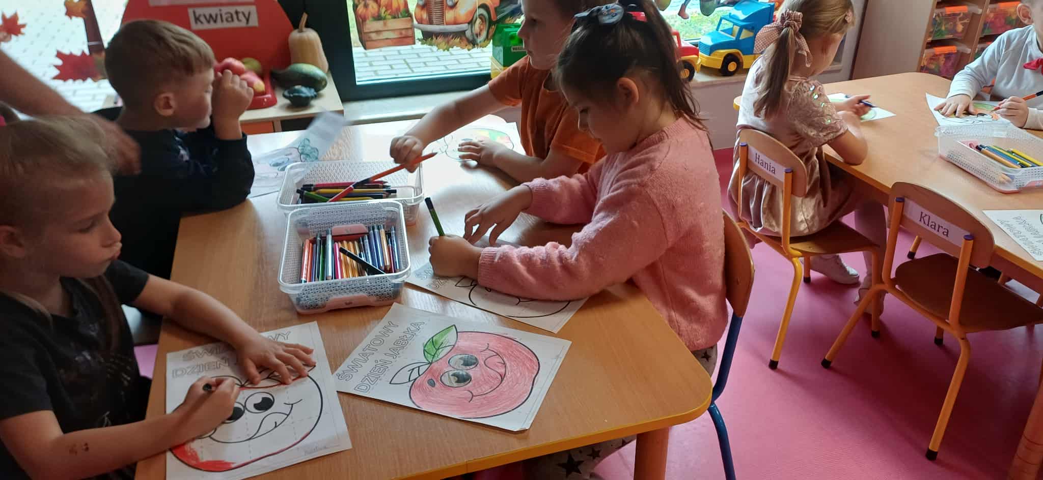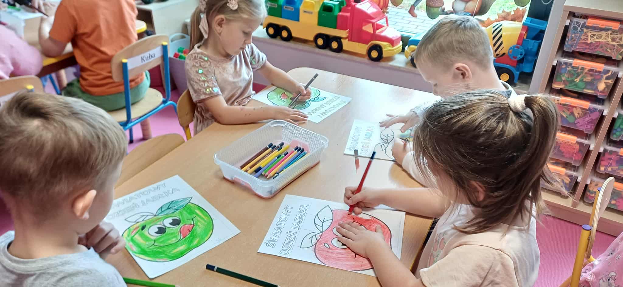Dziś dowiedzieliśmy się wielu ciekawych rzeczy na temat jabłka. W jaki sposób rośnie, jakie ma kolory, gdzie można je spotkać i dlaczego jest zdrowe. Poznaliśmy również wiele ciekawych zabaw związanych z "jabłuszkiem" i mieliśmy okazję go posmakować pod różną postacią.
