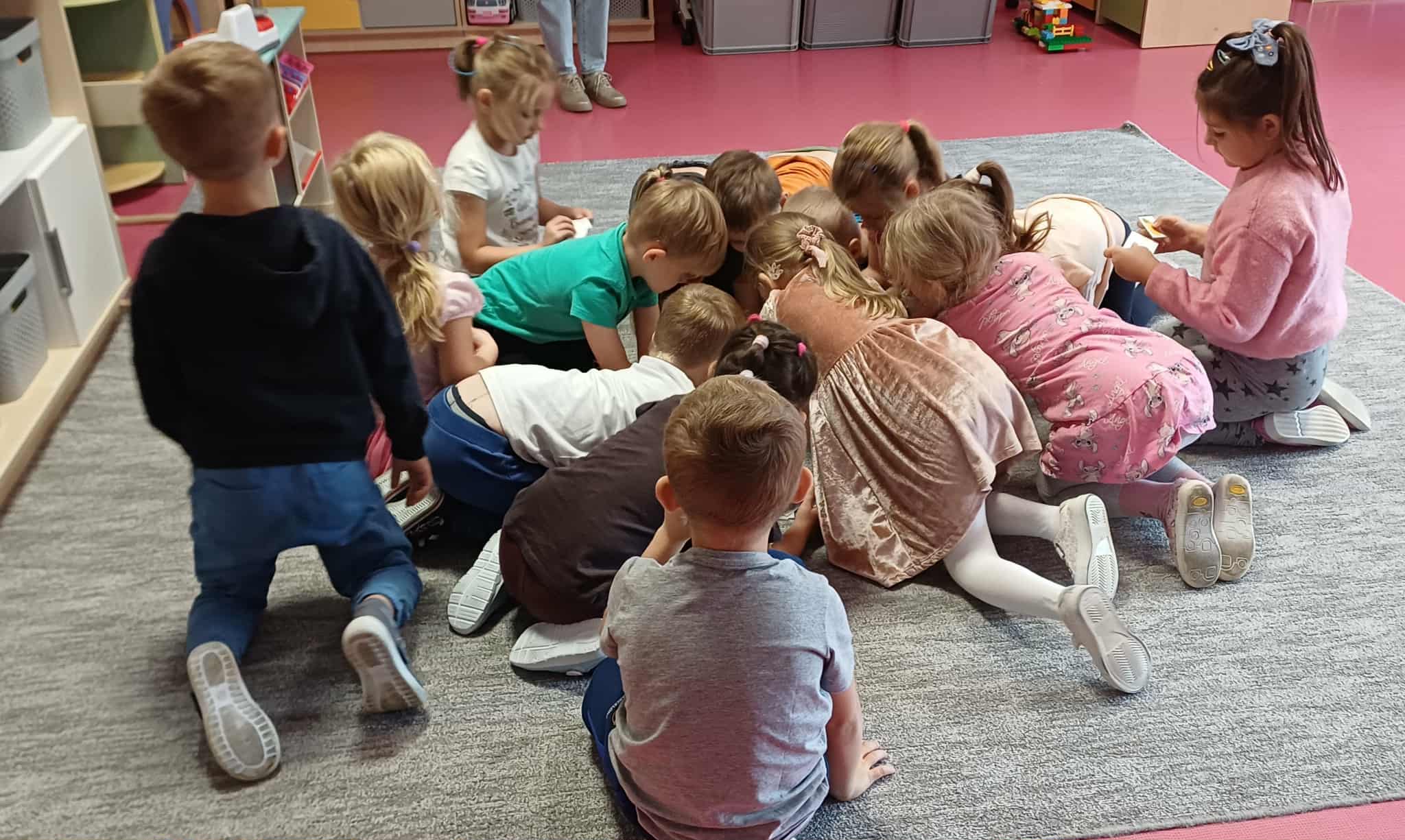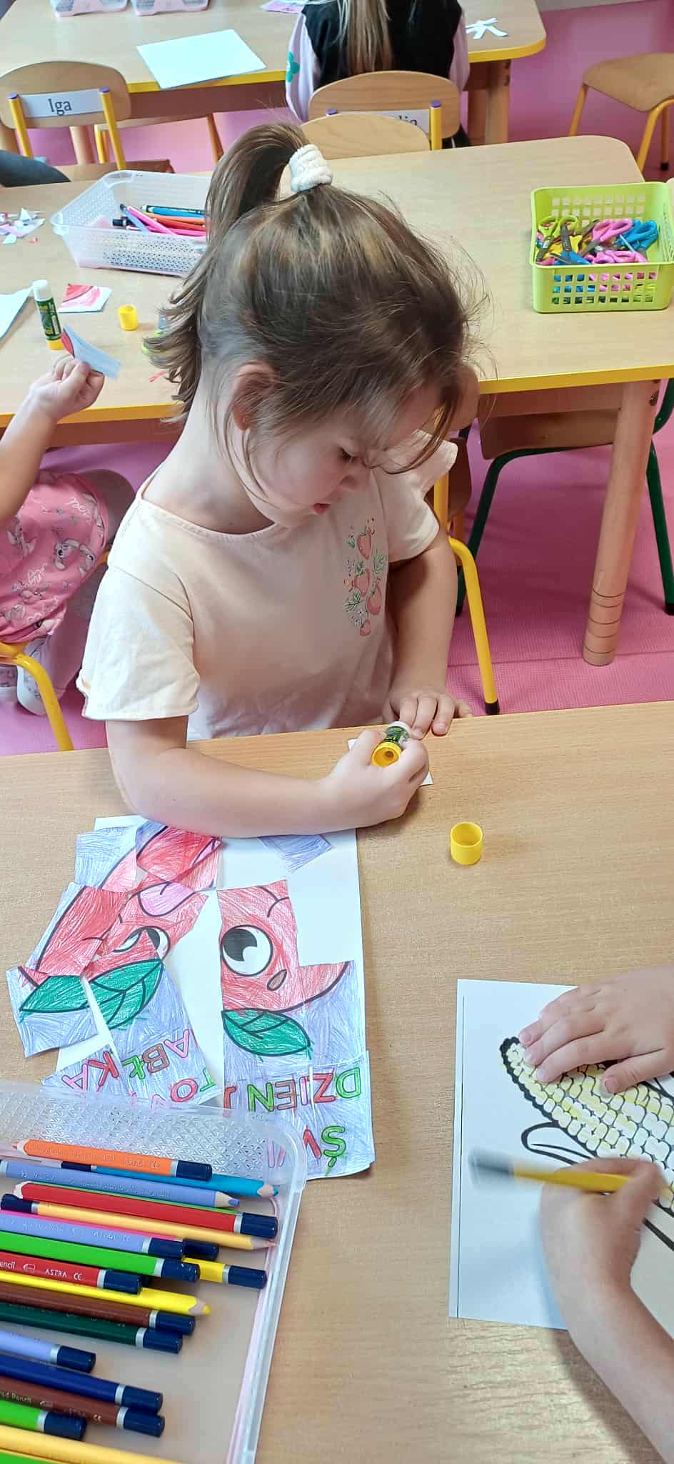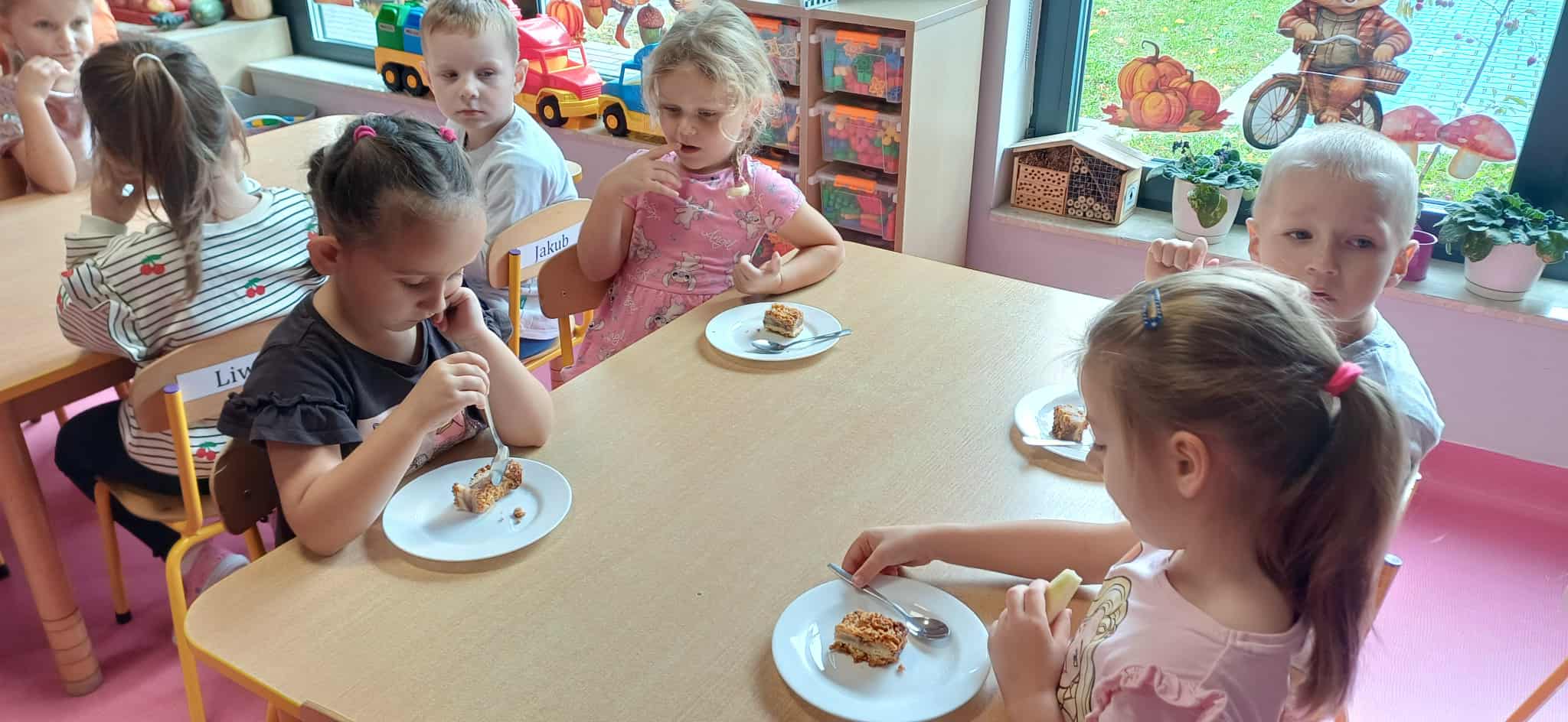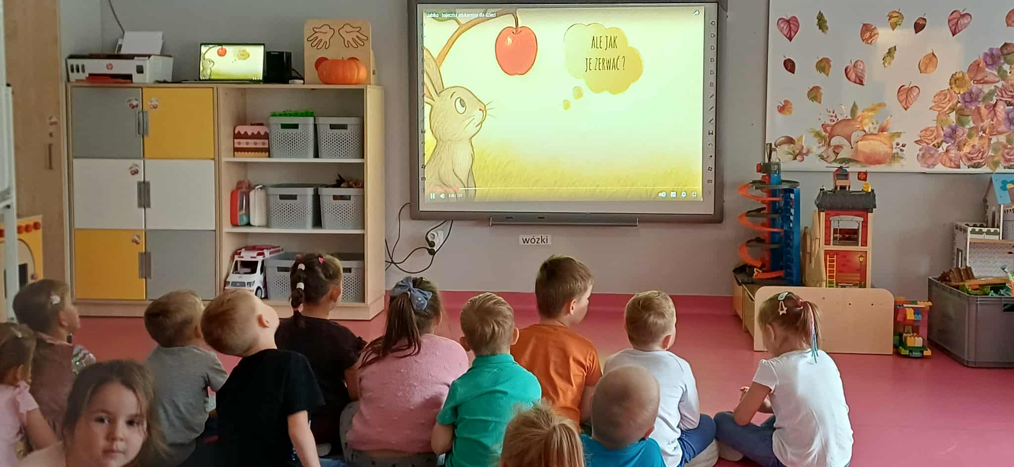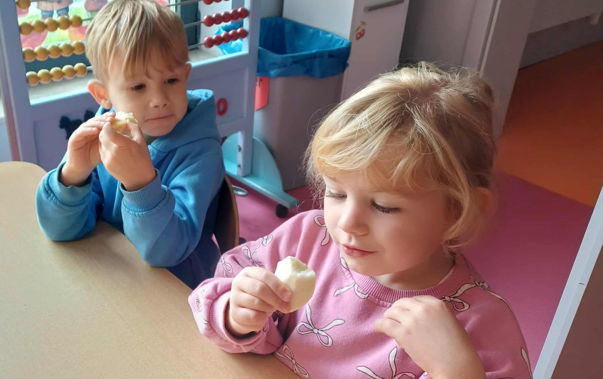 Dziś dowiedzieliśmy się wielu ciekawych rzeczy na temat jabłka. W jaki sposób rośnie, jakie ma kolory, gdzie można je spotkać i dlaczego jest zdrowe. Poznaliśmy również wiele ciekawych zabaw związanych z "jabłuszkiem" i mieliśmy okazję go posmakować pod różną postacią.