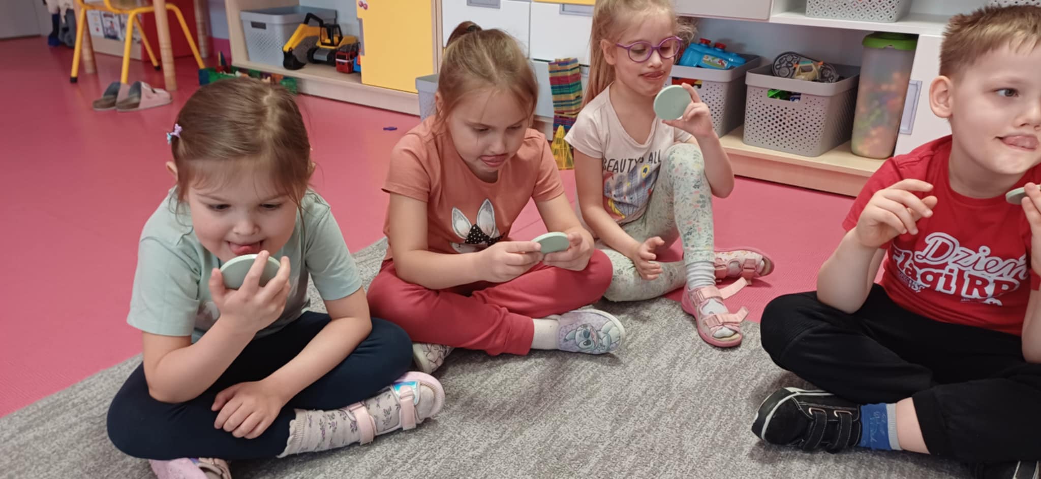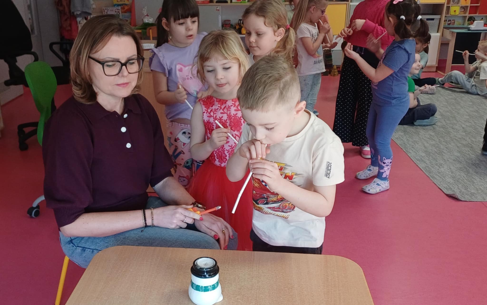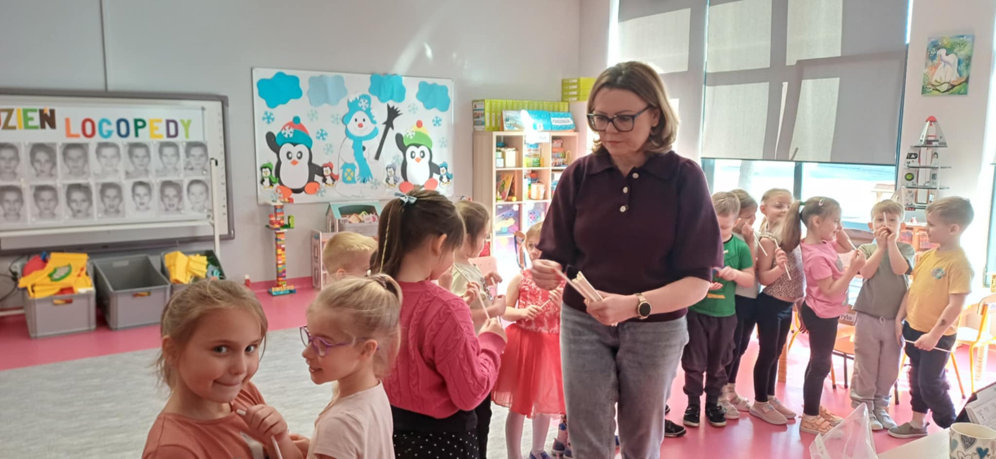 W związku z ogólnopolskim dniem logopedy do "Wisienek" przyszła dziś na zajęcia pani Ewa- Logopeda. Poprowadziła logopedyczne zabawy. " Wisienki " usprawniały pracę warg i języka. Na koniec dzieci przygotowały niespodziankę dla pani Ewy.