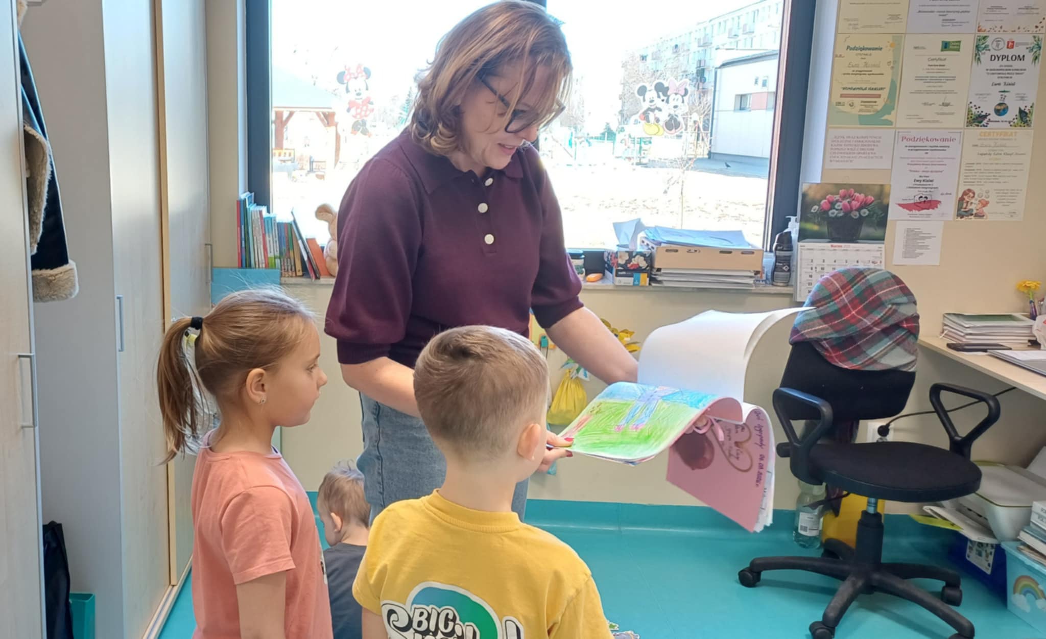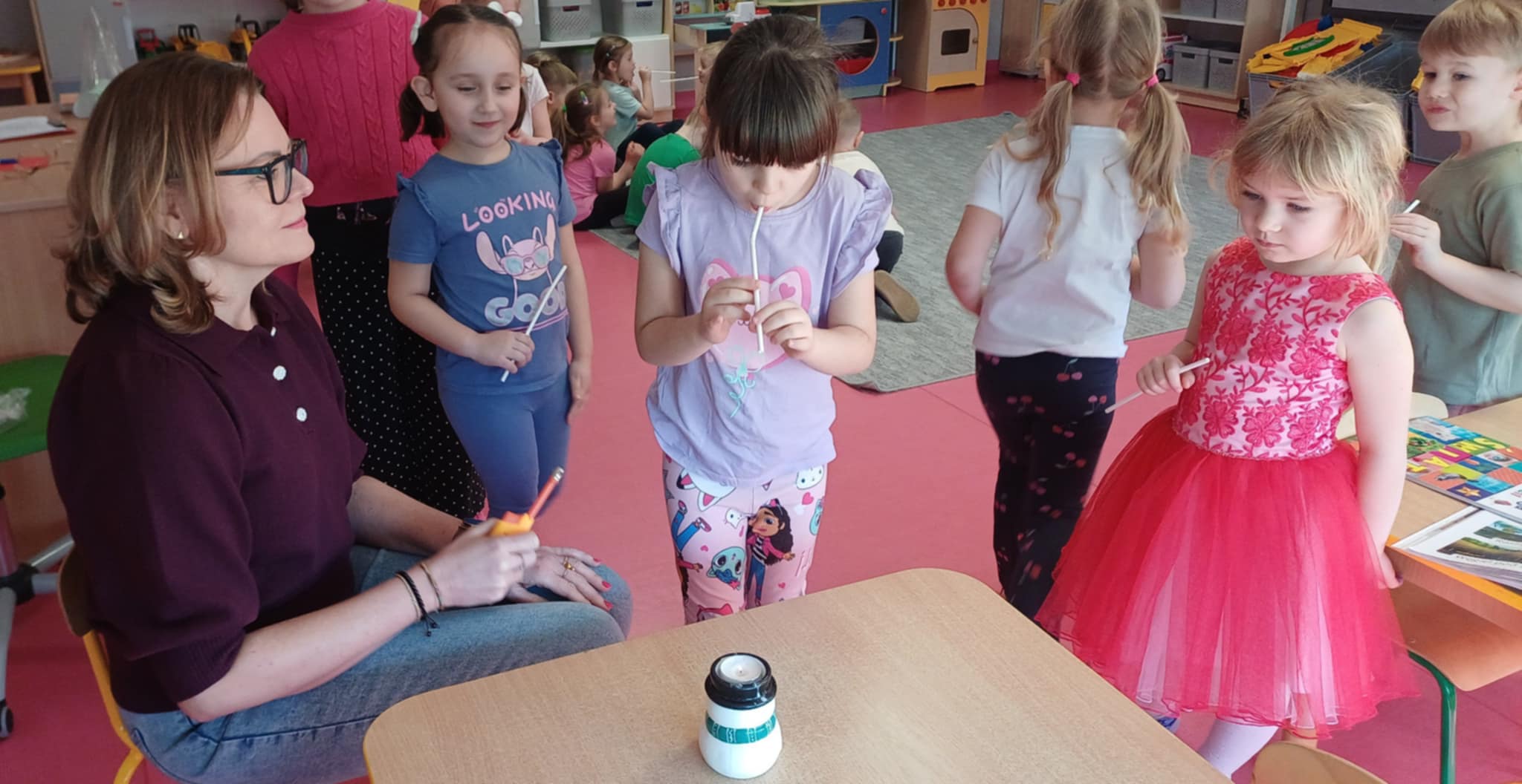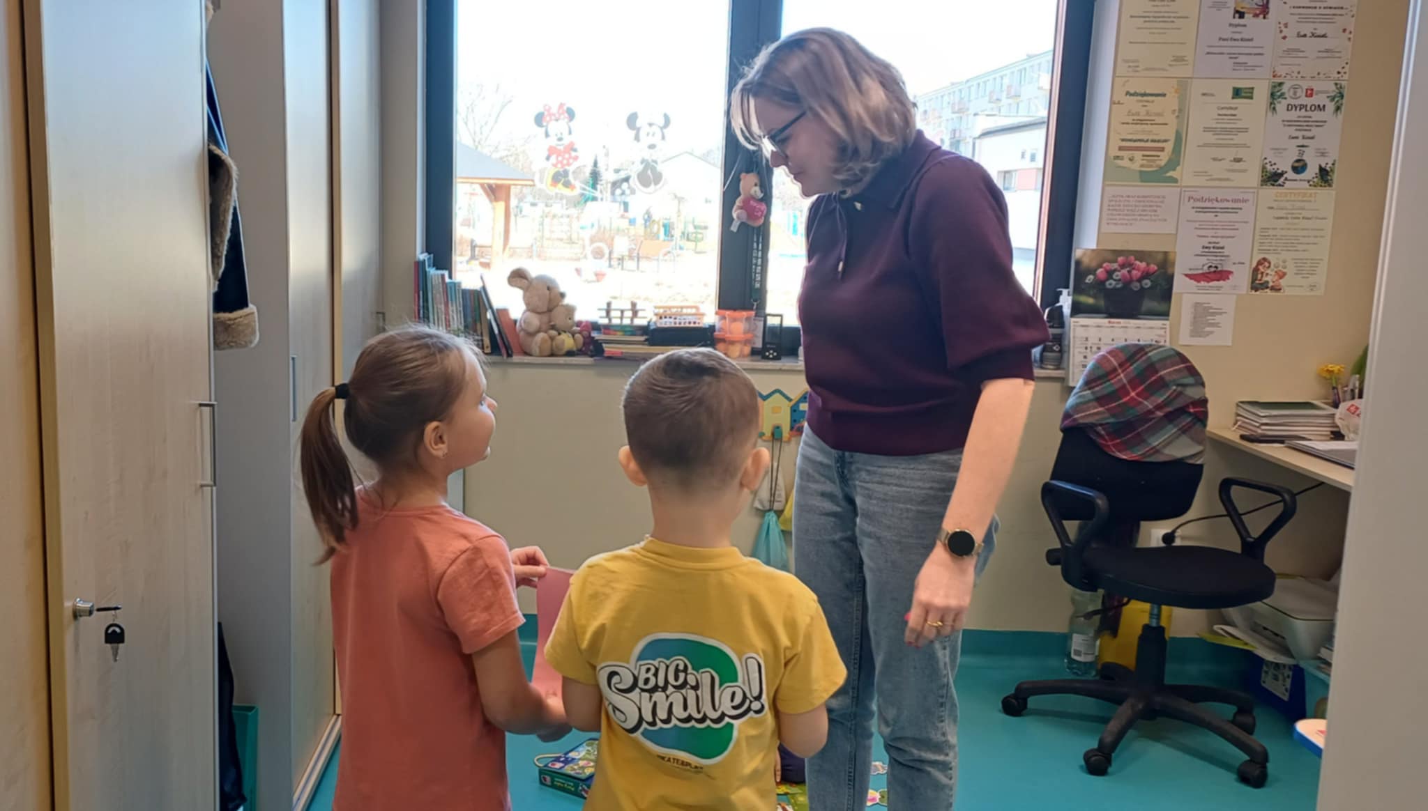 W związku z ogólnopolskim dniem logopedy do "Wisienek" przyszła dziś na zajęcia pani Ewa- Logopeda. Poprowadziła logopedyczne zabawy. " Wisienki " usprawniały pracę warg i języka. Na koniec dzieci przygotowały niespodziankę dla pani Ewy.