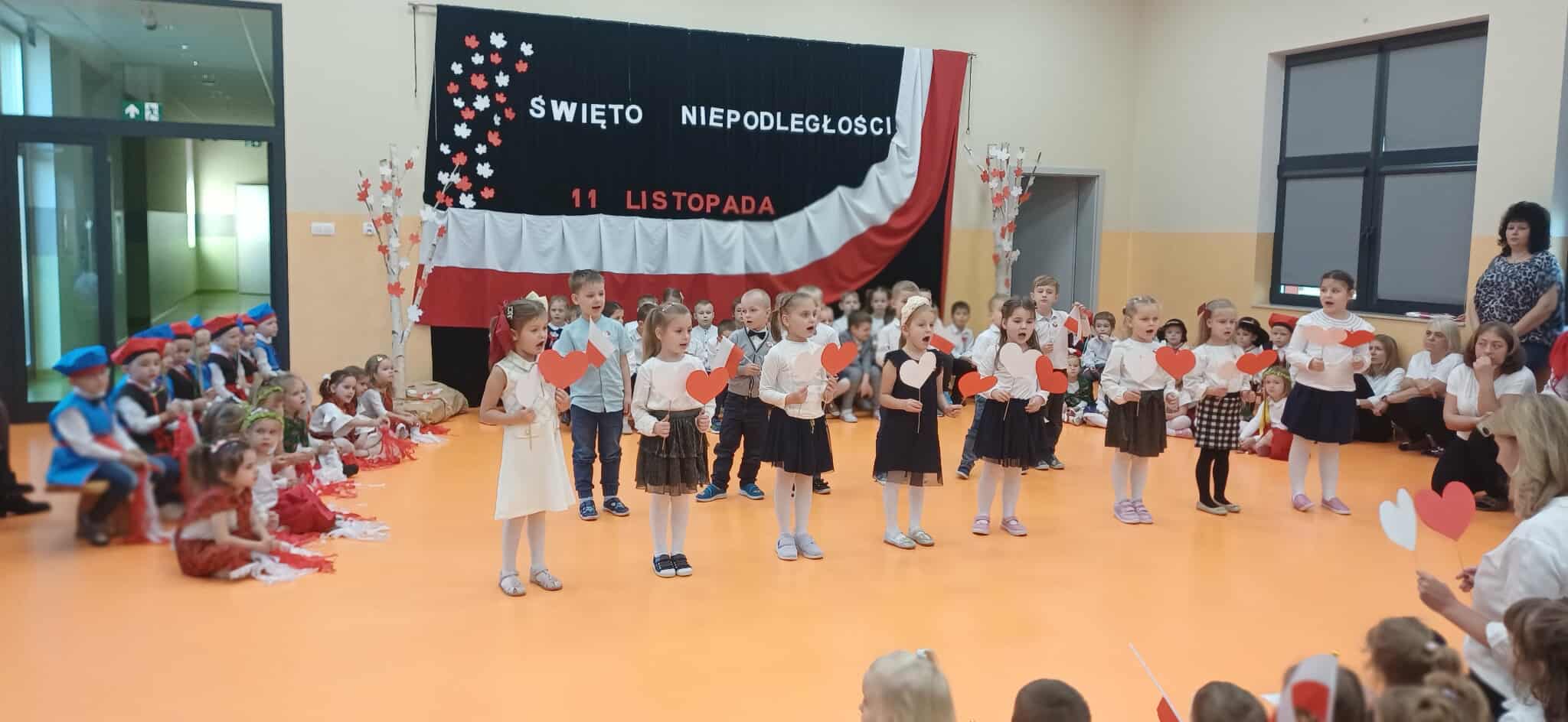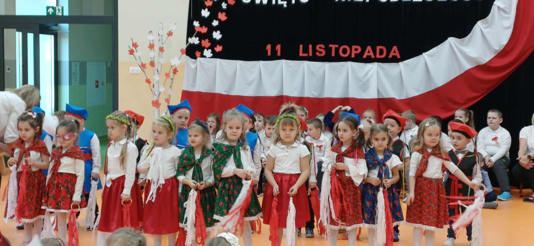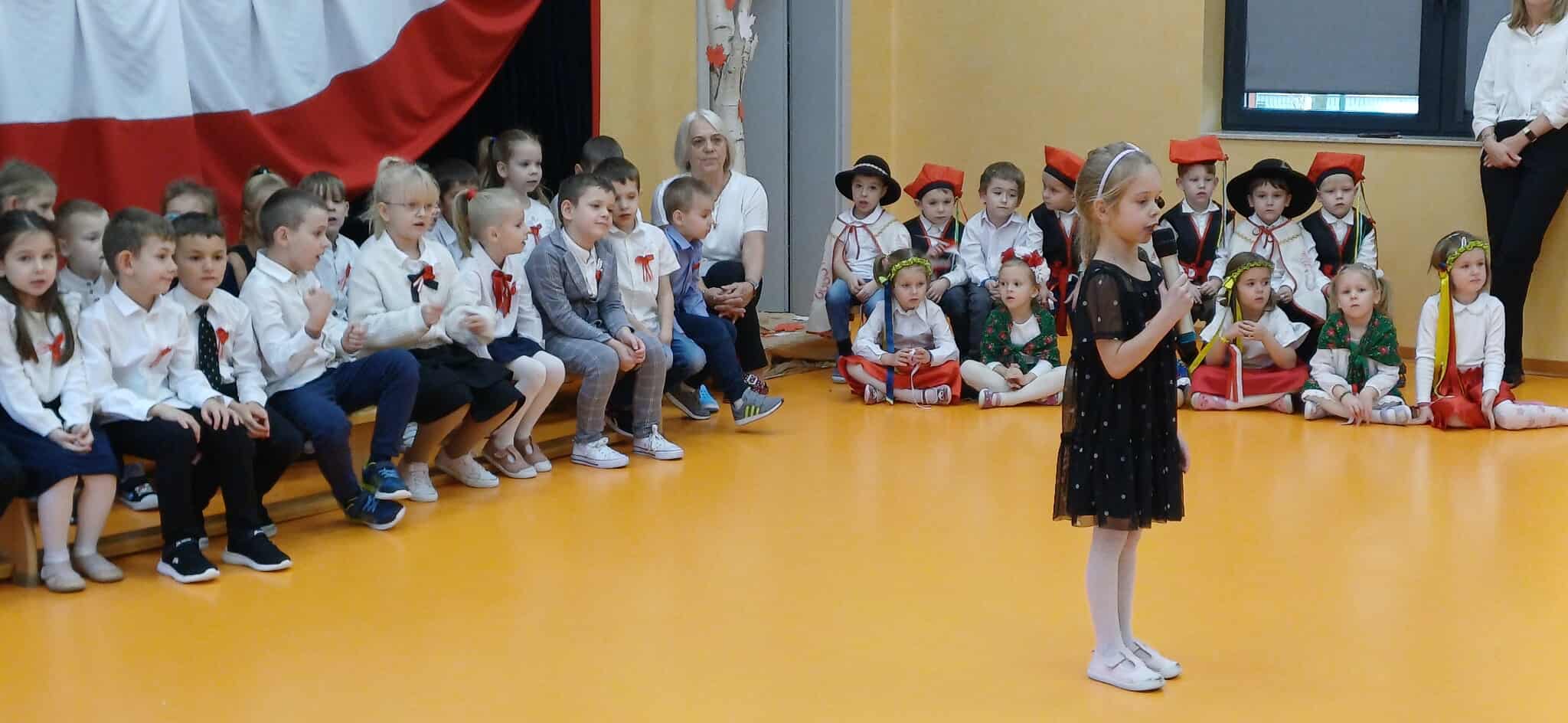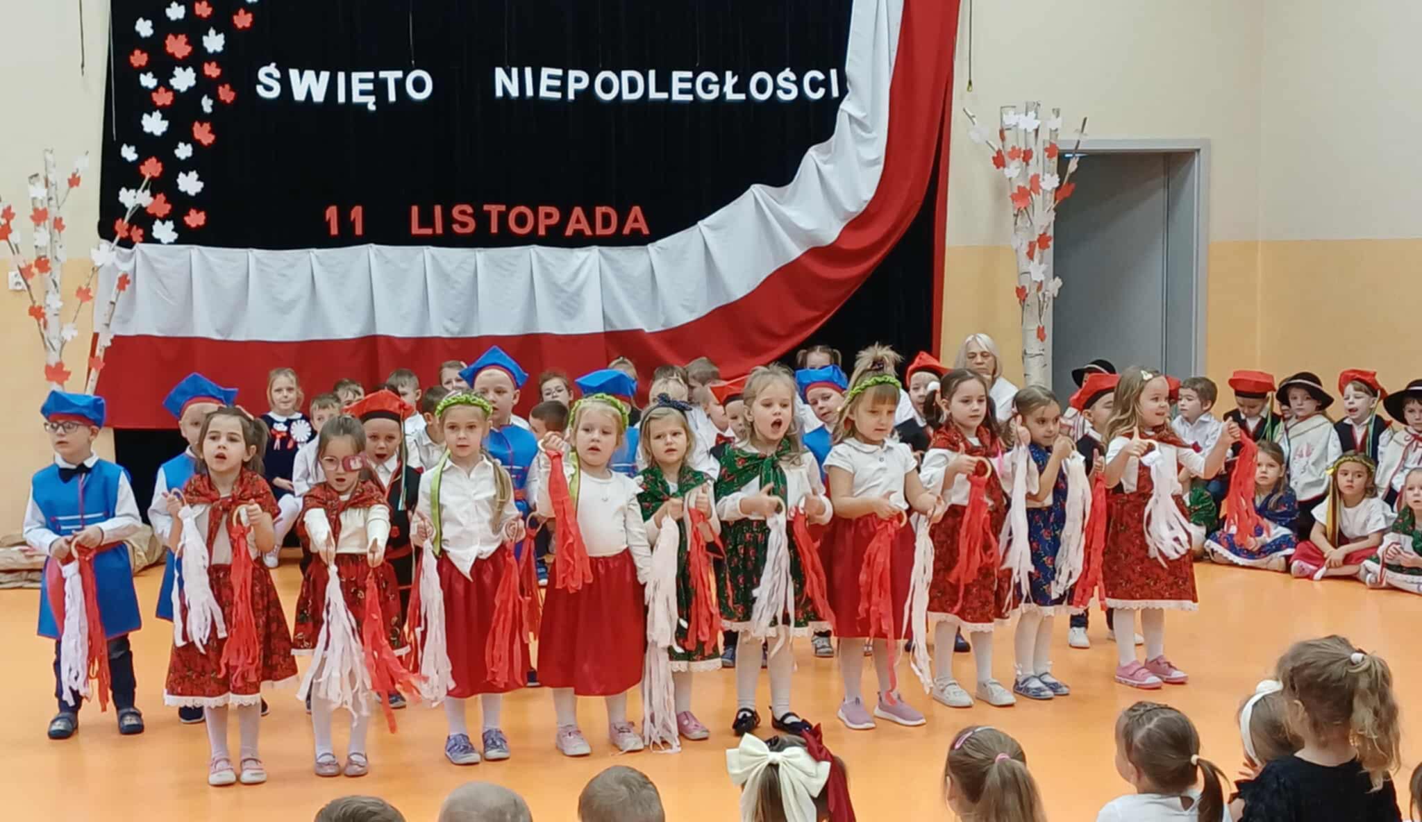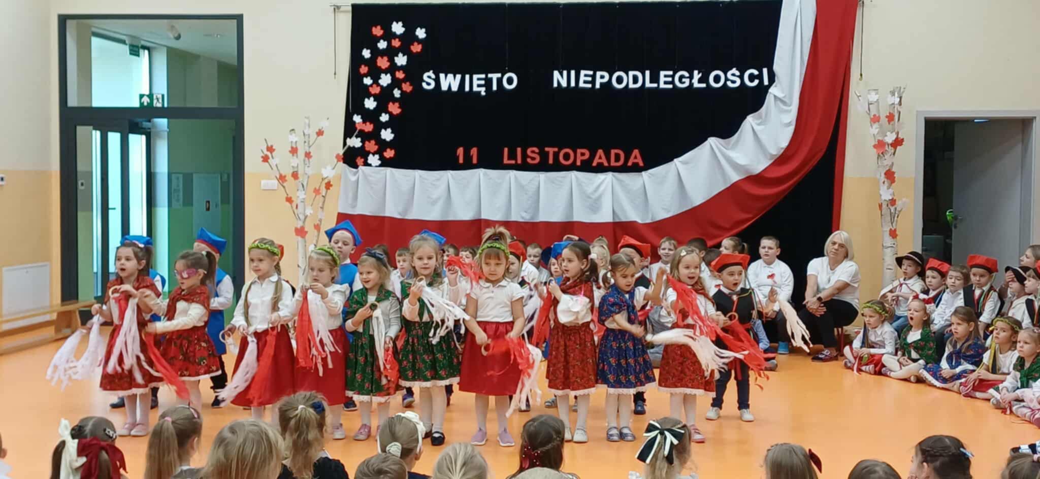 Dzisiejszego dnia odbyła się uroczysta akademia. Akademia z okazji upamiętnienia kolejnej rocznicy odzyskania przez Polskę niepodległości. Koordynatorem tego wydarzania była Pani Iwonka i grupa Malinki. Dzieci wprowadziły uroczysty nastrój i zagłębiły całą społeczność przedszkola w ważne wydarzenia, o których wszyscy muszą wiedzieć. Grupę 6-latków dzielnie wspierały młodsze grupy: Truskaweczki, Morelki i Wisienki, które przygotowały piosenki z układami tanecznymi. Grupy 4-latków zaprezentowały się w tradycyjnych strojach ludowych. Cała społeczność przedszkolna uroczyście odśpiewała Hymn Polski, dołączając do akcji Szkoła do hymnu.