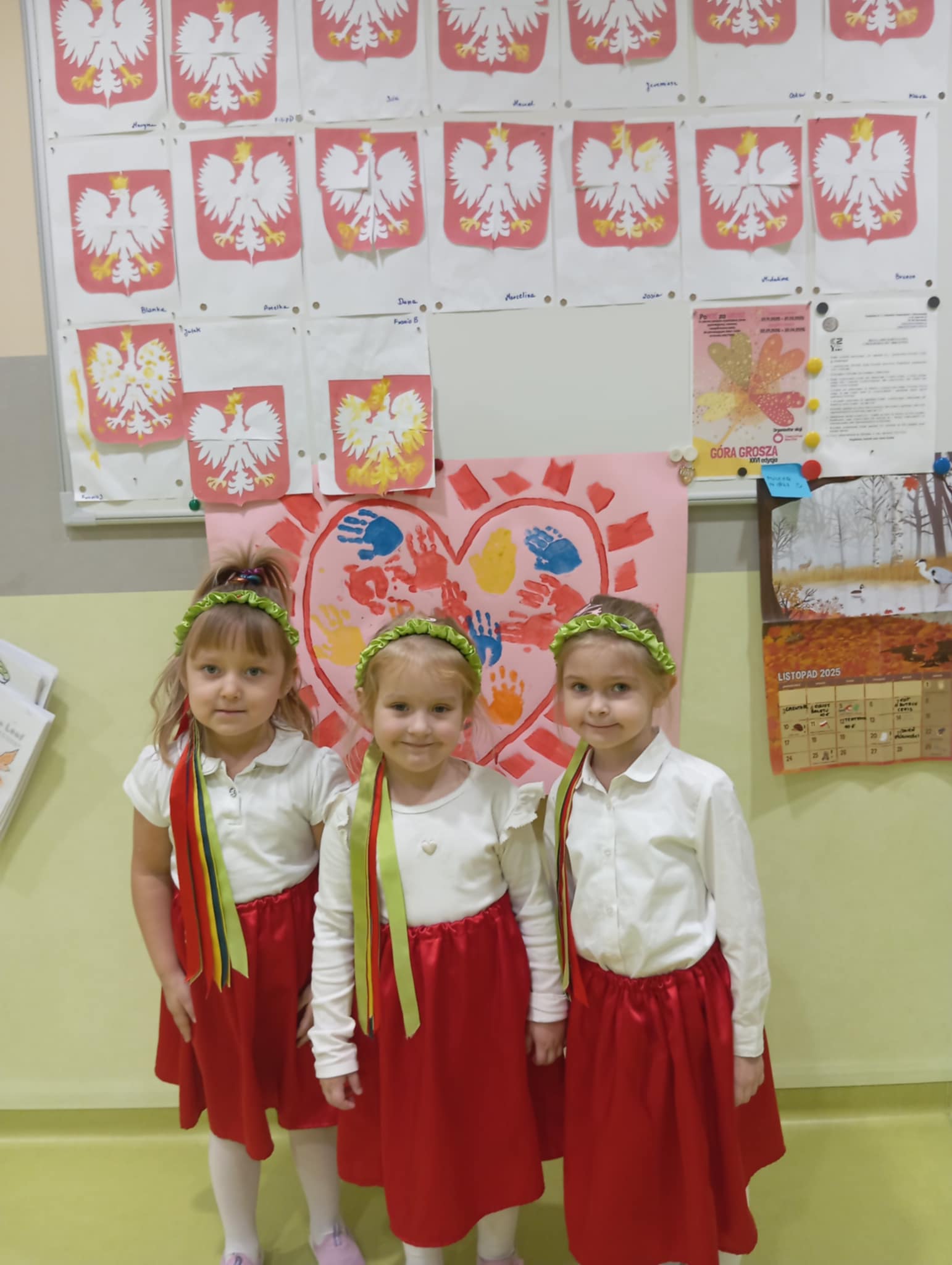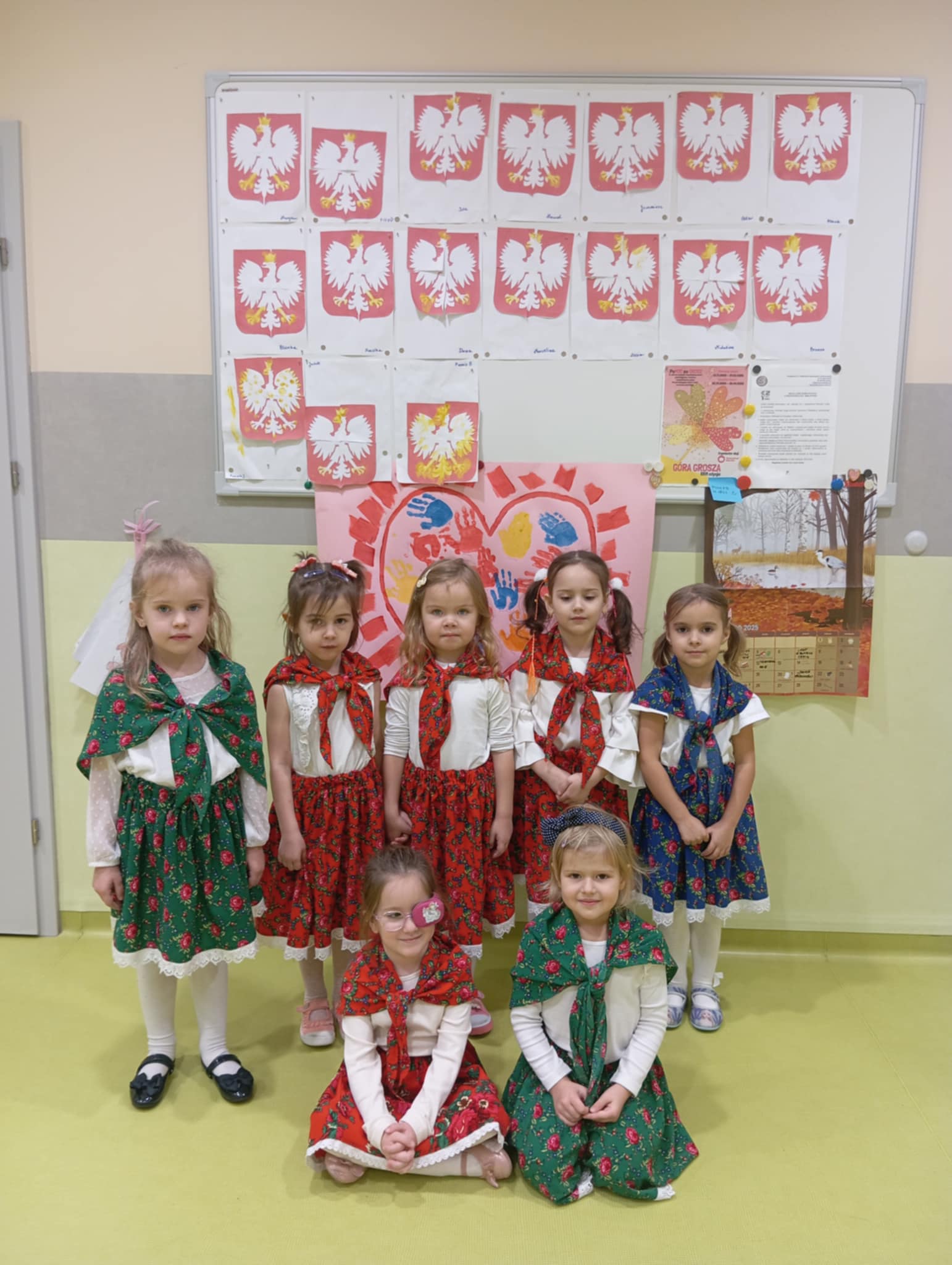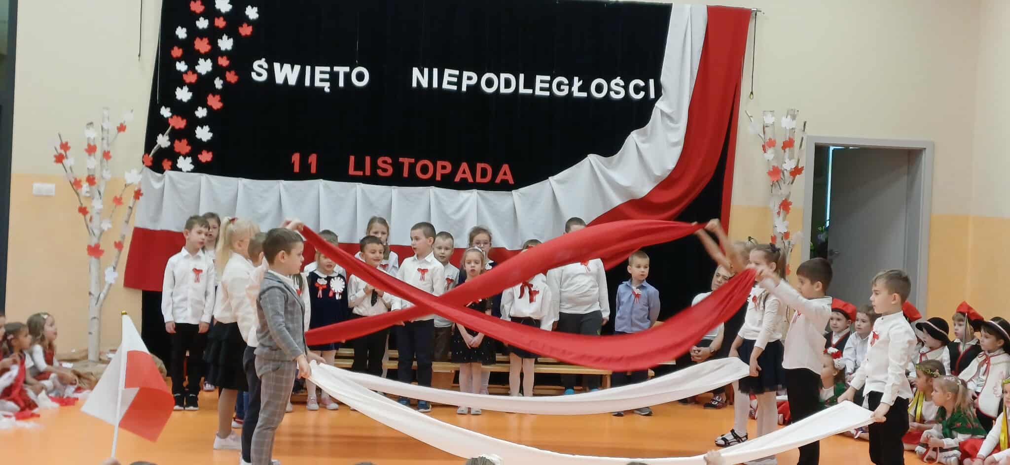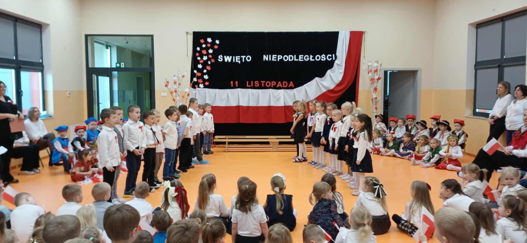 Dzisiejszego dnia odbyła się uroczysta akademia. Akademia z okazji upamiętnienia kolejnej rocznicy odzyskania przez Polskę niepodległości. Koordynatorem tego wydarzania była Pani Iwonka i grupa Malinki. Dzieci wprowadziły uroczysty nastrój i zagłębiły całą społeczność przedszkola w ważne wydarzenia, o których wszyscy muszą wiedzieć. Grupę 6-latków dzielnie wspierały młodsze grupy: Truskaweczki, Morelki i Wisienki, które przygotowały piosenki z układami tanecznymi. Grupy 4-latków zaprezentowały się w tradycyjnych strojach ludowych. Cała społeczność przedszkolna uroczyście odśpiewała Hymn Polski, dołączając do akcji Szkoła do hymnu.