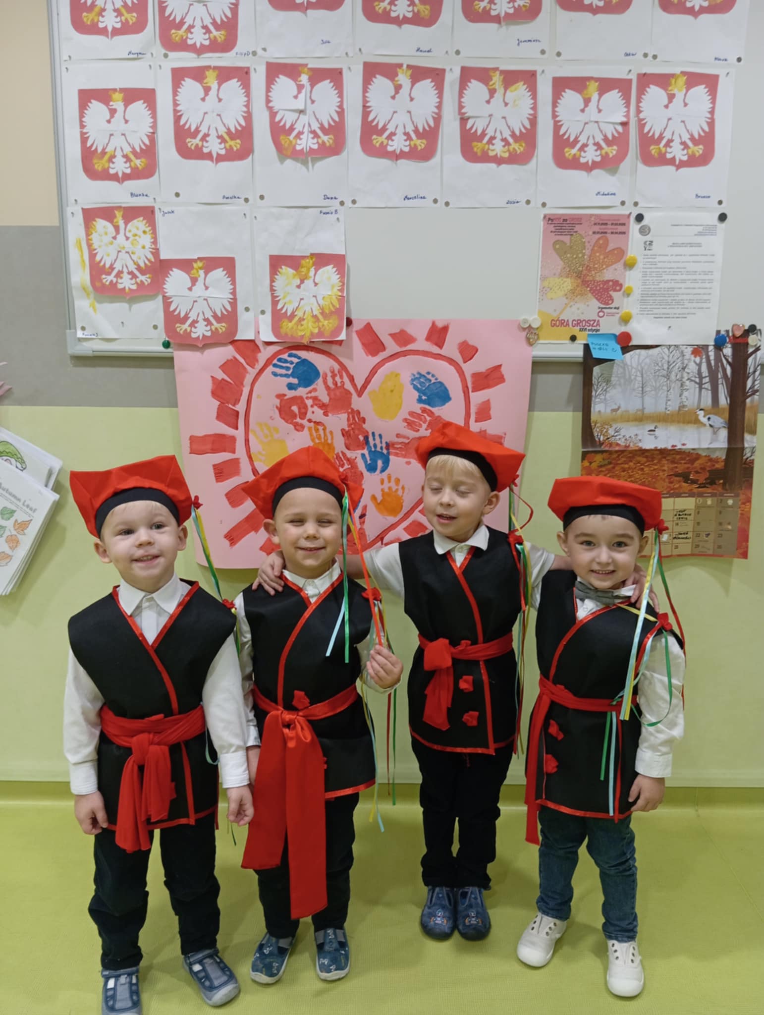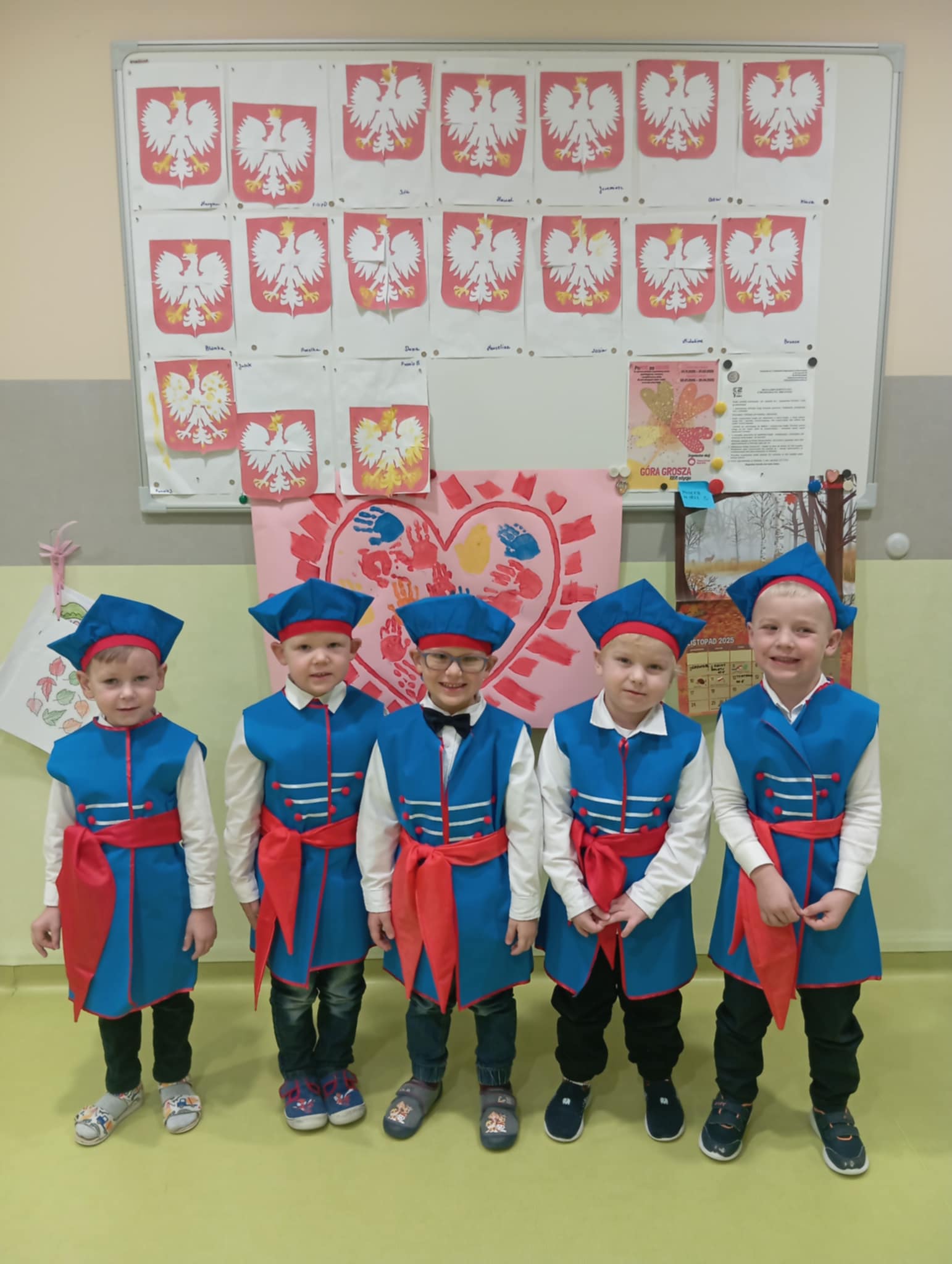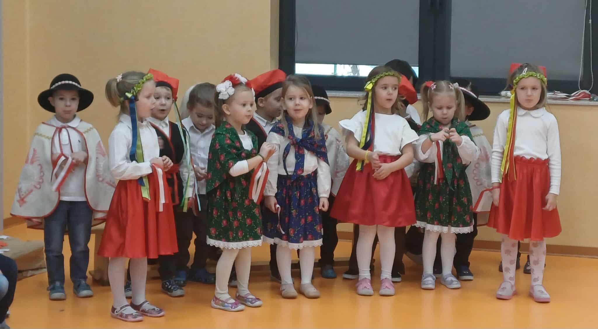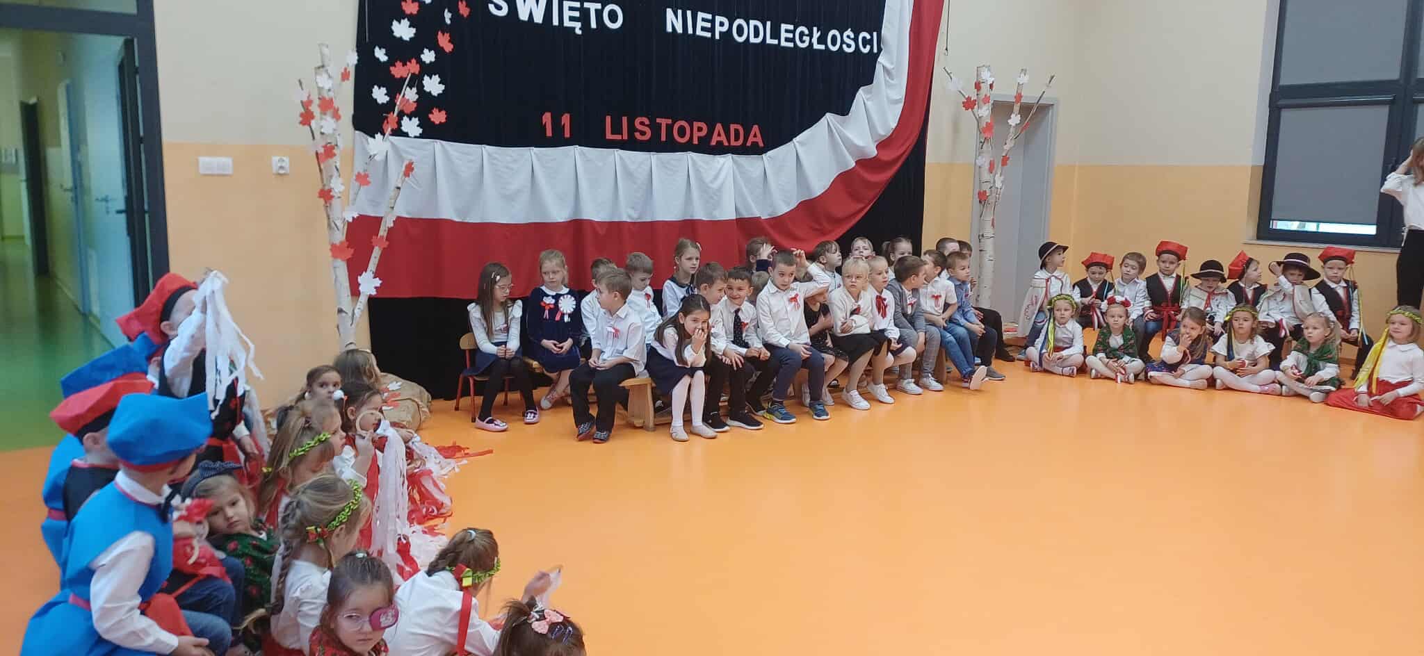 Dzisiejszego dnia odbyła się uroczysta akademia. Akademia z okazji upamiętnienia kolejnej rocznicy odzyskania przez Polskę niepodległości. Koordynatorem tego wydarzania była Pani Iwonka i grupa Malinki. Dzieci wprowadziły uroczysty nastrój i zagłębiły całą społeczność przedszkola w ważne wydarzenia, o których wszyscy muszą wiedzieć. Grupę 6-latków dzielnie wspierały młodsze grupy: Truskaweczki, Morelki i Wisienki, które przygotowały piosenki z układami tanecznymi. Grupy 4-latków zaprezentowały się w tradycyjnych strojach ludowych. Cała społeczność przedszkolna uroczyście odśpiewała Hymn Polski, dołączając do akcji Szkoła do hymnu.
