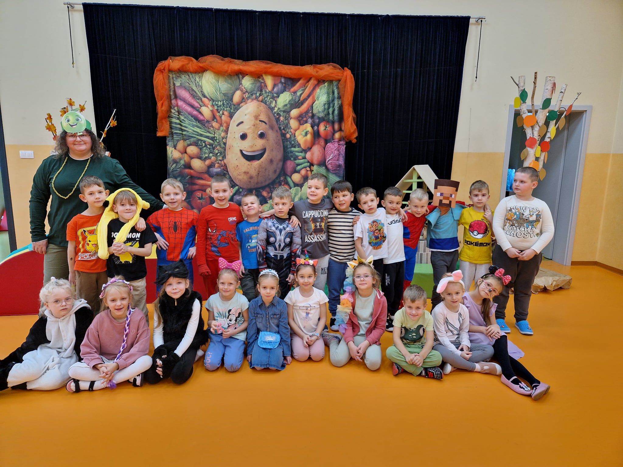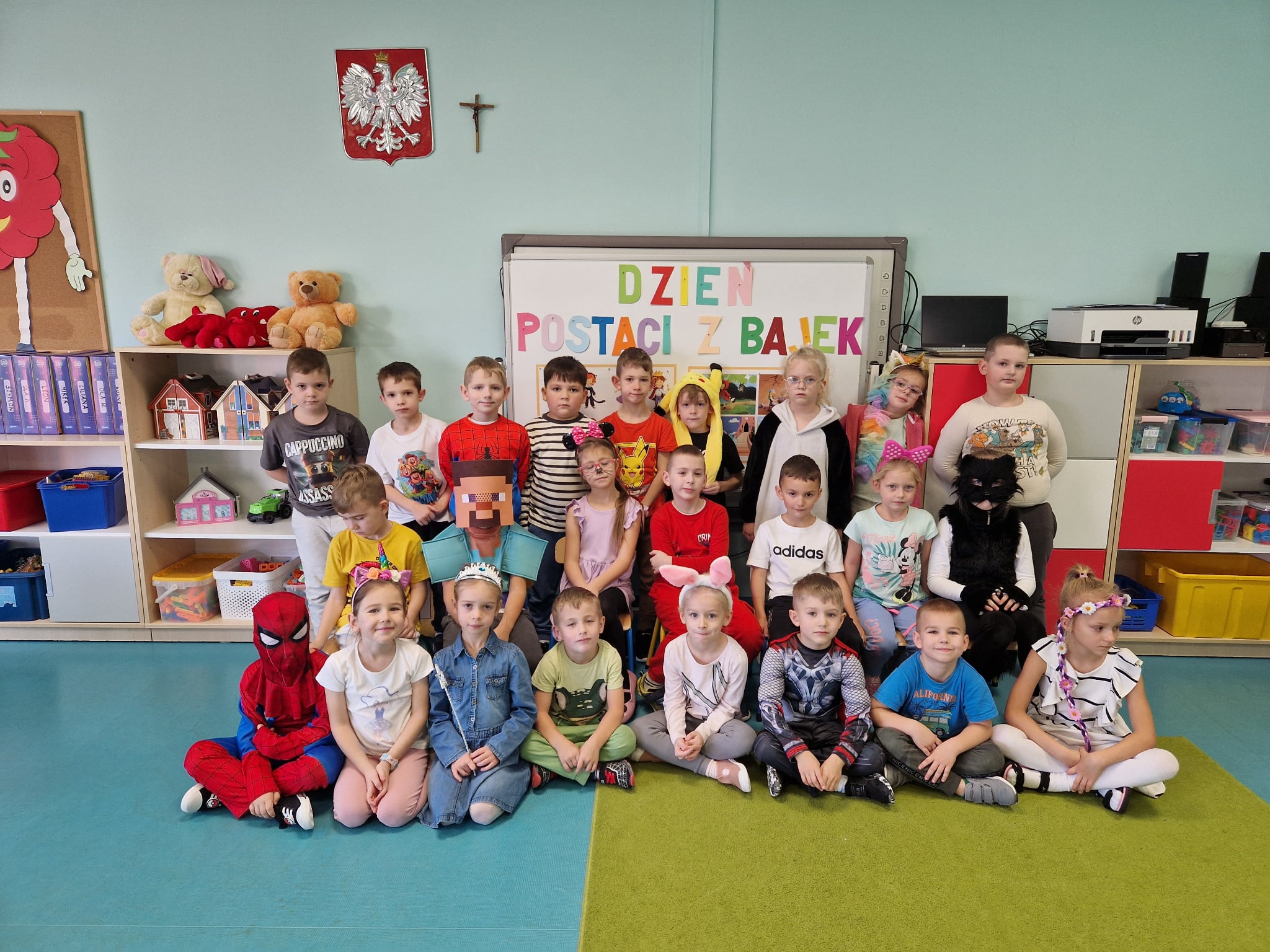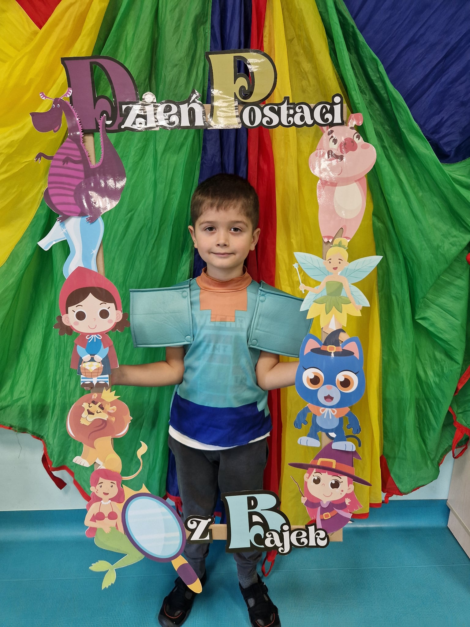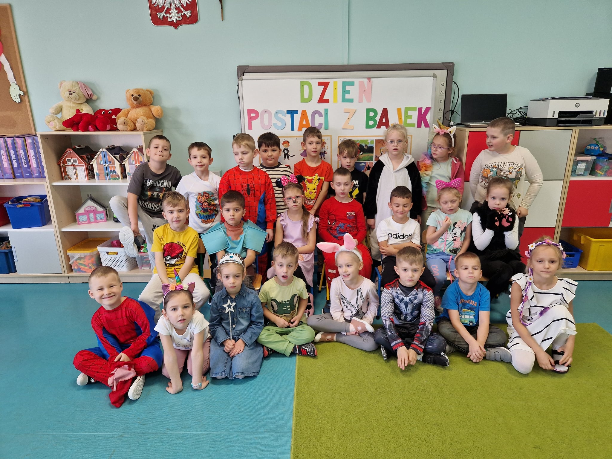 Dziś obchodzimy Dzień Postaci z Bajek. Każde dziecko przebrało się za swoją ulubioną bajkową postać. Nasze nauczycielki przygotowały dla dzieci przedstawienie na podstawie wiersza Jana Brzechwy pt. "Na straganie".
