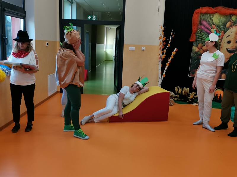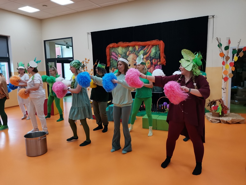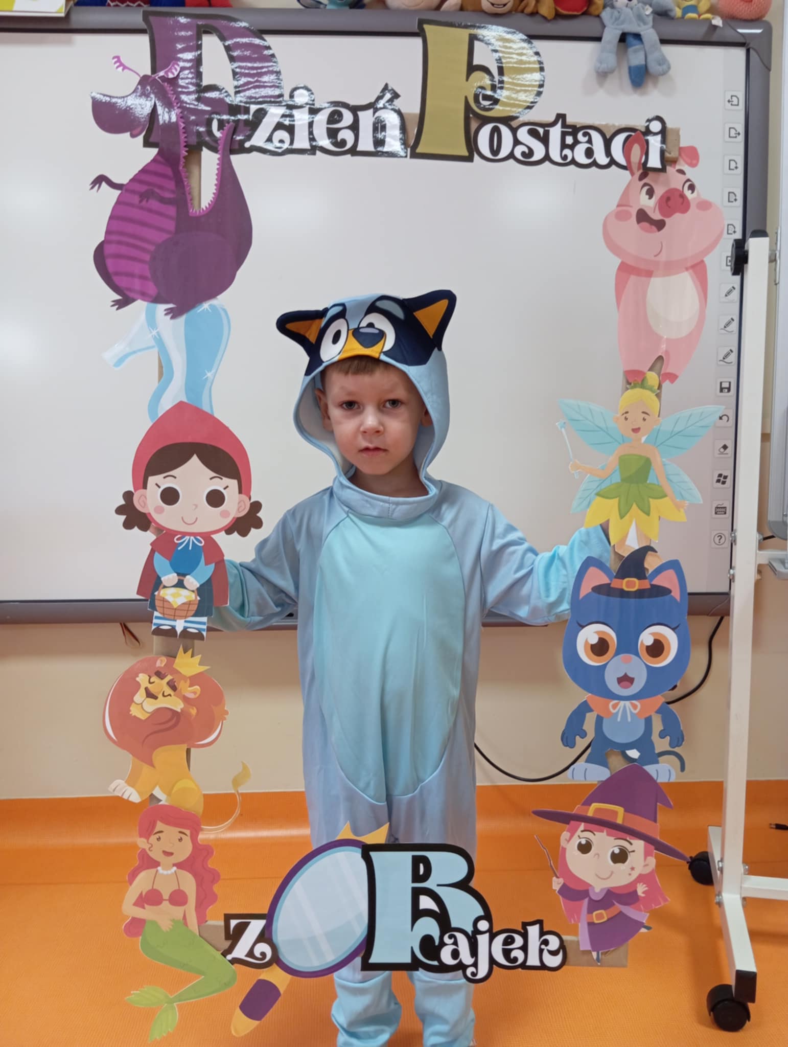 Dzisiejszego dnia obchodziliśmy bajeczne święto - Dzień Postaci z bajek. Na dzieci czekała moc atrakcji i niespodzianek. Pierwszą z nich było przedstawienie przygotowane przez nauczycielki. Tym razem zaprezentowały dzieciom wiersz Jana Brzechwy - Na straganie. Po obejrzanym przedstawieniu dzieci zostały zaproszone na bal. Towarzyszyła nam cudowna atmosfera, pełna uśmiechu, radości i zabaw tanecznych.