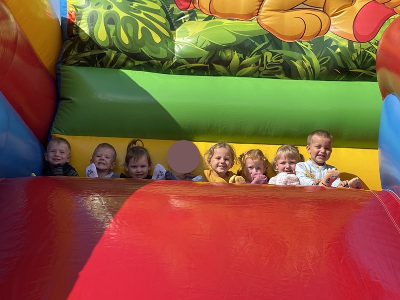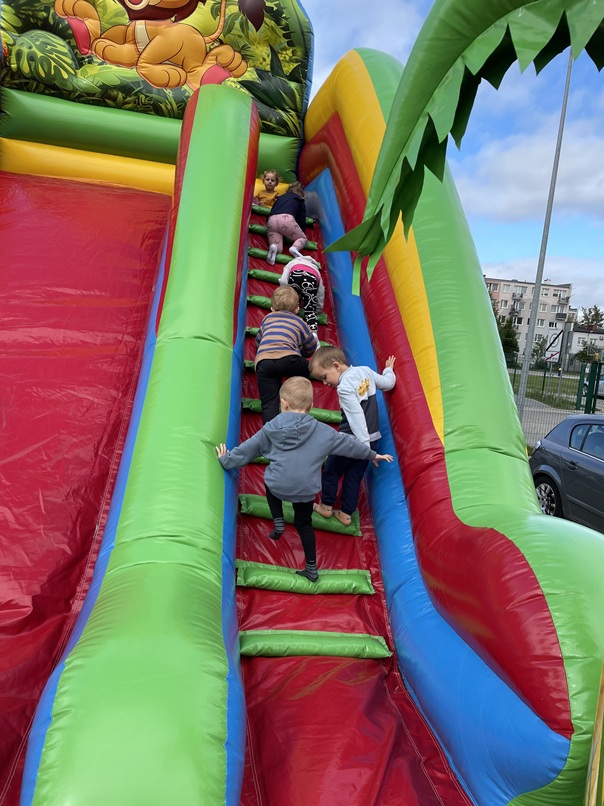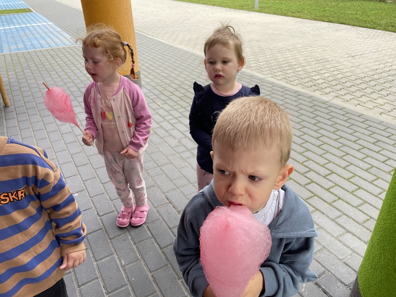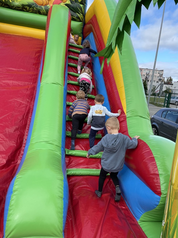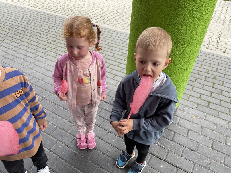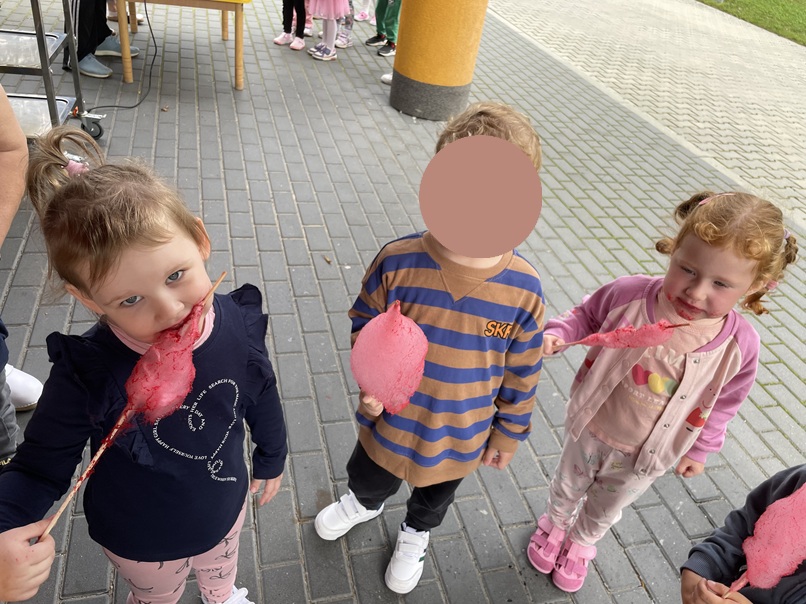 Dzień Przedszkolaka był pełen radości i niezapomnianych atrakcji. Wszystkie dzieci świetnie bawiły się na dmuchańcach, a po zabawie z apetytem zajadały kolorową watę cukrową. Na zakończenie dnia każdy przedszkolak mógł zrobić sobie pamiątkowe zdjęcie na specjalnie przygotowanej ściance. To był wyjątkowy dzień pełen uśmiechów i dziecięcej energii.