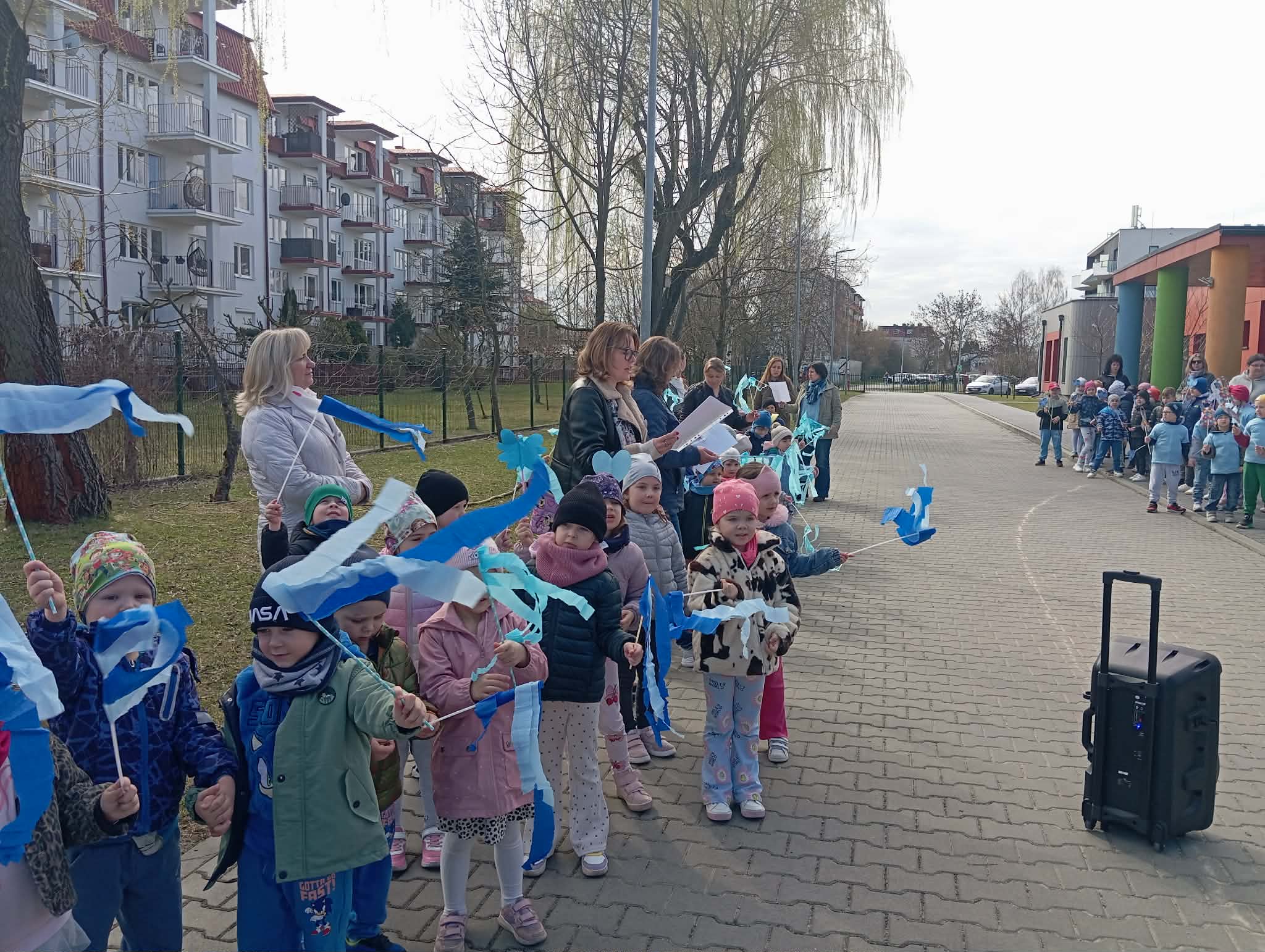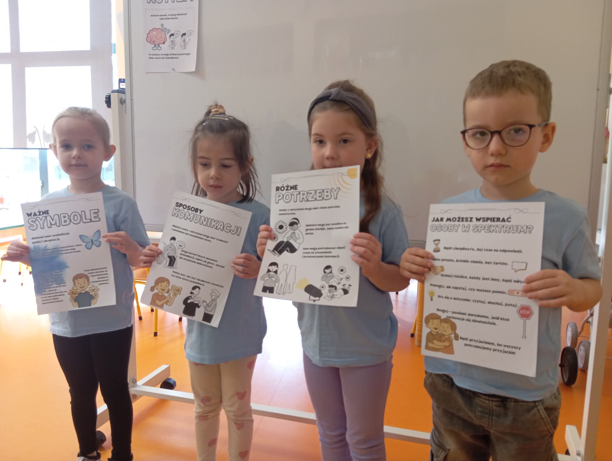 Jak co roku Morelki biorą udział w akcji dotyczącej szerzenia wiedzy na temat świadomości autyzmu. W tym roku również założyły niebieskie koszulki i wspólnie z kolegami i koleżankami z przedszkola spotkały się, by zaśpiewać piosenkę o przyjaźni i sile, którą mamy dzięki niej. Wspólnie wyruszyliśmy ulicami miasta z niebieskimi emblematami, pokazującymi nasze zrozumienie, akceptację, szacunek i solidarność. W sali uczestniczyliśmy w zajęciach na temat różnorodności i akceptowaniu się wzajemnie.