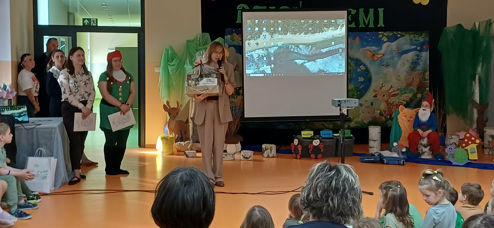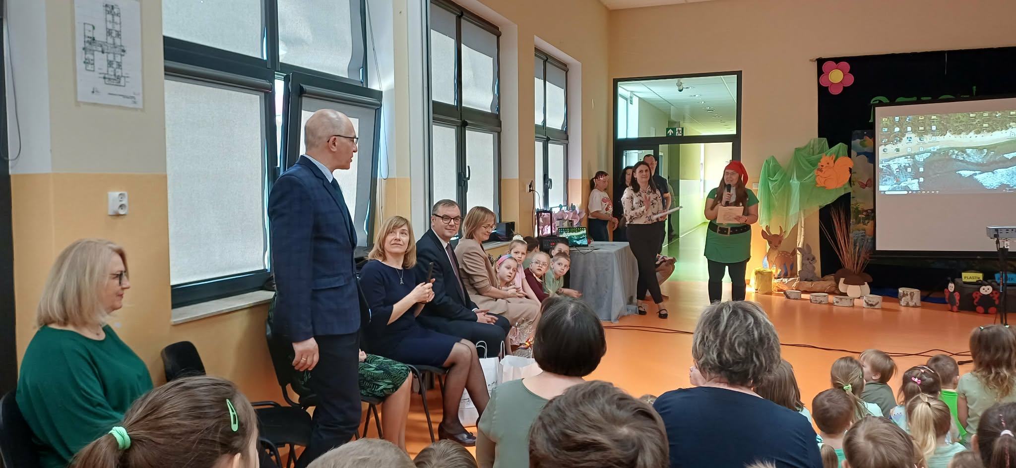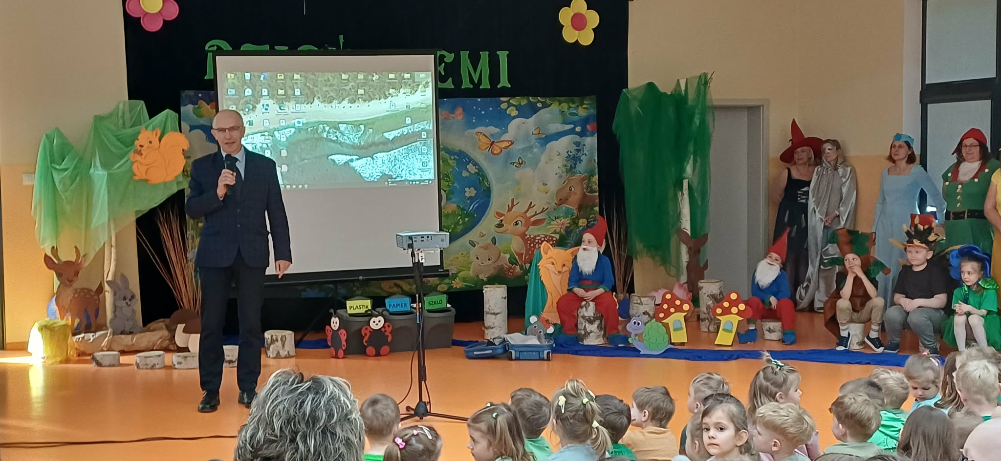 22 kwietnia w naszym przedszkolu odbył się Dzień Ziemi. Towarzyszyli nam zaproszeni goście, wśród nich byli: Pan Paweł Sałek - Poseł na Sejm Rzeczypospolitej Polskiej, Pani Ilona Pietrowska - Dyrektor Centrum Rozwoju Edukacji w Skierniewicach, Pan Jarosław Pabijanek z Kuratorium Oświaty, Pani Katarzyna Malinowska z Miejskiej Biblioteki Publicznej, Pani Teresa Wieczorek - Prezes Towarzystwa Przyjaciół Dzieci, Pani Beata Plaskota oraz Pani Mirosława Wódz, wieloletnie nauczycielki naszego przedszkola. Podczas uroczystości poruszyliśmy temat ekologi. Dzieci obejrzały i wysłuchały wywiadu z rodzicami i pracownikami przedszkola oraz obejrzały przedstawienie Teatru Nieziemskiego, pt. Ziemia to nasz skarb. Odbyło się również rozstrzygniecie konkursu na temat ochrony planety. Był to dzień również ważny dla naszych 6-latków, bowiem stali się członkami Ligii Ochrony Przyrody.