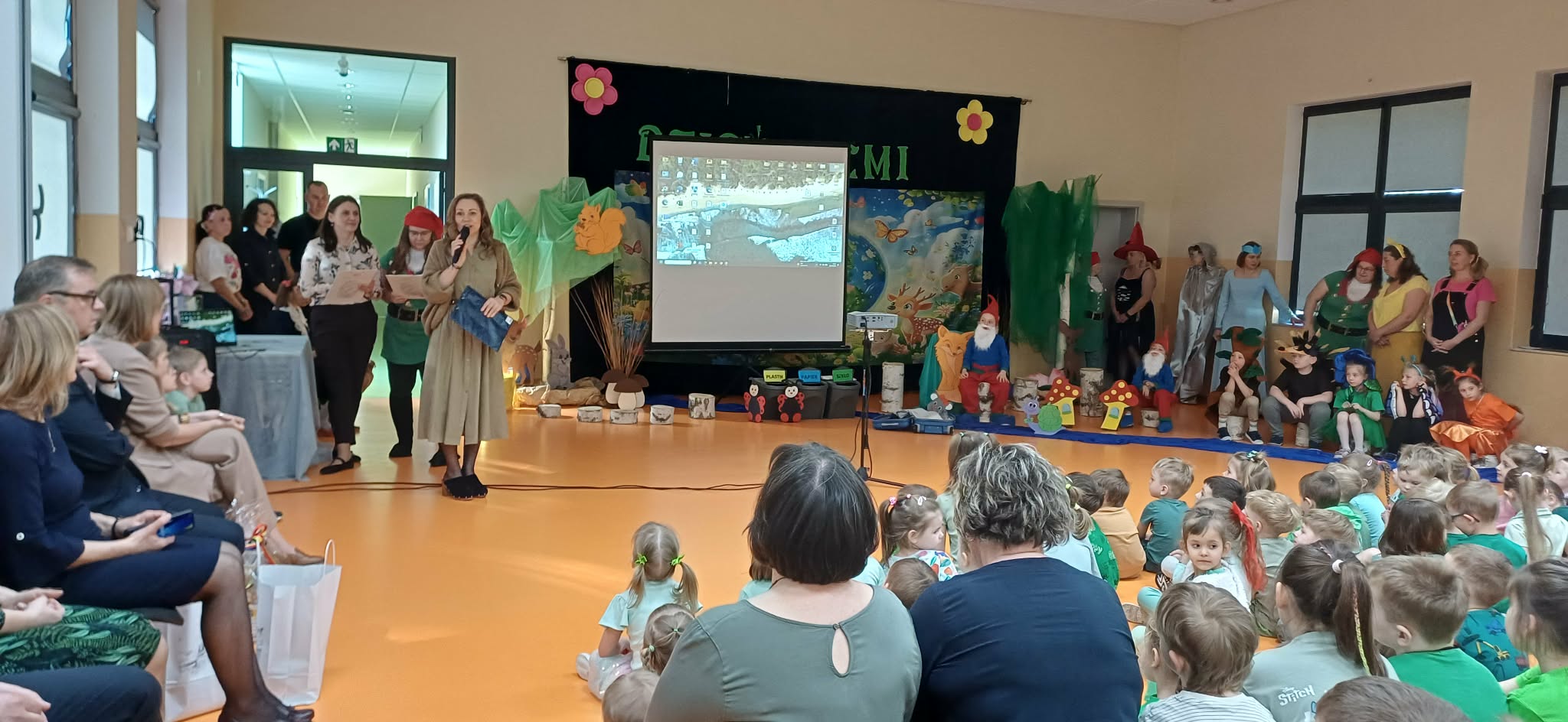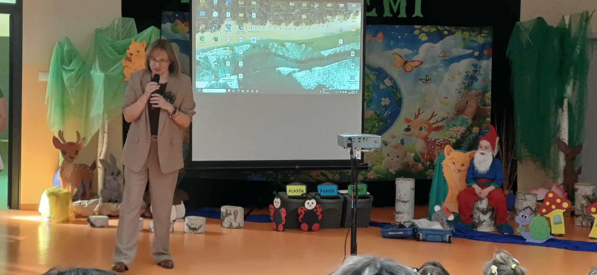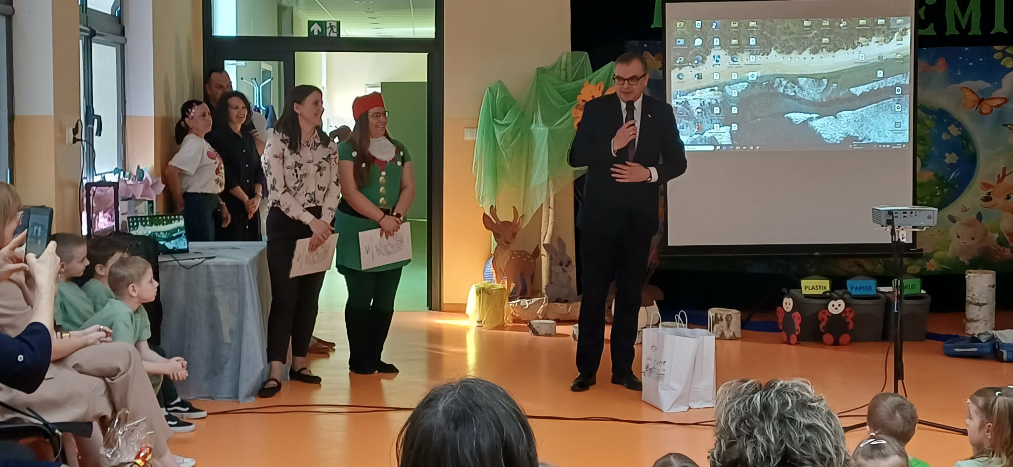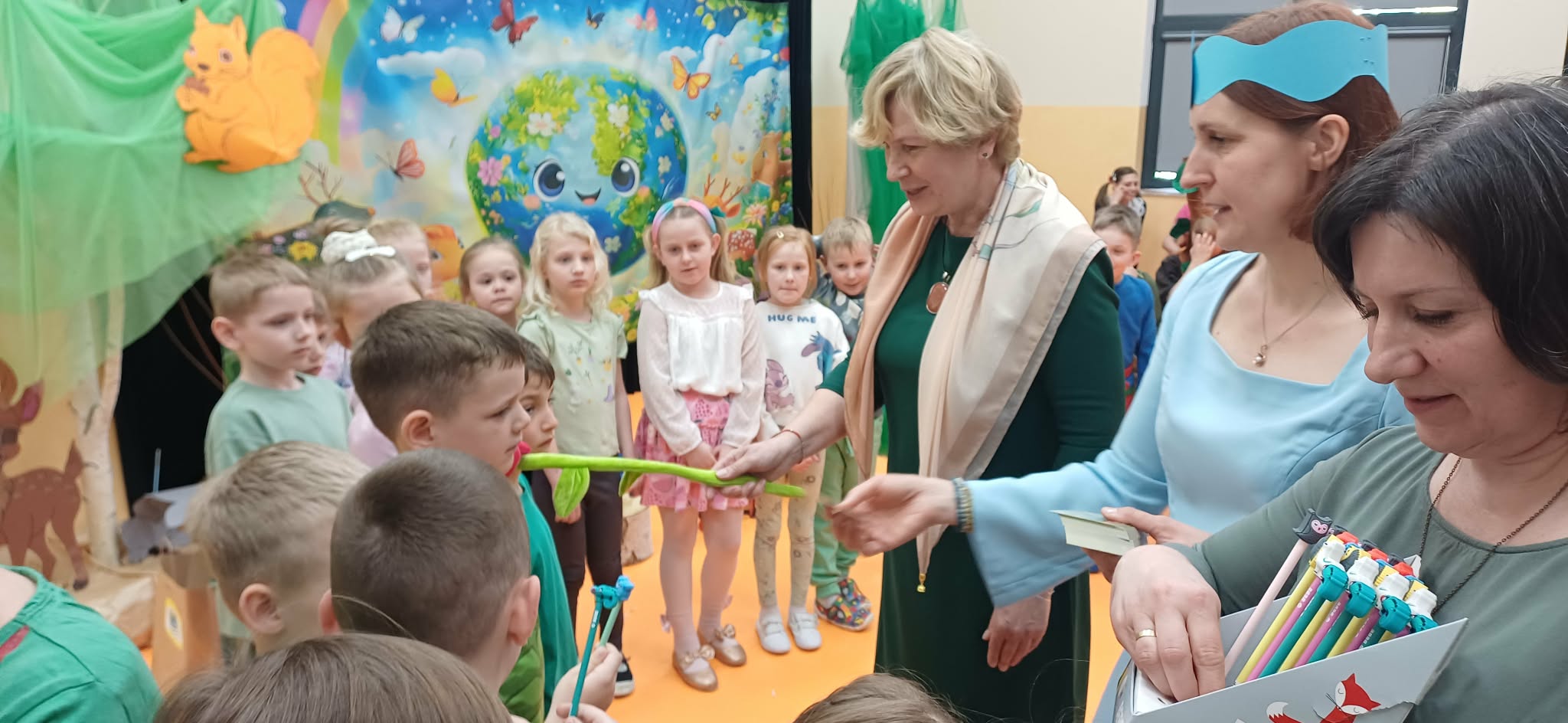 22 kwietnia w naszym przedszkolu odbył się Dzień Ziemi. Towarzyszyli nam zaproszeni goście, wśród nich byli: Pan Paweł Sałek - Poseł na Sejm Rzeczypospolitej Polskiej, Pani Ilona Pietrowska - Dyrektor Centrum Rozwoju Edukacji w Skierniewicach, Pan Jarosław Pabijanek z Kuratorium Oświaty, Pani Katarzyna Malinowska z Miejskiej Biblioteki Publicznej, Pani Teresa Wieczorek - Prezes Towarzystwa Przyjaciół Dzieci, Pani Beata Plaskota oraz Pani Mirosława Wódz, wieloletnie nauczycielki naszego przedszkola. Podczas uroczystości poruszyliśmy temat ekologi. Dzieci obejrzały i wysłuchały wywiadu z rodzicami i pracownikami przedszkola oraz obejrzały przedstawienie Teatru Nieziemskiego, pt. Ziemia to nasz skarb. Odbyło się również rozstrzygniecie konkursu na temat ochrony planety. Był to dzień również ważny dla naszych 6-latków, bowiem stali się członkami Ligii Ochrony Przyrody.