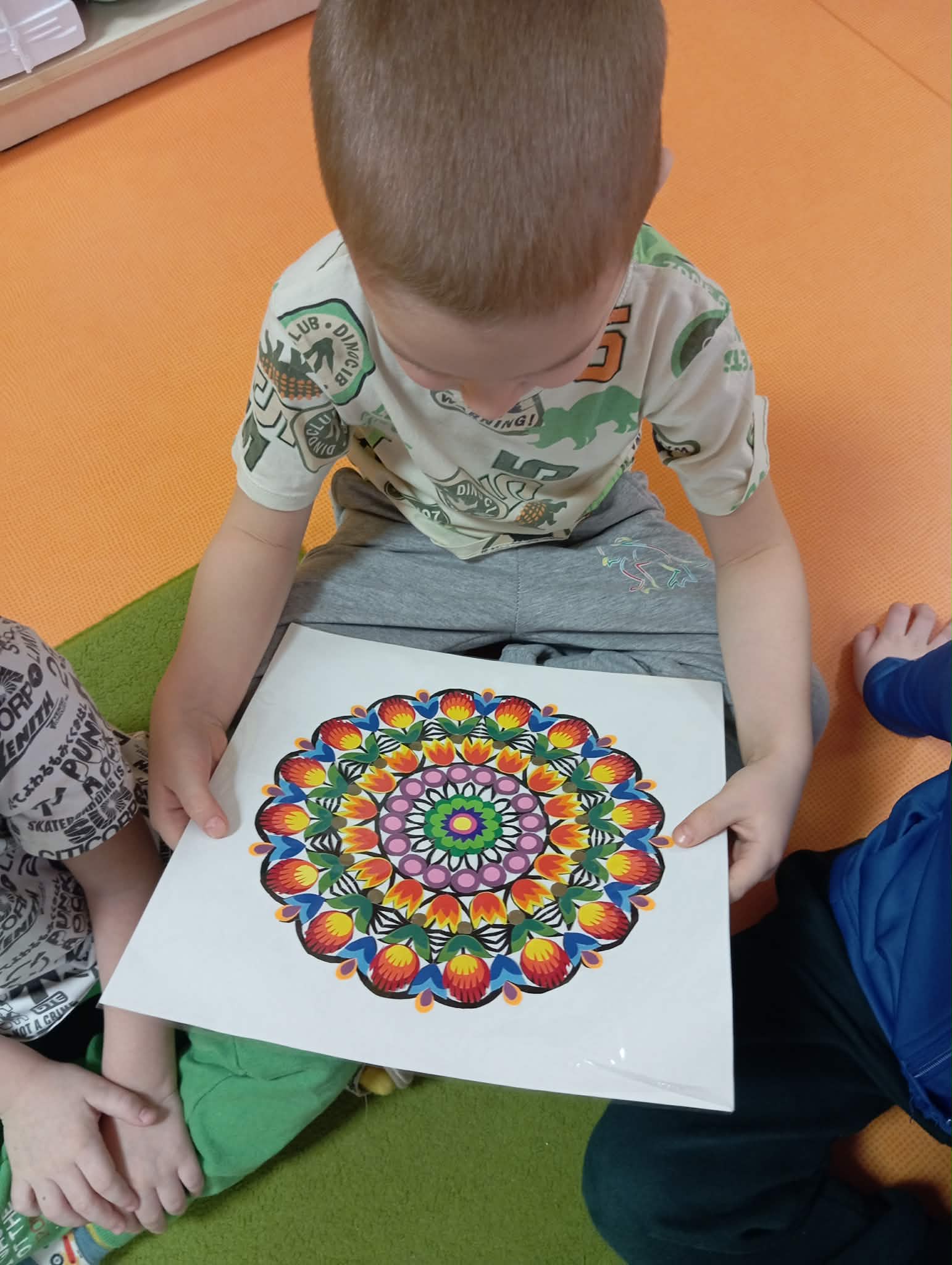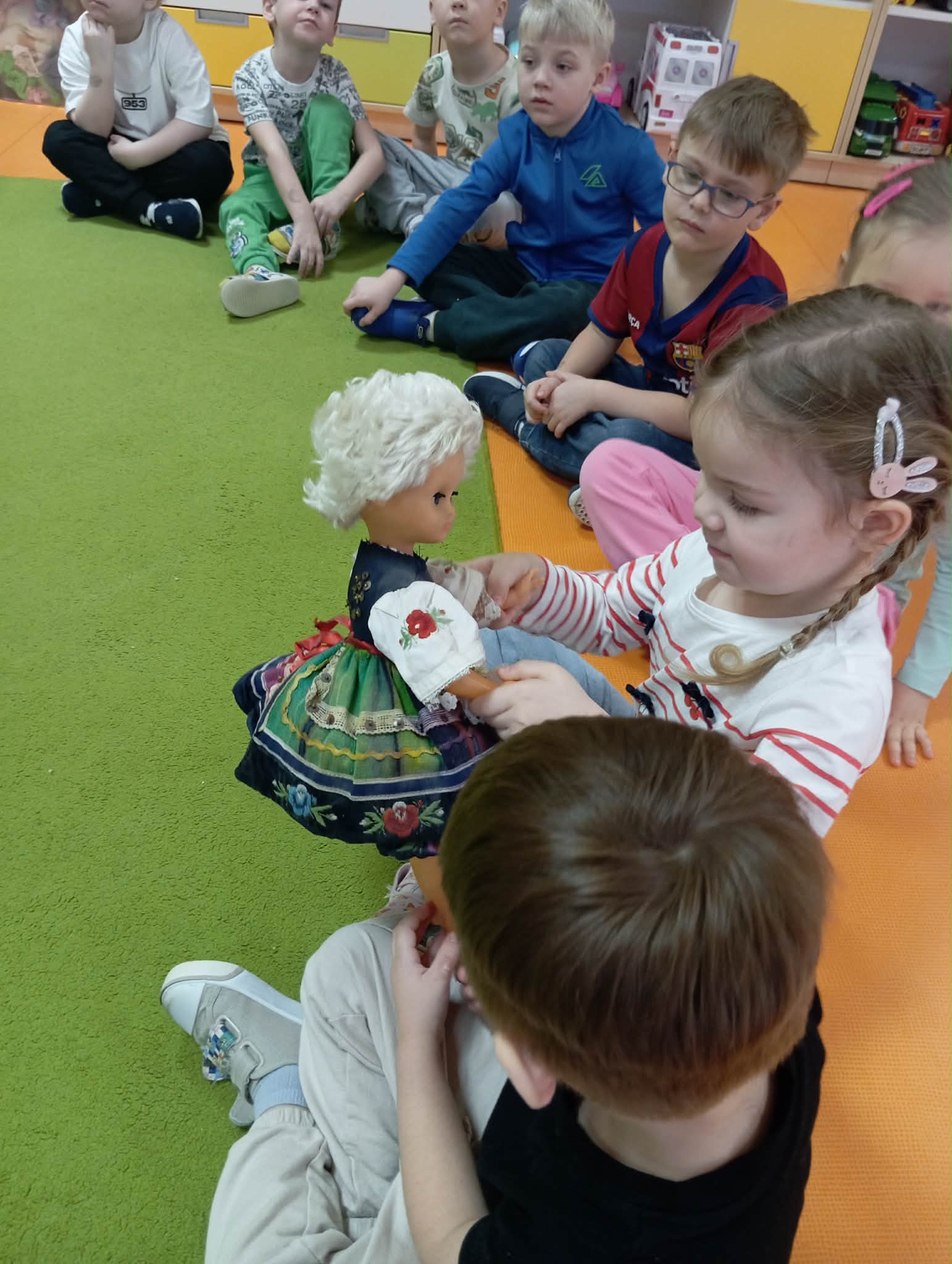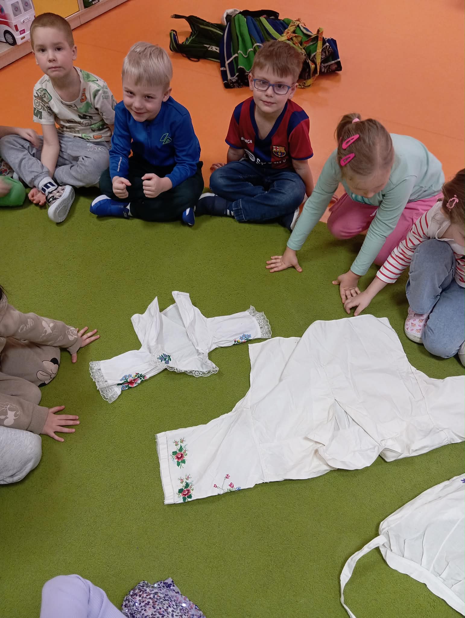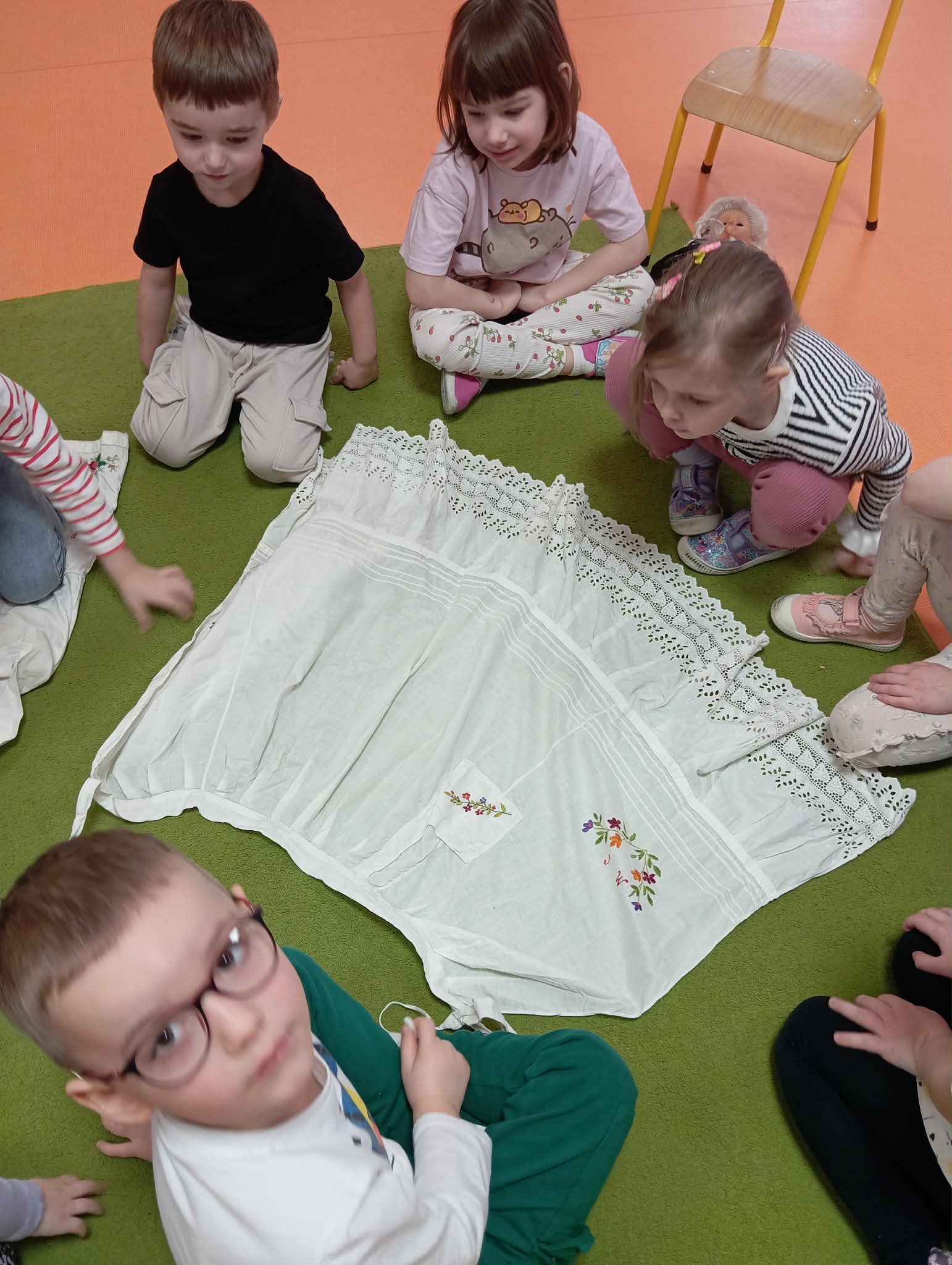 Na dzisiejszych zajęciach Morelki poznały łowicki folklor, sztukę tworzenia wycinanek. Miały okazję obejrzenia i przymierzenia łowickiego, damskiego stroju. Dzieci z zainteresowanie oglądały łowickicie tańce oraz słuchały regionalnej muzyki.