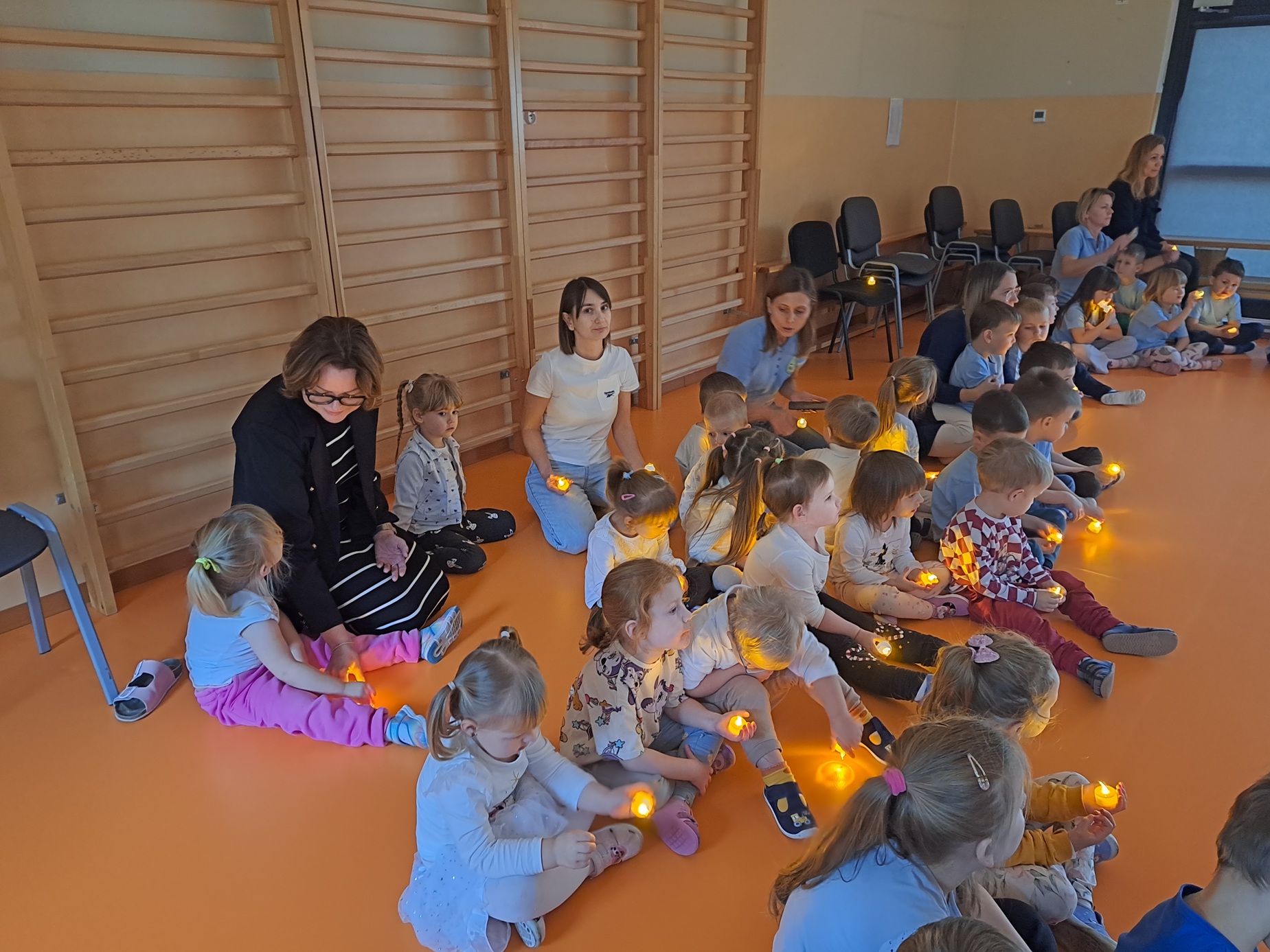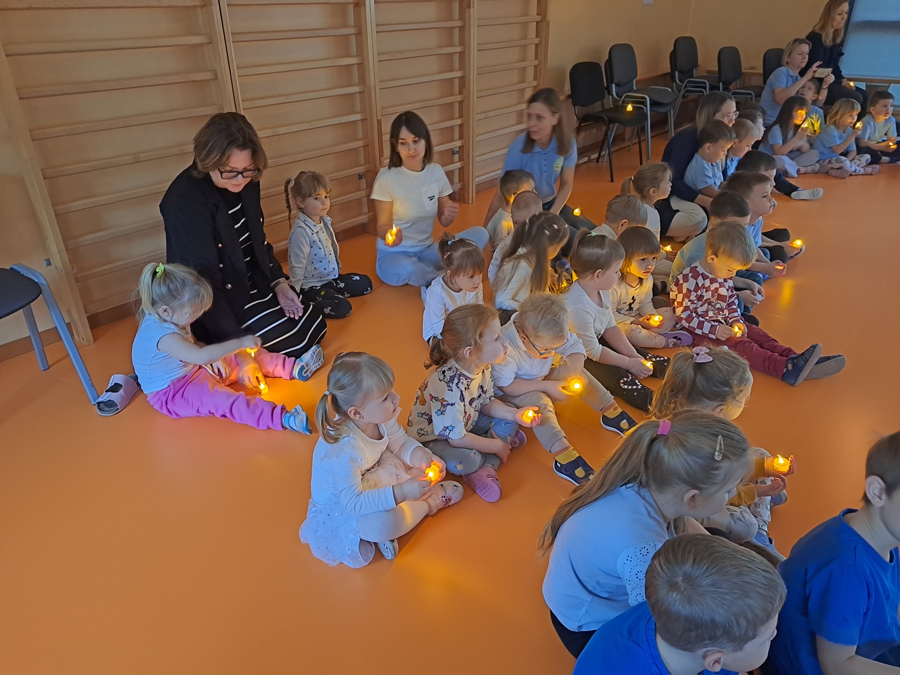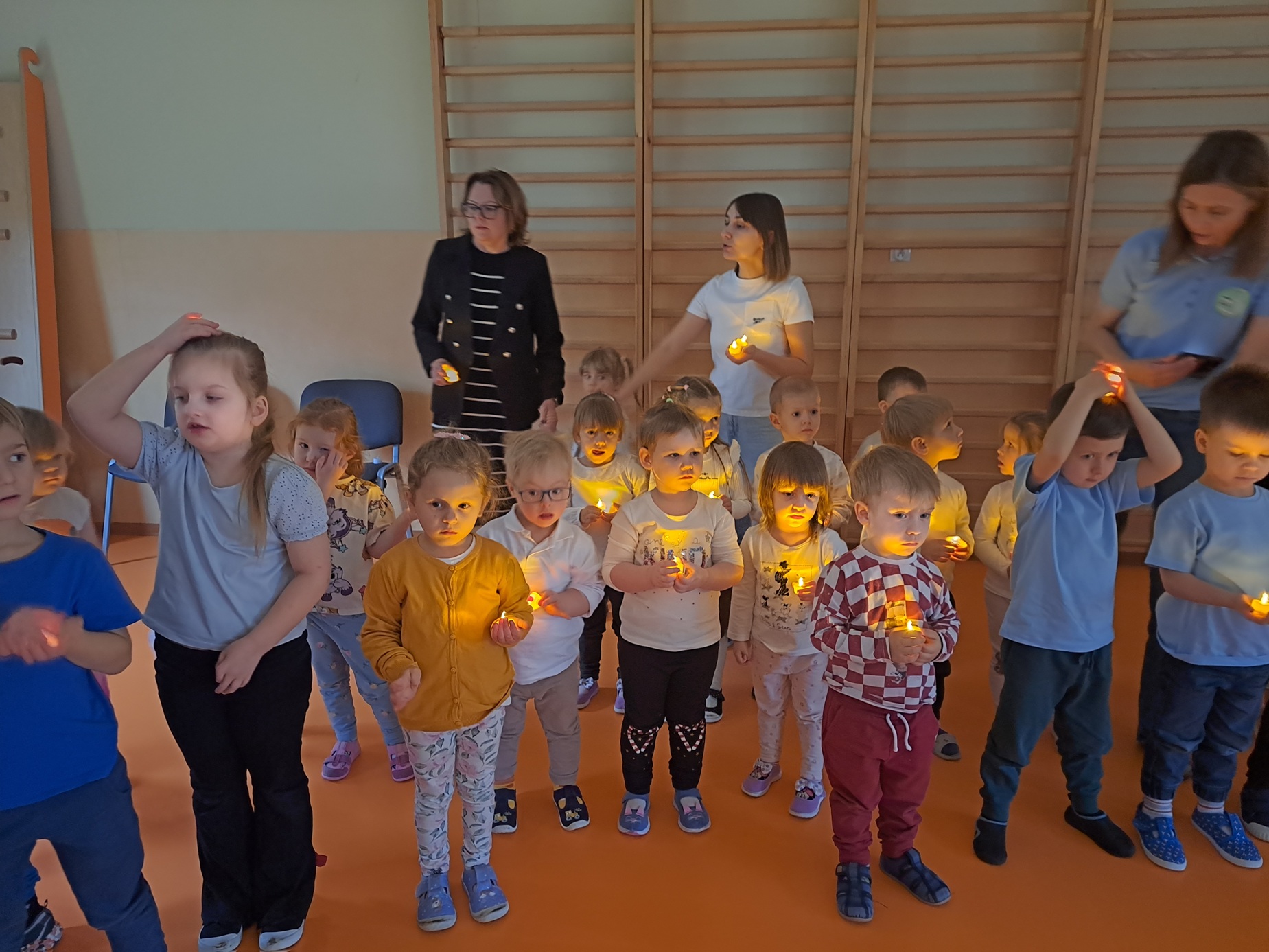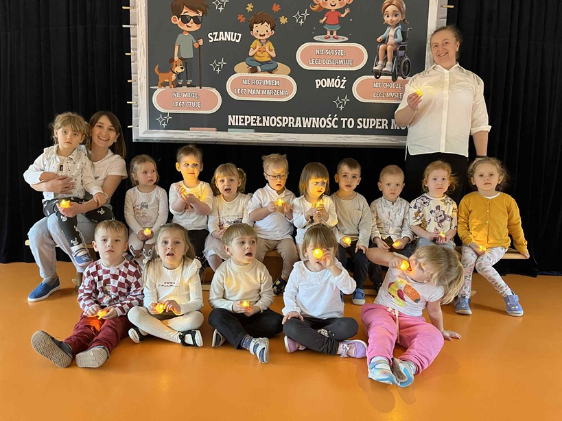 W naszym przedszkolu obchodziliśmy Dzień Osób Niepełnosprawnych w ramach projektu "Razem w Różnorodności". Był to dzień rozmów i wspólnych działań. W naszej grupie odbyły się rozmowy, podczas których dzieci uczyły się empatii, tolerancji i akceptacji, a także tego jak pomagać i wspierać innych. Zajęcia były dostosowane do wieku dzieci i sprzyjały budowaniu wrażliwości na potrzeby innych. Kolor koszulek naszej grupy, miał swoje znaczenie - biały symbolizował niepełnosprawność niewidoczną. Dzieci z naszej grupy wraz z innymi dziećmi zaśpiewały piosenkę "W przyjaźni jest siła" i wzniosły światełka przyjaźni.