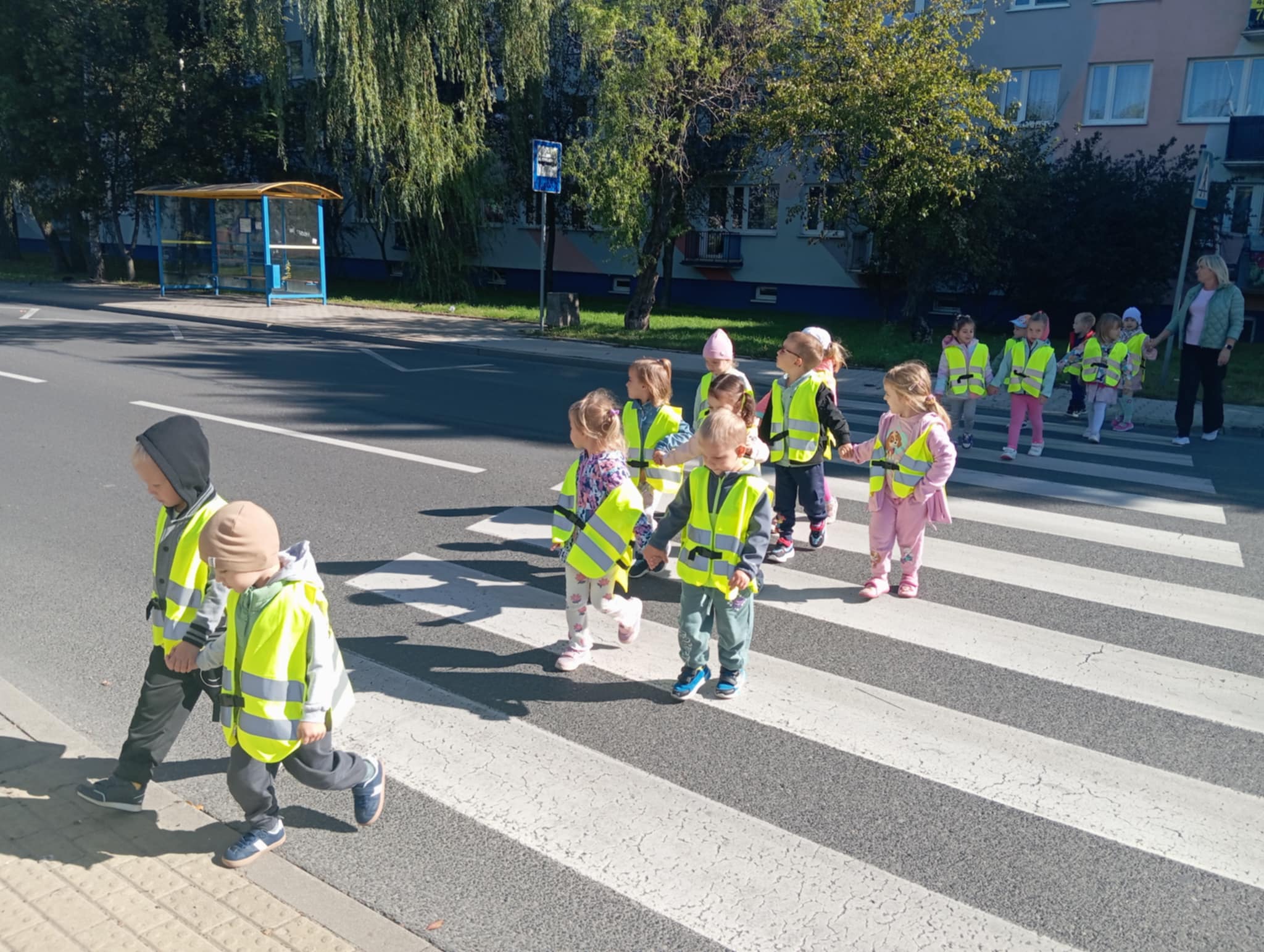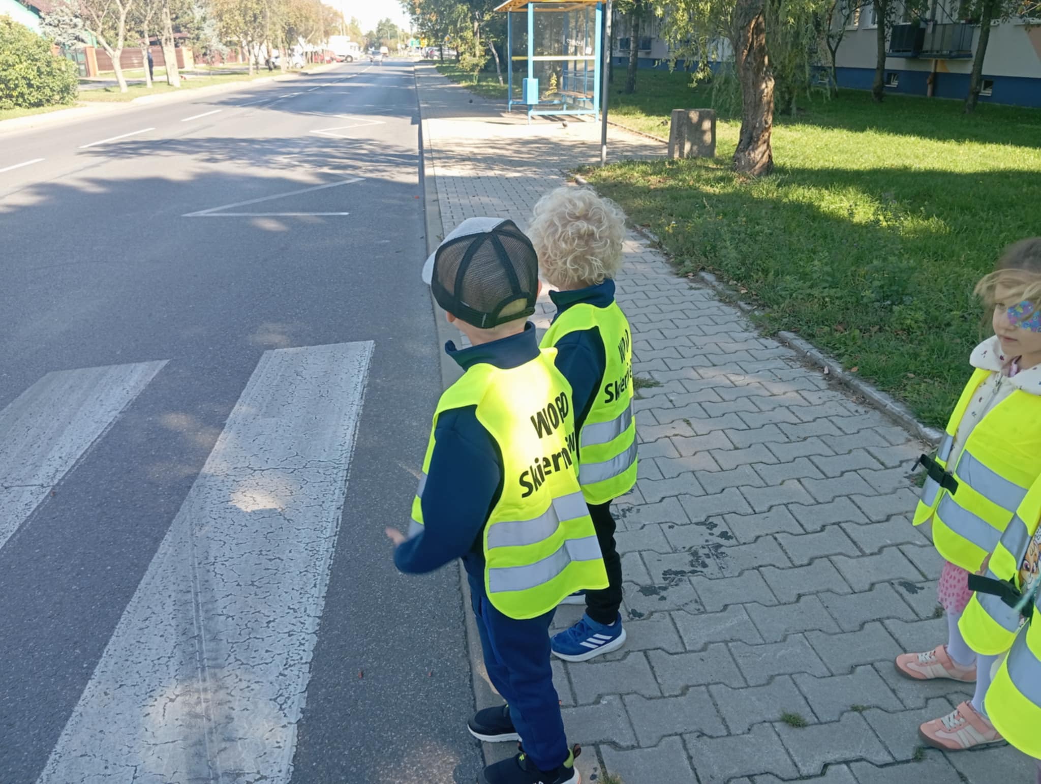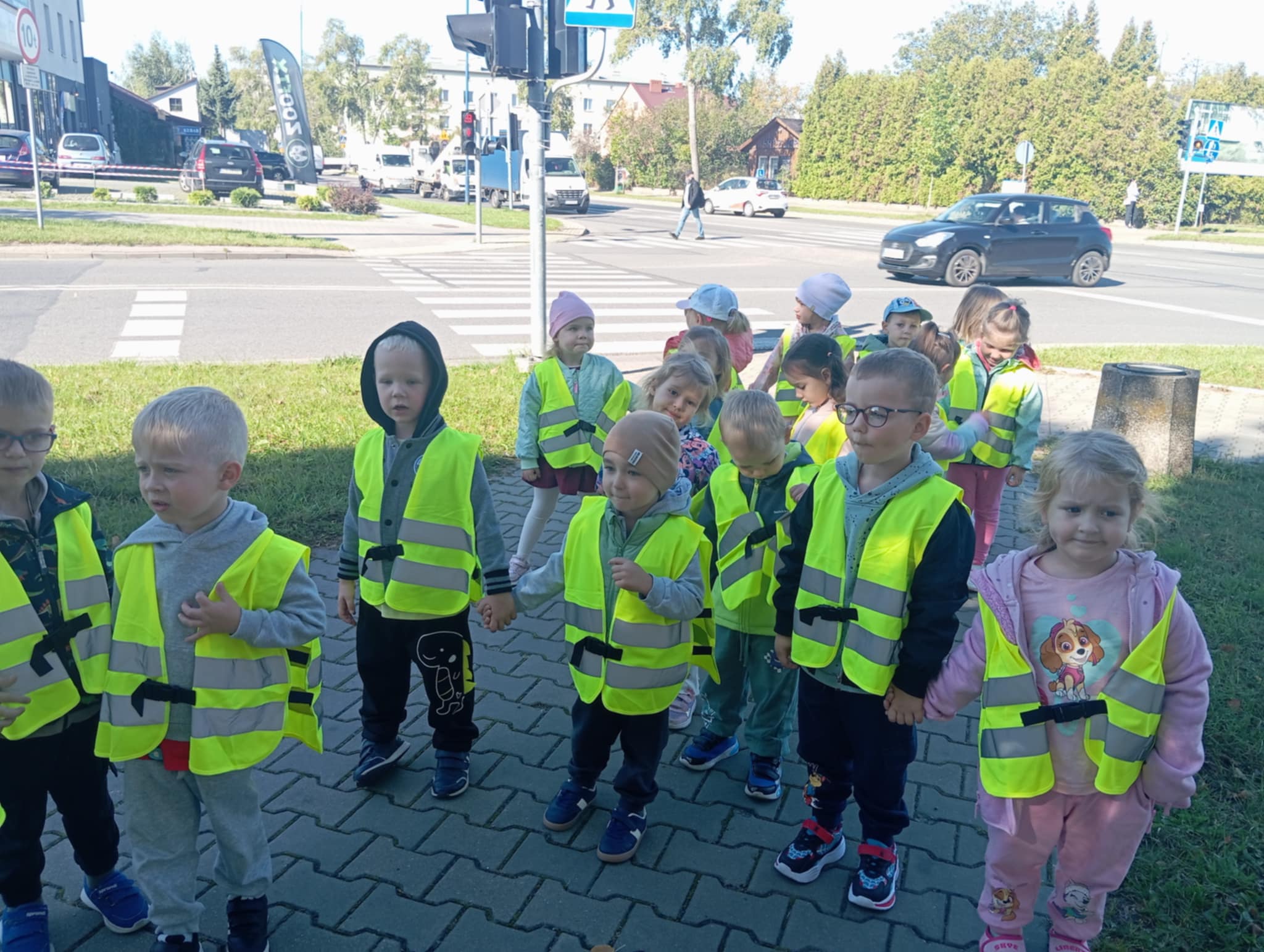 Bezpieczeństwo jest zawsze najważniejsze. Dbamy o bezpieczne zabawy w przedszkolu, ale również poza nim. Dzisiejszego dnia Morelki poznały zasady bezpiecznego i właściwego poruszania na drogach. A żeby zasady stały się dla dzieci jasne, wybraliśmy się wszyscy na spacer. Poznaliśmy różne typy przejść dla pieszych oraz omówiliśmy zasady poruszania się po nich. Dzięki specjalnym kamizelkom, które otrzymaliśmy z Wojewódzkiego Ośrodka Ruchu Drogowego, dzieci były odpowiednio zauważalne na drodze.