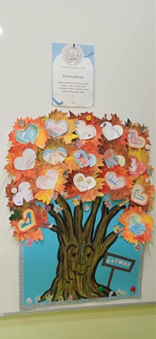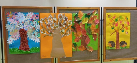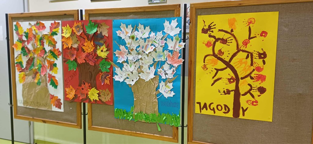 Powyżej wystawa drzew - przygotowana przez dzieci z poszczególnych grup wraz z nauczycielkami. Dzięki nim pokazały swoją różnorodność.