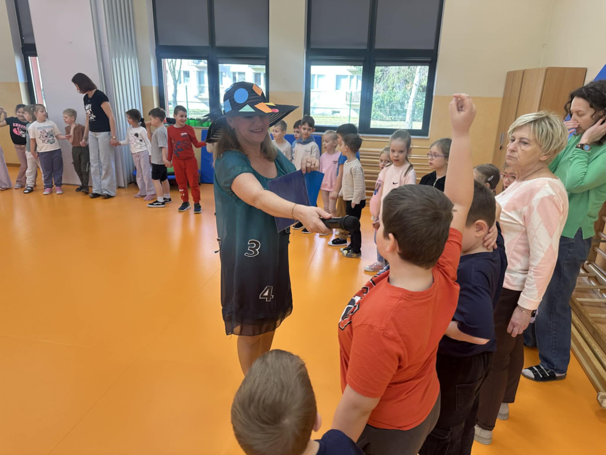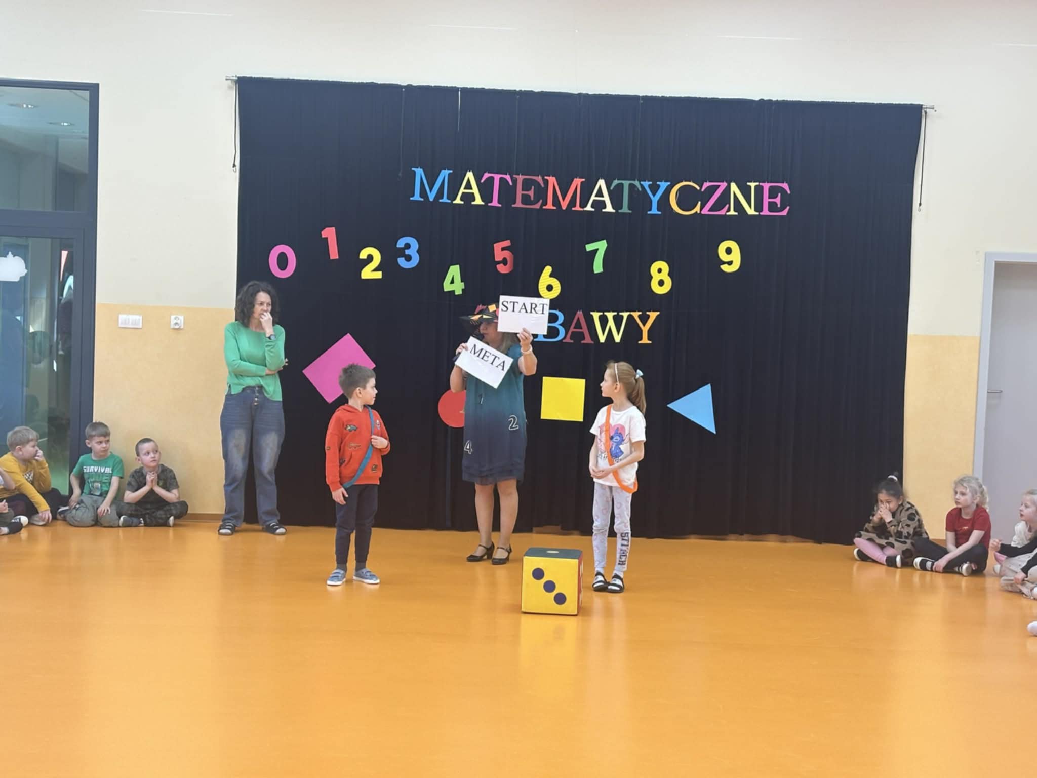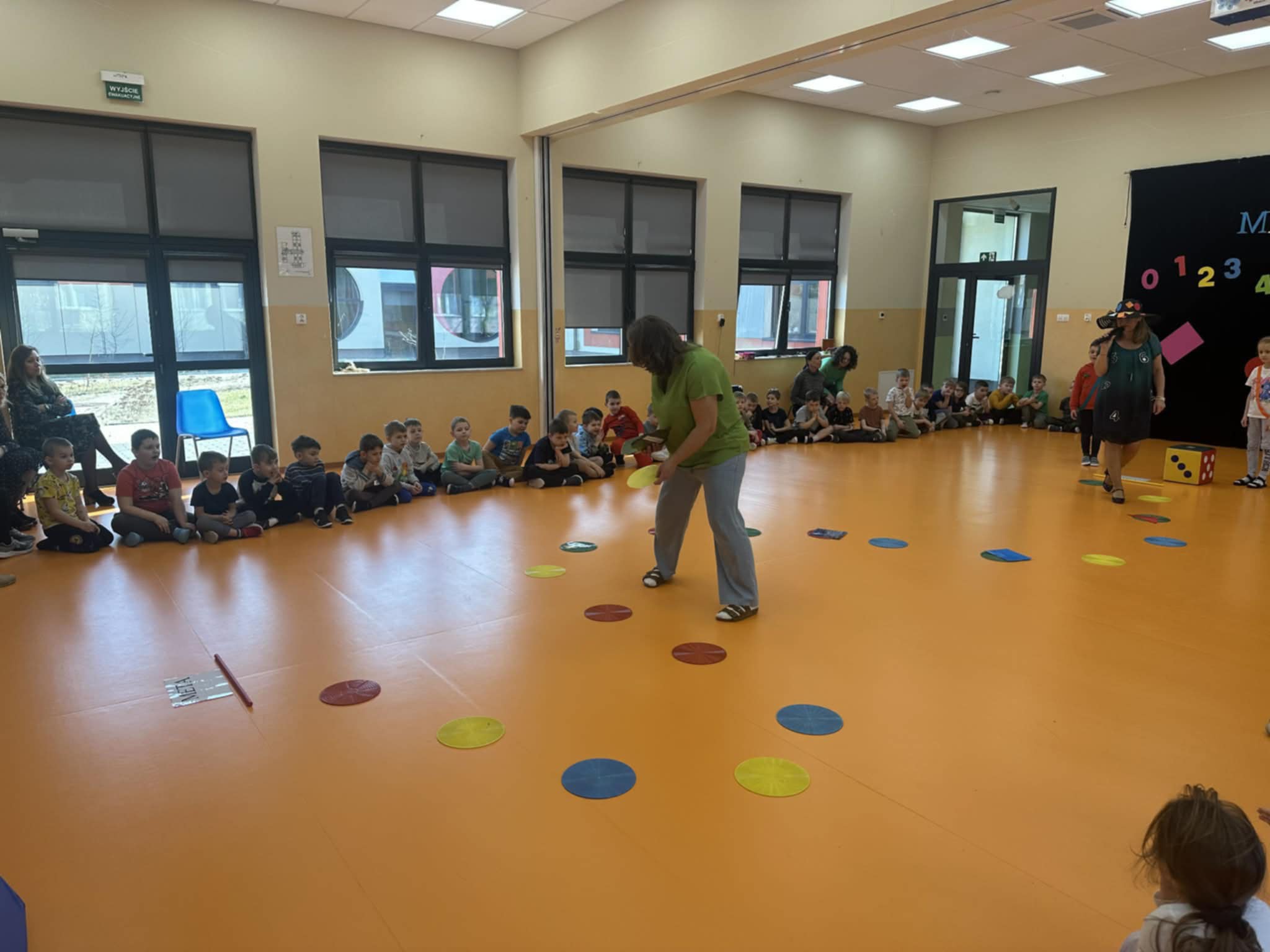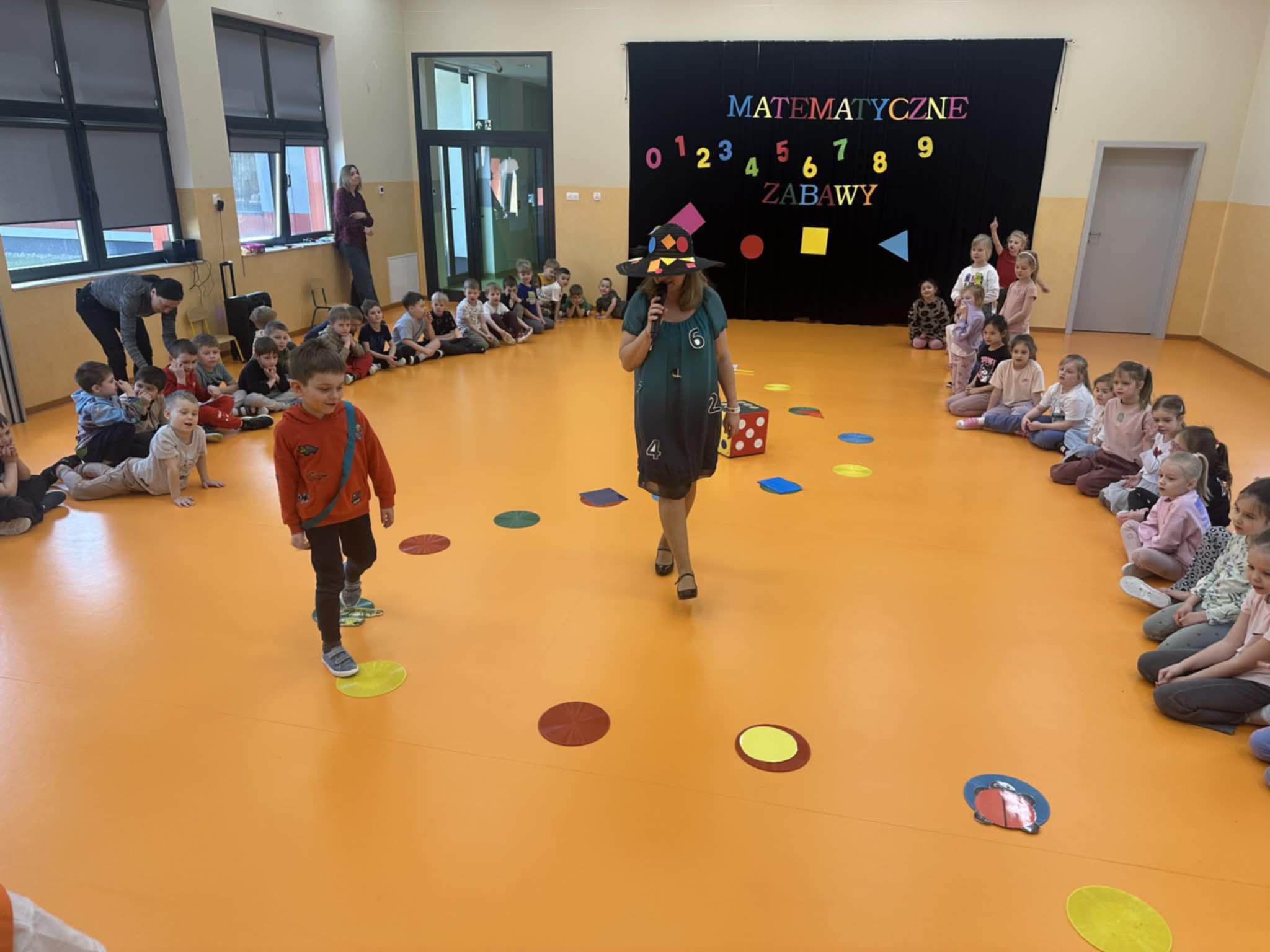 Dziś w naszym przedszkolu obchodziliśmy ogólnopolski dzień matematyki. Trzy grupy starszaków spotkały się na sali gimnastycznej. Tam odwiedziła je "Pani Matematyka" z którą przedszkolaki bawiły się wesoło. Dowiedziały się co to jest matematyka, dlaczego jest potrzebna w życiu człowieka. Uczestniczyły w różnych ciekawych zabawach matematycznych i skonstruowały oraz rozegrały grę ścigankę. Młodsze dzieci natomiast obchodziły dzisiejsze święto w swoich grupach uczestnicząc tam w matematycznych wyzwaniach.