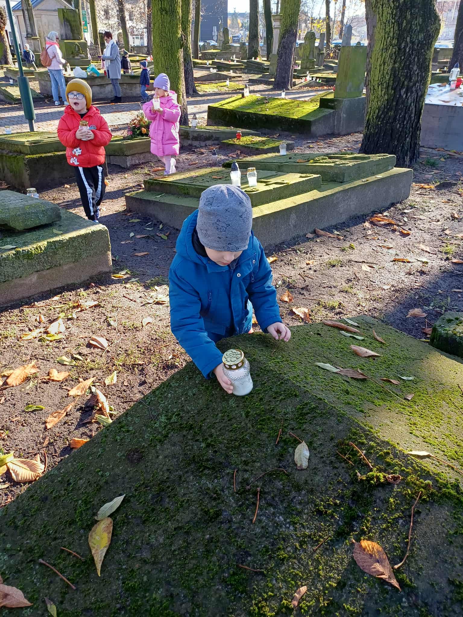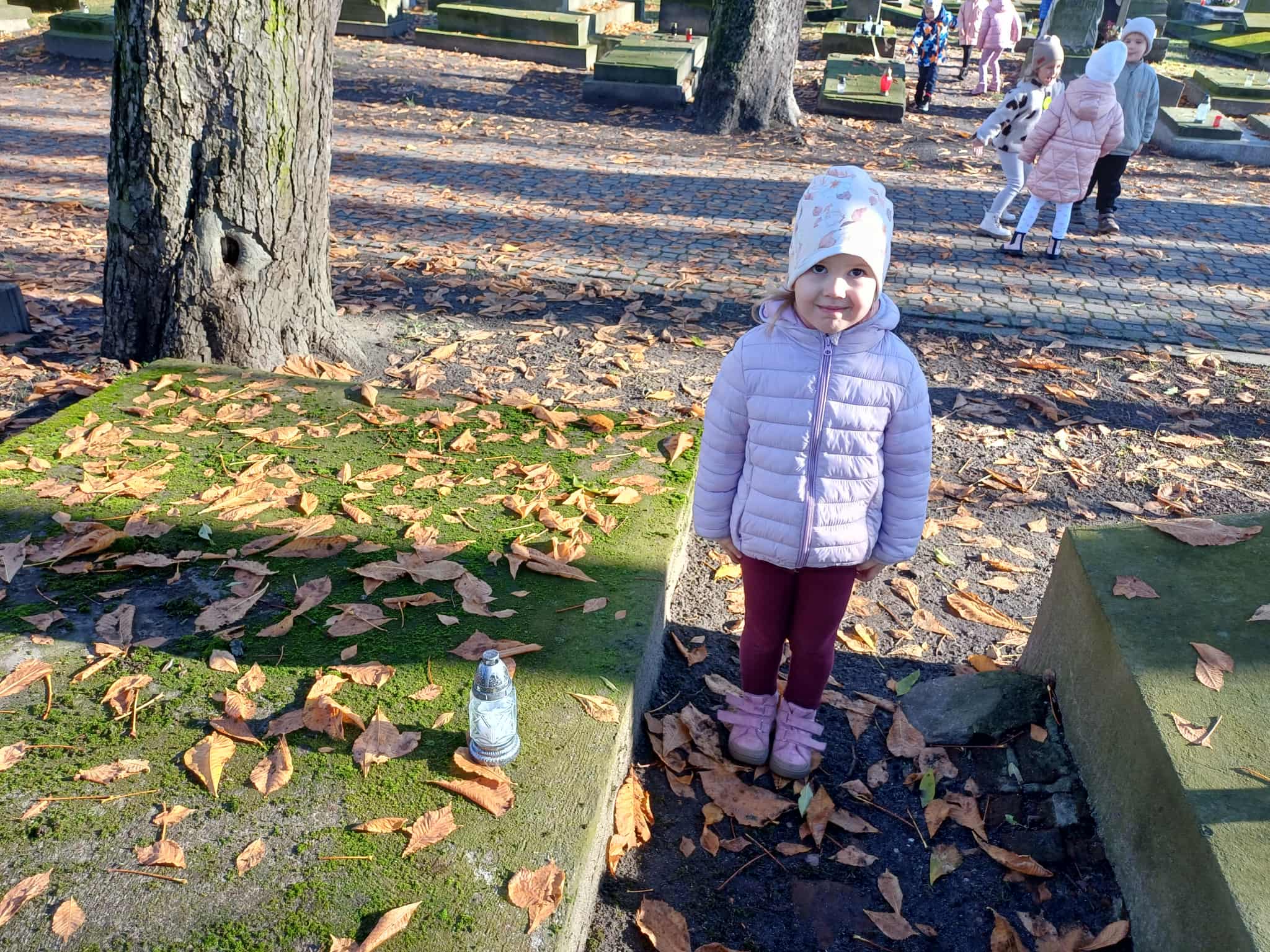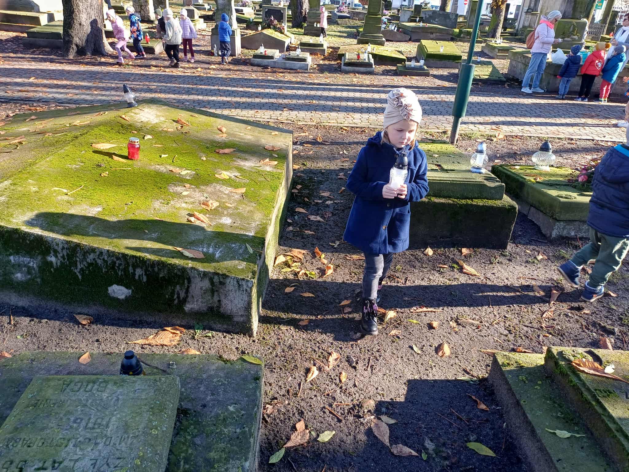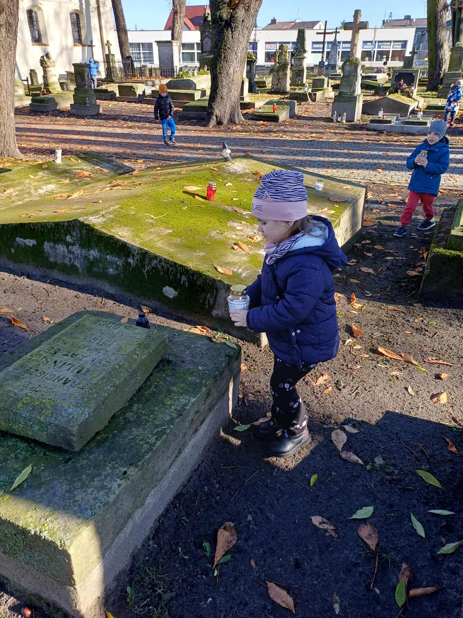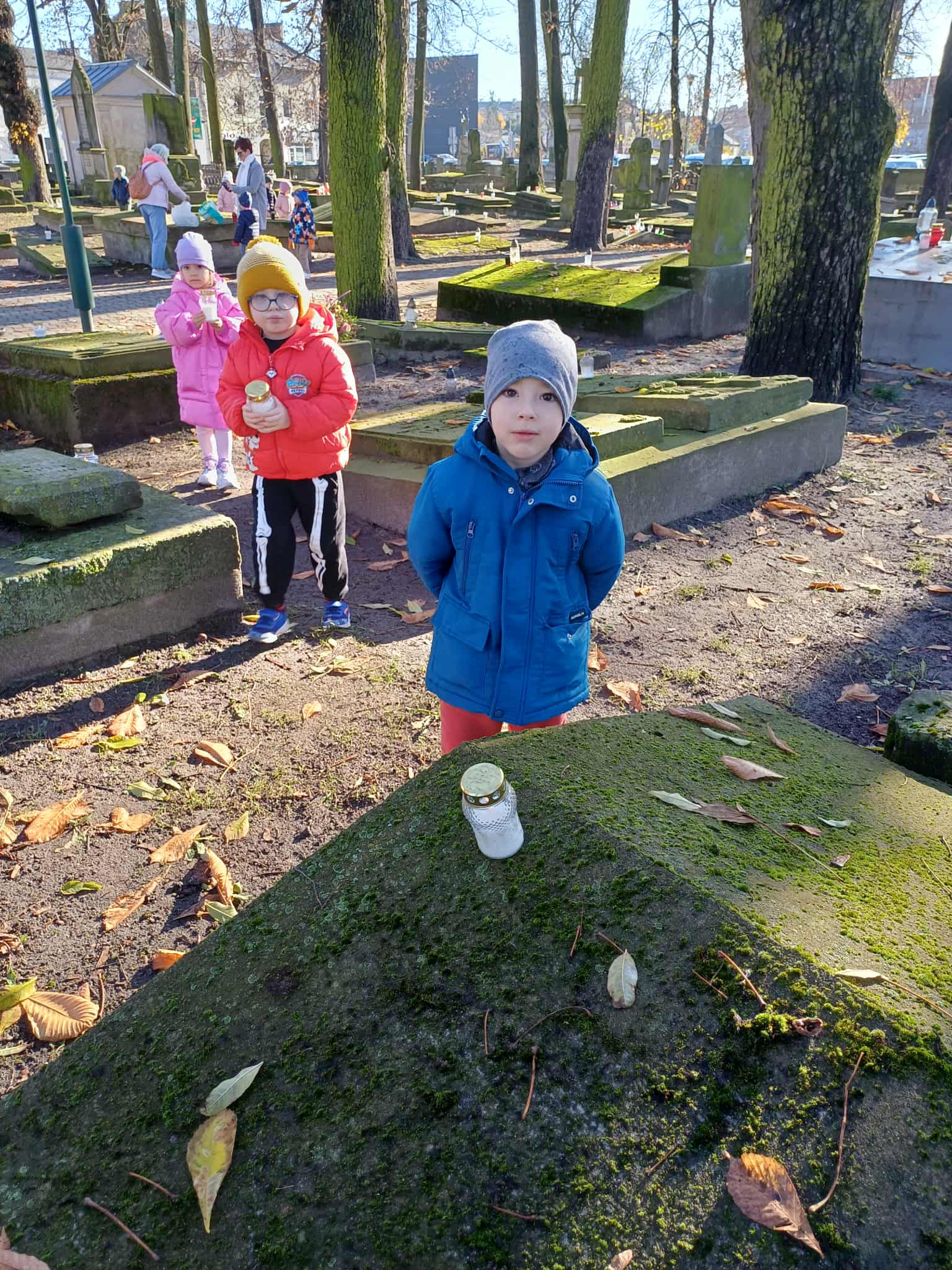 Dzisiaj odwiedziliśmy najstarszy w naszym mieście cmentarz przy kościele Świętego Stanisława. Posłuchaliśmy opowiadań naszych pań i wspólnie w ciszy zapaliliśmy znicze na grobach.