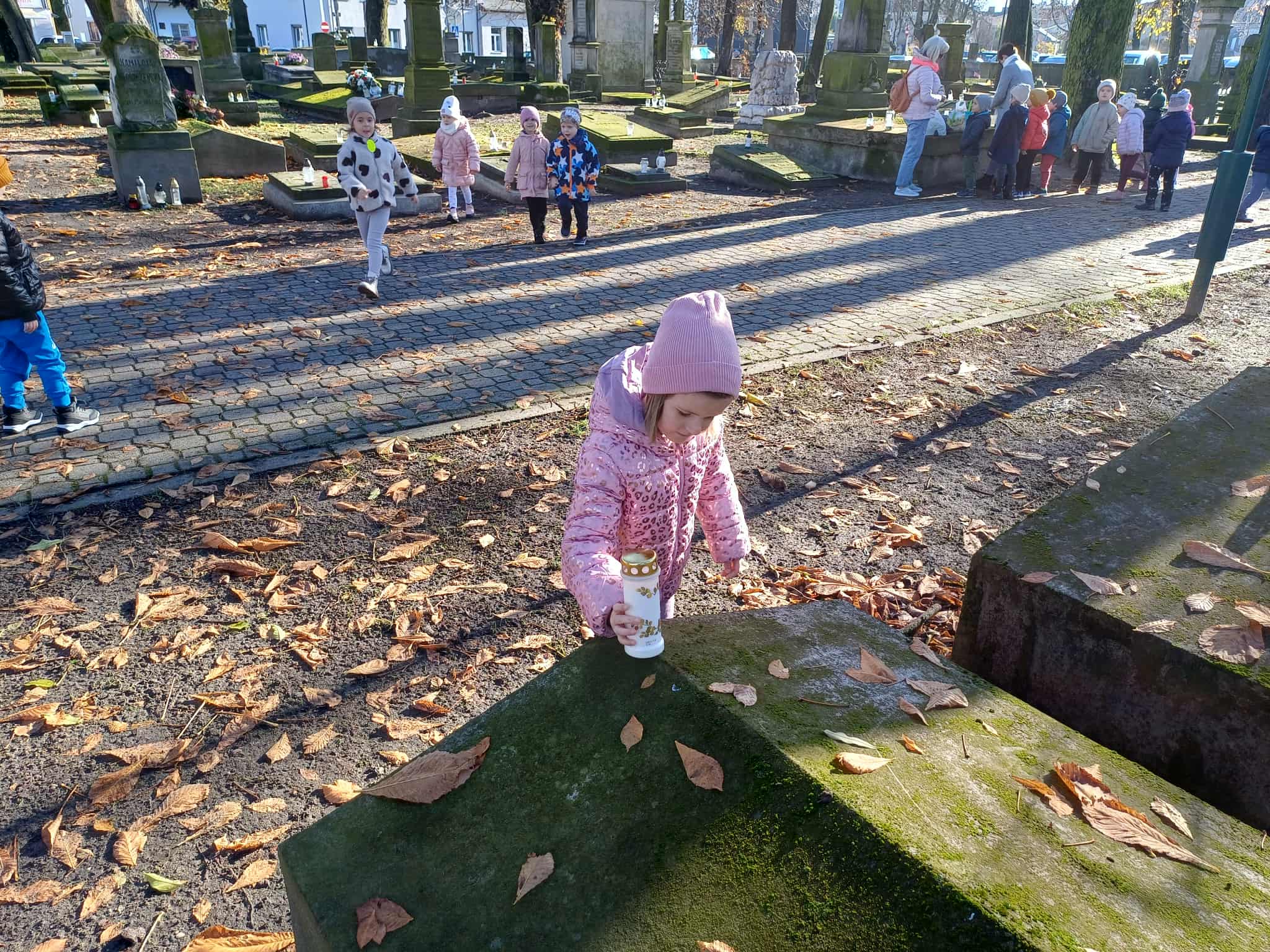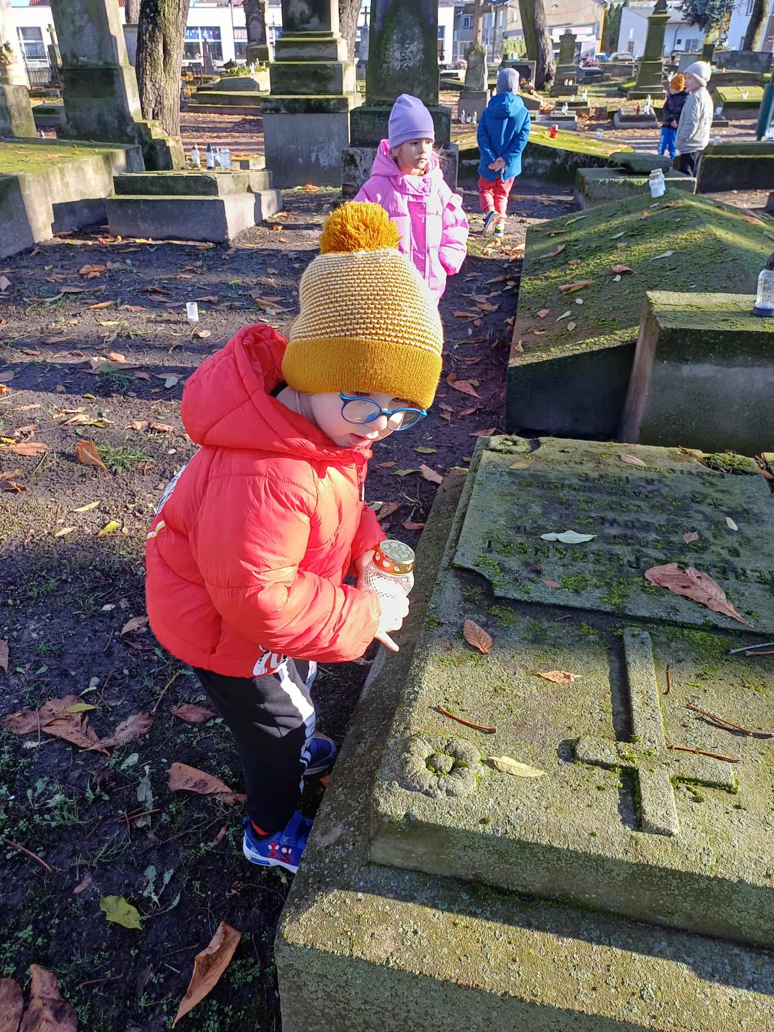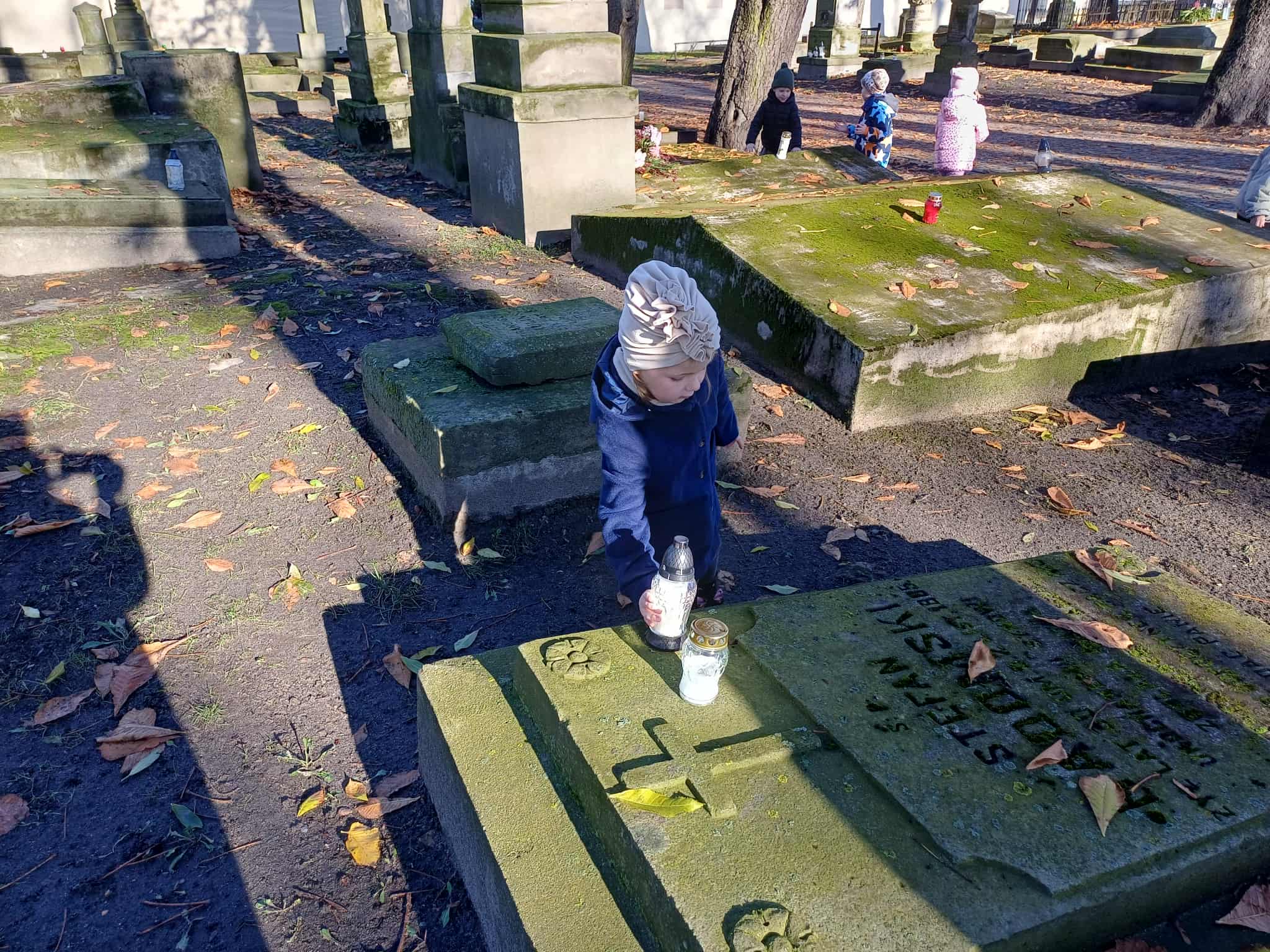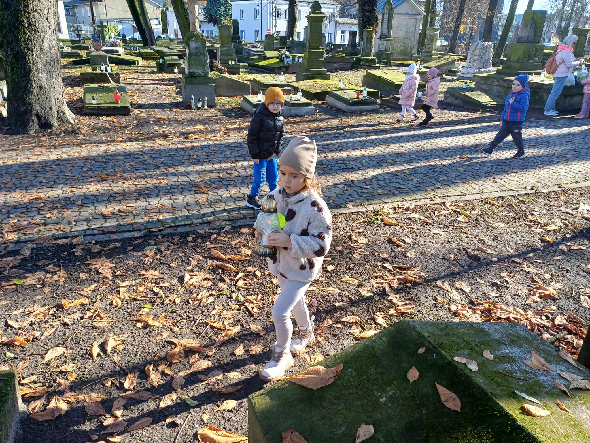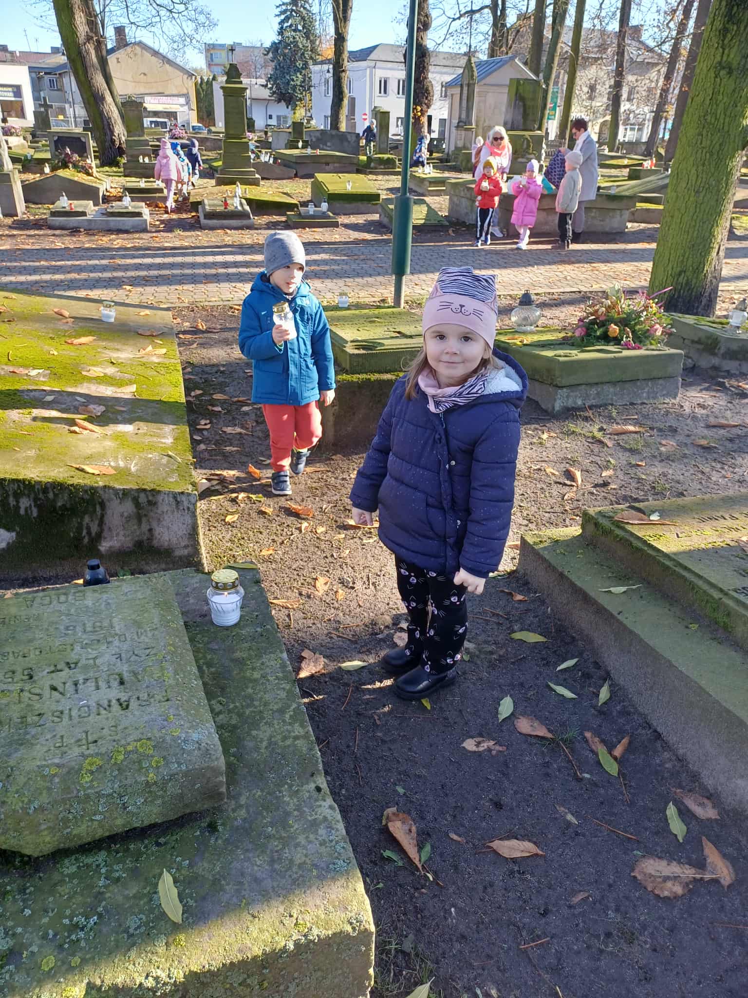 Dzisiaj odwiedziliśmy najstarszy w naszym mieście cmentarz przy kościele Świętego Stanisława. Posłuchaliśmy opowiadań naszych pań i wspólnie w ciszy zapaliliśmy znicze na grobach.