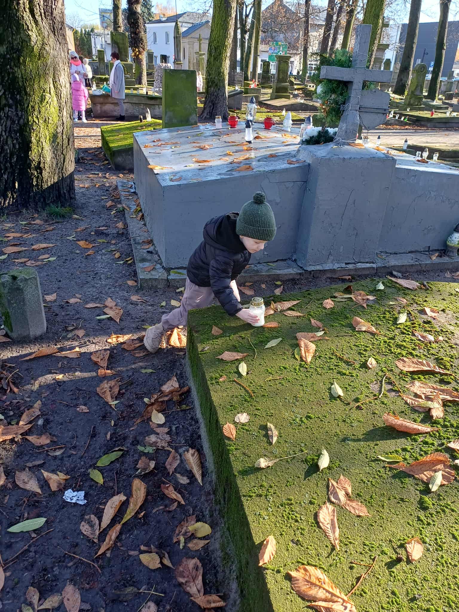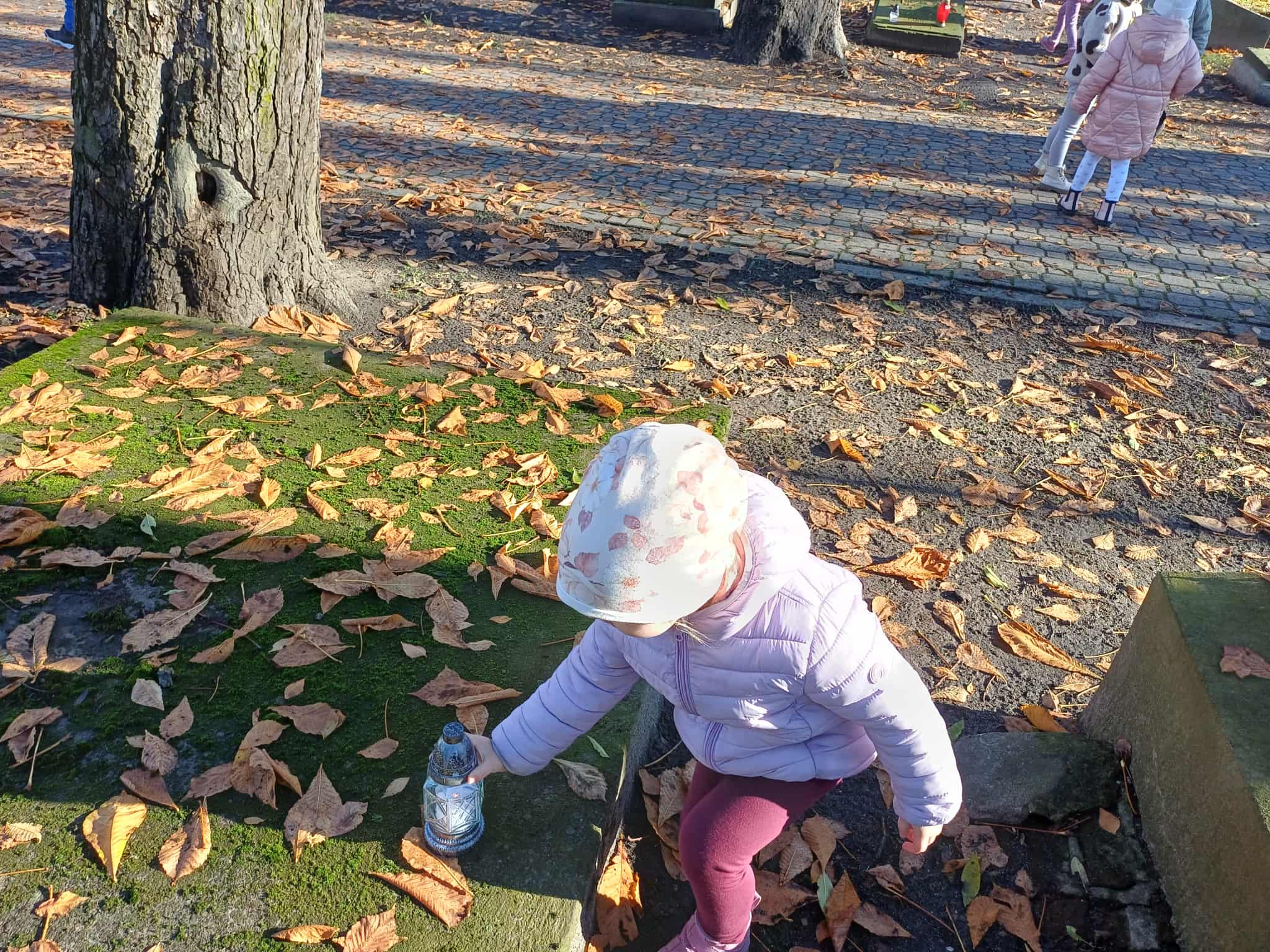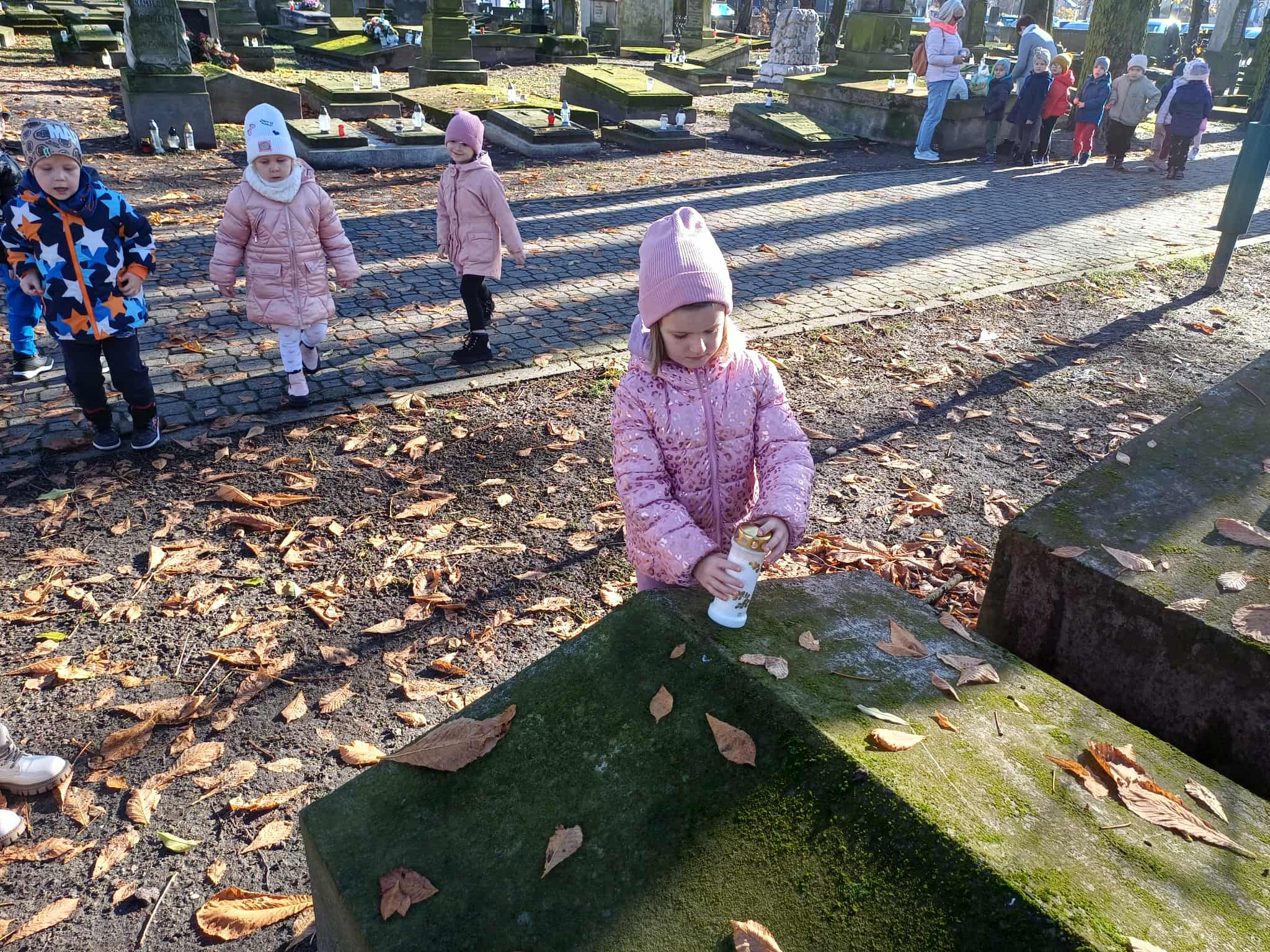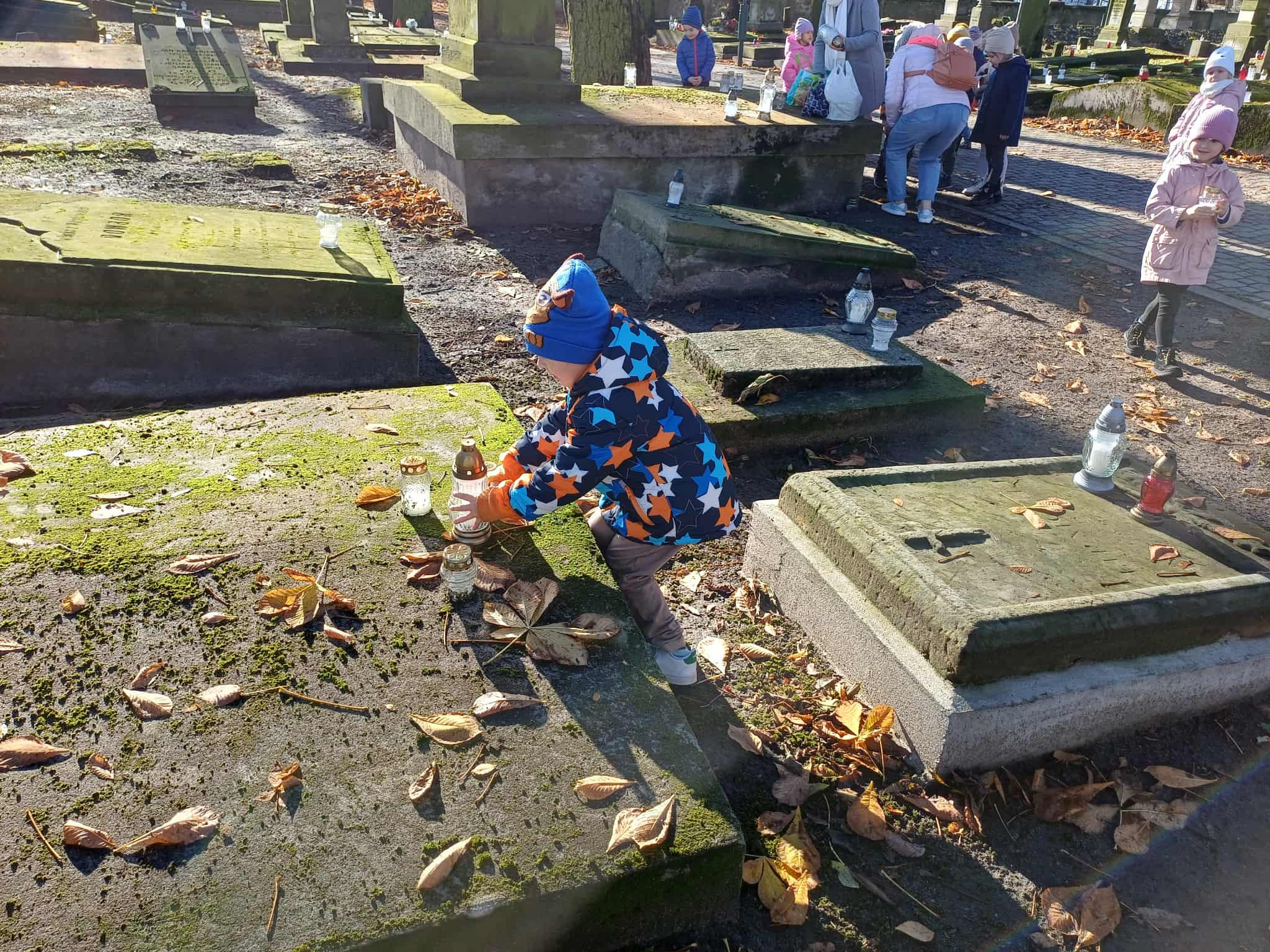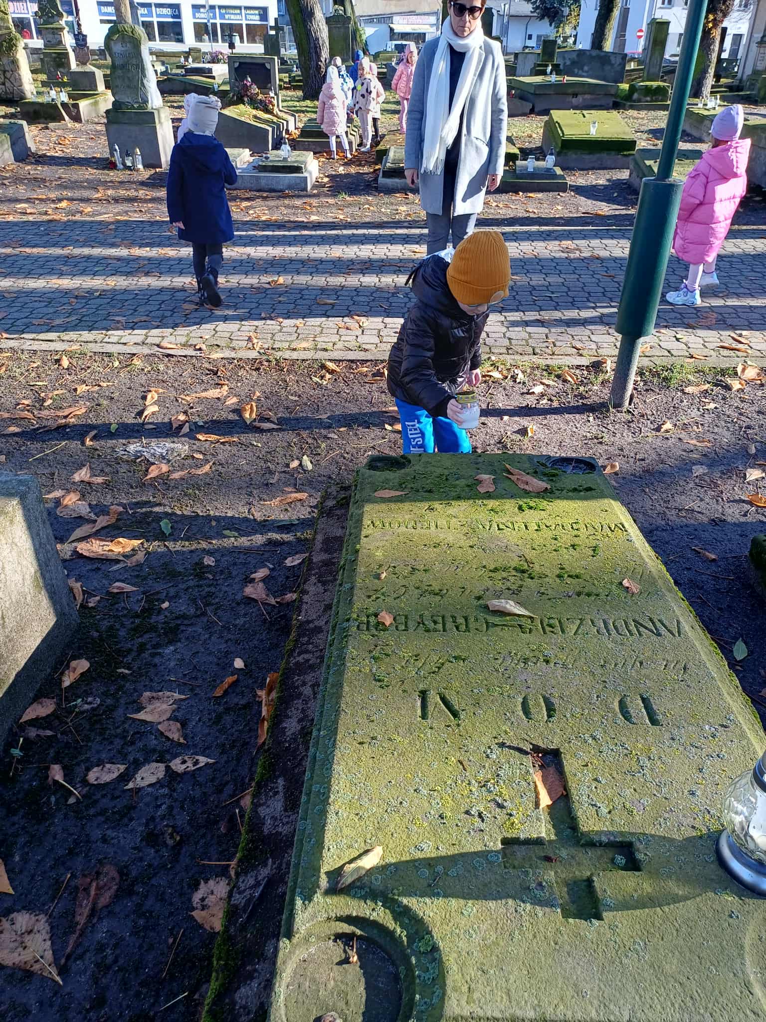 Dzisiaj odwiedziliśmy najstarszy w naszym mieście cmentarz przy kościele Świętego Stanisława. Posłuchaliśmy opowiadań naszych pań i wspólnie w ciszy zapaliliśmy znicze na grobach.