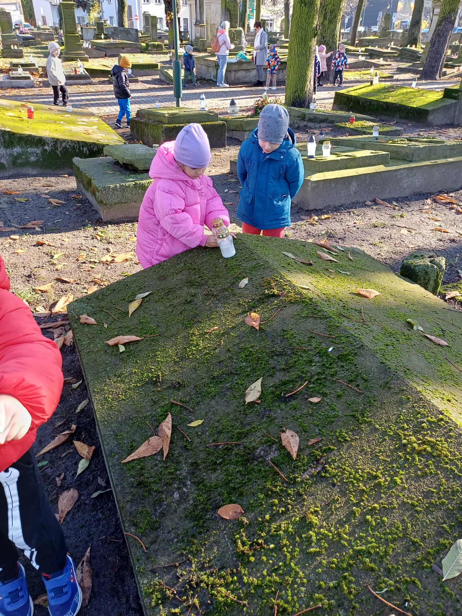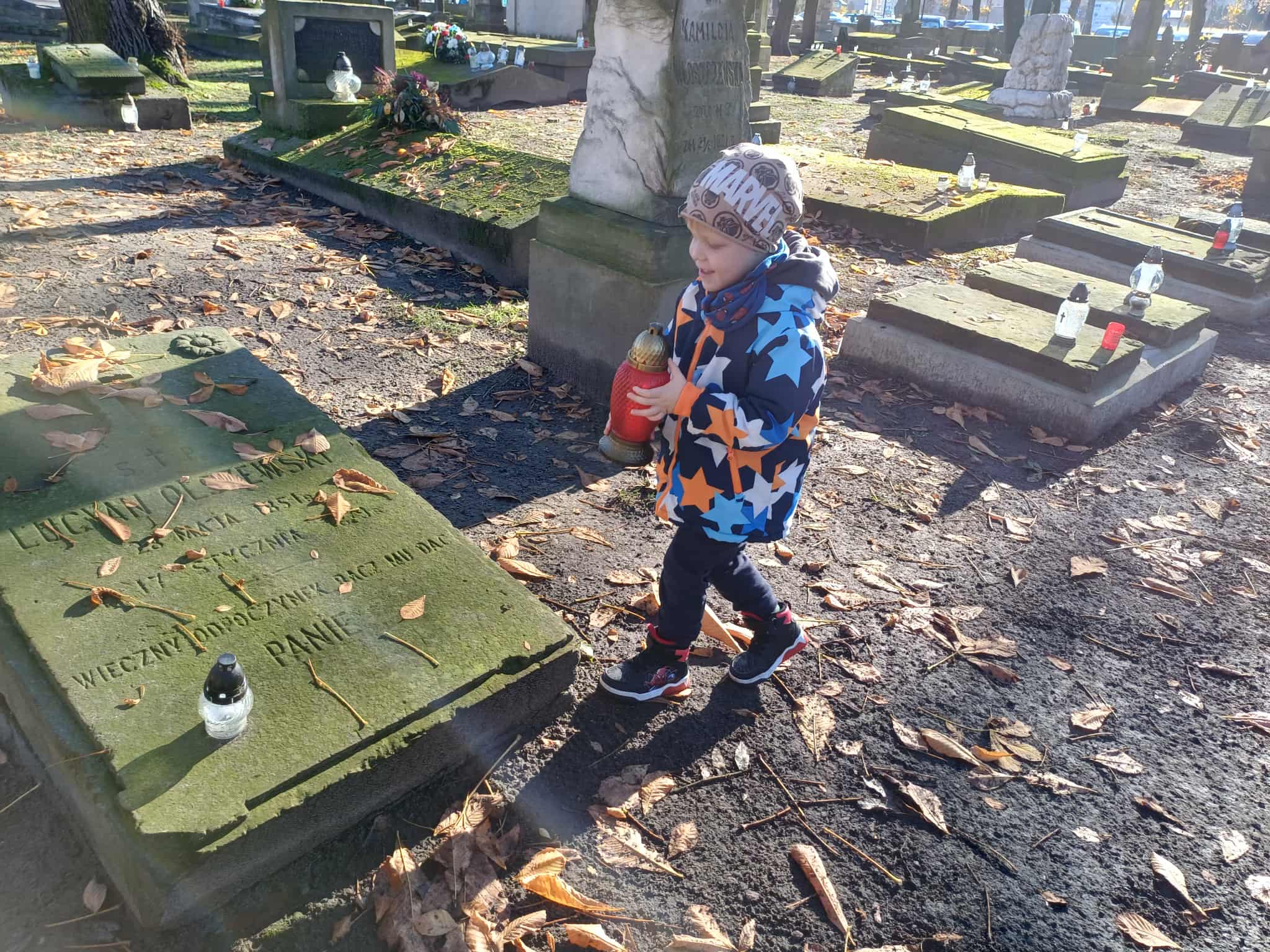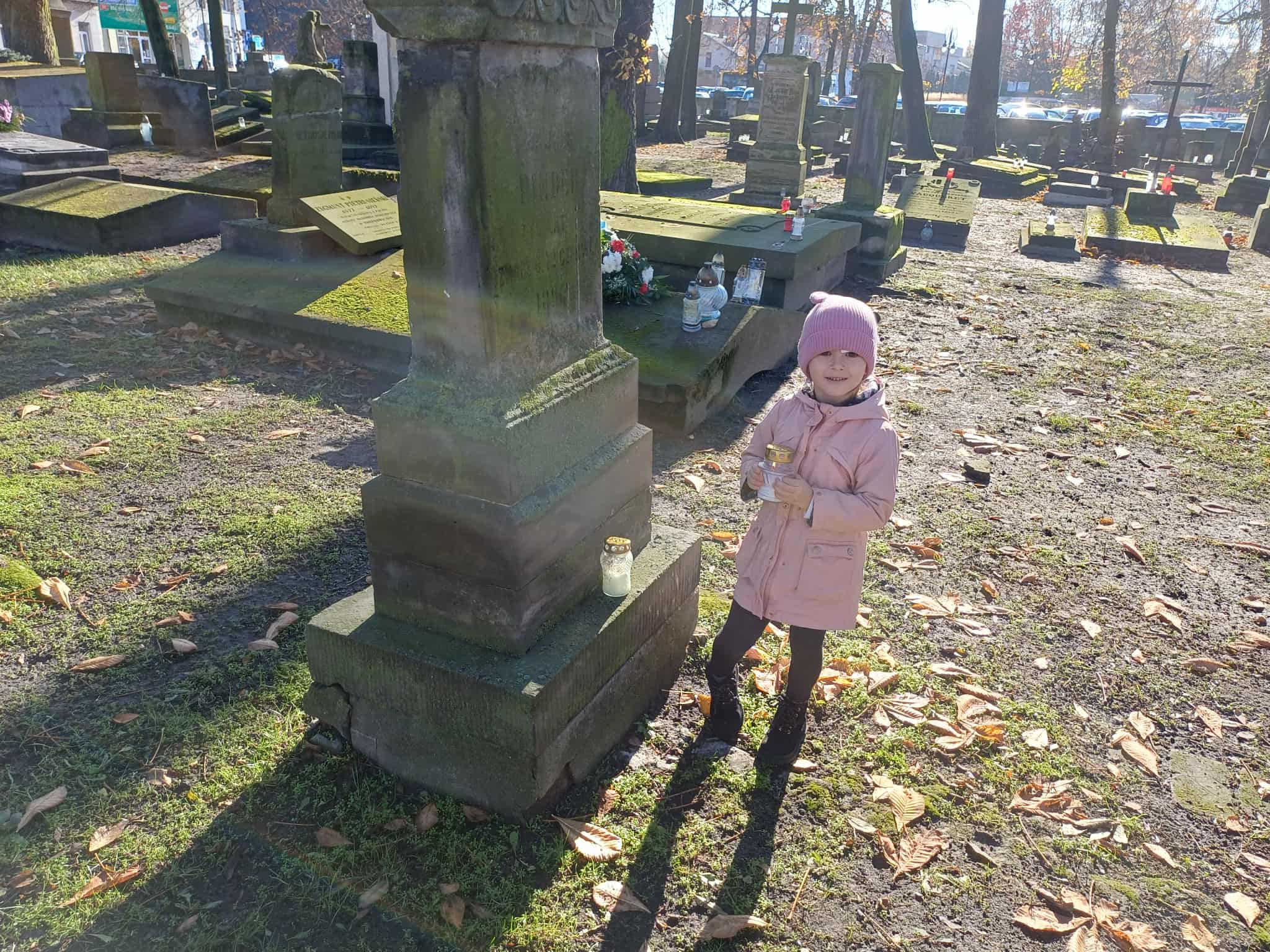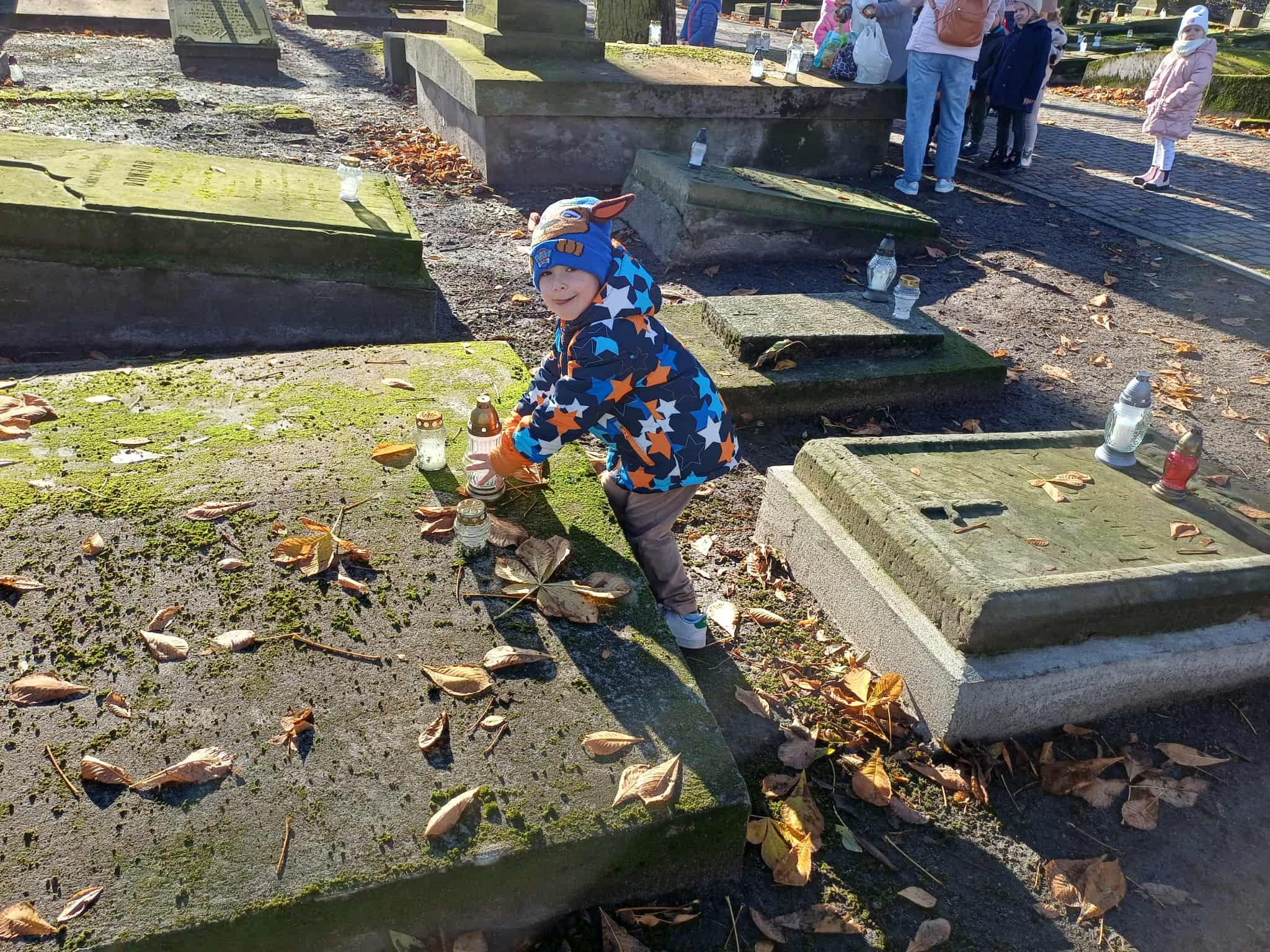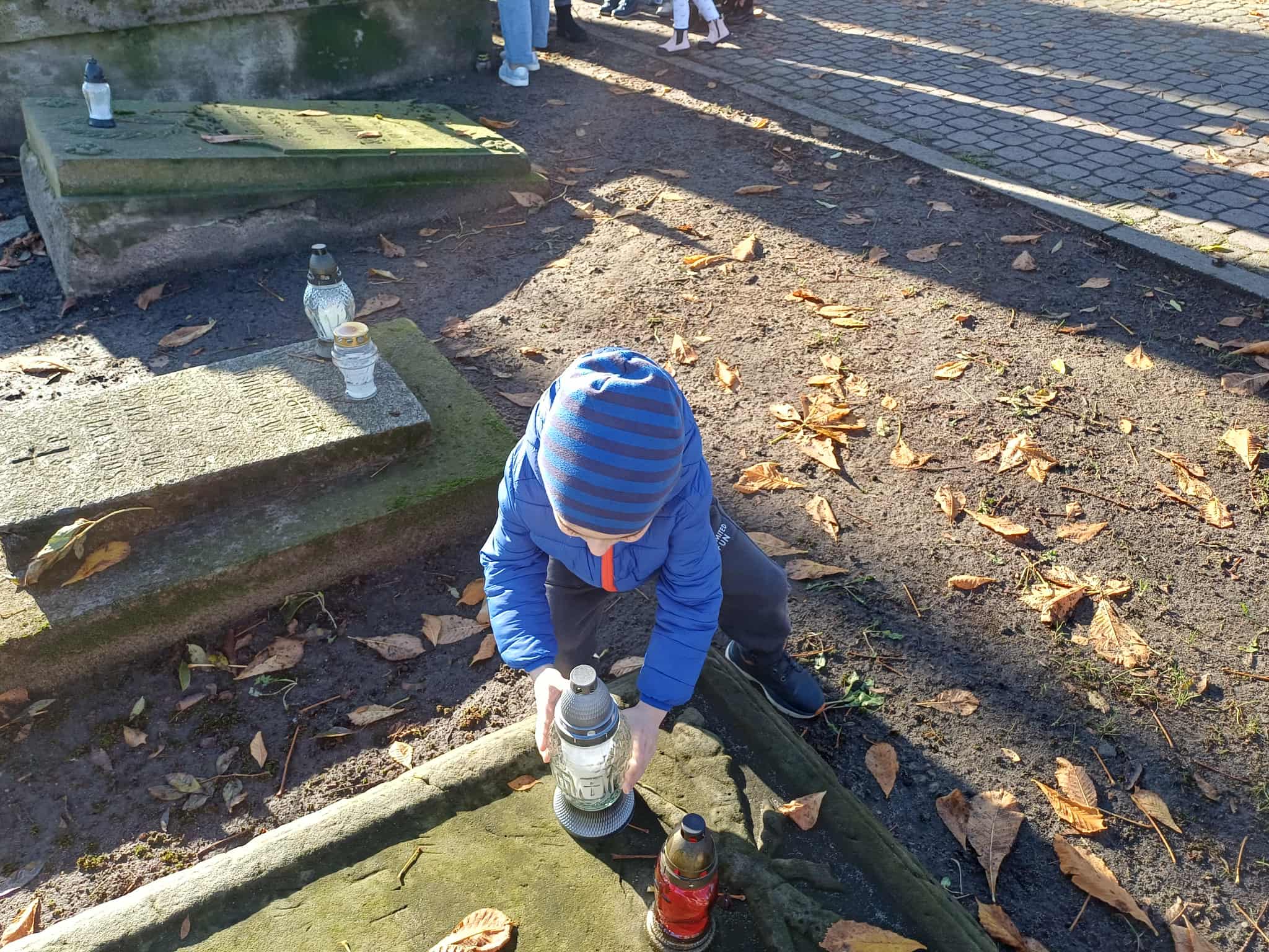 Dzisiaj odwiedziliśmy najstarszy w naszym mieście cmentarz przy kościele Świętego Stanisława. Posłuchaliśmy opowiadań naszych pań i wspólnie w ciszy zapaliliśmy znicze na grobach.
