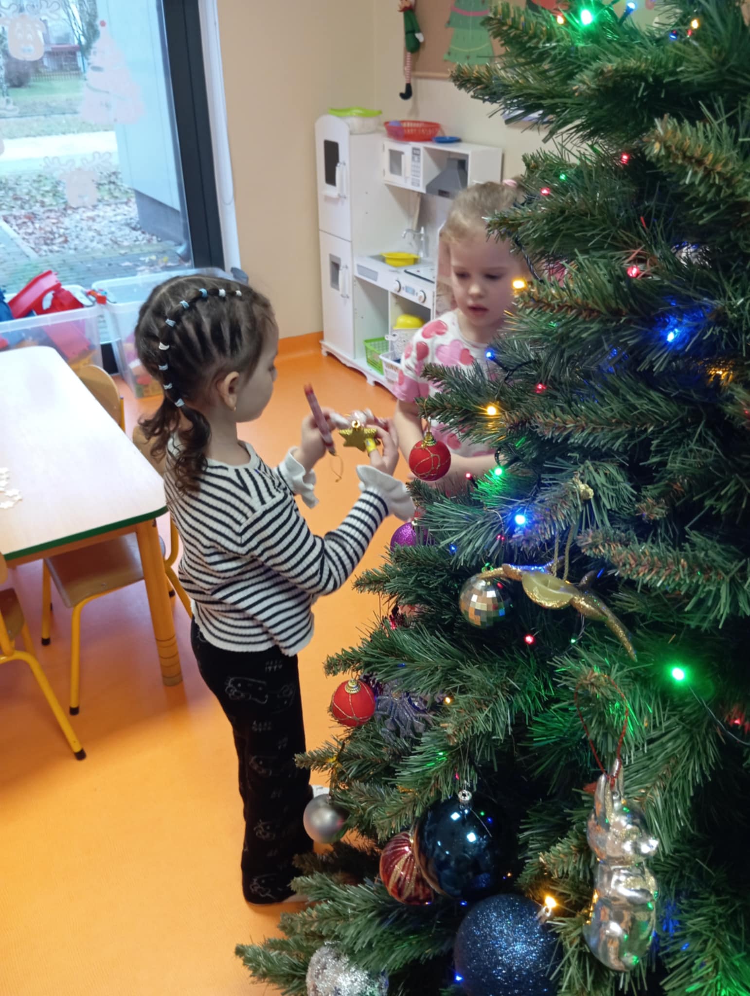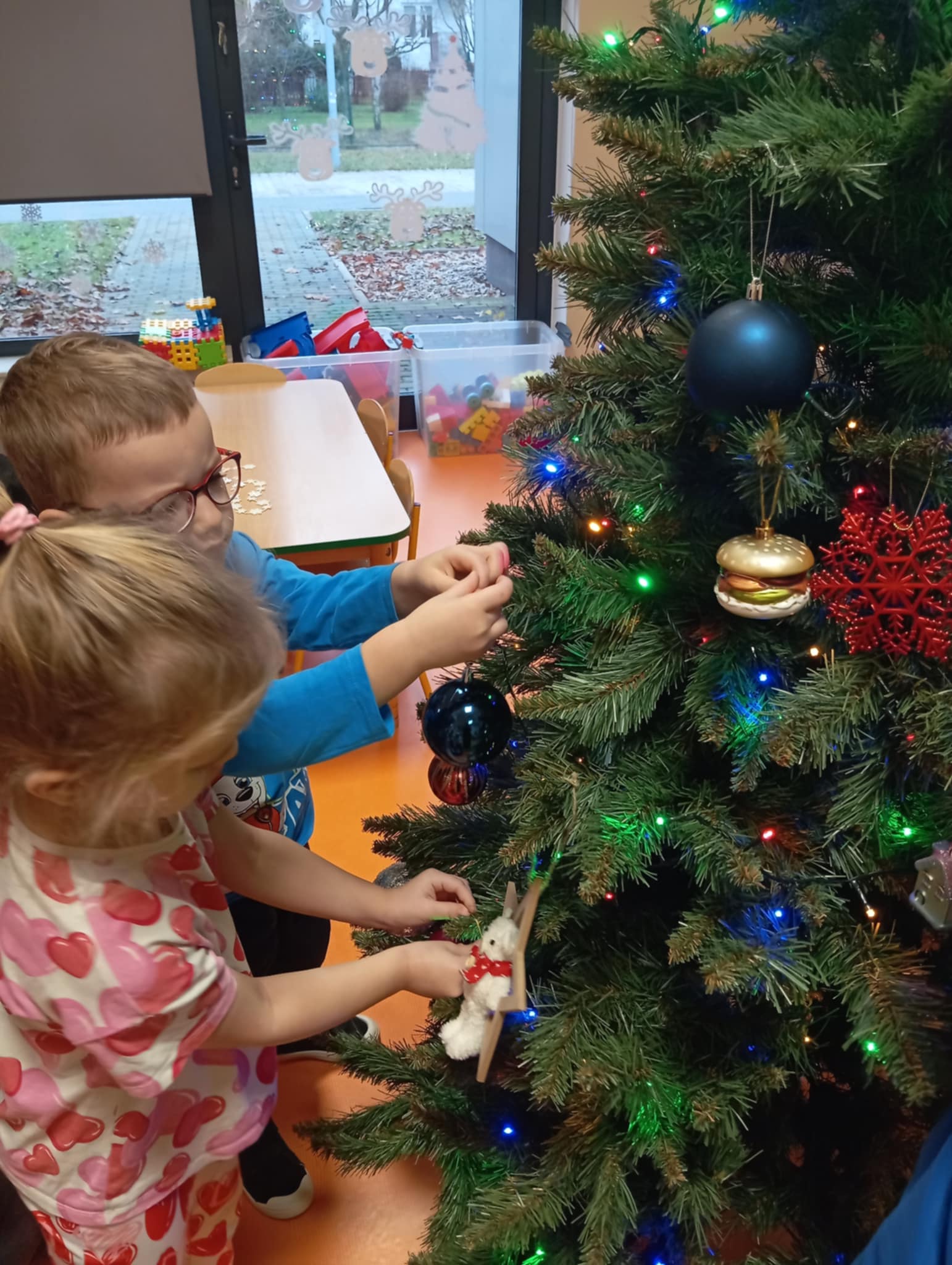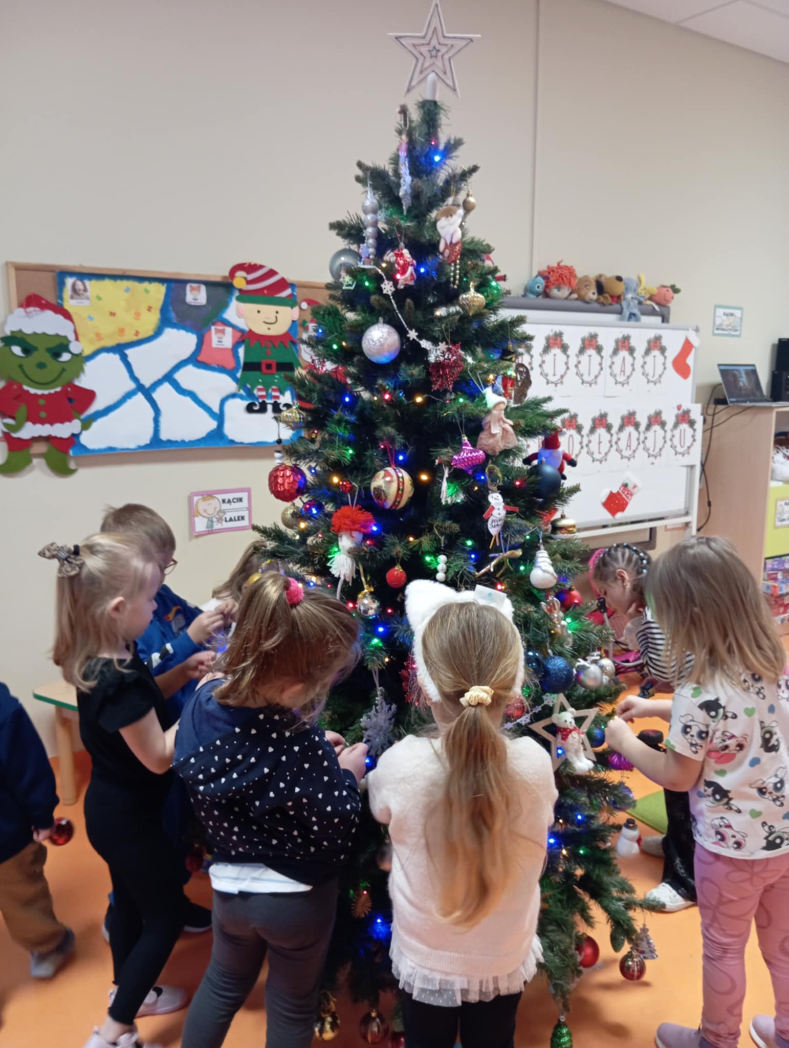 Grudzień to piękny czas. Rozpoczęliśmy przygotowania do Świąt Bożego Narodzenia. W tym roku zaangażowaliśmy się w liczne akcje charytatywne, pomagając najbardziej potrzebującym. Pisaliśmy listy do Świętego Mikołaja. Wszystkie wrzuciliśmy do specjalnych skrzynek w przedszkolu. Tworzyliśmy piękne dekoracje holu i naszej sali. I w końcu ubieraliśmy choinkę, naszą wspólną, drugą choinkę.