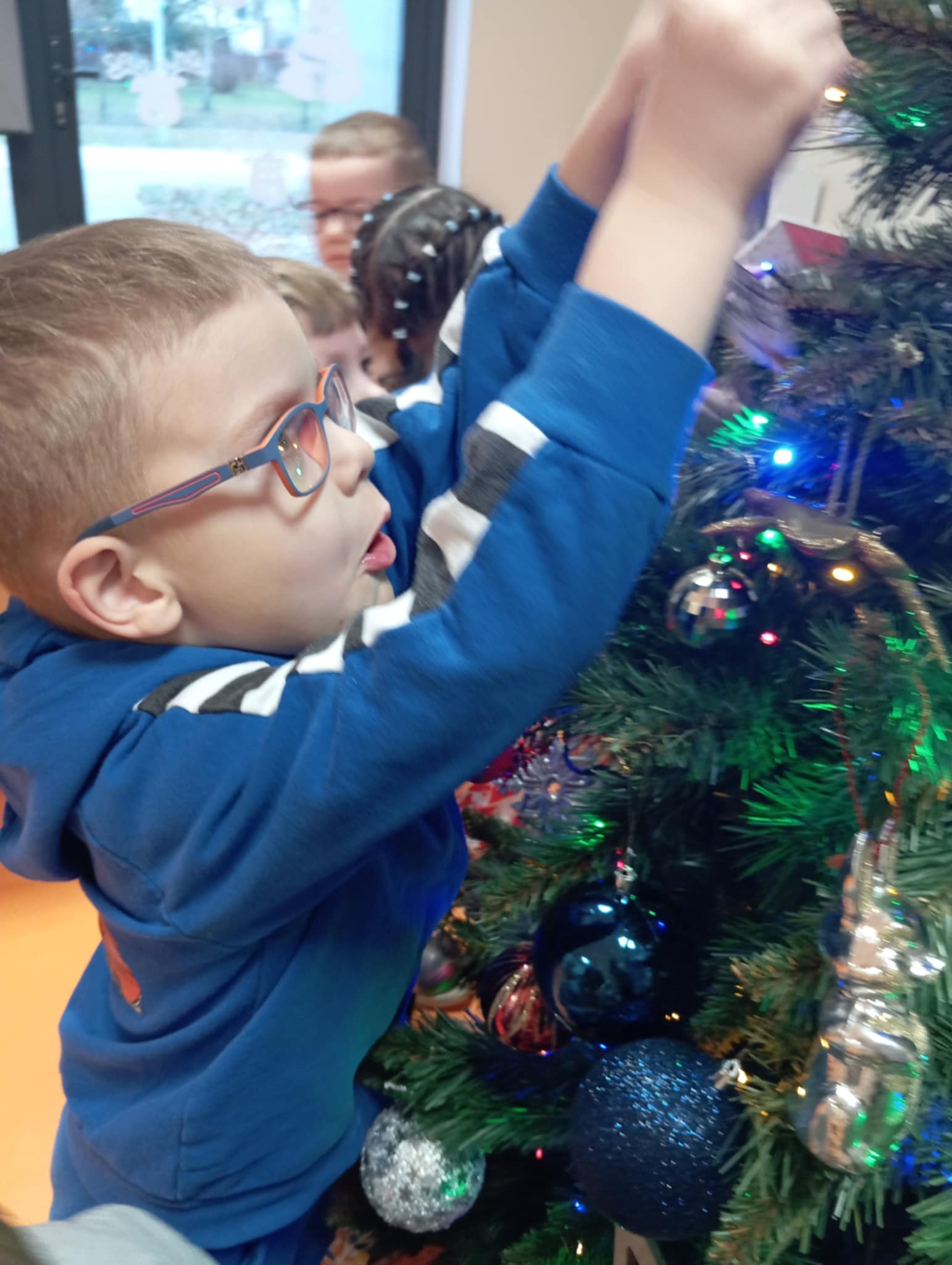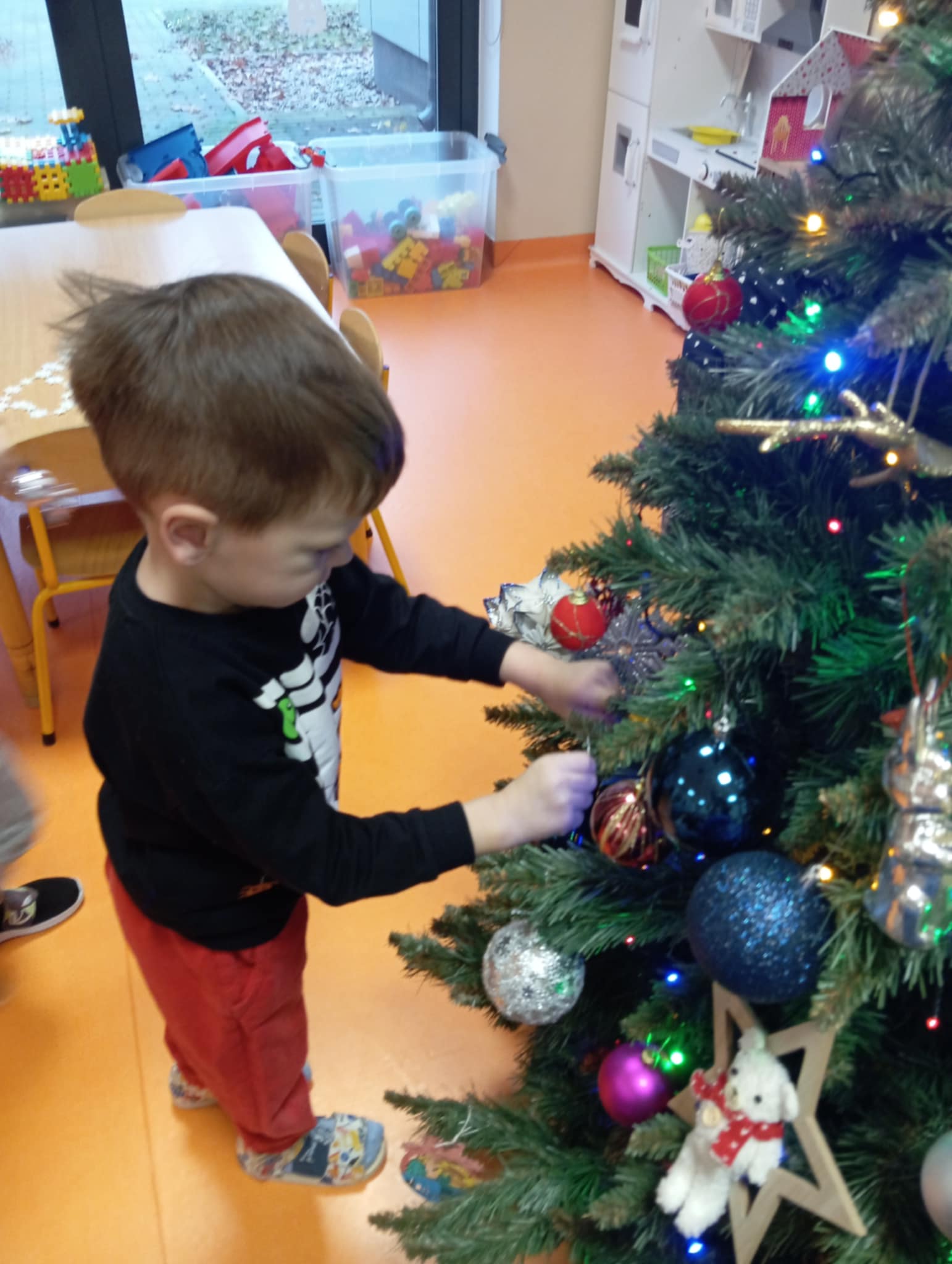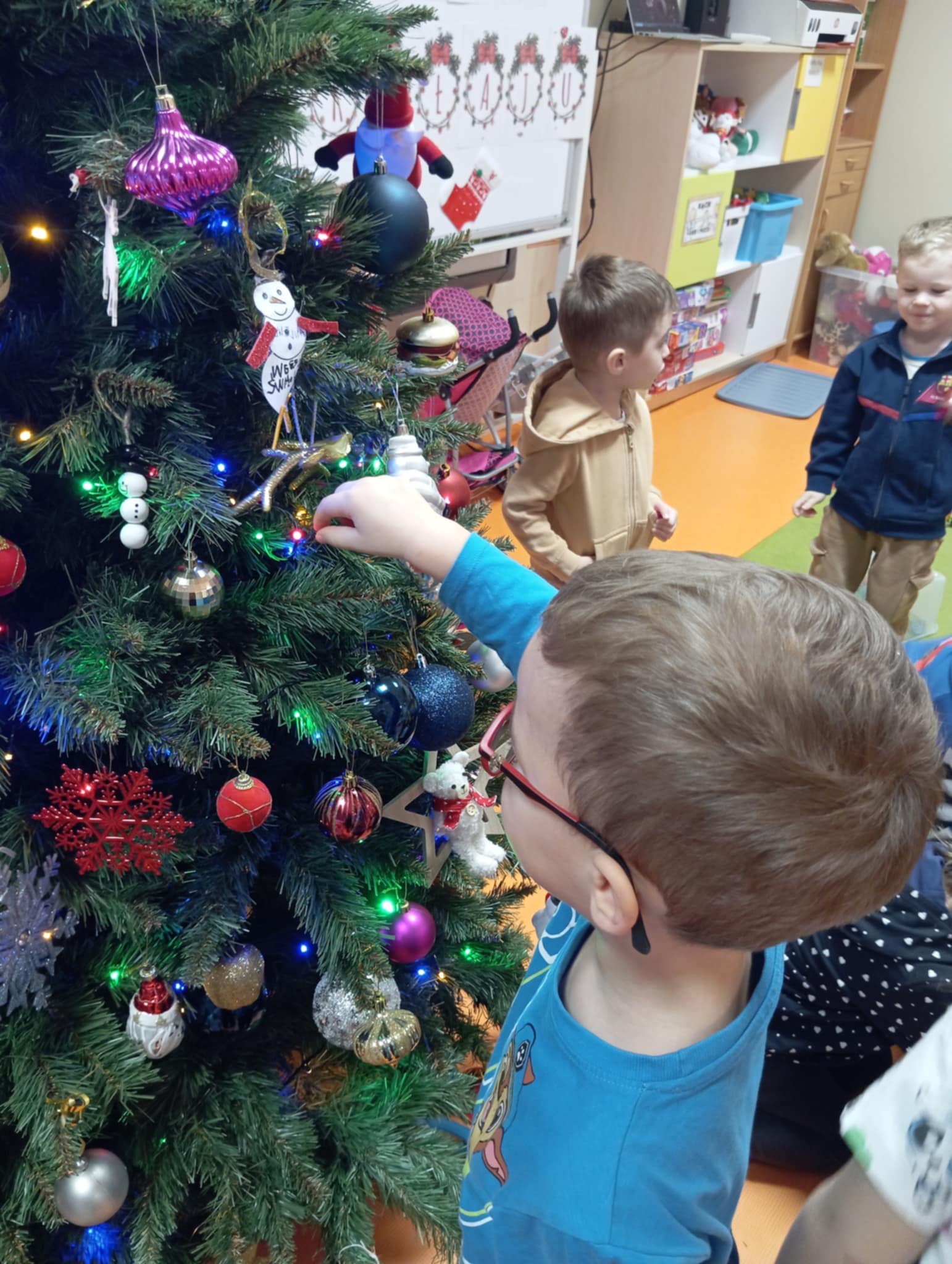 Grudzień to piękny czas. Rozpoczęliśmy przygotowania do Świąt Bożego Narodzenia. W tym roku zaangażowaliśmy się w liczne akcje charytatywne, pomagając najbardziej potrzebującym. Pisaliśmy listy do Świętego Mikołaja. Wszystkie wrzuciliśmy do specjalnych skrzynek w przedszkolu. Tworzyliśmy piękne dekoracje holu i naszej sali. I w końcu ubieraliśmy choinkę, naszą wspólną, drugą choinkę.