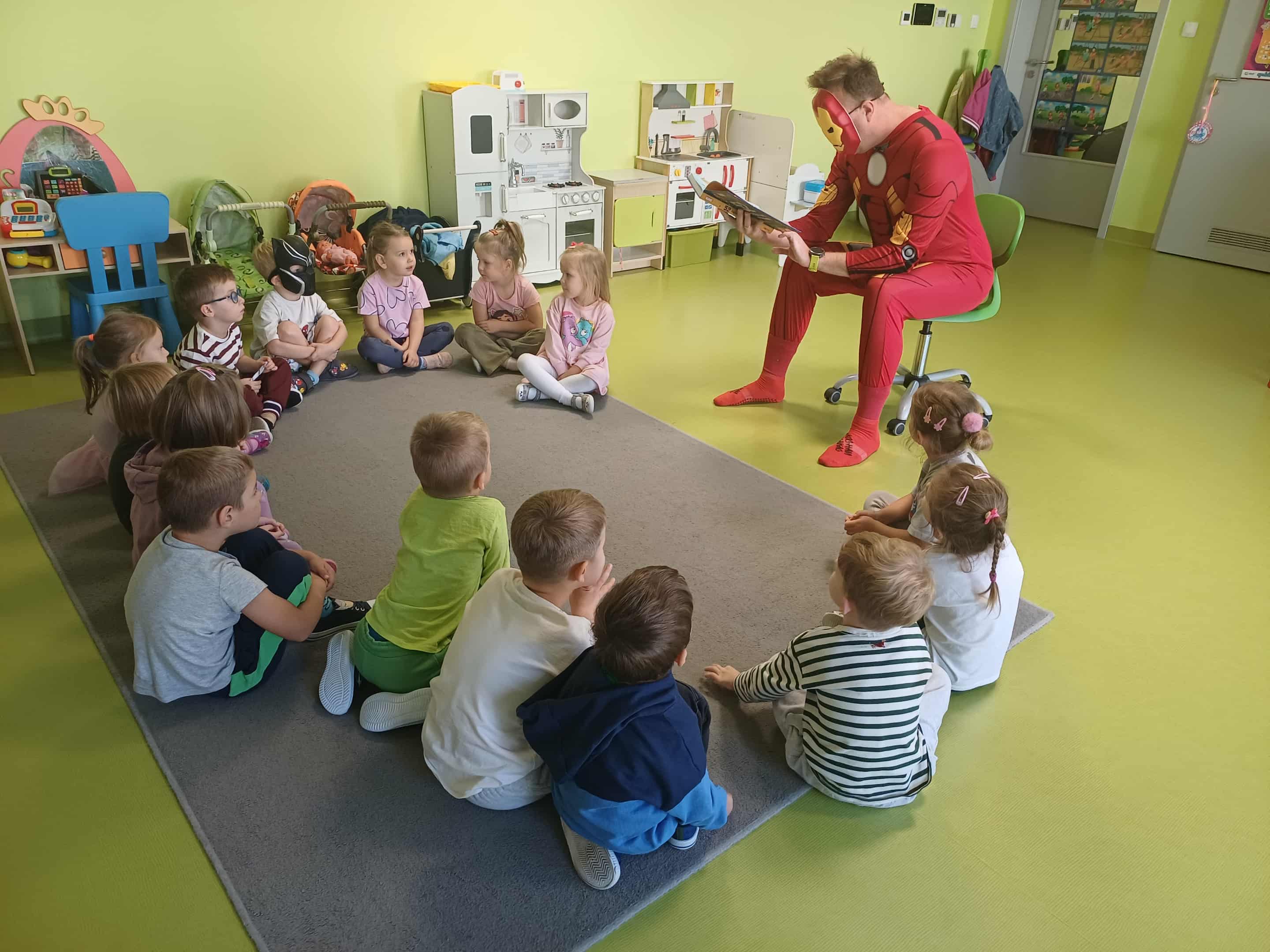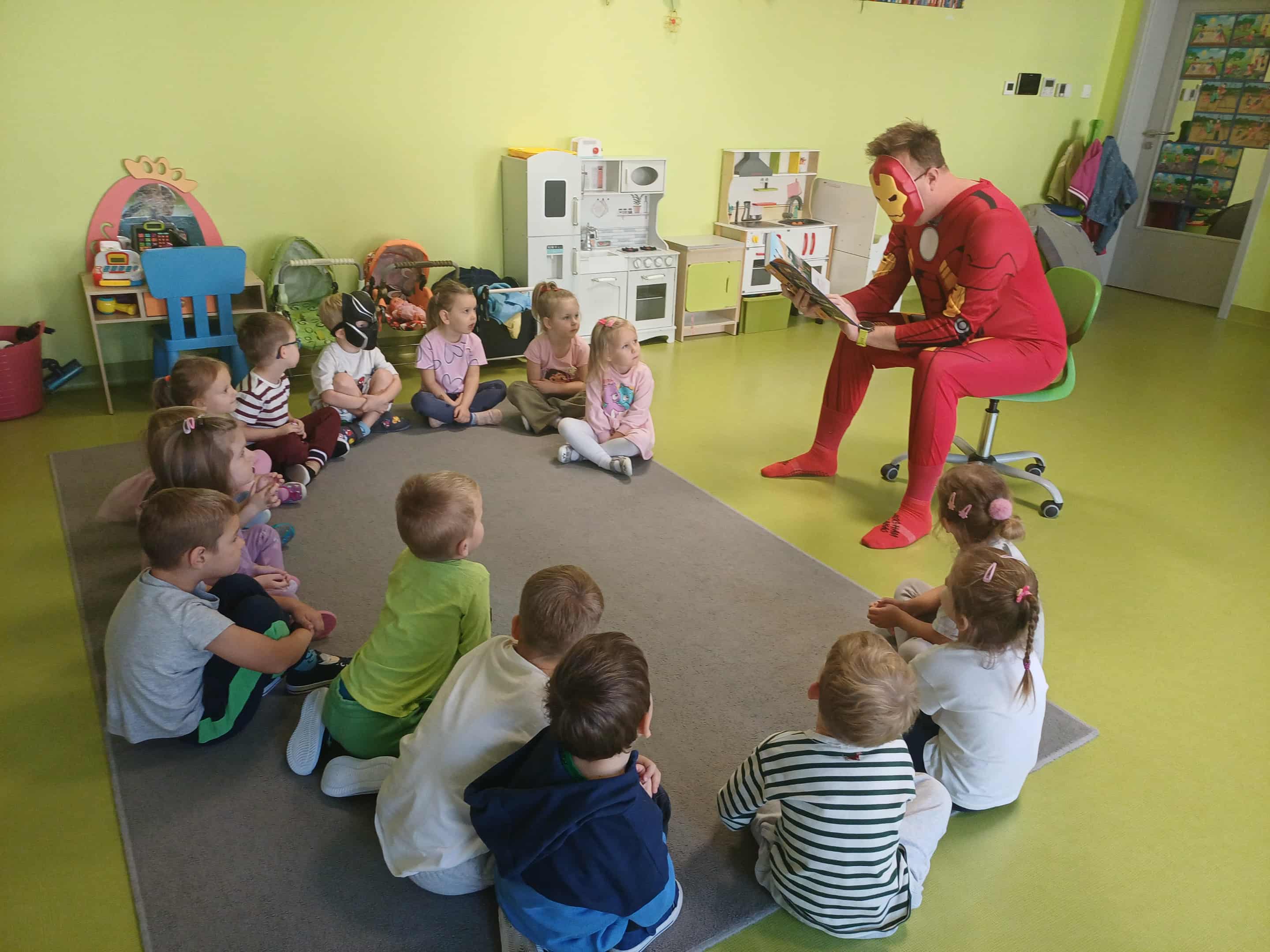 Dzisiaj do wspólnego czytania zaprosił nas pan Przemek - tata Tymka. Jakaż była dla nas niespodzianka gdy do sali wszedł prawdziwy Iron Man. W ramach akcji "Cała Polska czyta dzieciom" pan Przemek przeczytał nam opowieści z książki pt. Marvel - 52 bajkowe opowieści. Dziękujemy serdecznie za poświęcony nam czas.