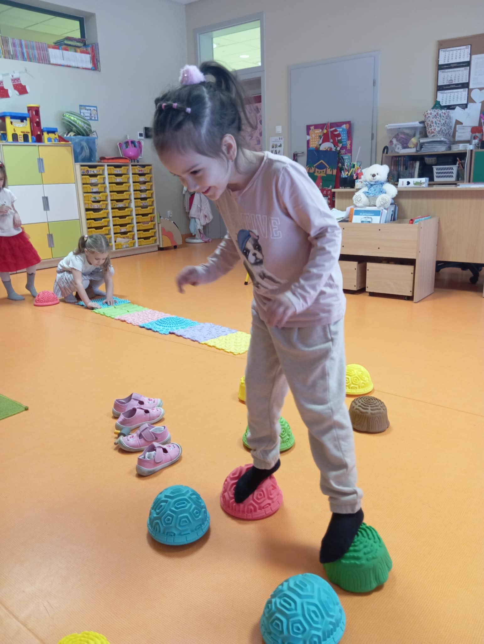 W przedszkolu stawiamy na ogólny rozwój dziecka. Nasze Morelki są bardzo aktywne, chętne do współpracy i uwielbiają nowe rzeczy. Dzisiaj na zajęciach zaproponowałam dzieciom pokonanie sensorycznej ścieżki. Dzieci podeszły do zadania bardzo skupione, rozważne ale i z uśmiechem na twarzy.