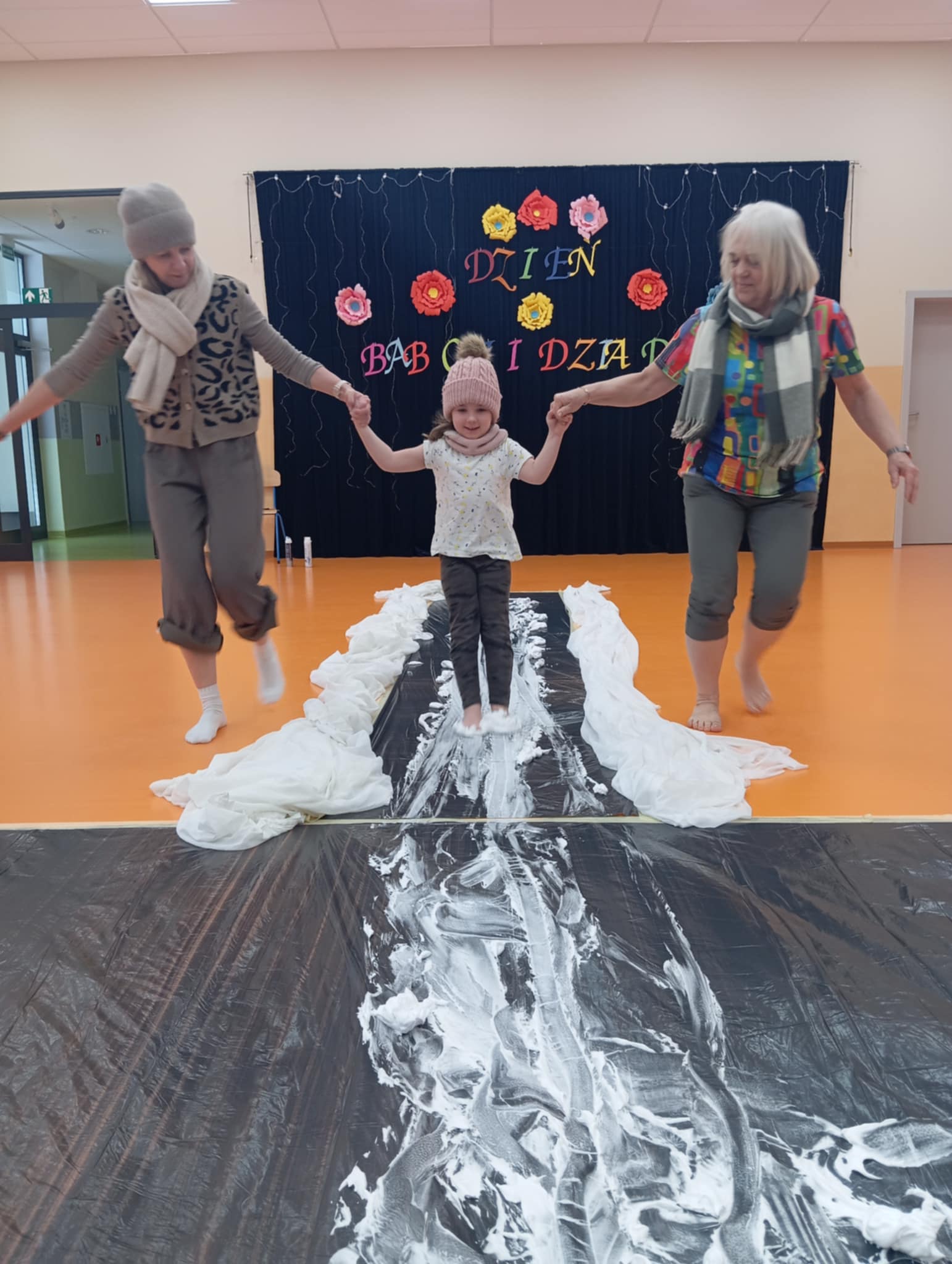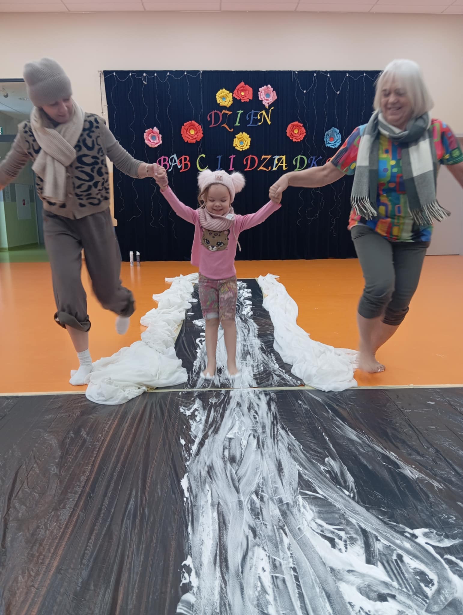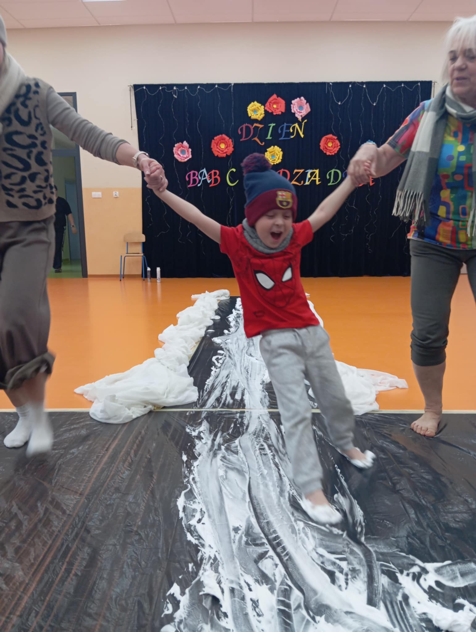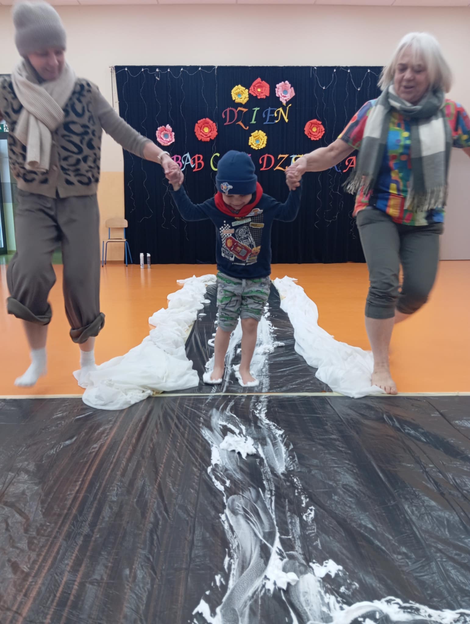 Dzisiejszego dnia zabraliśmy dzieci na sensoryczne lodowisko w przedszkolu. Zajęcia odbyły się na sali gimnastycznej, w których brała udział nasza zaprzyjaźniona grupa Truskawek. Wspólnie z dziećmi bawiliśmy wspaniale. Radość, śmiech towarzyszyły nam bez końca. Dzieci uczyły się ostrożności, uwagi i koncentracji. Wspaniała zabawa.
