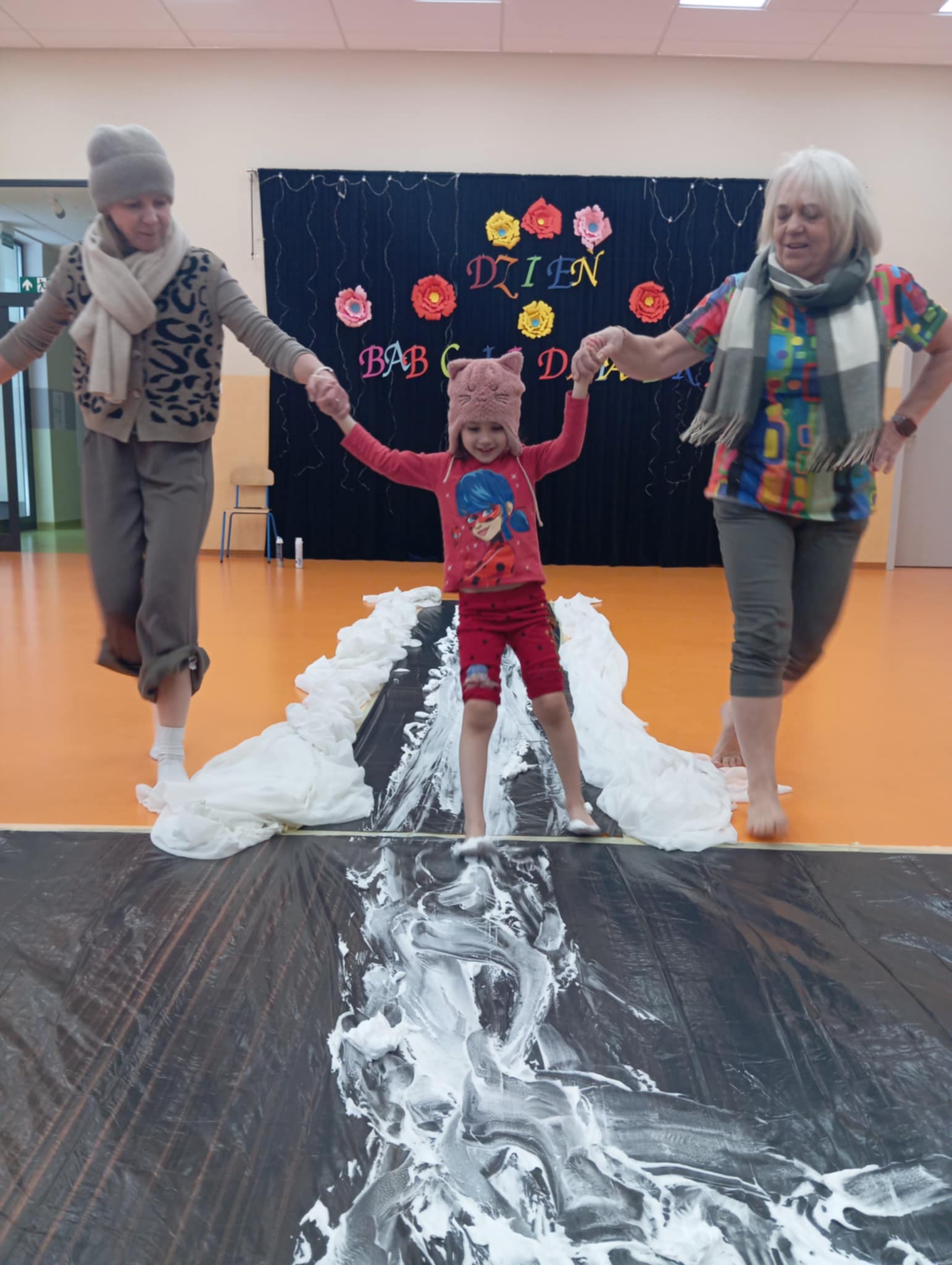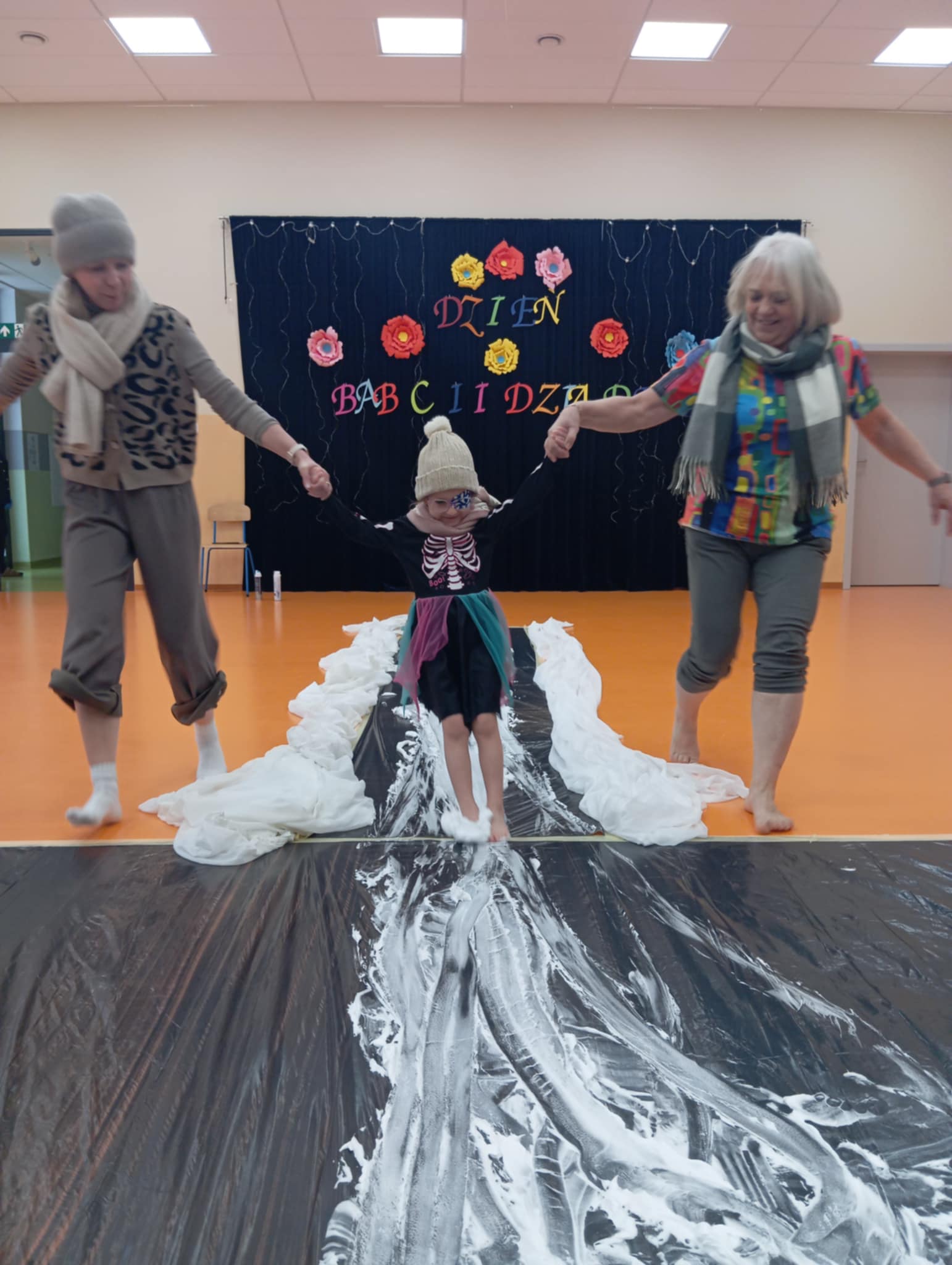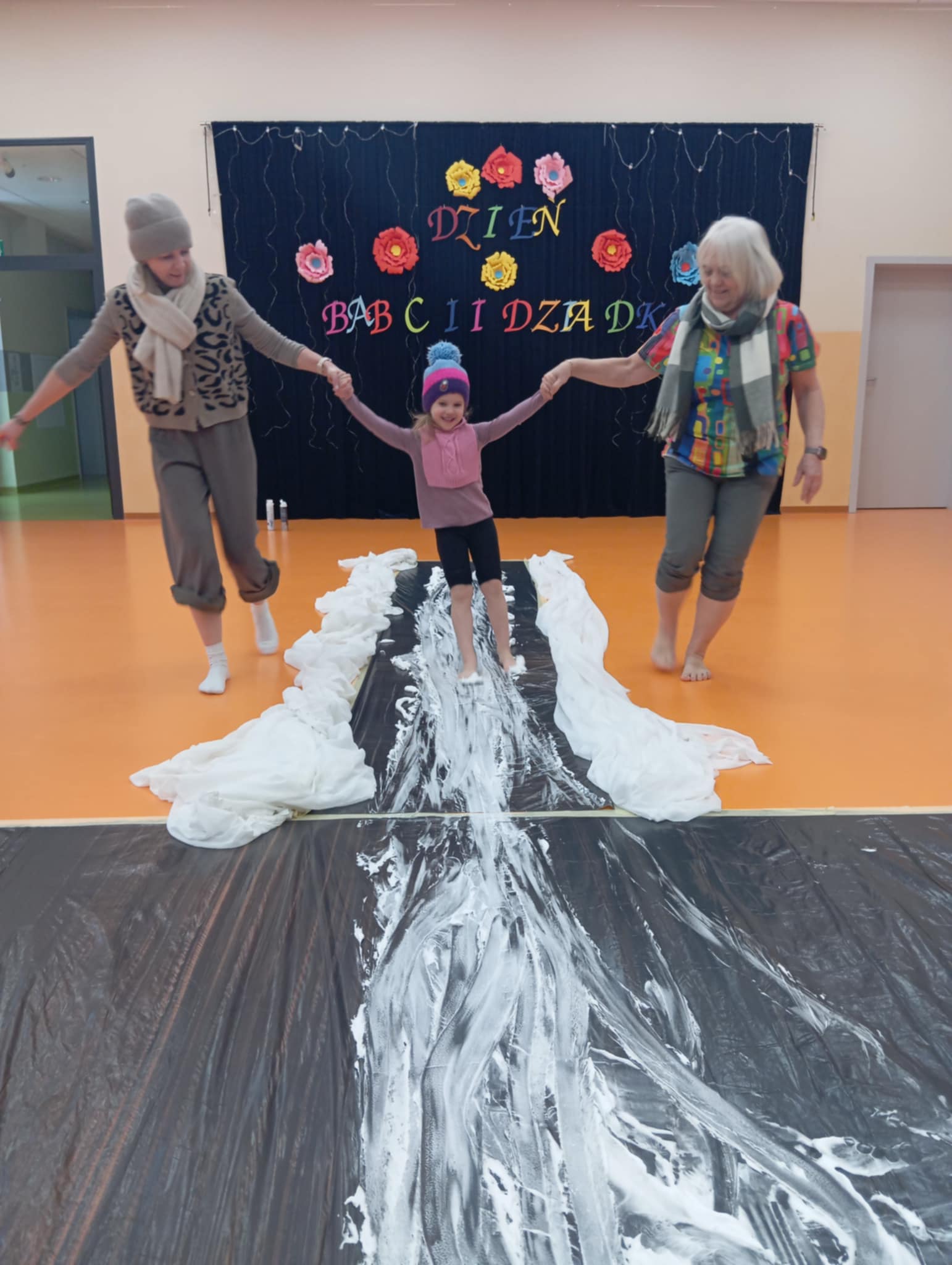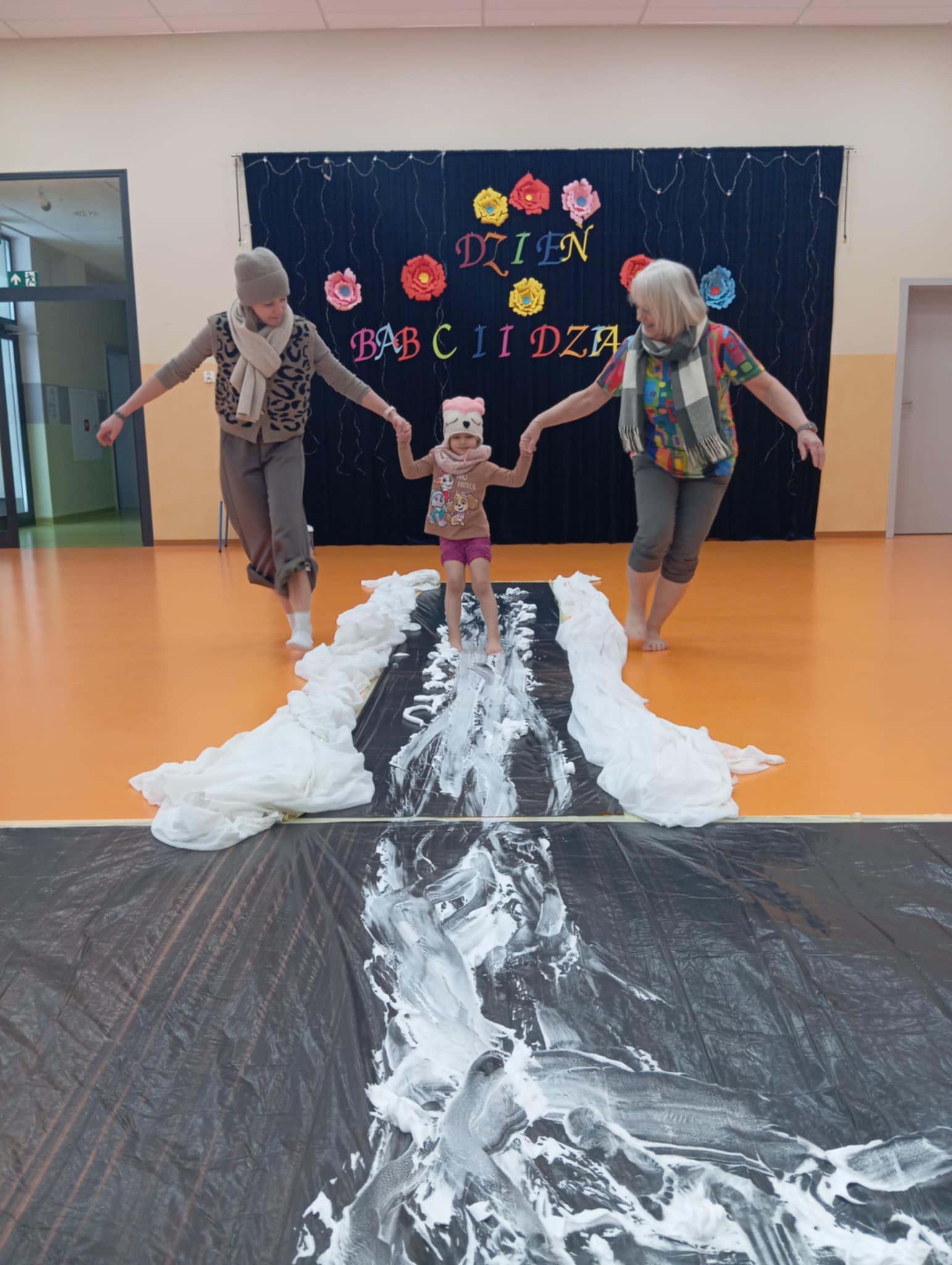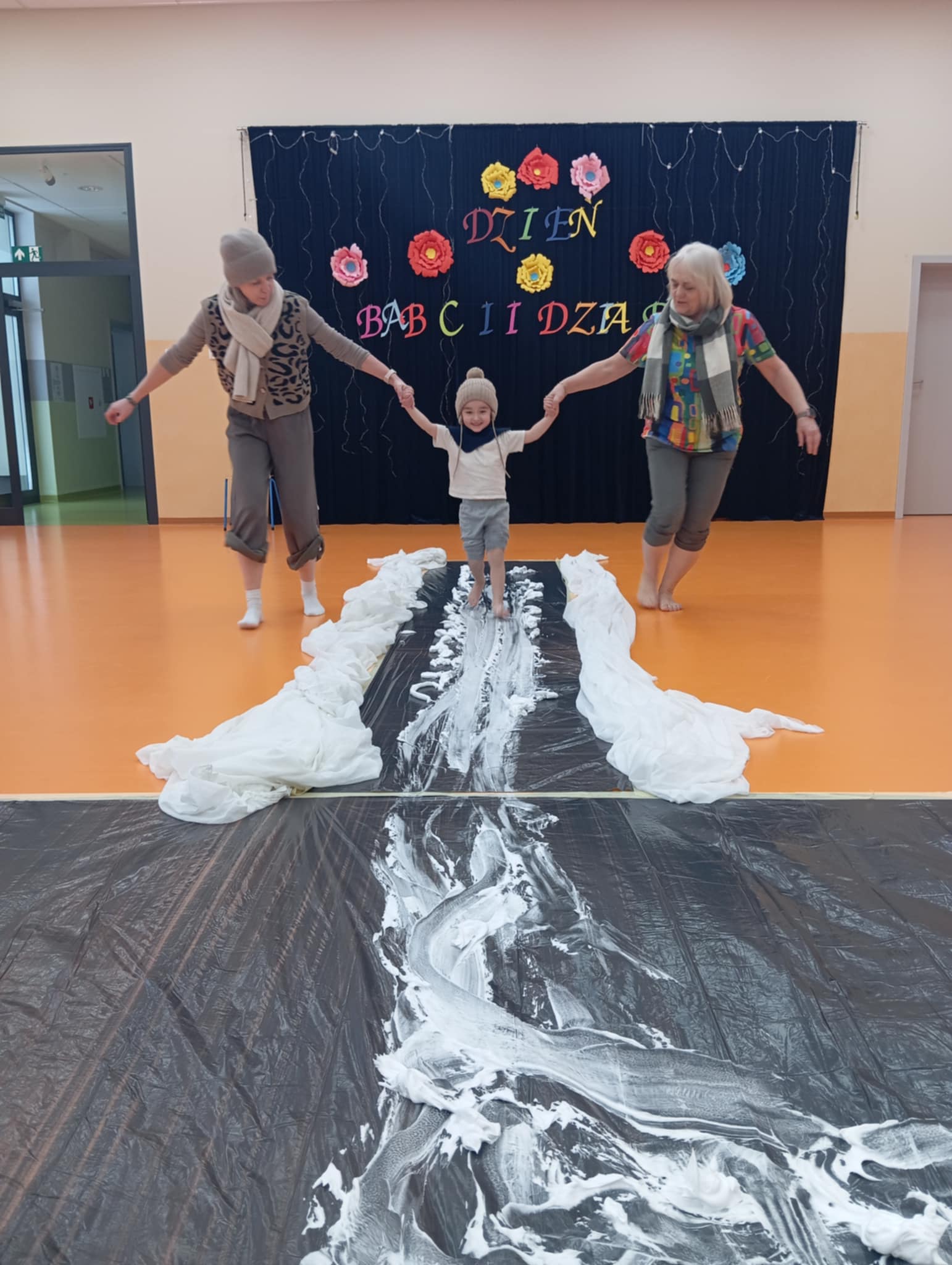 Dzisiejszego dnia zabraliśmy dzieci na sensoryczne lodowisko w przedszkolu. Zajęcia odbyły się na sali gimnastycznej, w których brała udział nasza zaprzyjaźniona grupa Truskawek. Wspólnie z dziećmi bawiliśmy wspaniale. Radość, śmiech towarzyszyły nam bez końca. Dzieci uczyły się ostrożności, uwagi i koncentracji. Wspaniała zabawa.