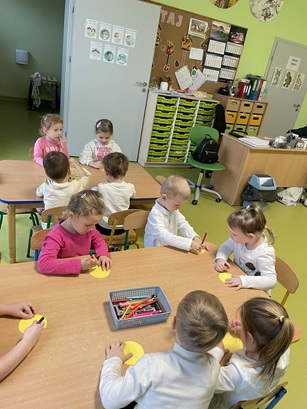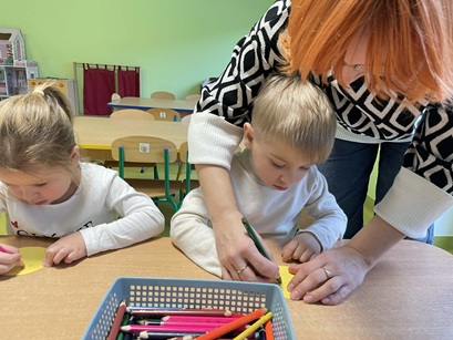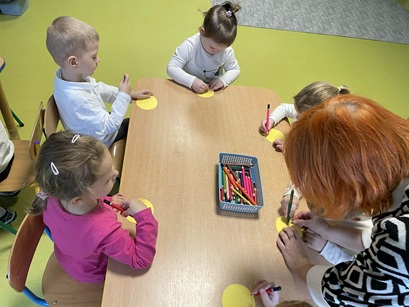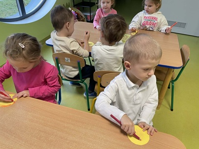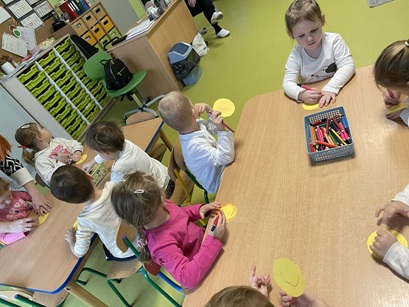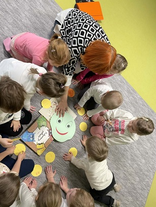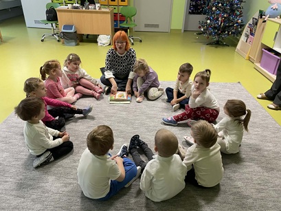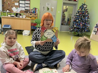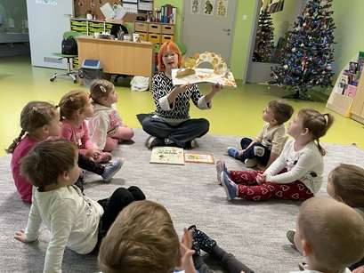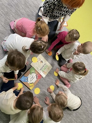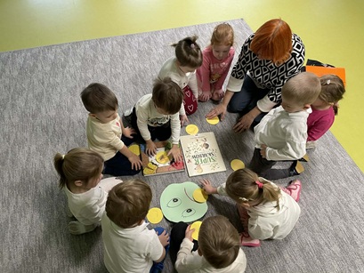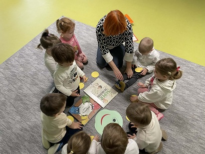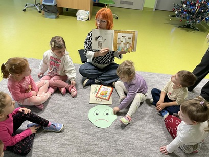 Podczas zajęć Pani Katarzyna wspierała dzieci w odkrywaniu, rozpoznawaniu i nazywaniu emocji, wykorzystując różnorodną literaturę dziecięcą, m.in. książkę "Kolorowy Potwór". Spotkanie sprzyjało rozmowom o emocjach, rozwijały empatię, oraz pomagały najmłodszym lepiej zrozumieć własne uczucia.