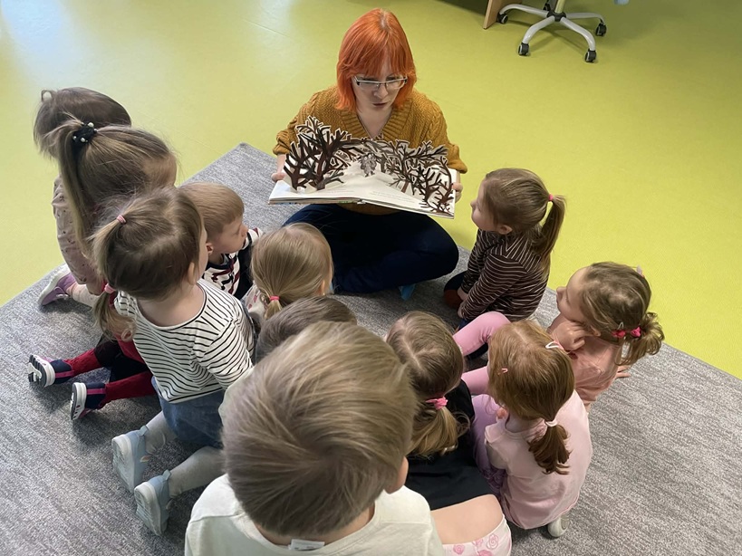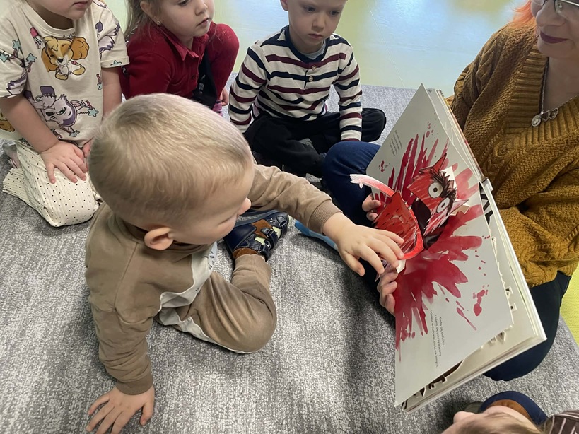 Podczas drugiego spotkania z biblioteką Pani Katarzyna wspierała rozwój inteligencji emocjonalnej dzieci, wykorzystując literaturę dziecięcą, m.in. książkę "Kolorowy Potwór". Zabawy i rozmowy o emocjach pomagały dzieciom lepiej rozumieć własne uczucia, rozwija empatię oraz uczyć się radzenia sobie z różnymi przeżyciami.