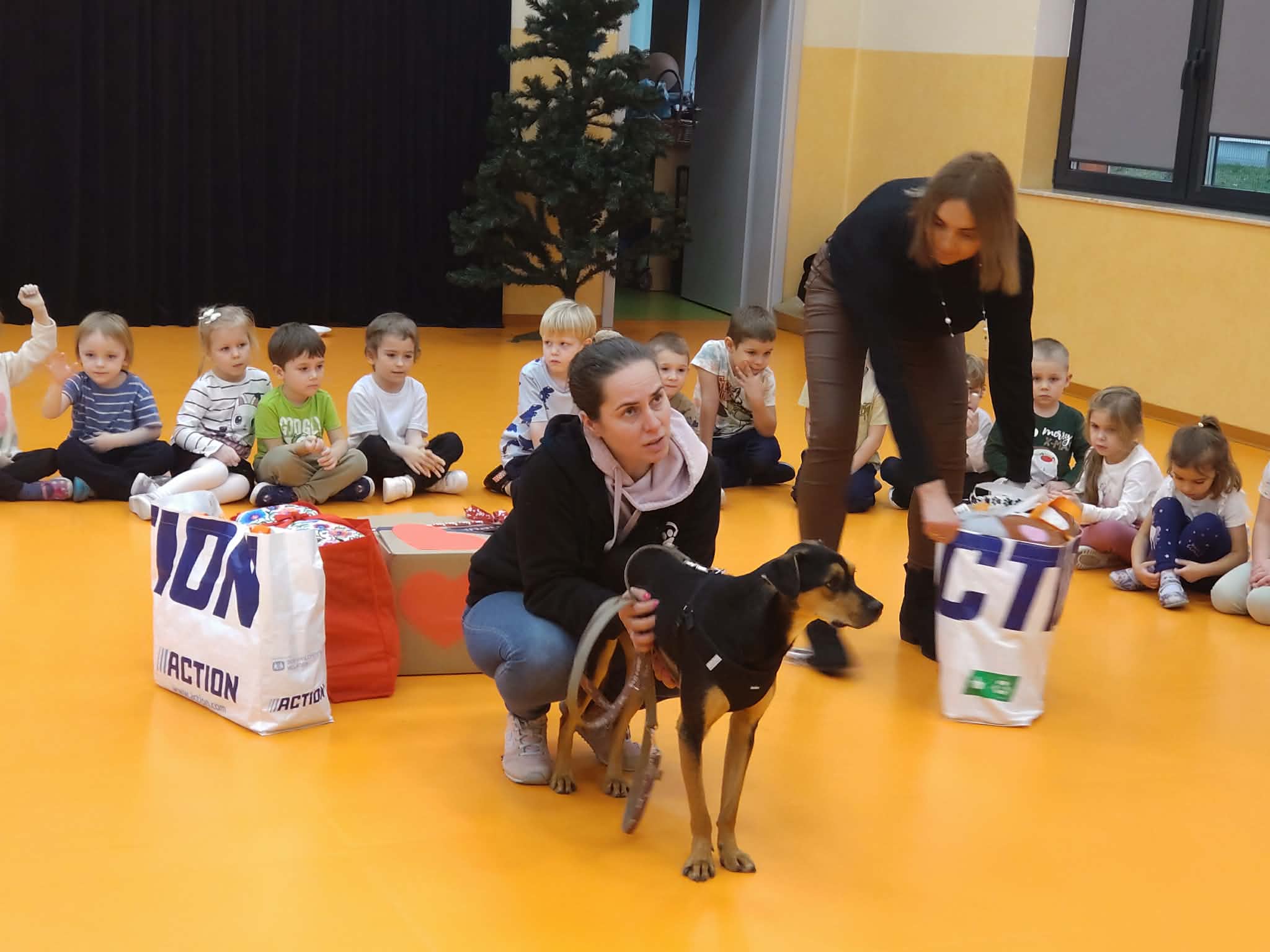 Dzisiaj odwiedziła nas pani ze Skierniewickiego Schroniska dla Bezdomnych Zwierząt wraz z psem Piorunem. Poznaliśmy zwyczaje piesków oraz dowiedzieliśmy się wielu ciekawostek z ich życia. Przekazaliśmy karmę dla zwierzaków, którą zbieraliśmy przez ostatnie dni.