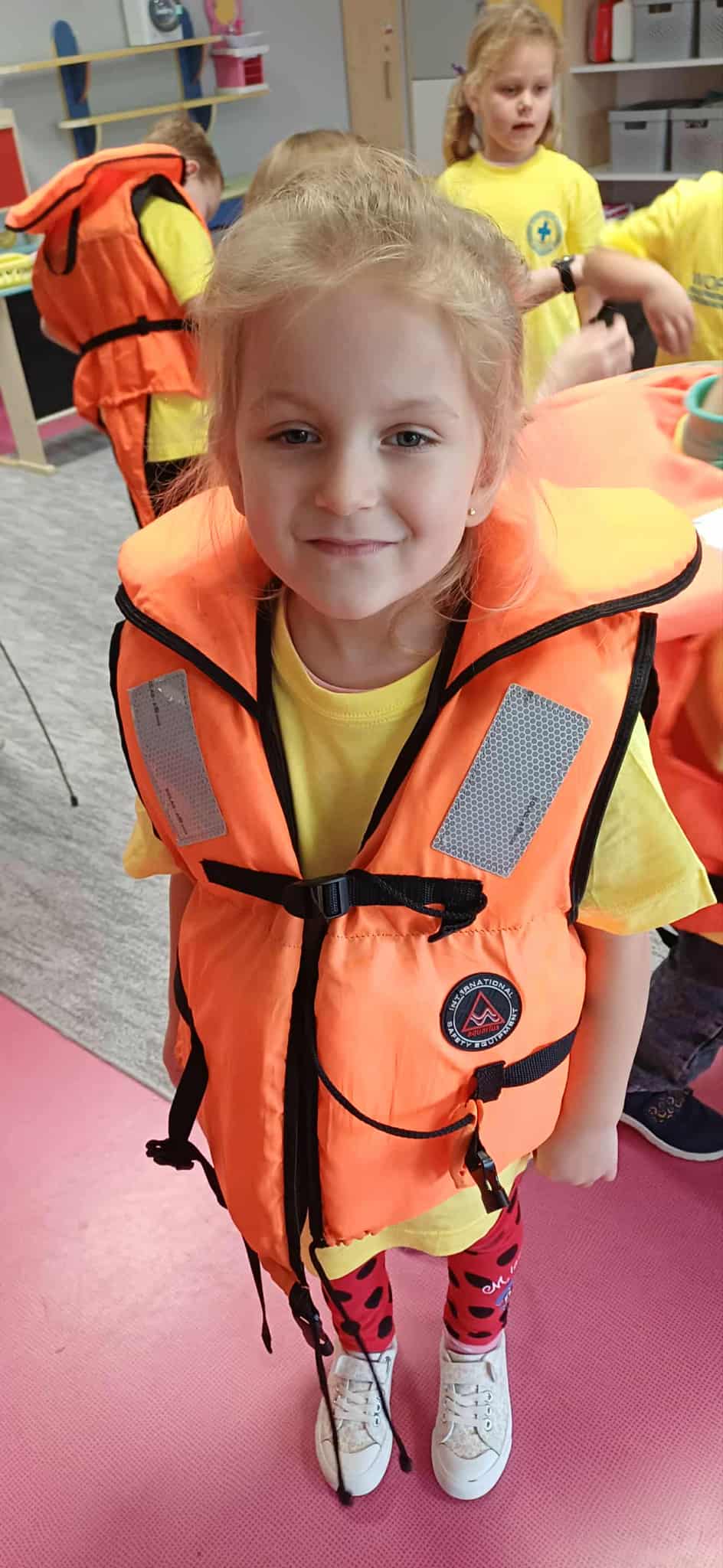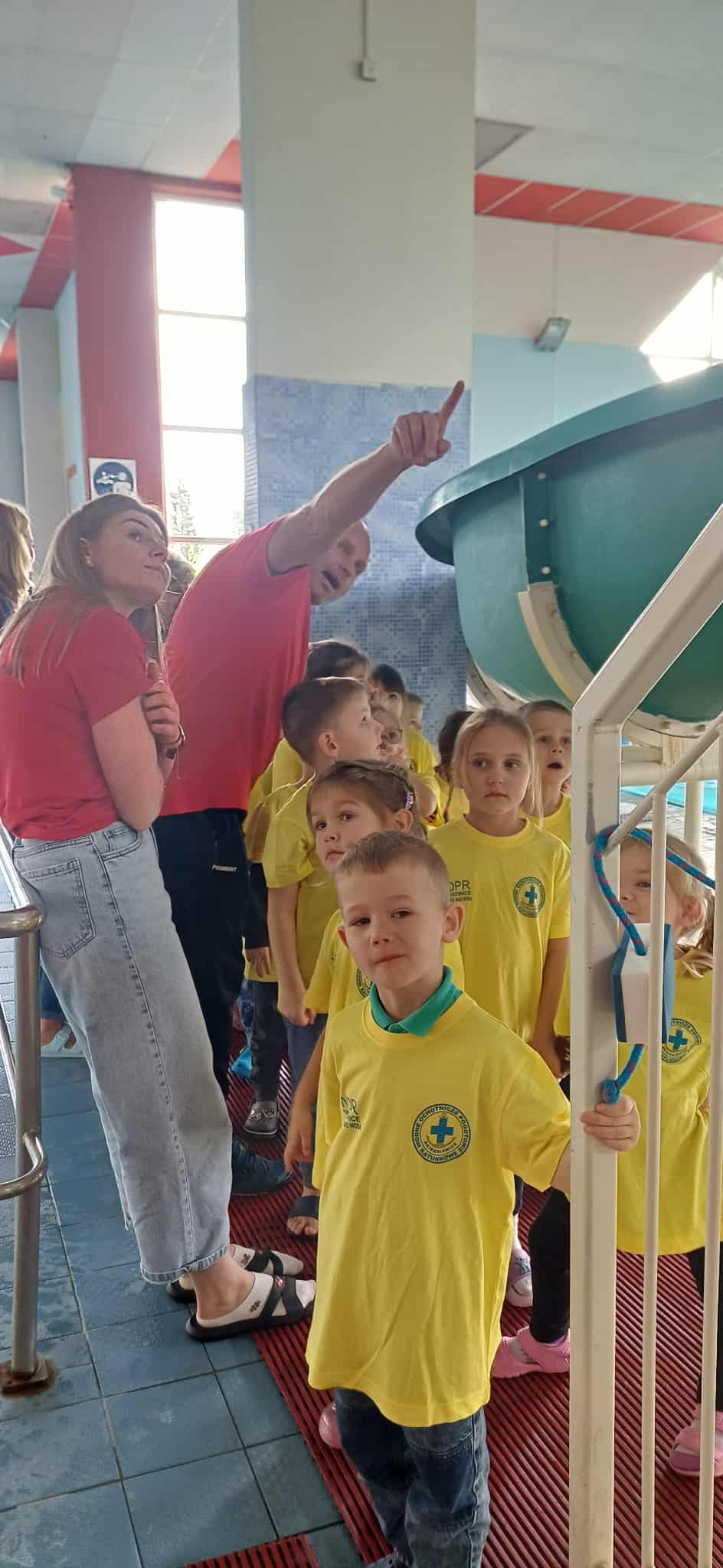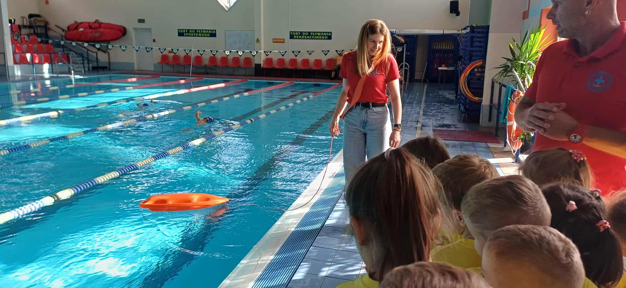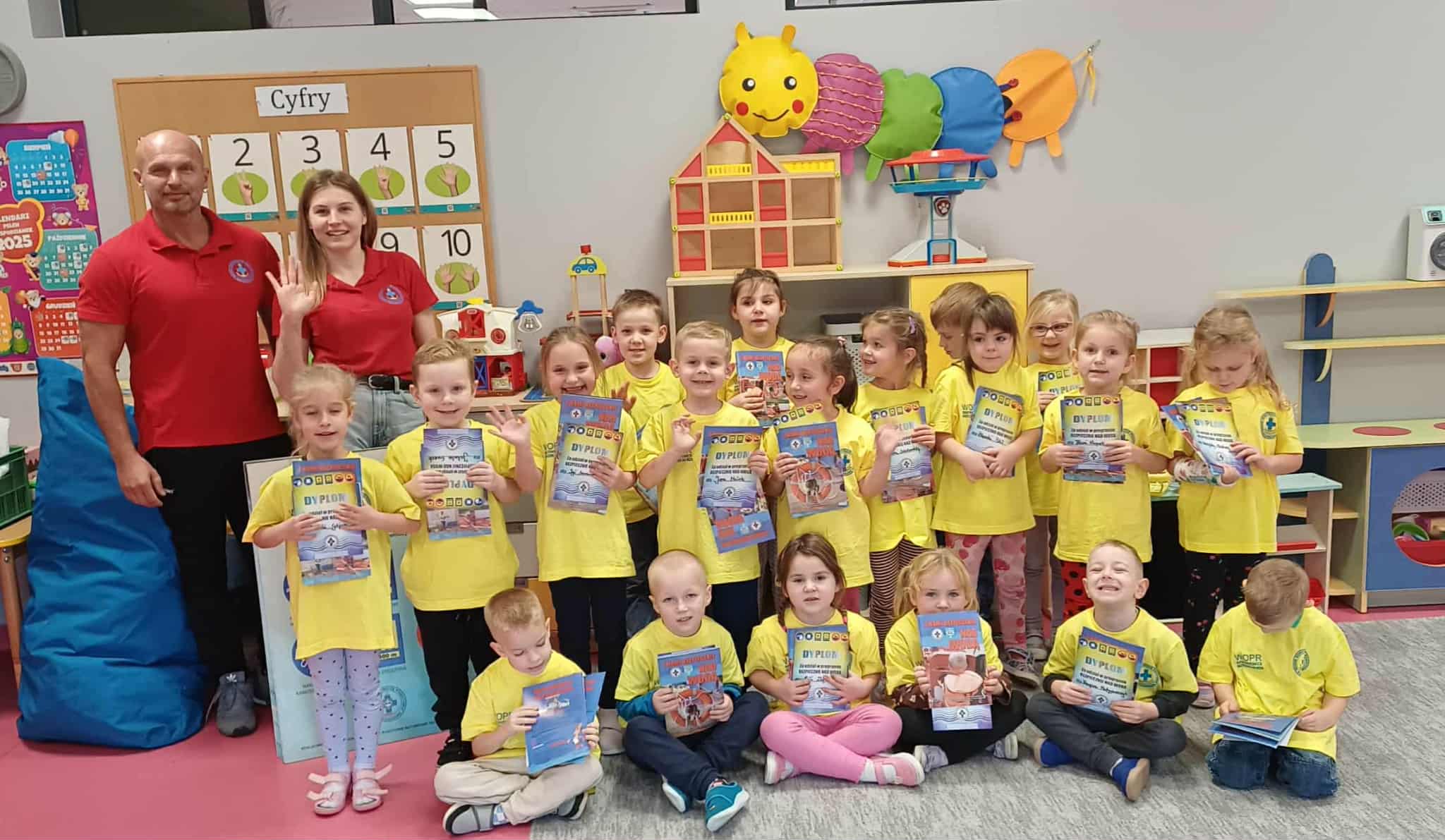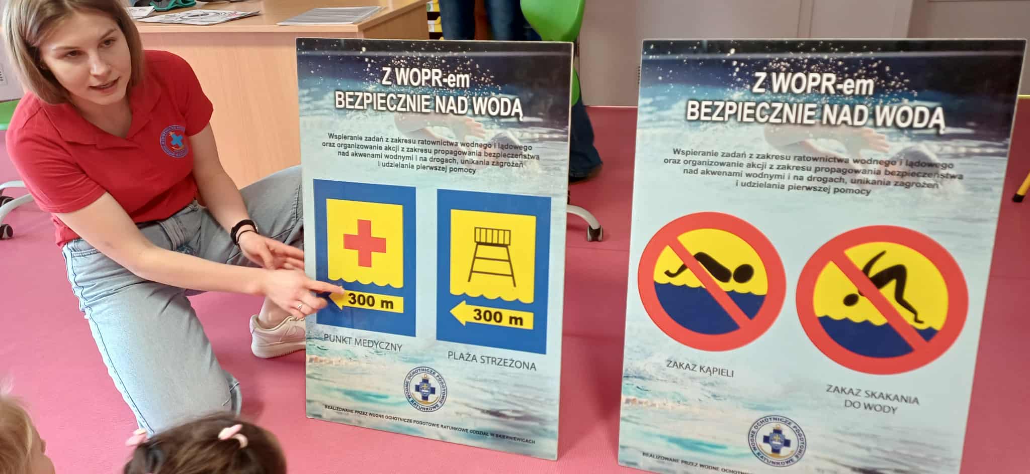 Wisienki pojechały na basen, żeby zobaczyć i poznać to miejsce. Ratownicy omawiali zasady dotyczące bezpiecznego zachowania się na basenie i pokazywali ważne znaki informacyjne. Po powrocie dzieci mogły przymierzyć kamizelki ratunkowe, otrzymały książeczki i dyplomy za udział w programie "Bezpiecznie nad Wodą".