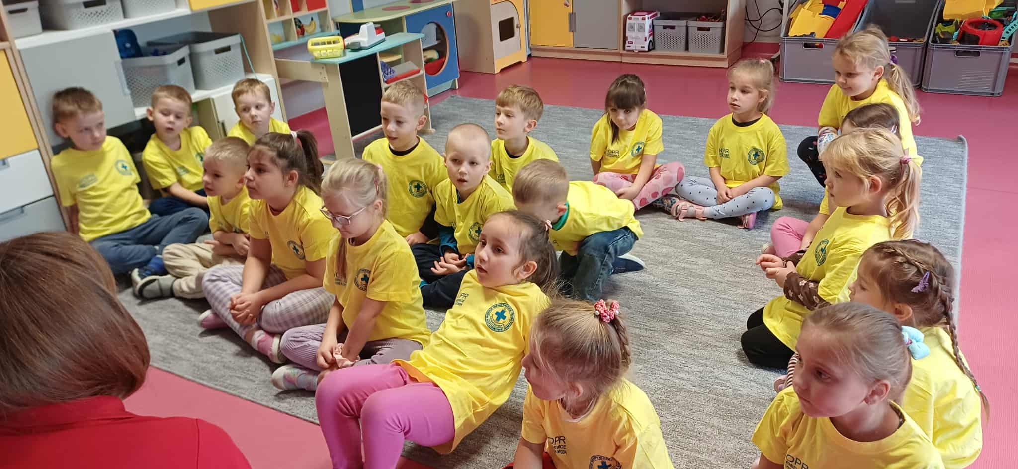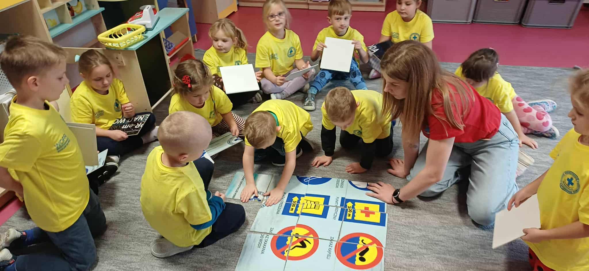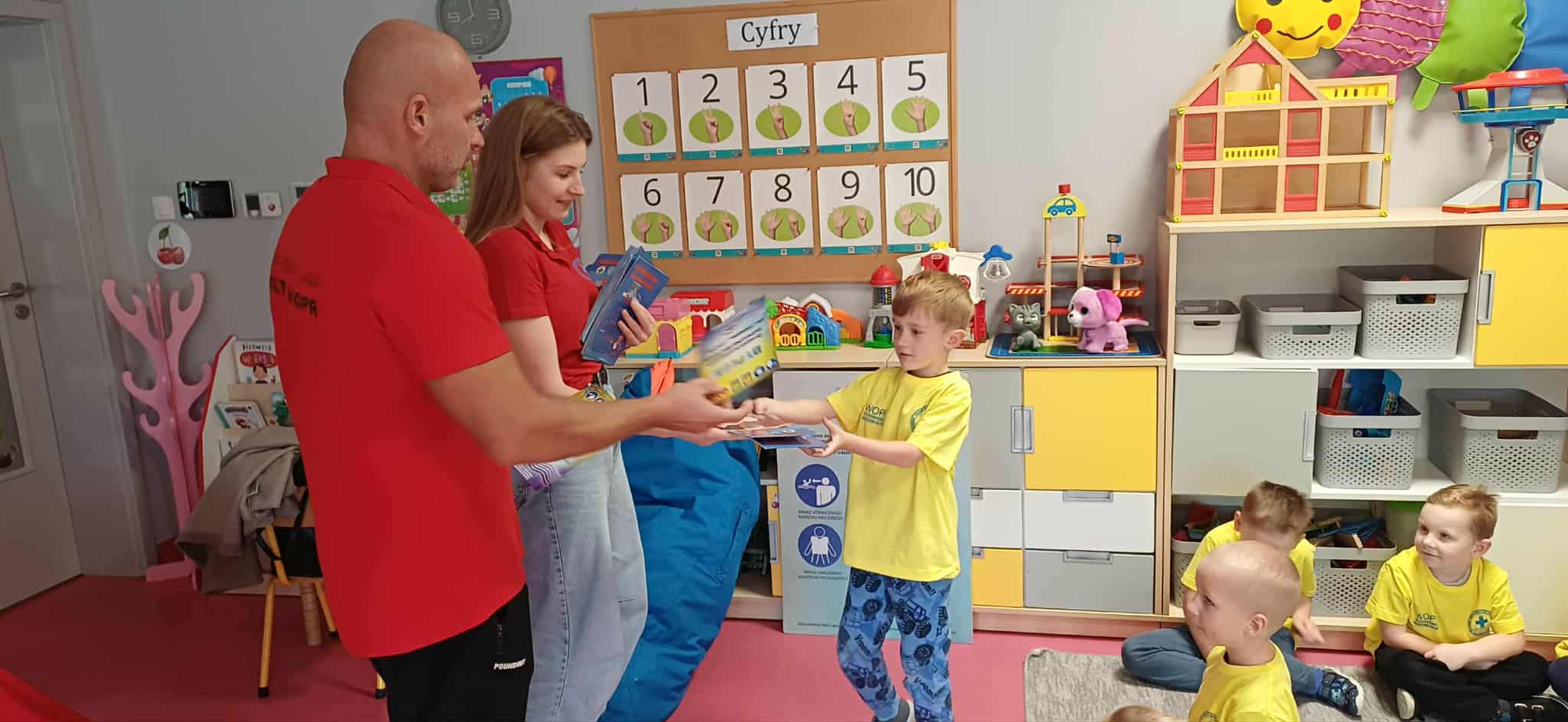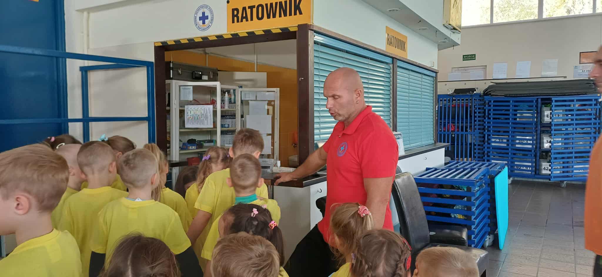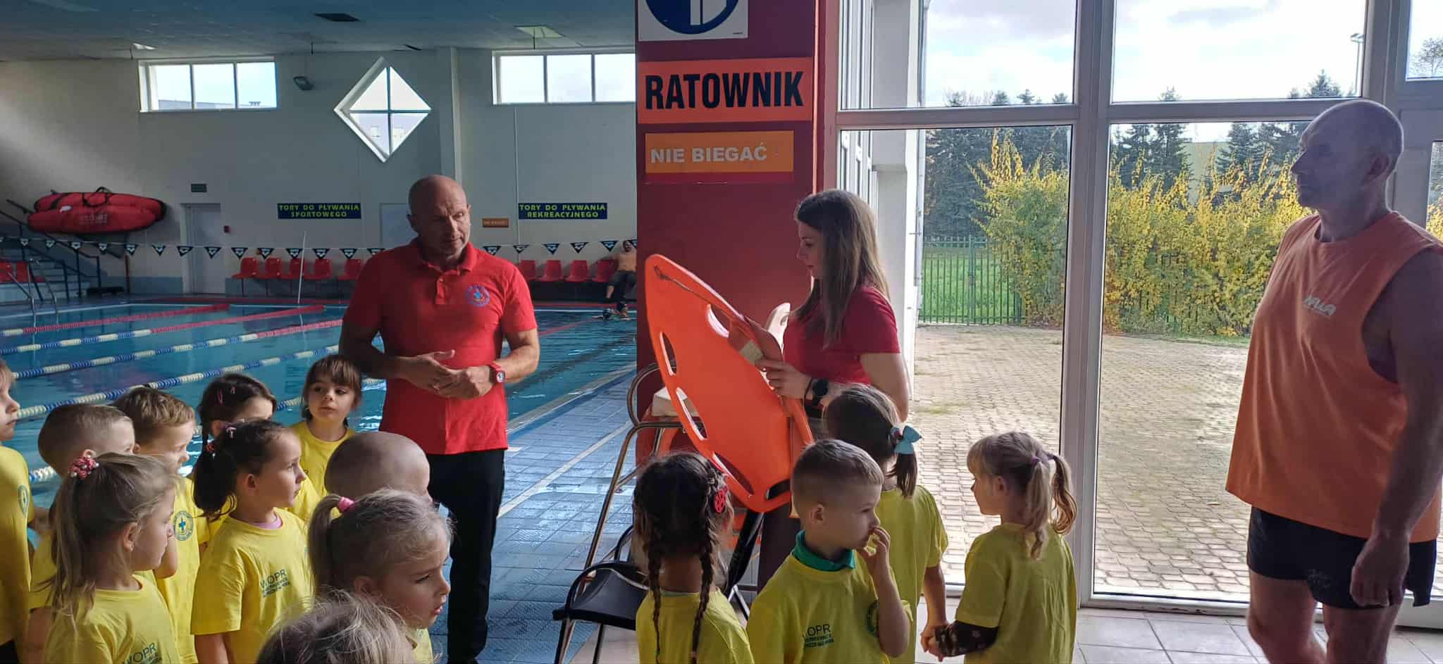 Wisienki pojechały na basen, żeby zobaczyć i poznać to miejsce. Ratownicy omawiali zasady dotyczące bezpiecznego zachowania się na basenie i pokazywali ważne znaki informacyjne. Po powrocie dzieci mogły przymierzyć kamizelki ratunkowe, otrzymały książeczki i dyplomy za udział w programie "Bezpiecznie nad Wodą".
