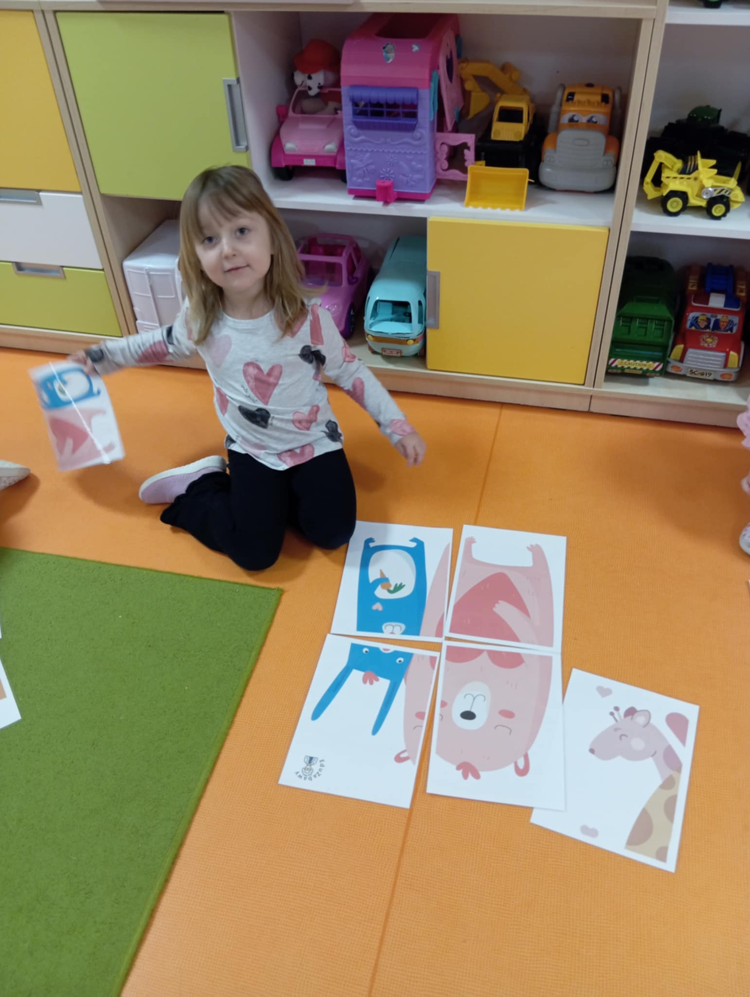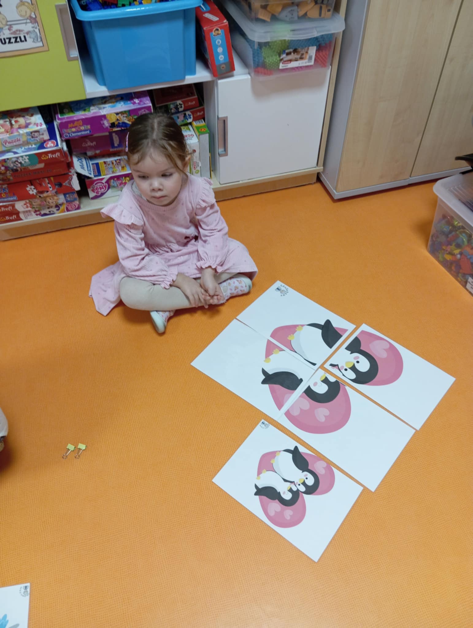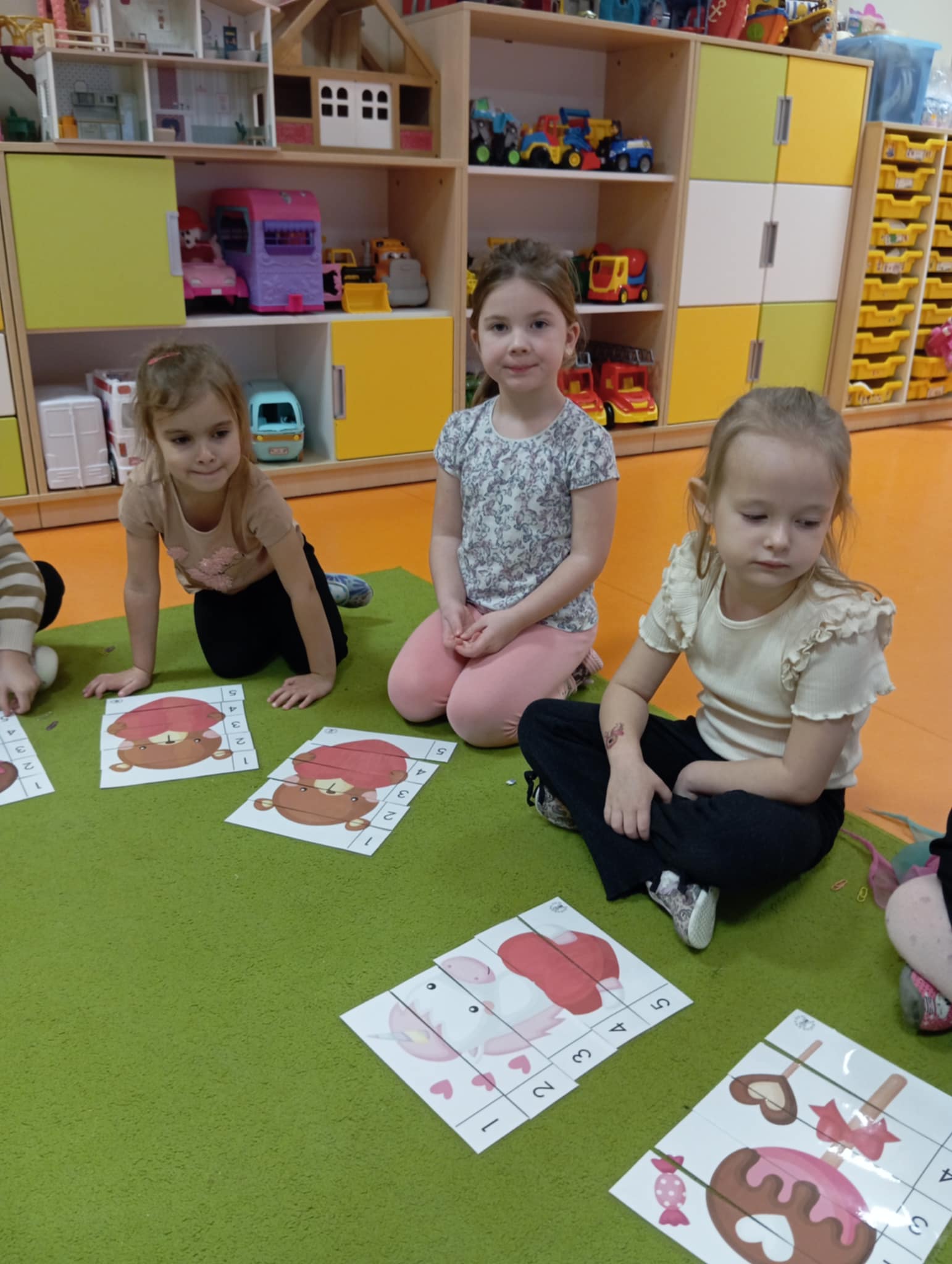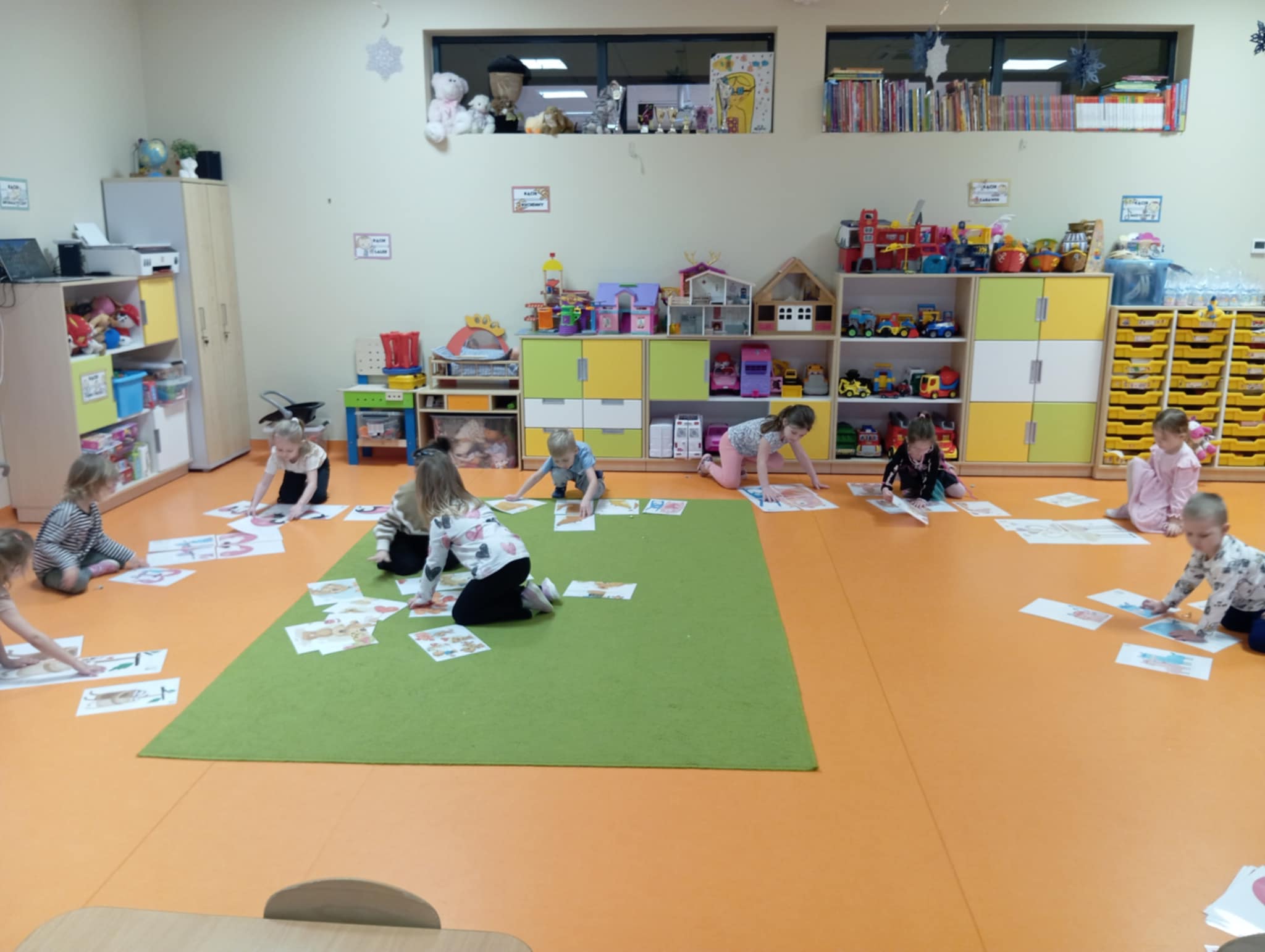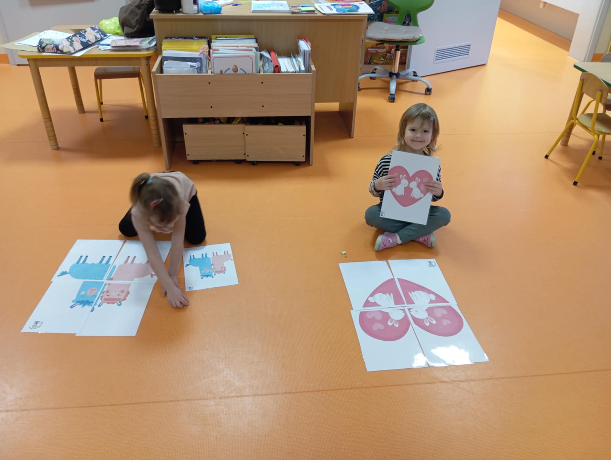 Walentynki to doskonały czas, aby poruszyć z dziećmi temat miłości, kochania, relacji z rodziną. Dzieci chętnie dzielą się swoimi przeżyciami. Na dzisiejszych zajęciach rozmawialiśmy o miłości rodziców do dzieci. Dzieci układały obrazki z części, obrazki przedstawiały walentynkowe ilustracje. Następnie dzieci zamieniały się miejscami i układały kolejne. Wspólnie bawiły się i tańczyły.
