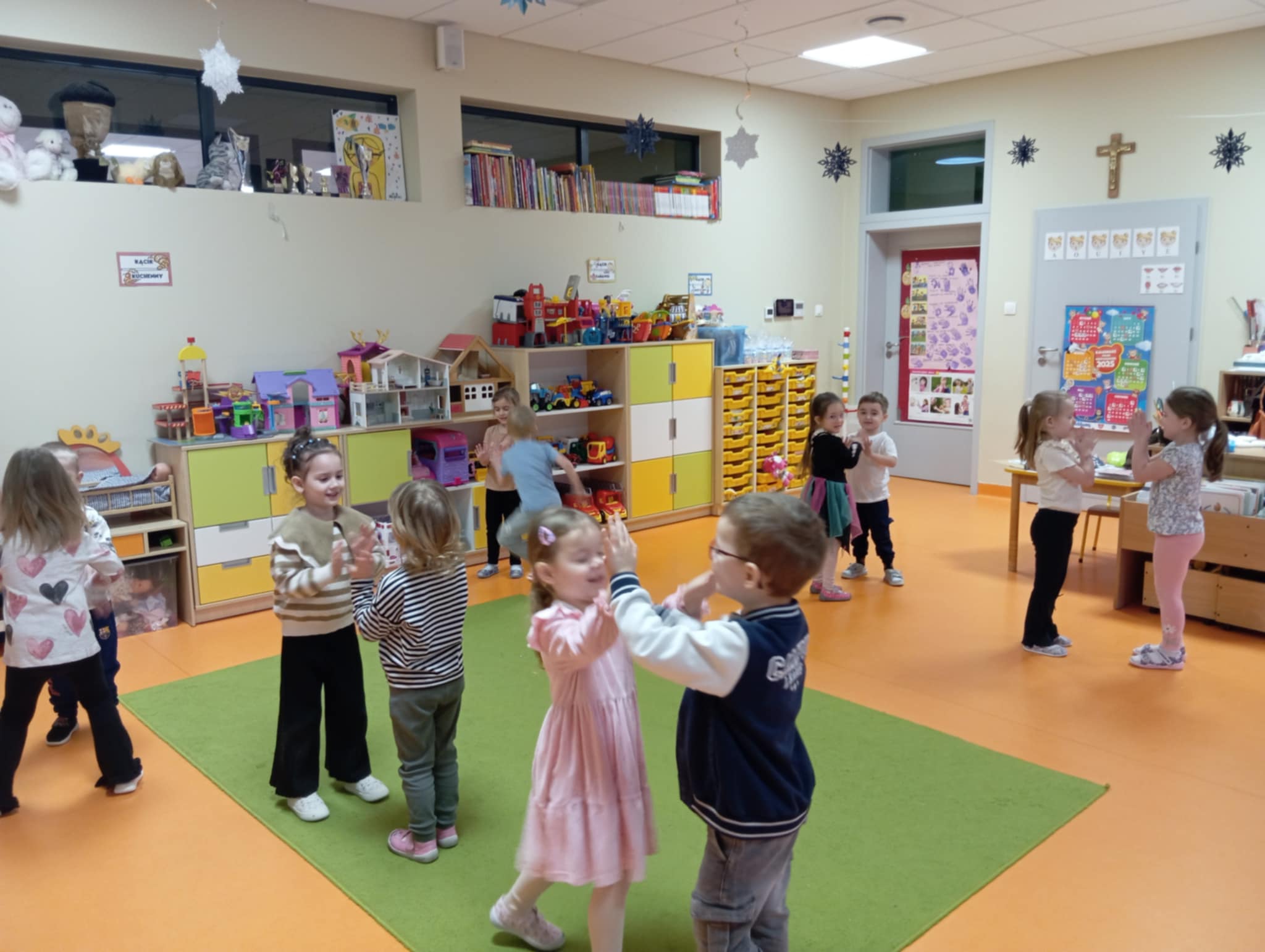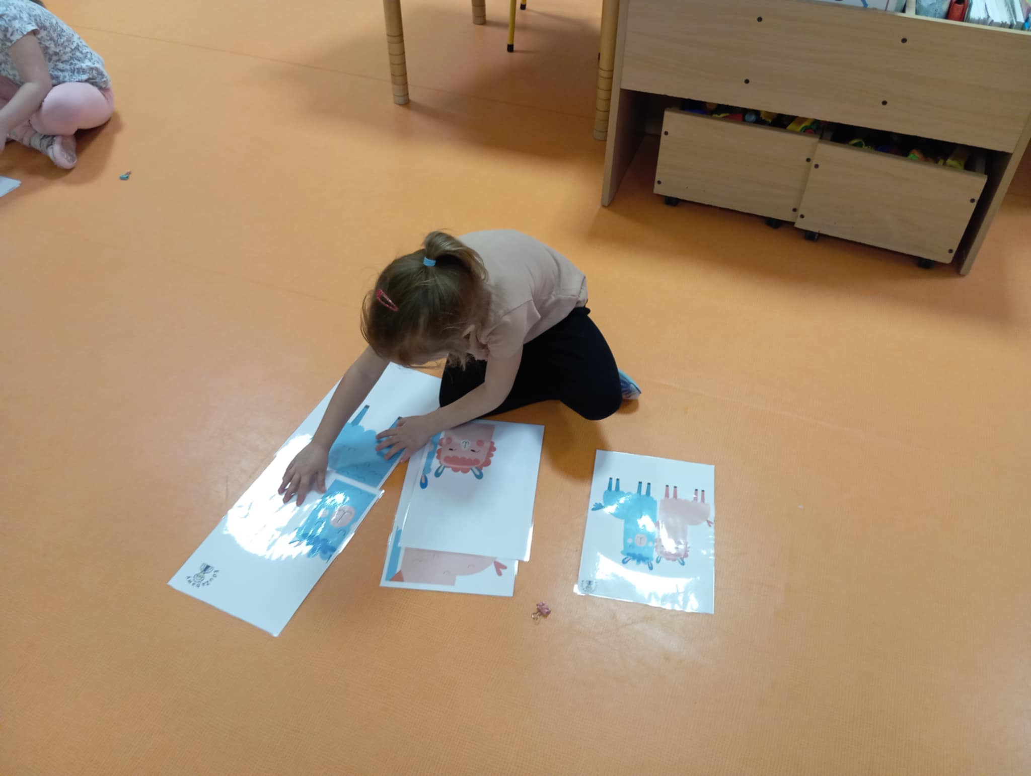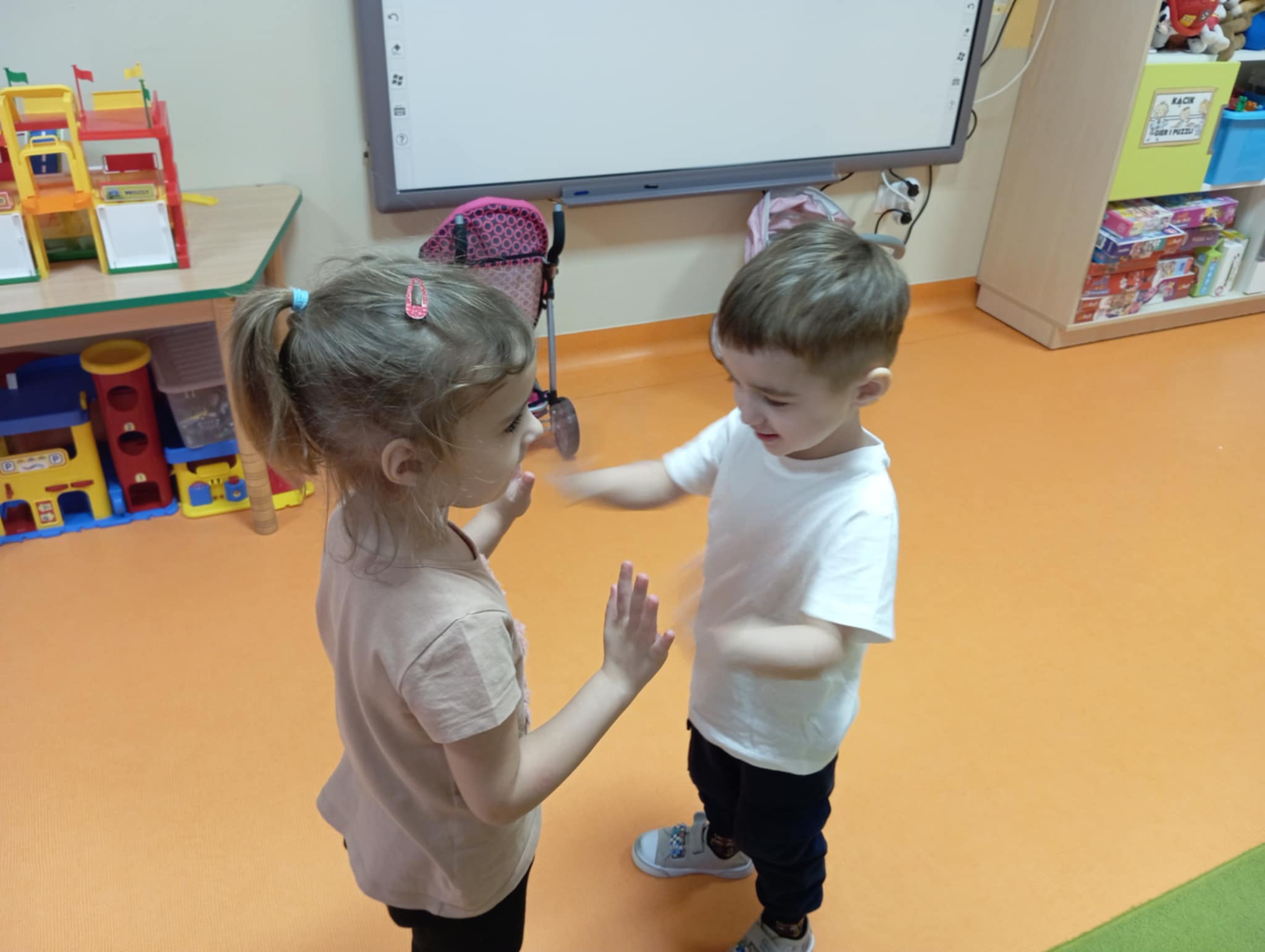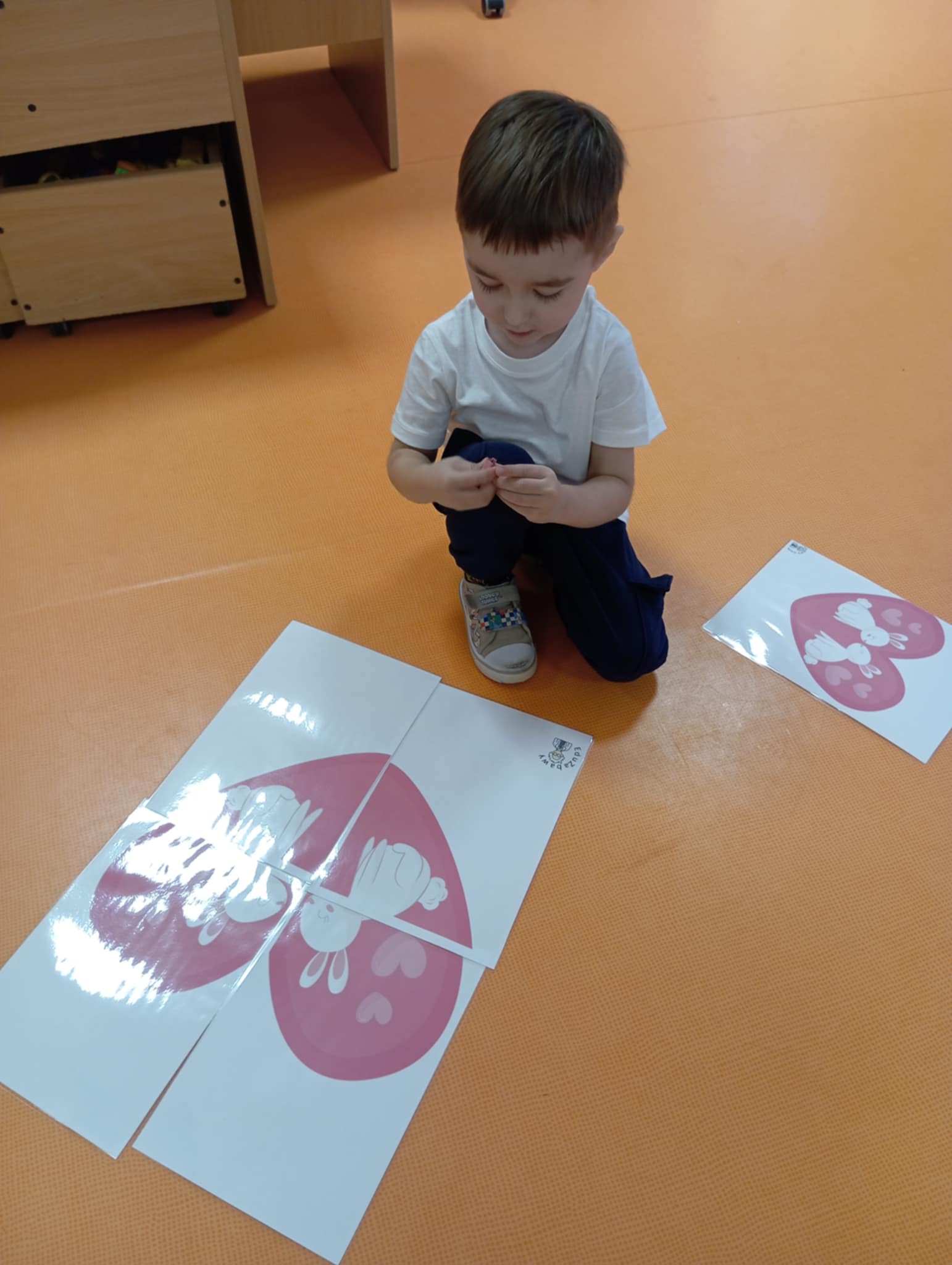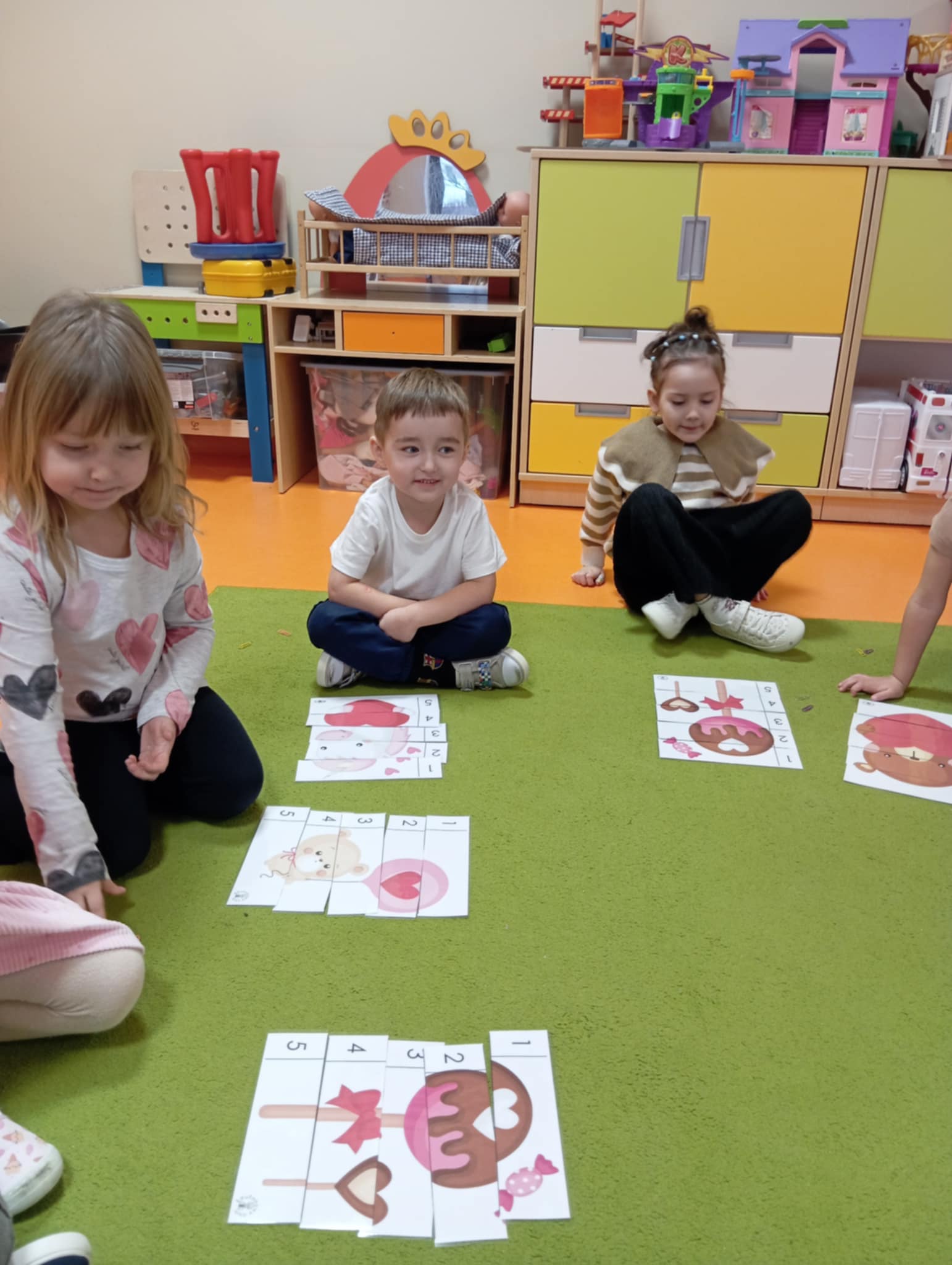 Walentynki to doskonały czas, aby poruszyć z dziećmi temat miłości, kochania, relacji z rodziną. Dzieci chętnie dzielą się swoimi przeżyciami. Na dzisiejszych zajęciach rozmawialiśmy o miłości rodziców do dzieci. Dzieci układały obrazki z części, obrazki przedstawiały walentynkowe ilustracje. Następnie dzieci zamieniały się miejscami i układały kolejne. Wspólnie bawiły się i tańczyły.