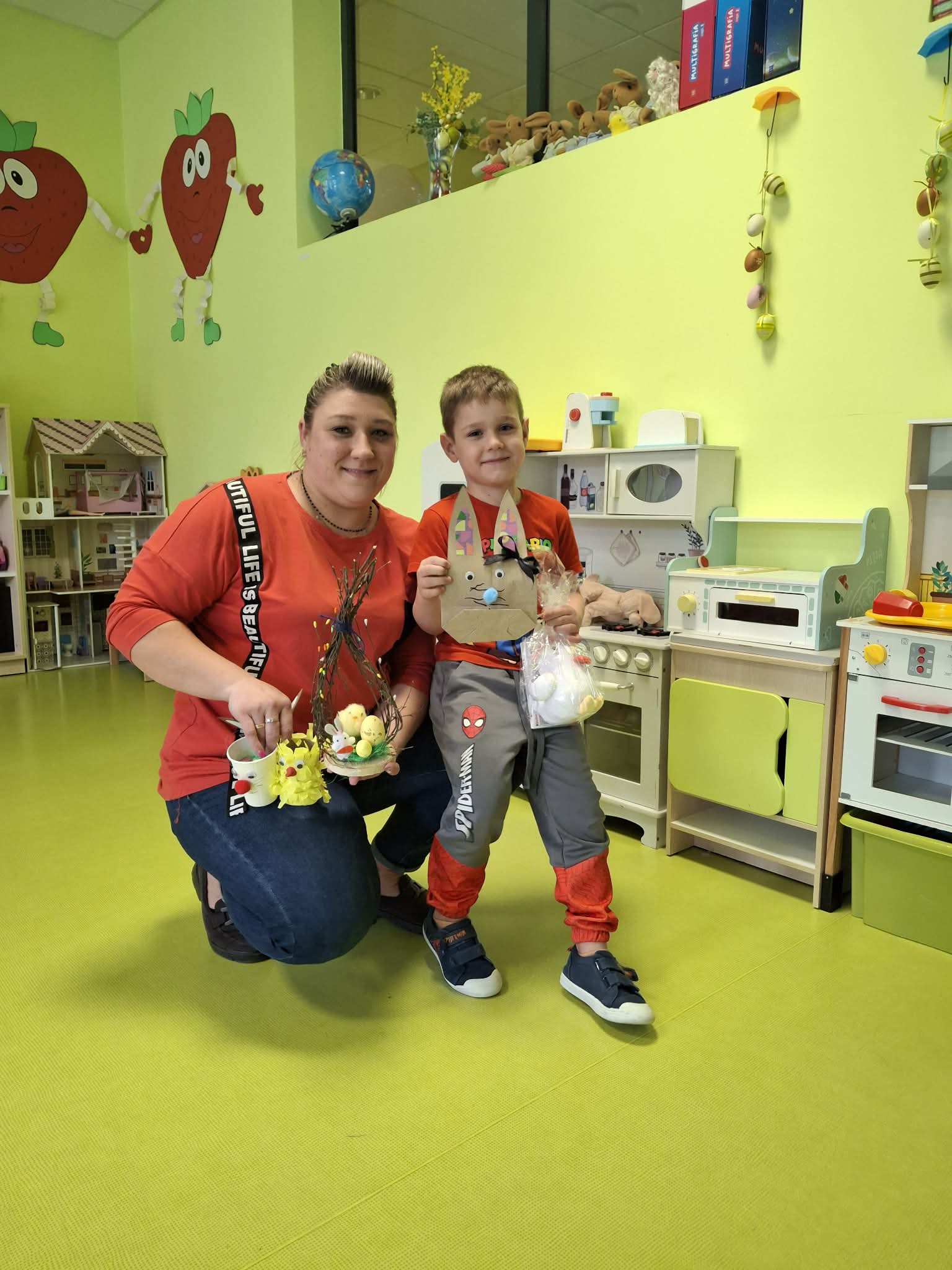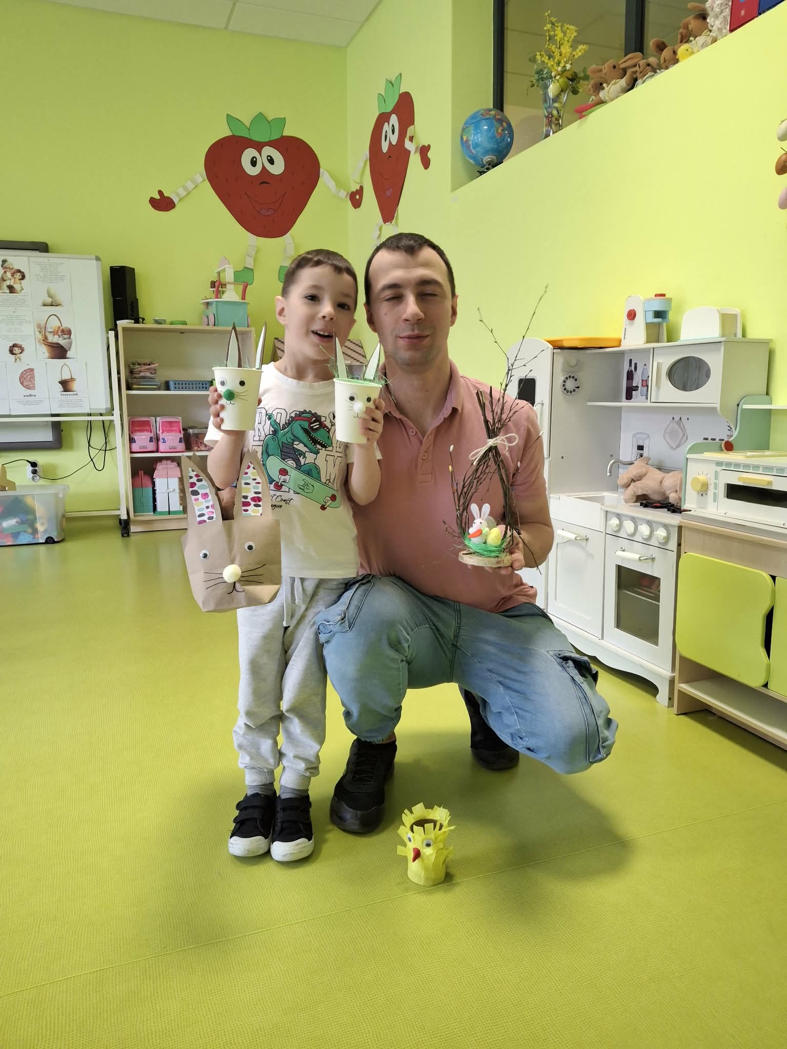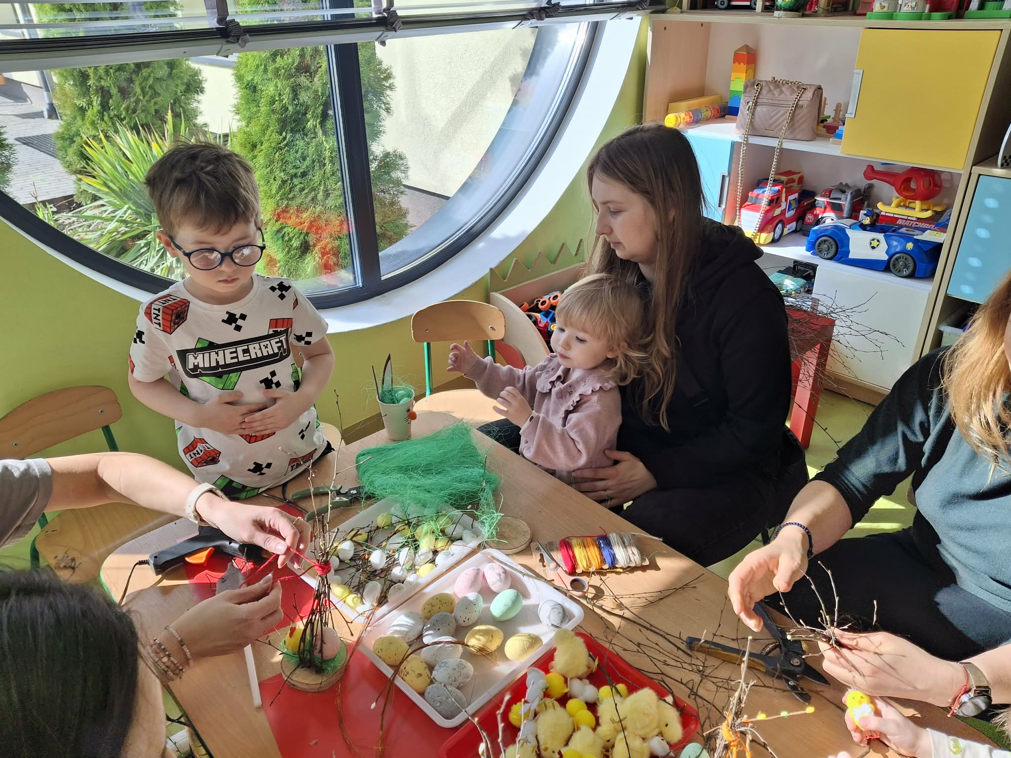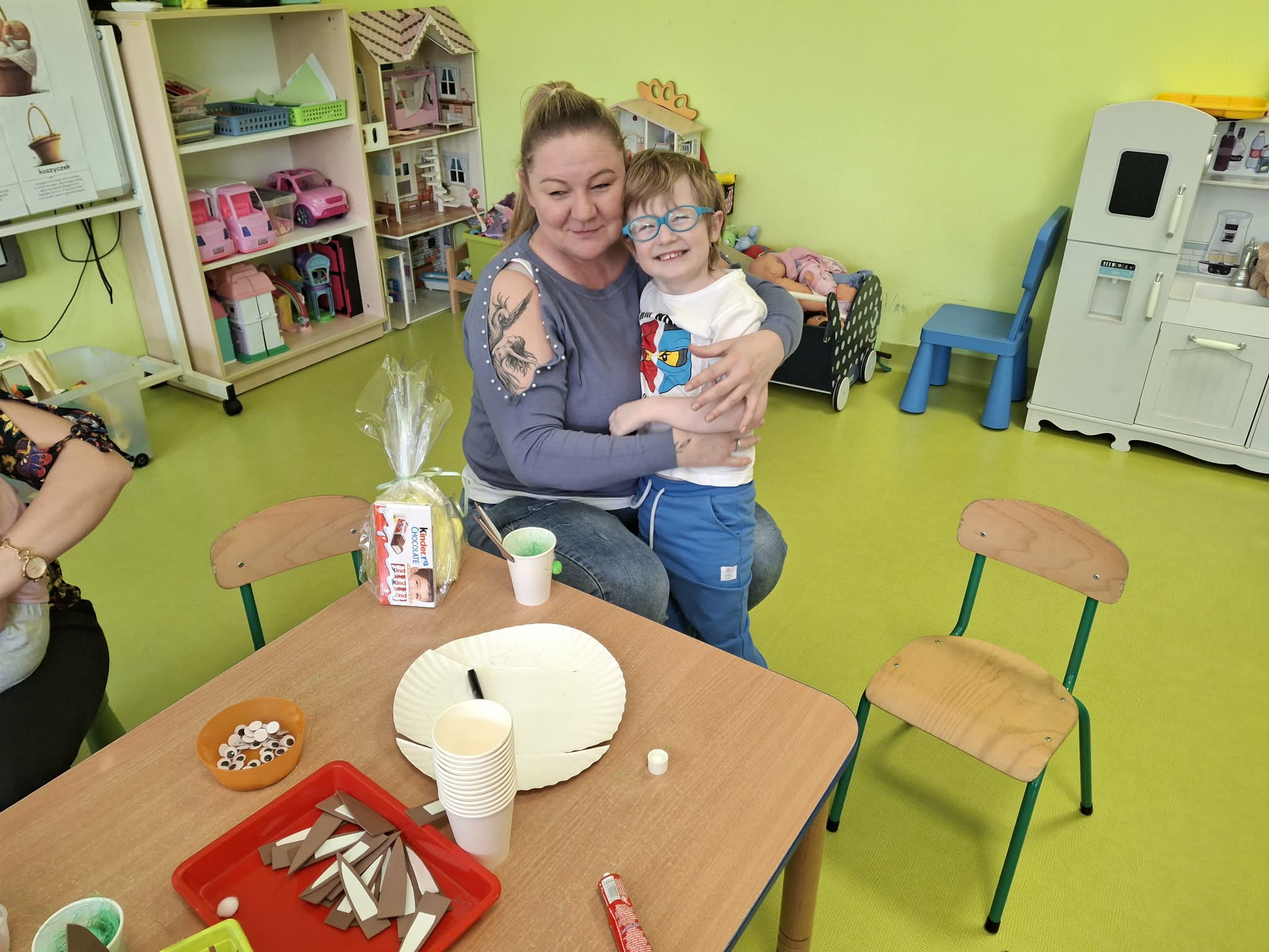 Wielkanocne spotkanie z rodzicami to frajda dla wszystkich. Dzisiaj na warsztatach robiliśmy przepiękne ozdoby - torebkę prezentową, kurczaka, zajączka z papierowego kubeczka i wielkanocny stroik. Zadań było dużo, ale uporaliśmy się z nimi doskonale. Efekty naszej wspólnej pracy widać na zdjęciach.